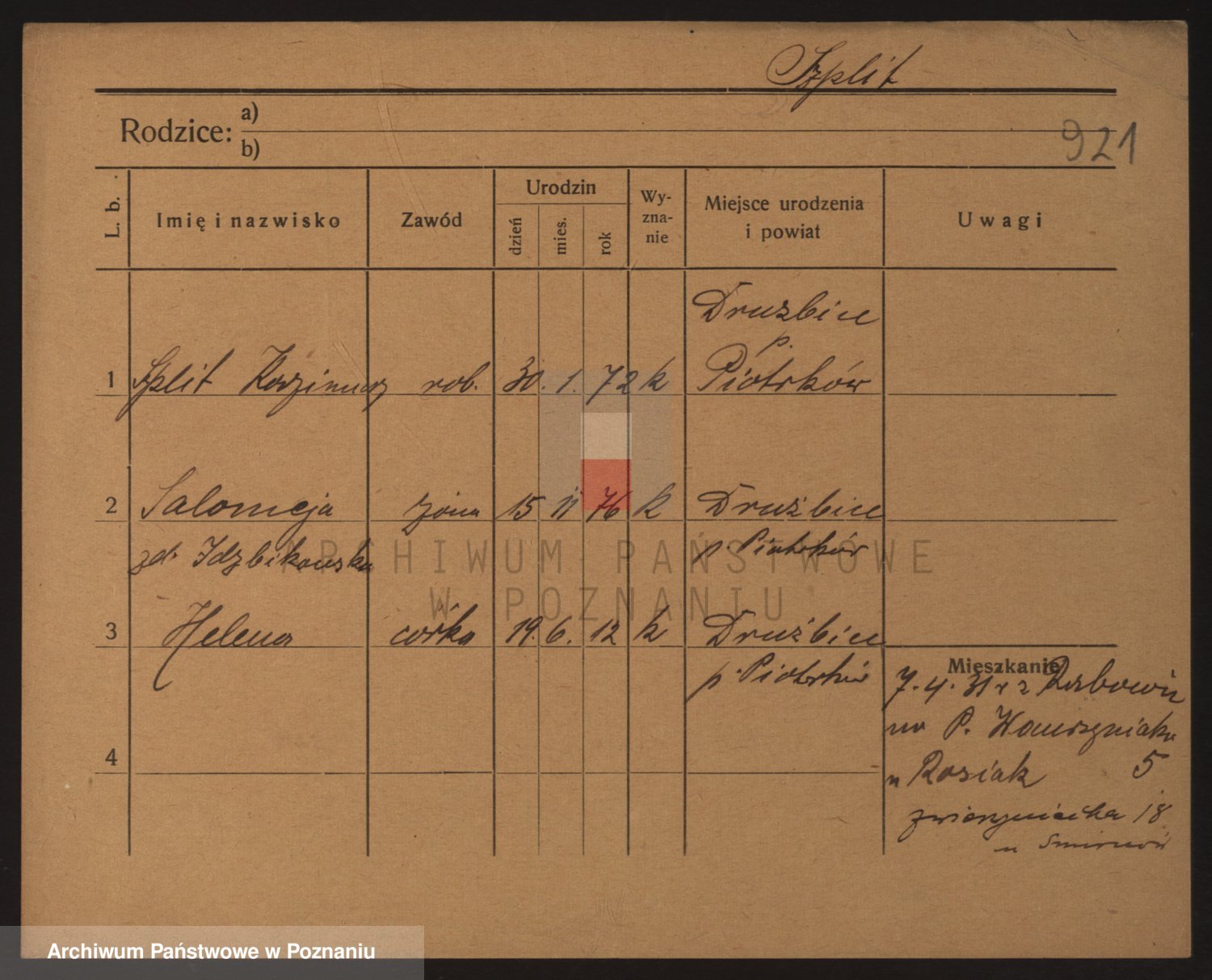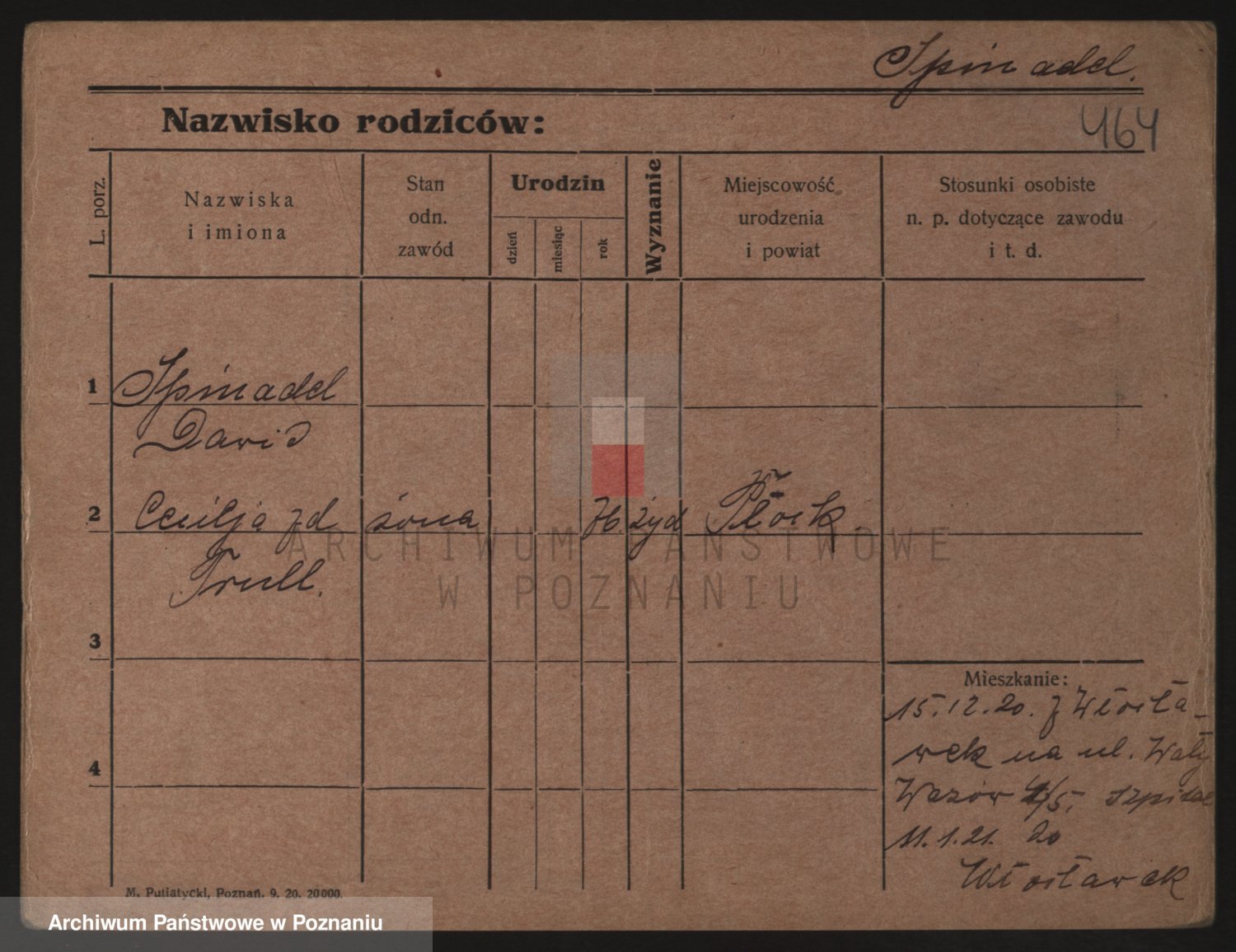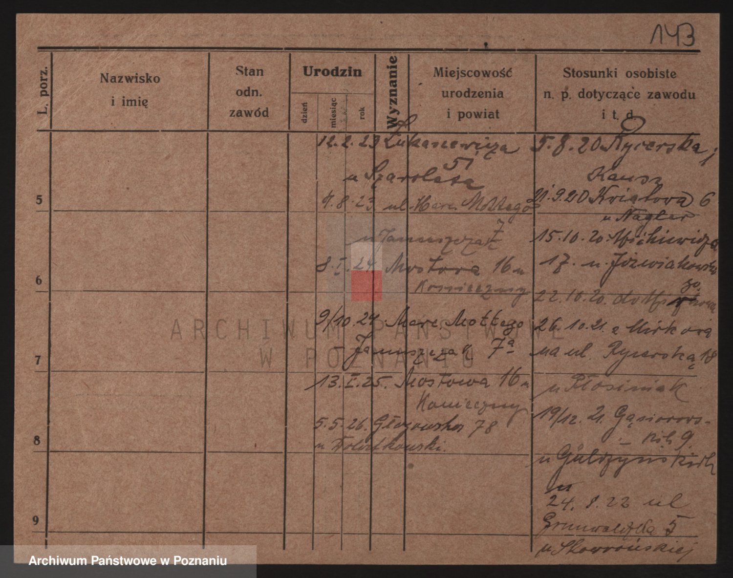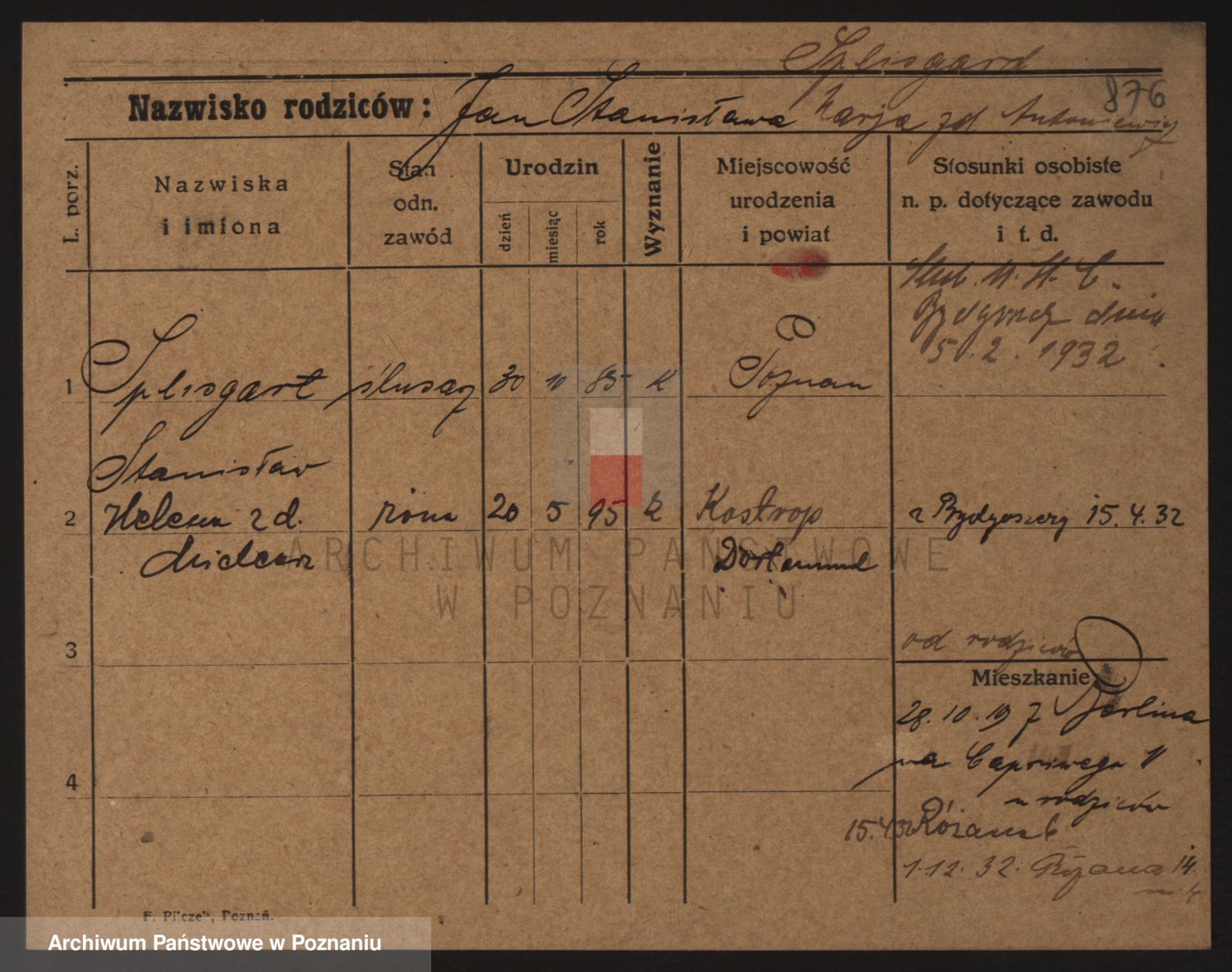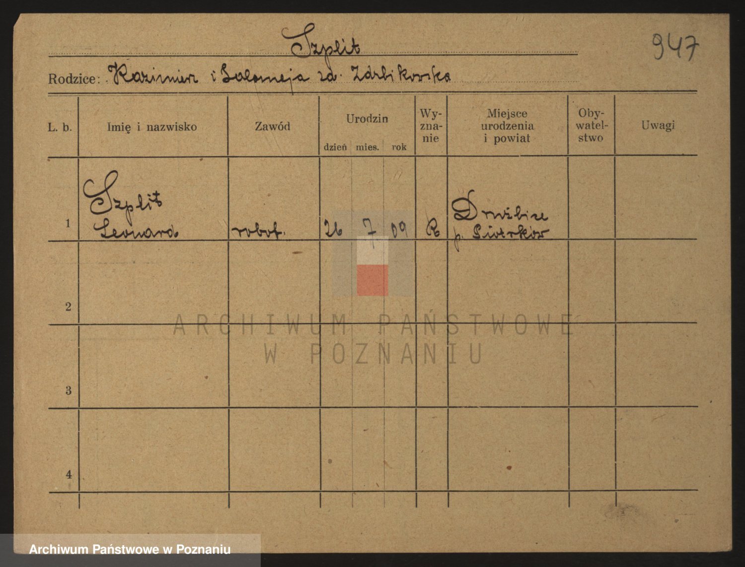 Podgląd karty osobowej dostępny jest po kliknięciu na nazwisko lub ikonkę karty. Można dokonywać powiększenia (ikony na górze) lub przechodzić między kolejnymi skanami (strzałki po bokach).