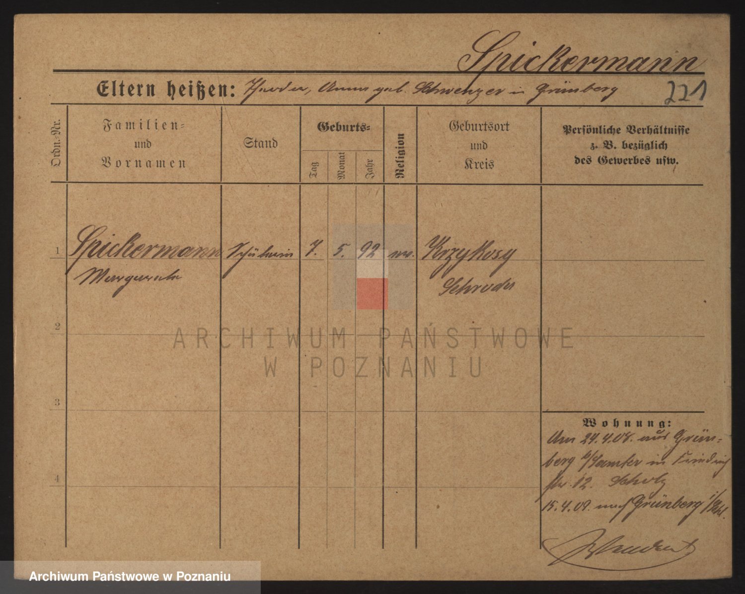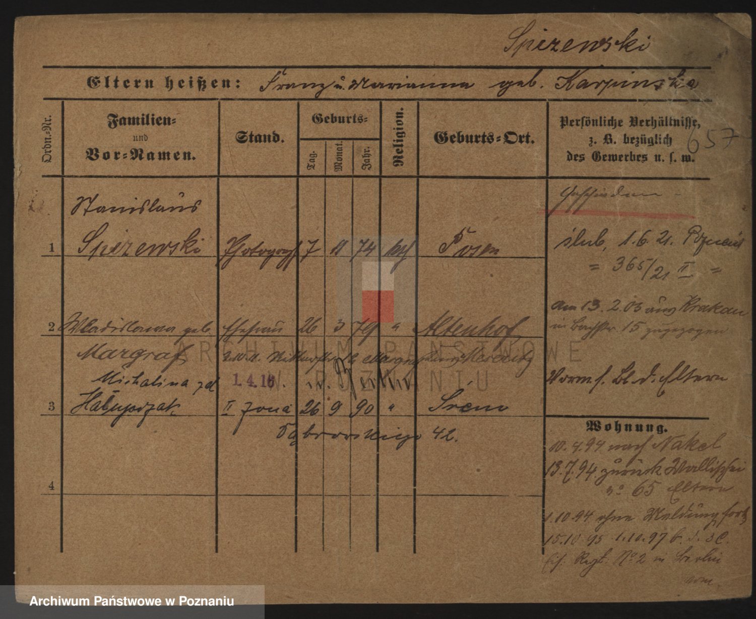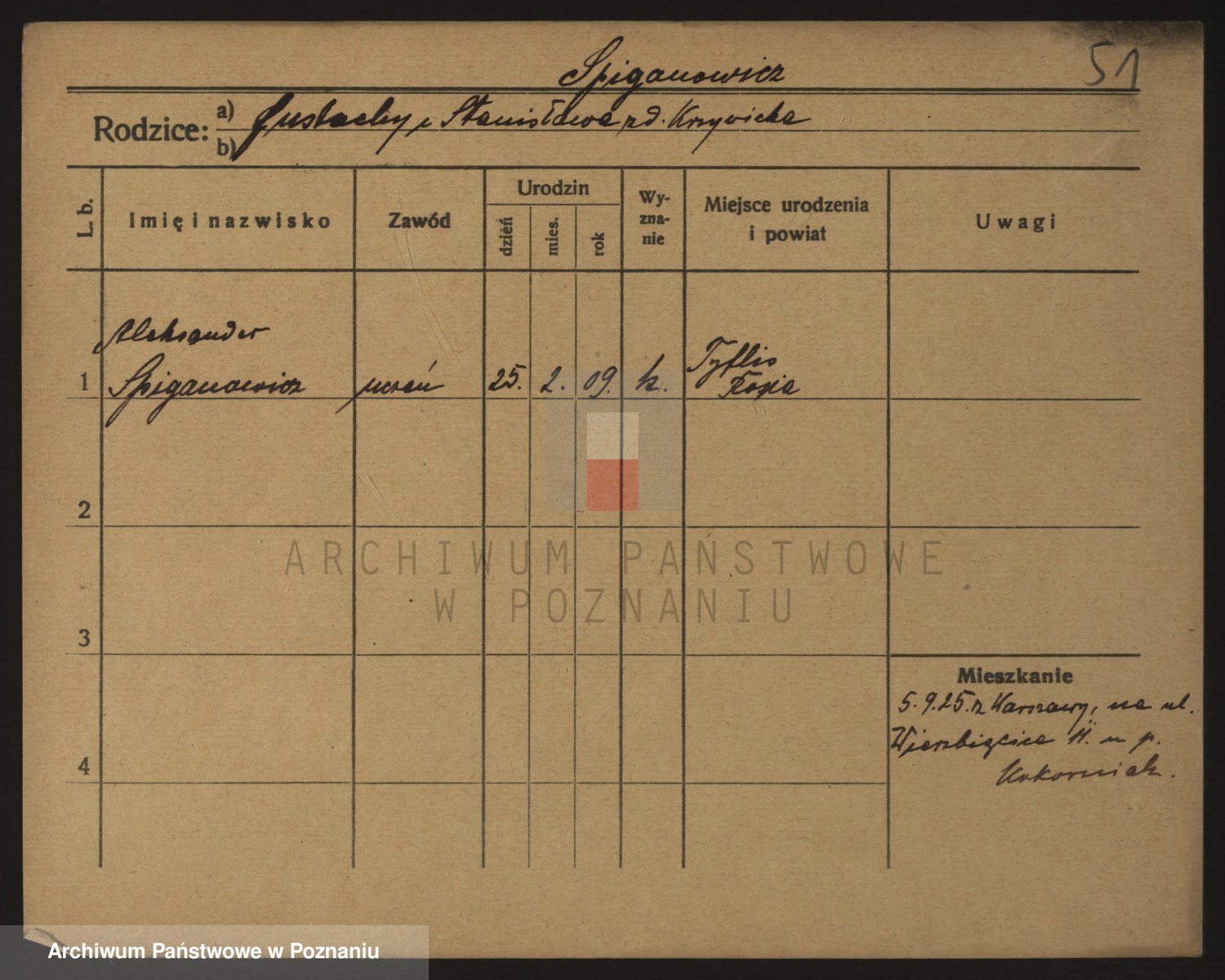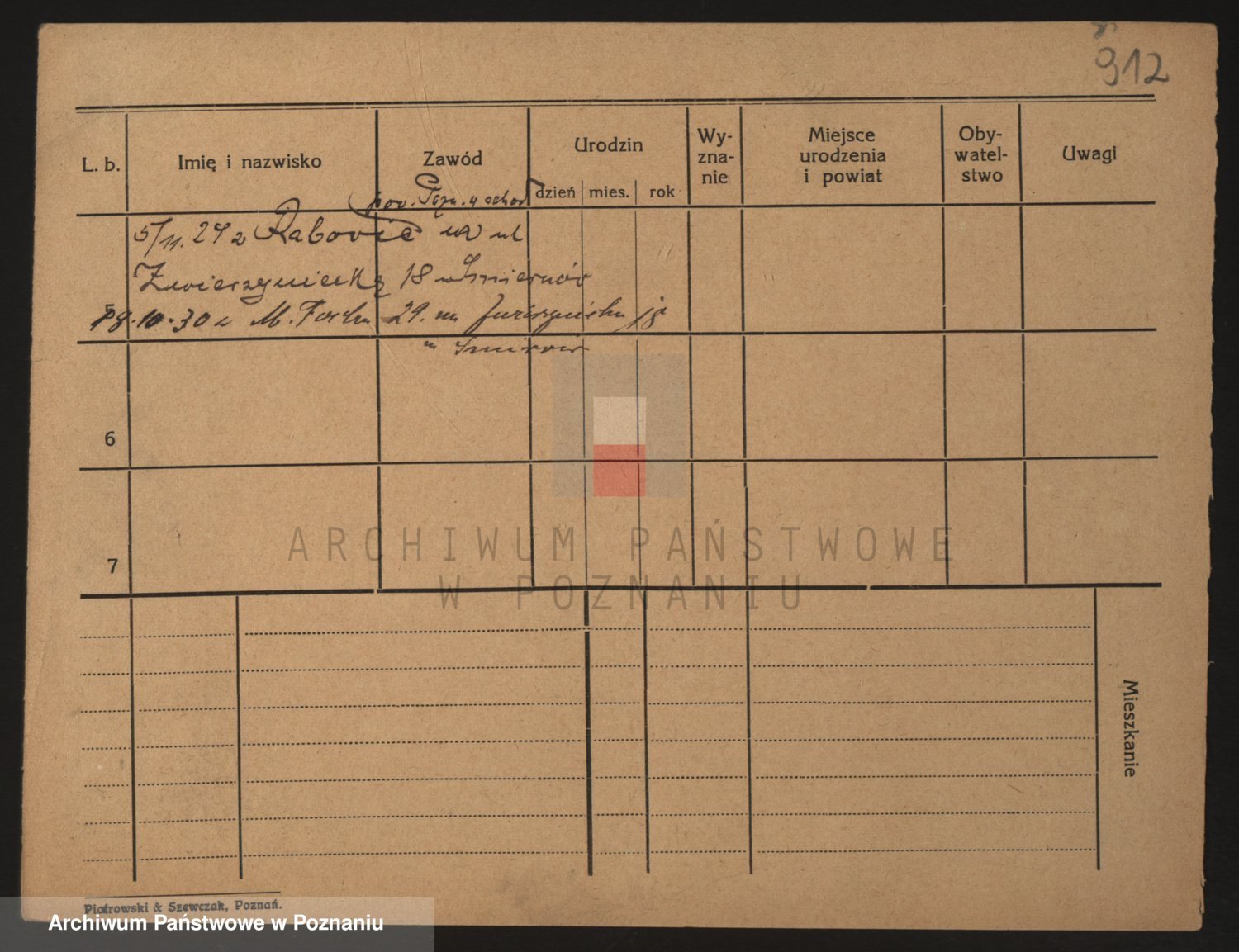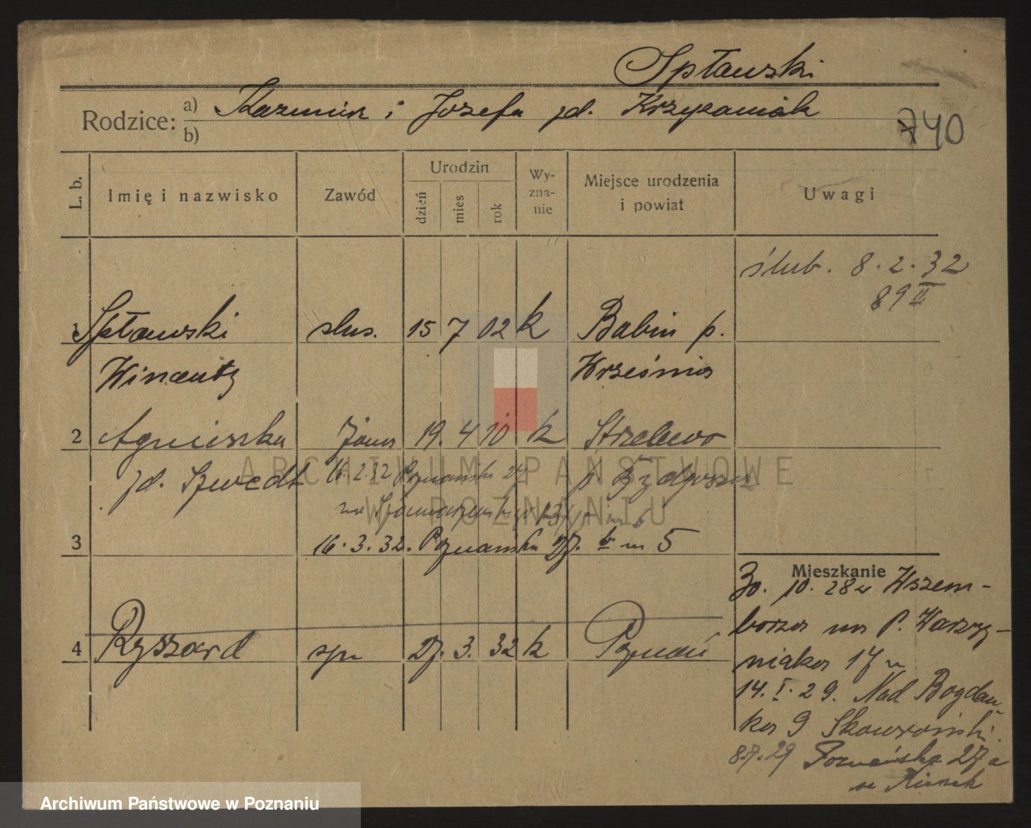 Podgląd karty osobowej dostępny jest po kliknięciu na nazwisko lub ikonkę karty. Można dokonywać powiększenia (ikony na górze) lub przechodzić między kolejnymi skanami (strzałki po bokach).
