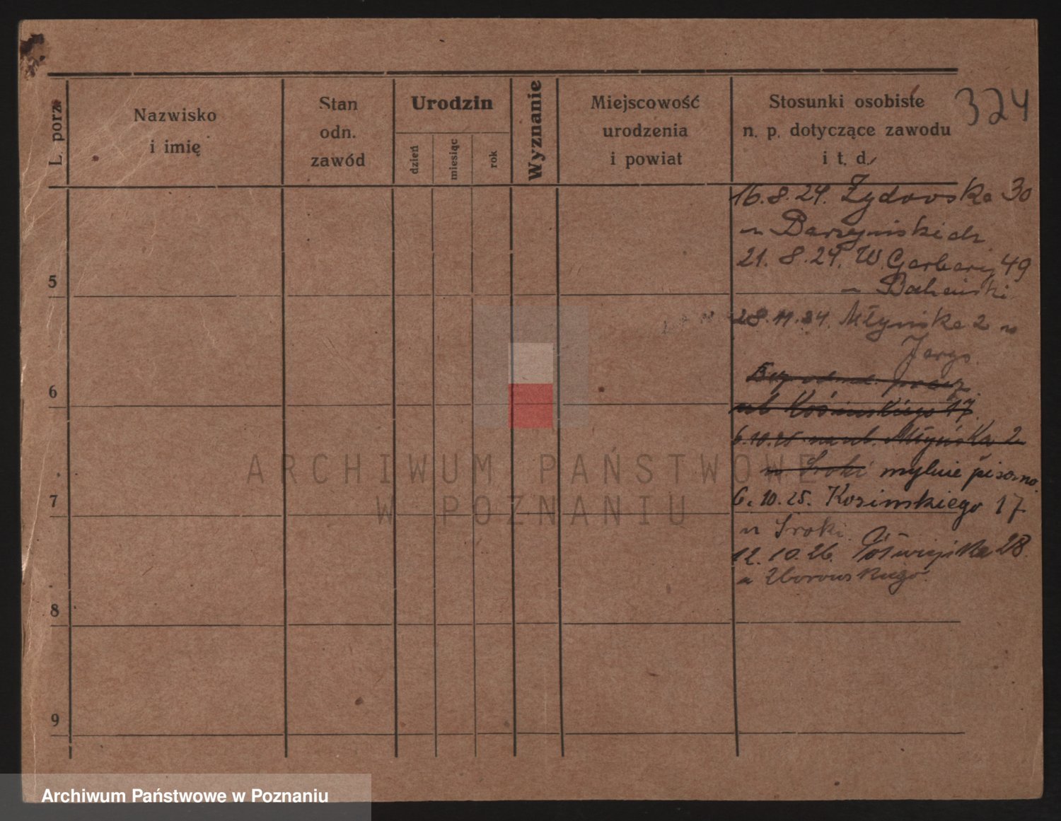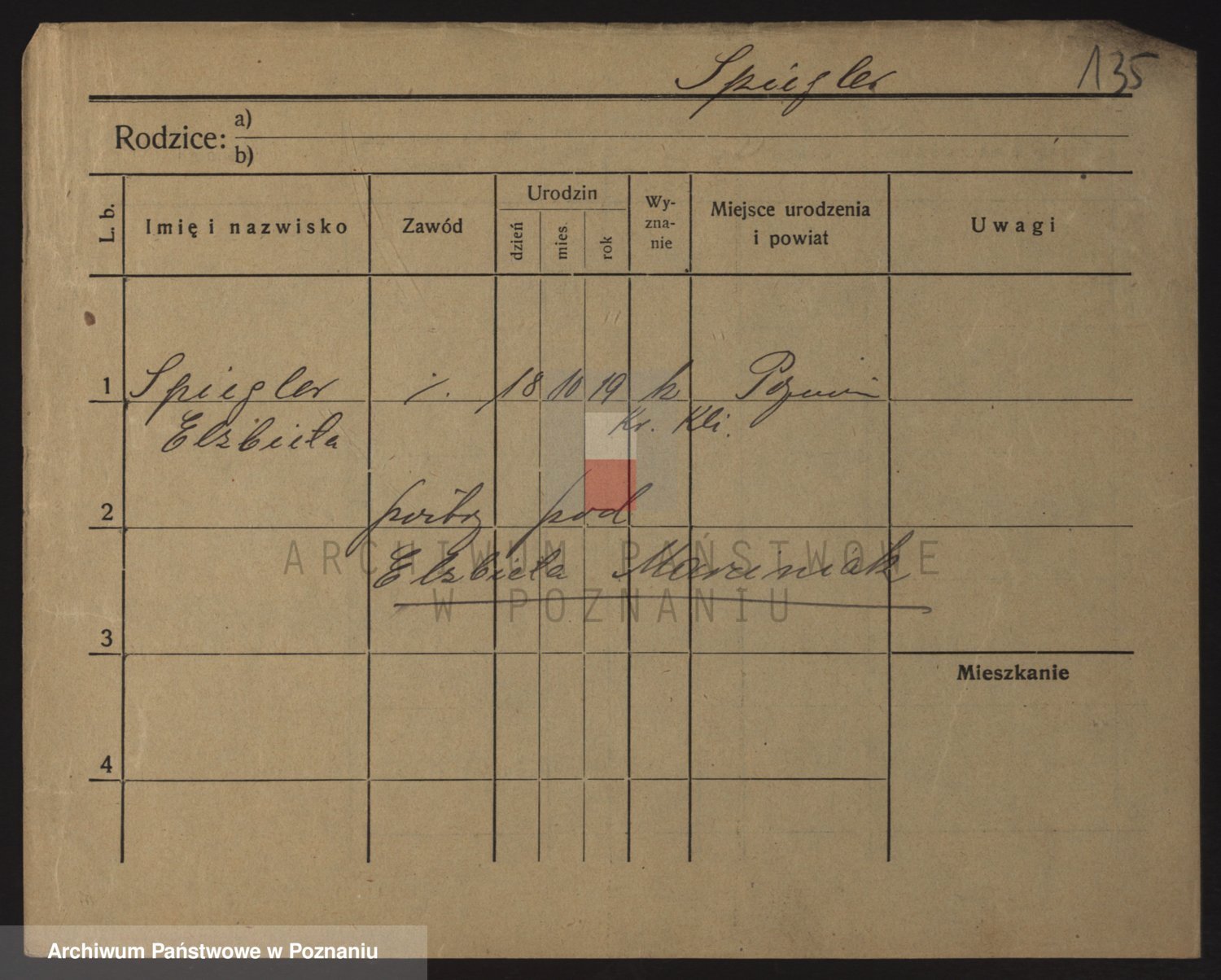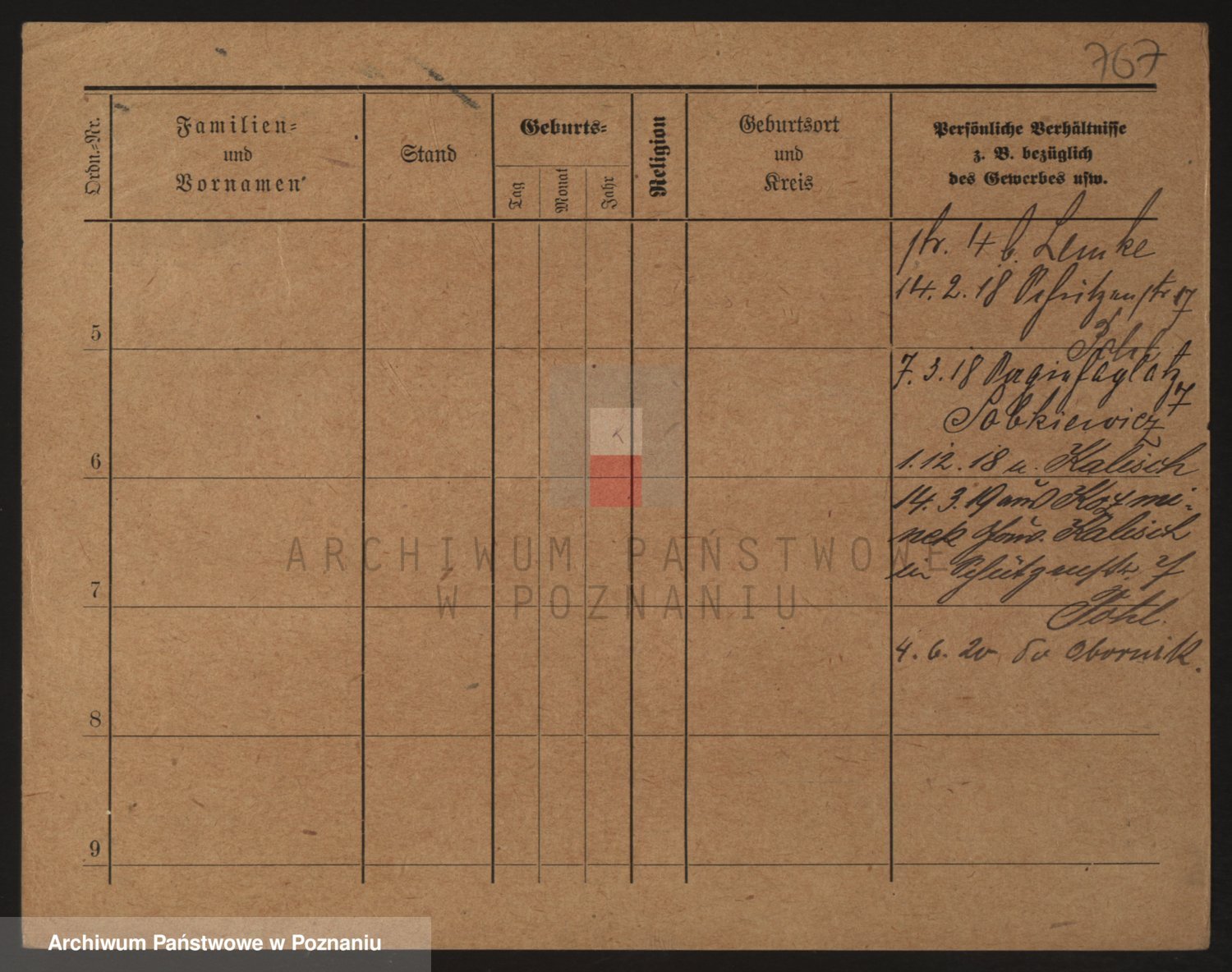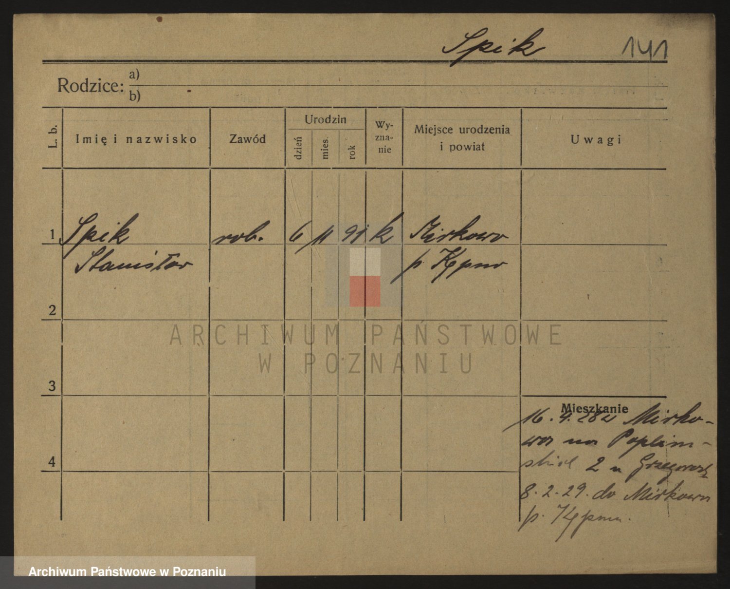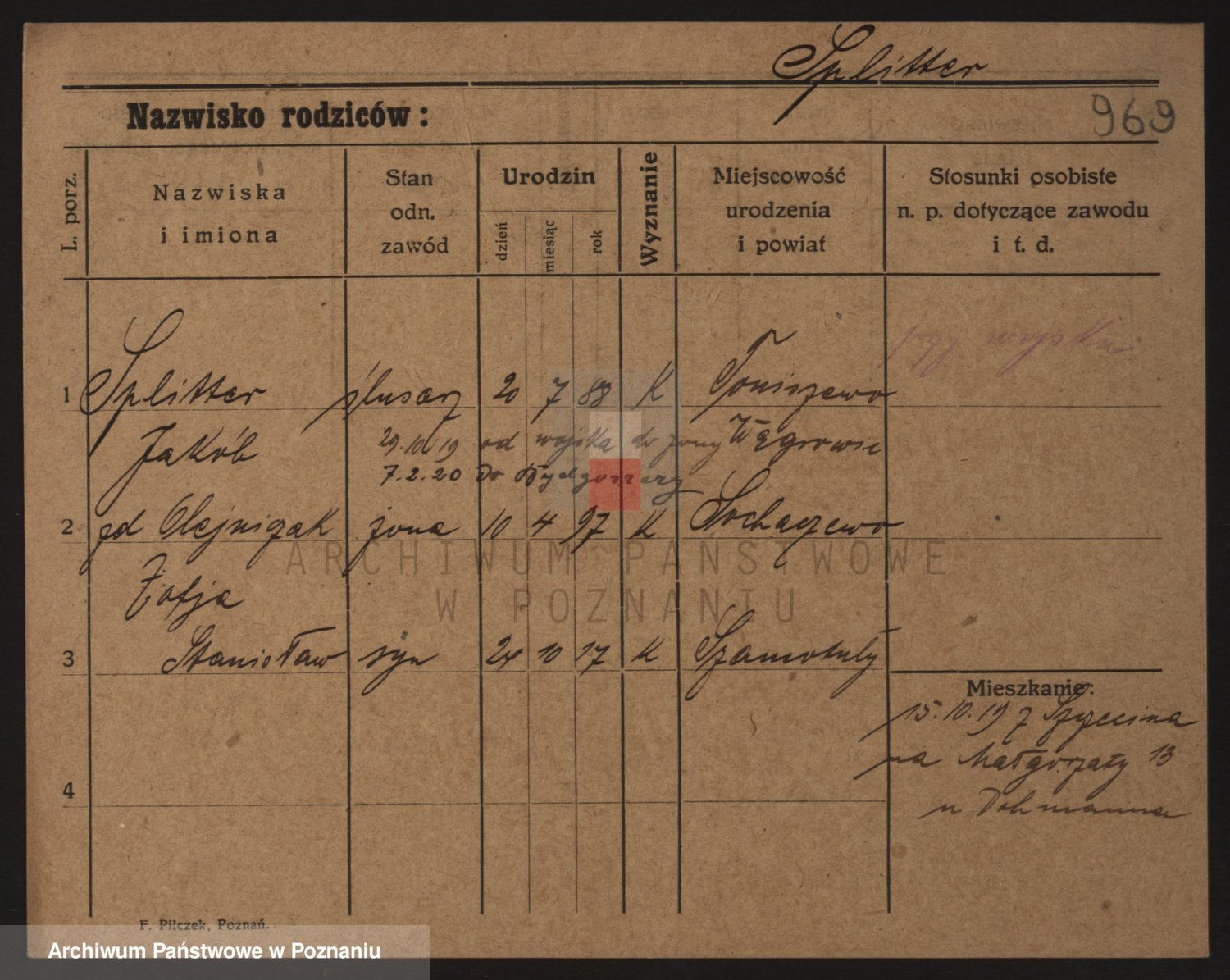 Podgląd karty osobowej dostępny jest po kliknięciu na nazwisko lub ikonkę karty. Można dokonywać powiększenia (ikony na górze) lub przechodzić między kolejnymi skanami (strzałki po bokach).