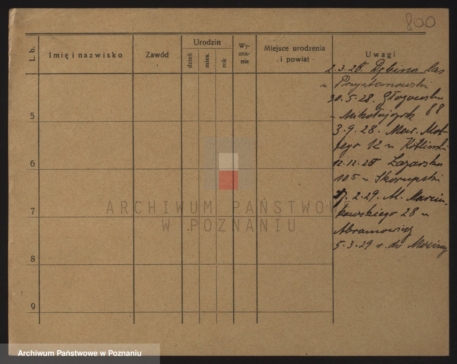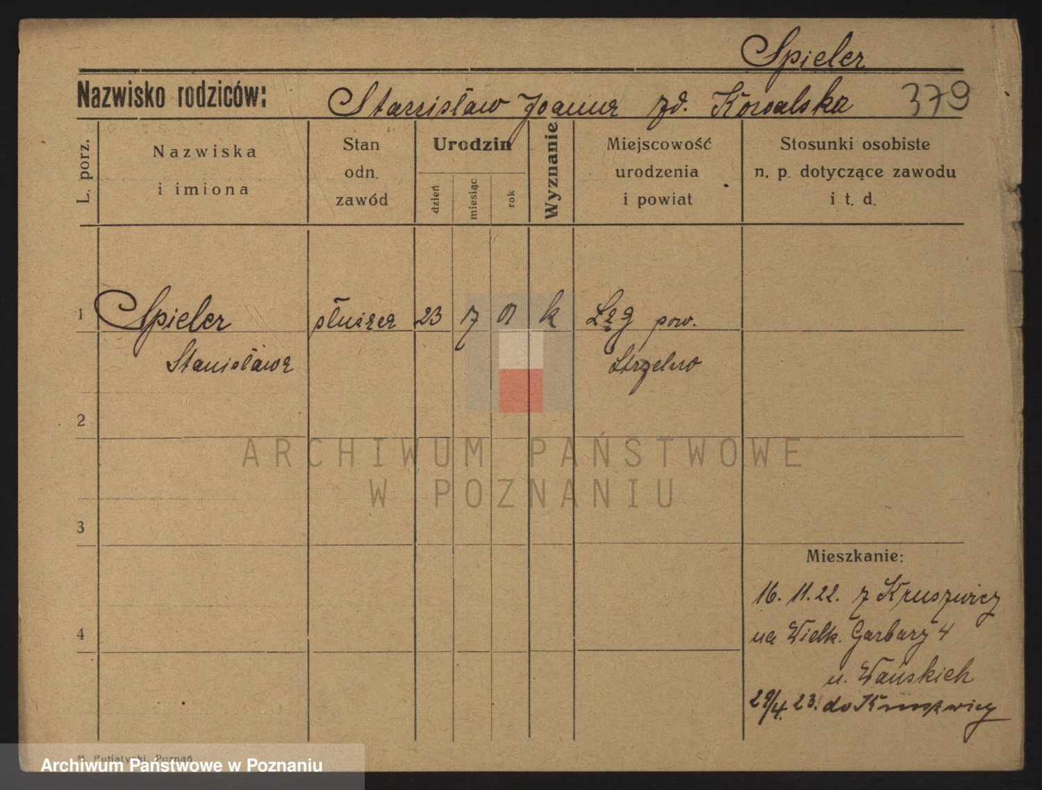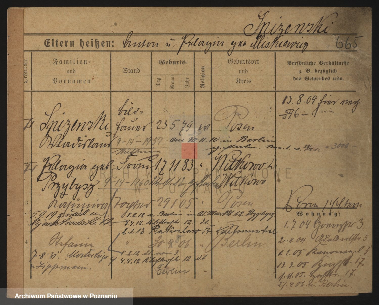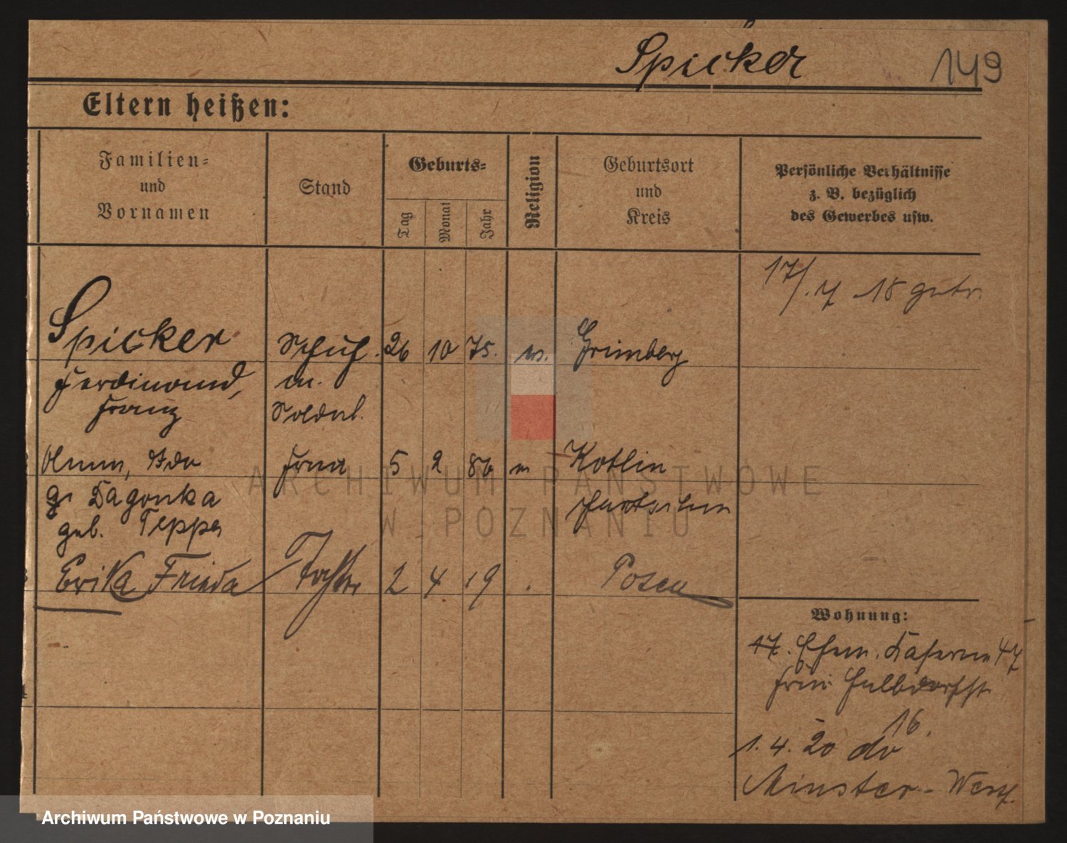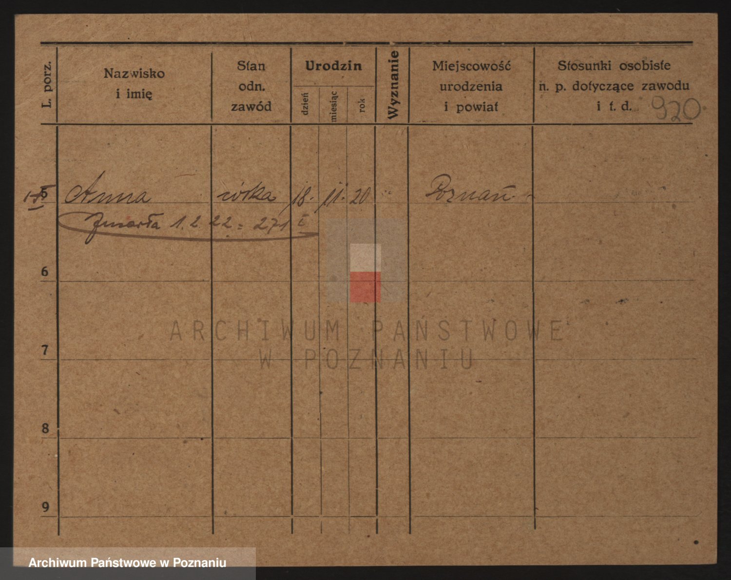 Podgląd karty osobowej dostępny jest po kliknięciu na nazwisko lub ikonkę karty. Można dokonywać powiększenia (ikony na górze) lub przechodzić między kolejnymi skanami (strzałki po bokach).