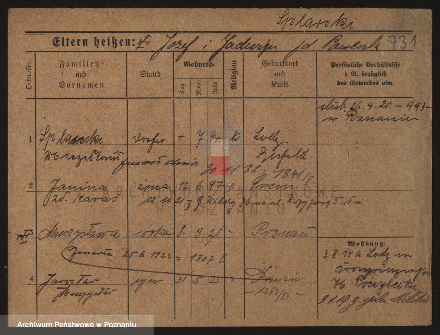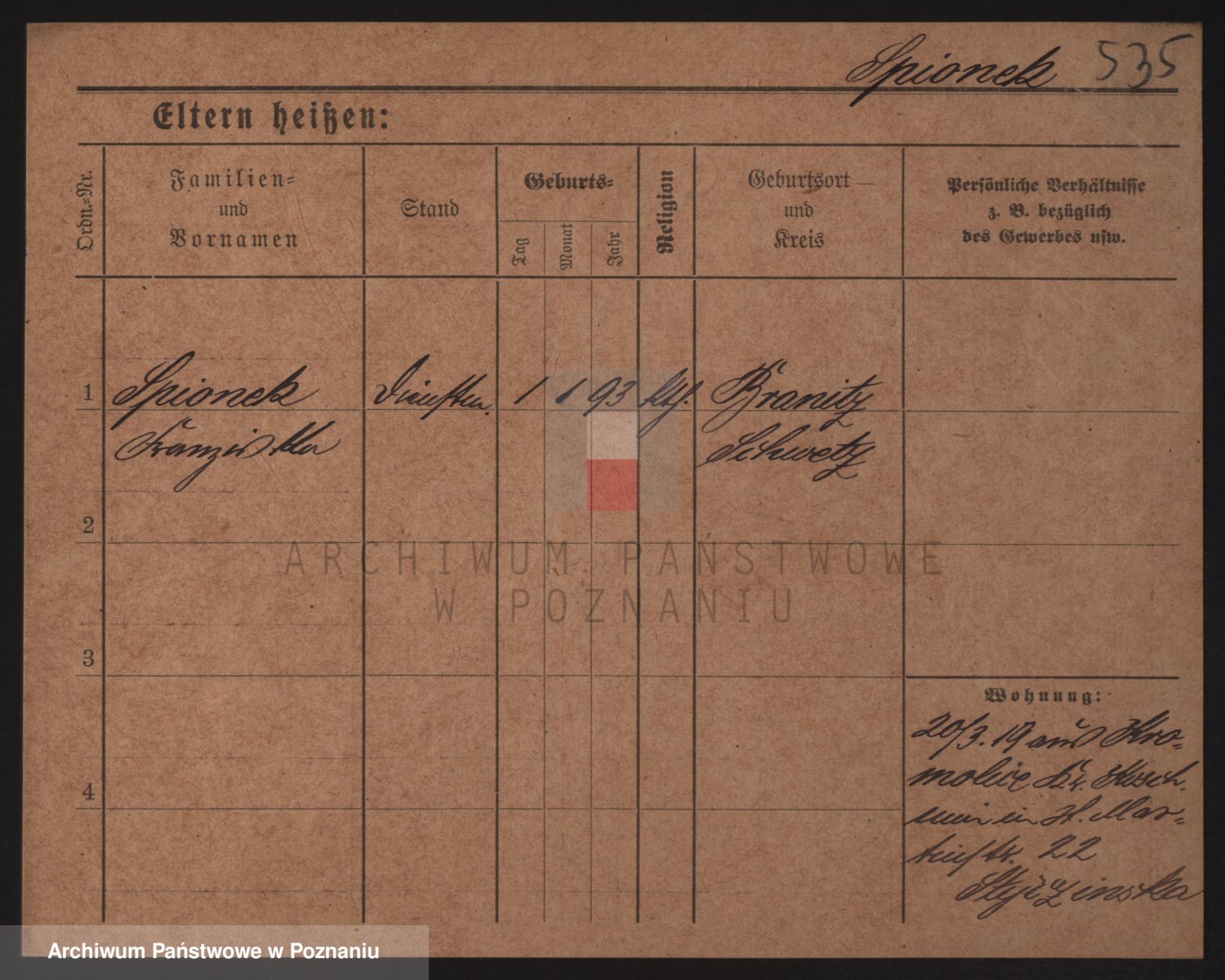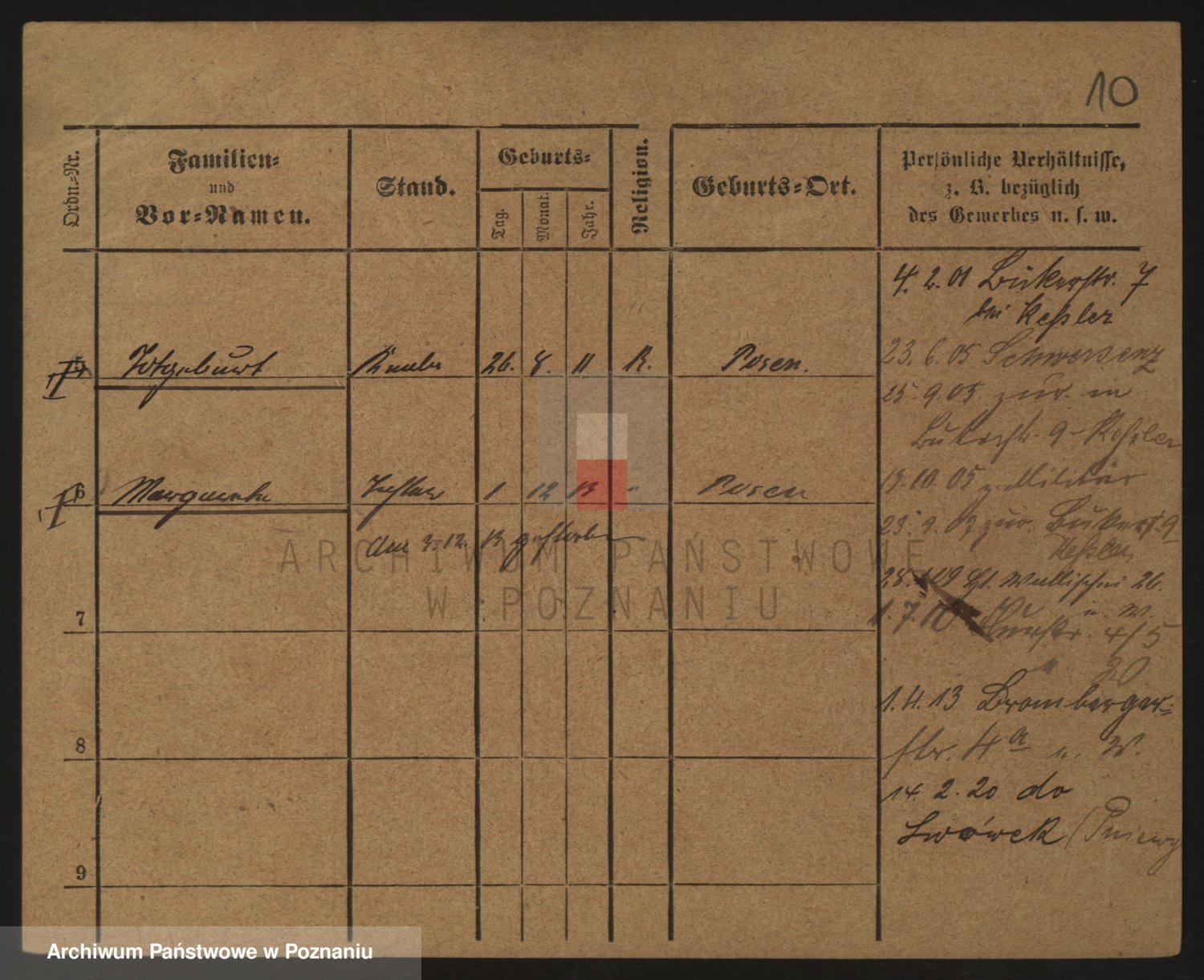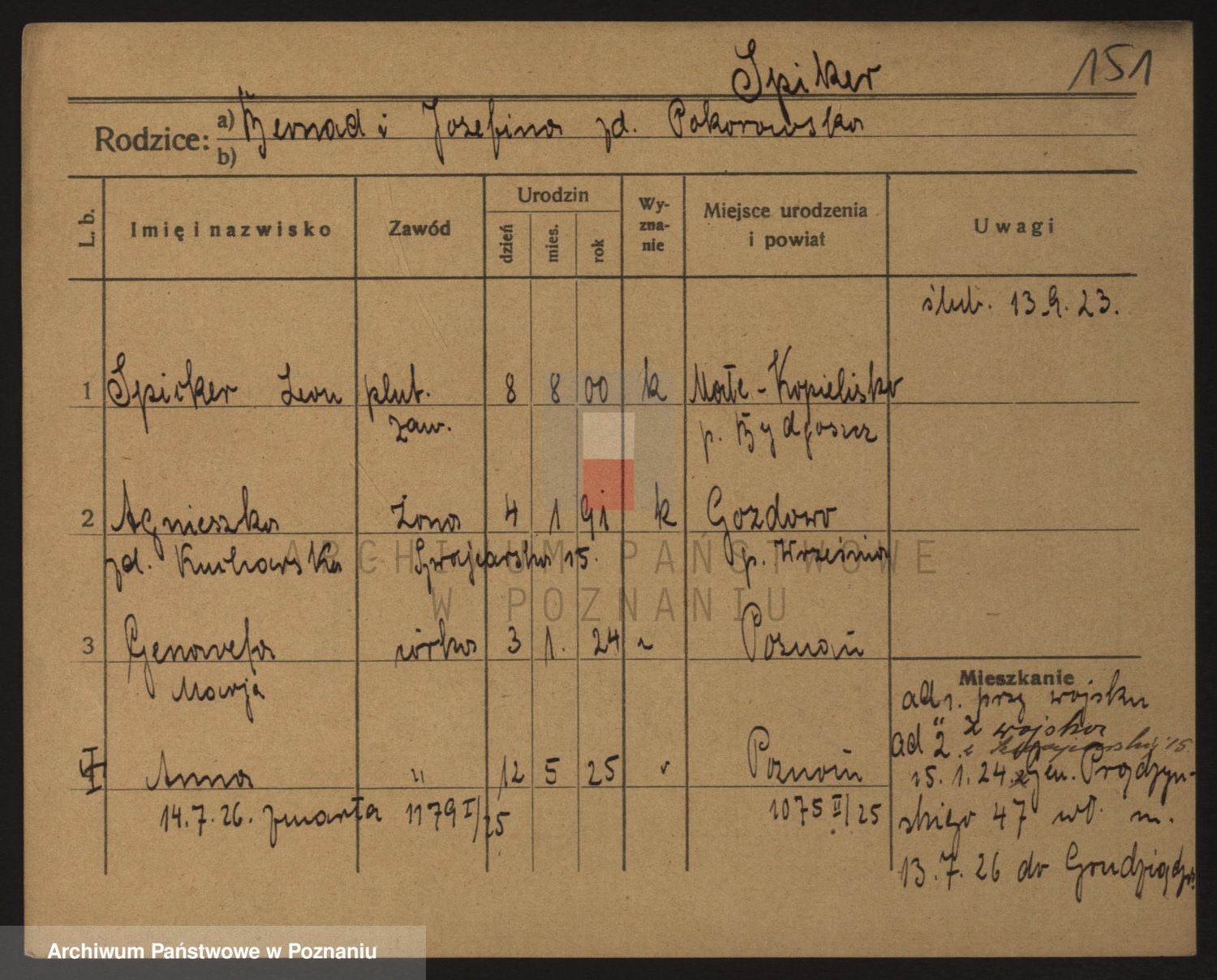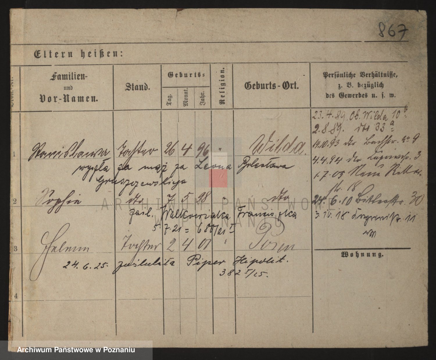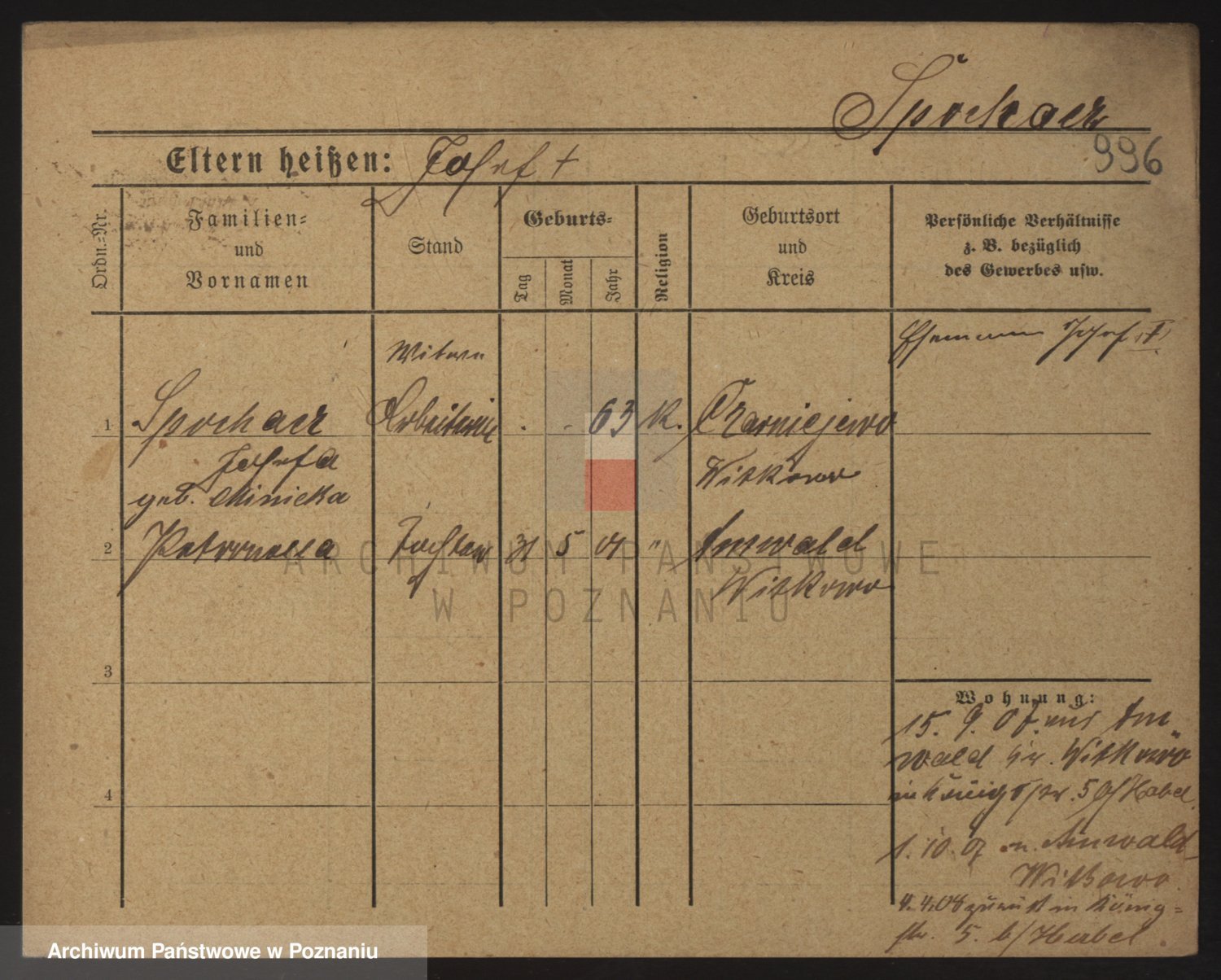Podgląd karty osobowej dostępny jest po kliknięciu na nazwisko lub ikonkę karty. Można dokonywać powiększenia (ikony na górze) lub przechodzić między kolejnymi skanami (strzałki po bokach).