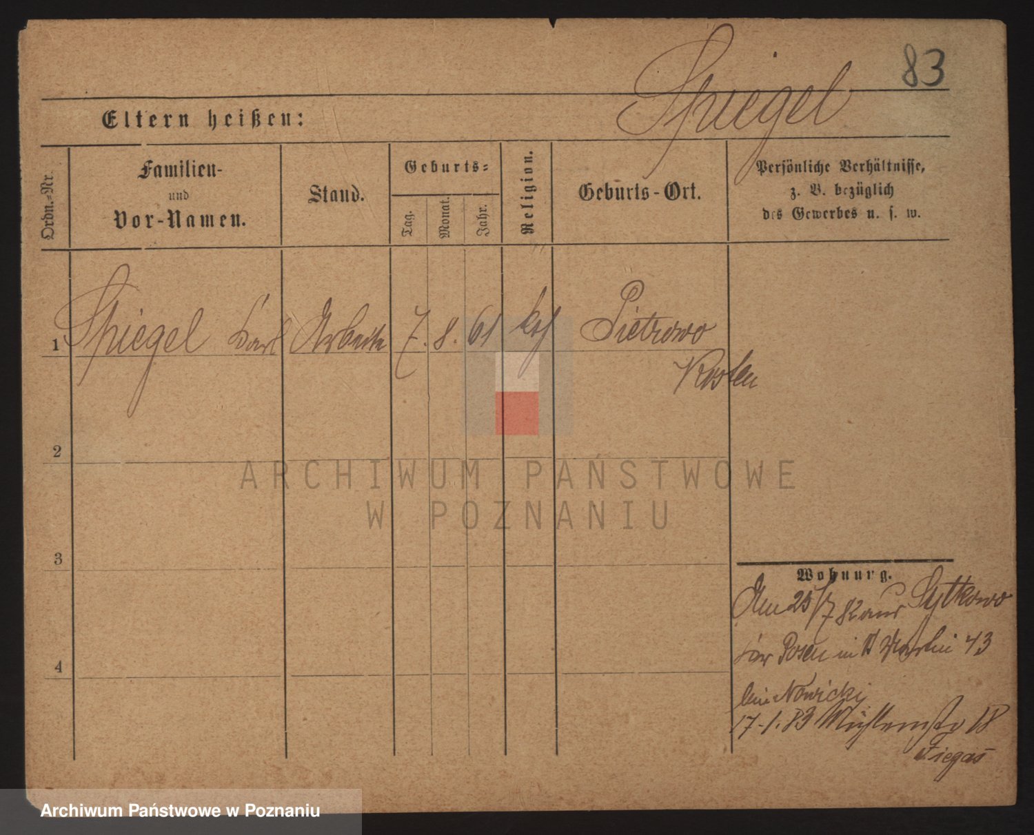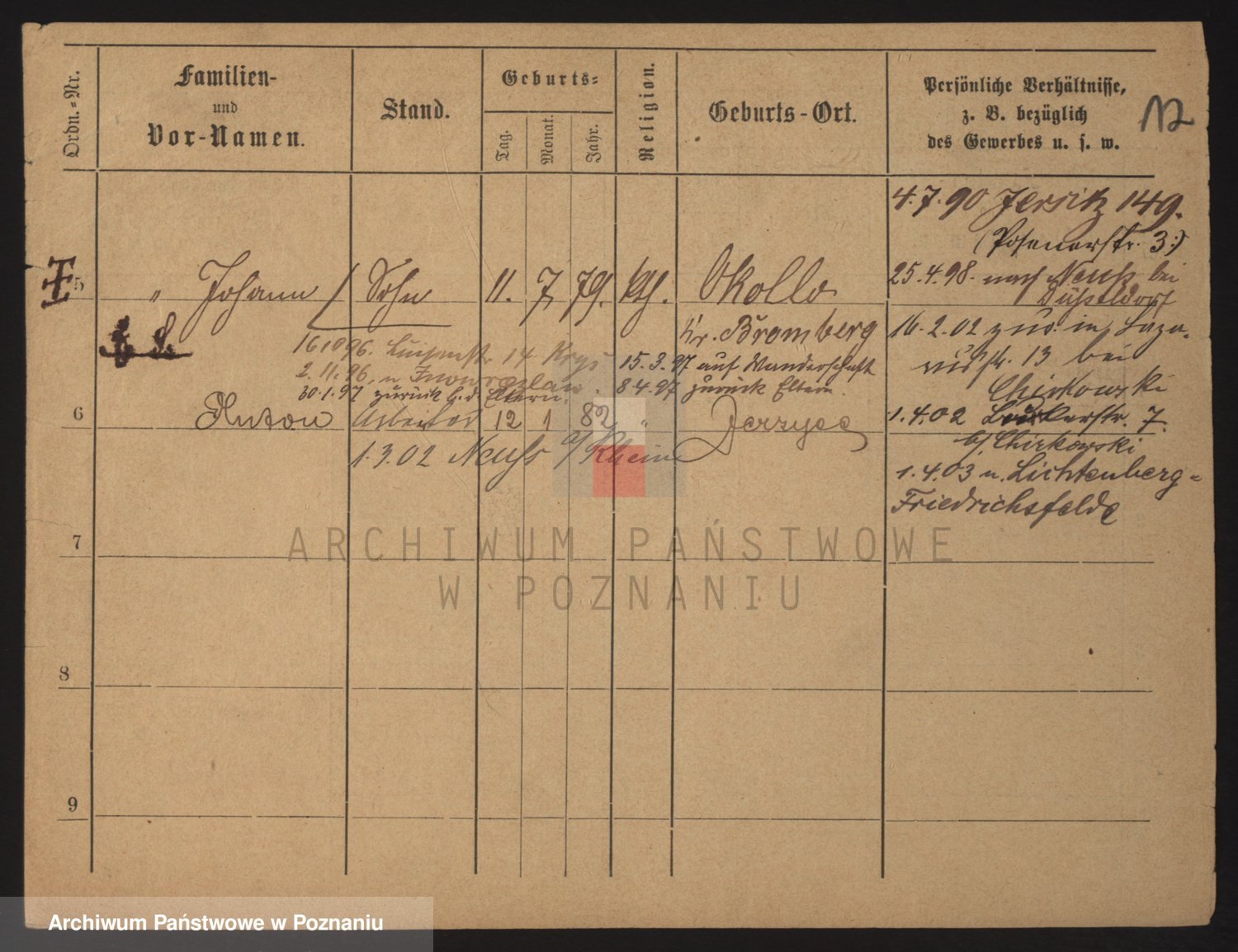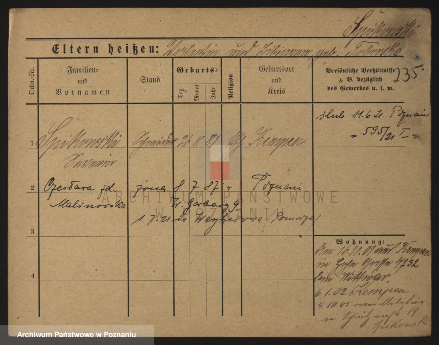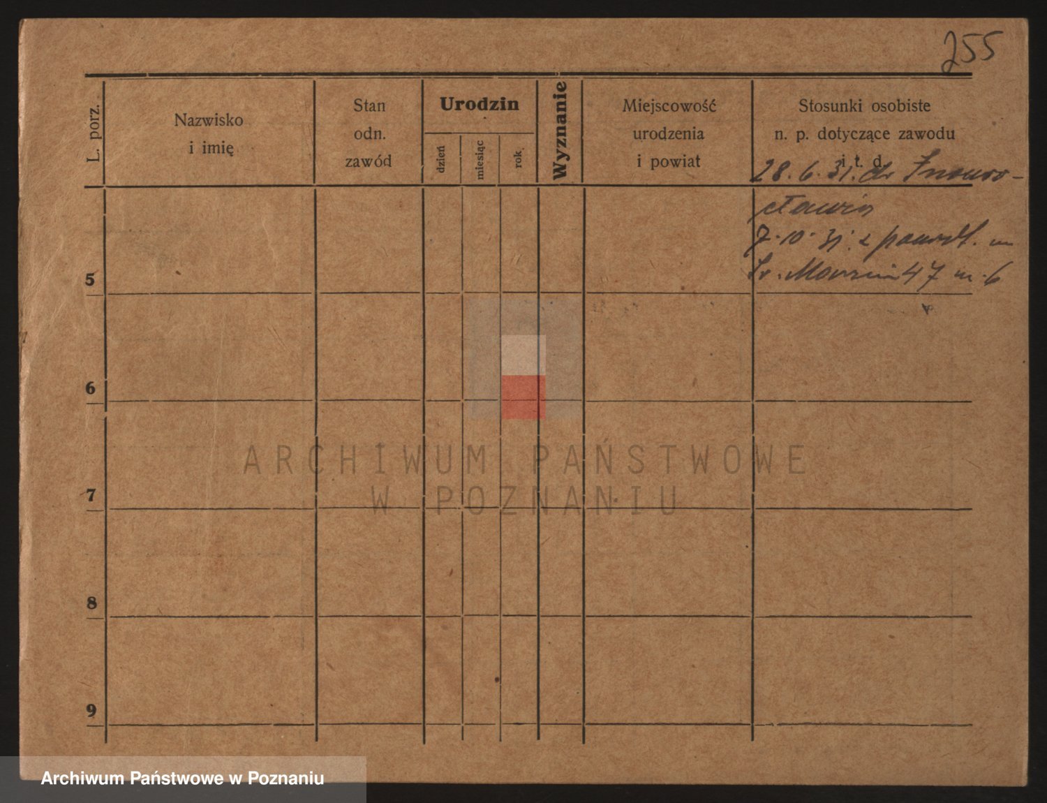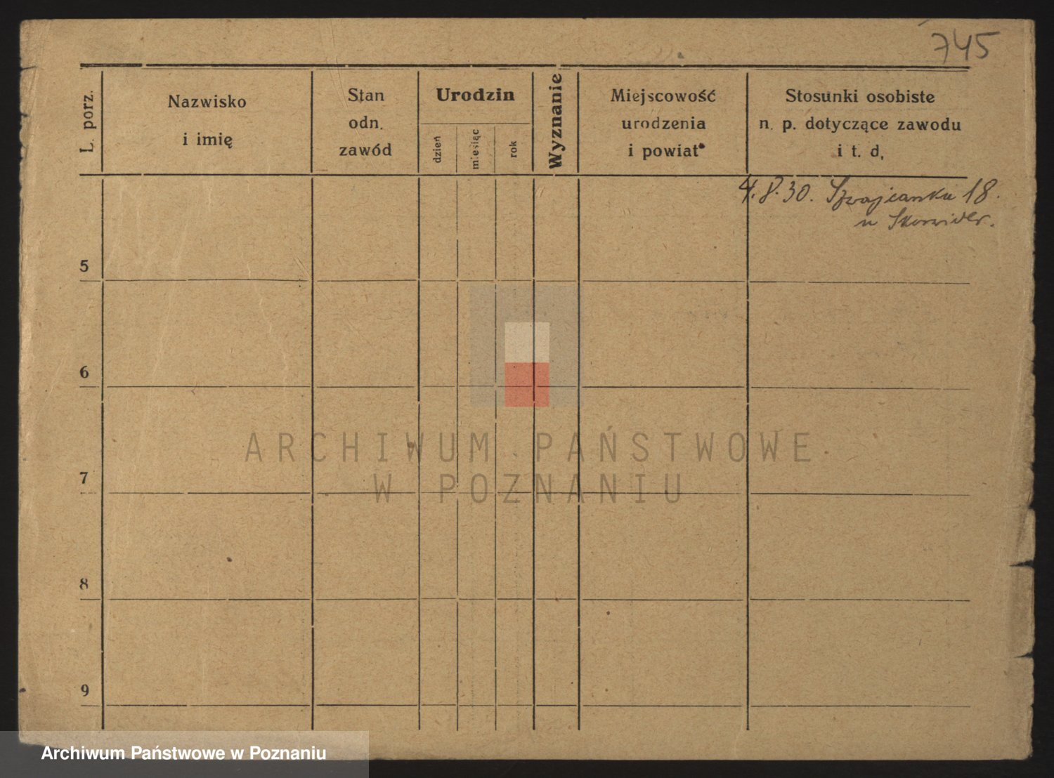 Podgląd karty osobowej dostępny jest po kliknięciu na nazwisko lub ikonkę karty. Można dokonywać powiększenia (ikony na górze) lub przechodzić między kolejnymi skanami (strzałki po bokach).
