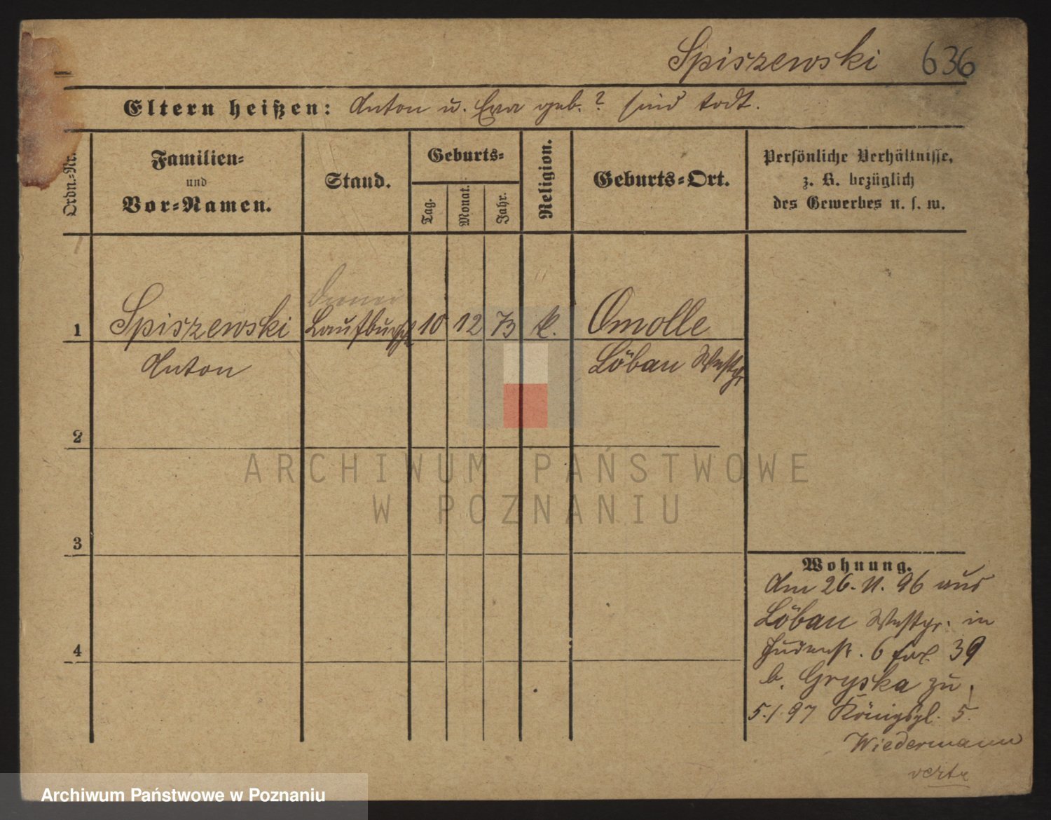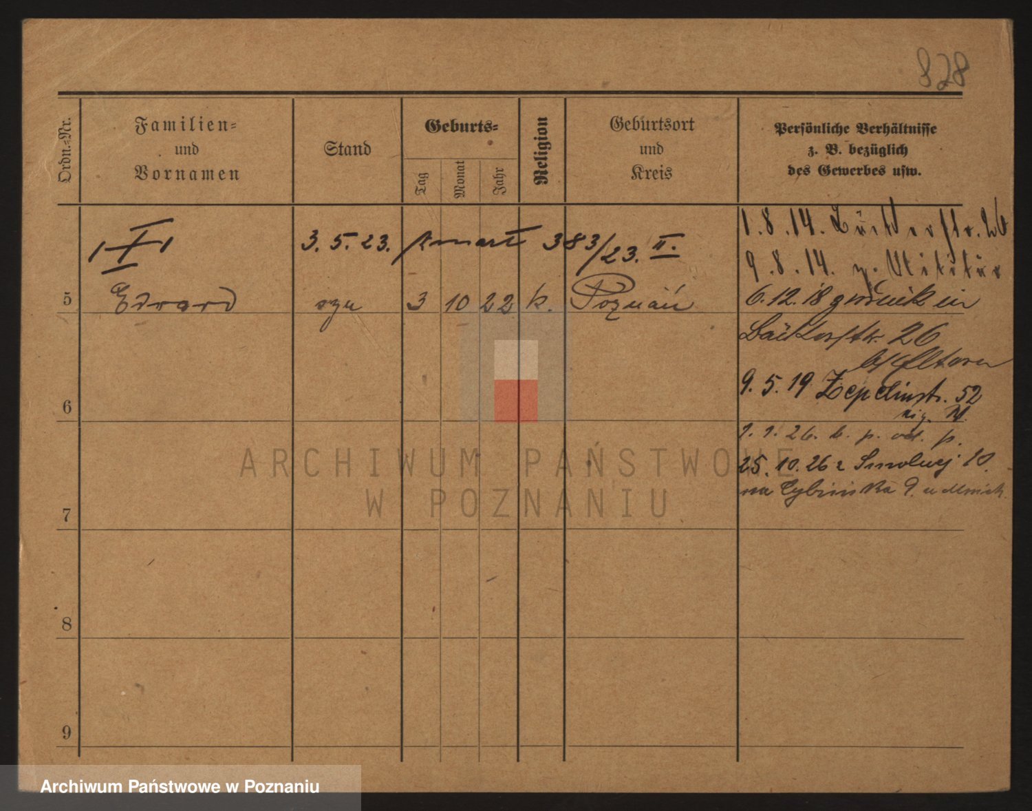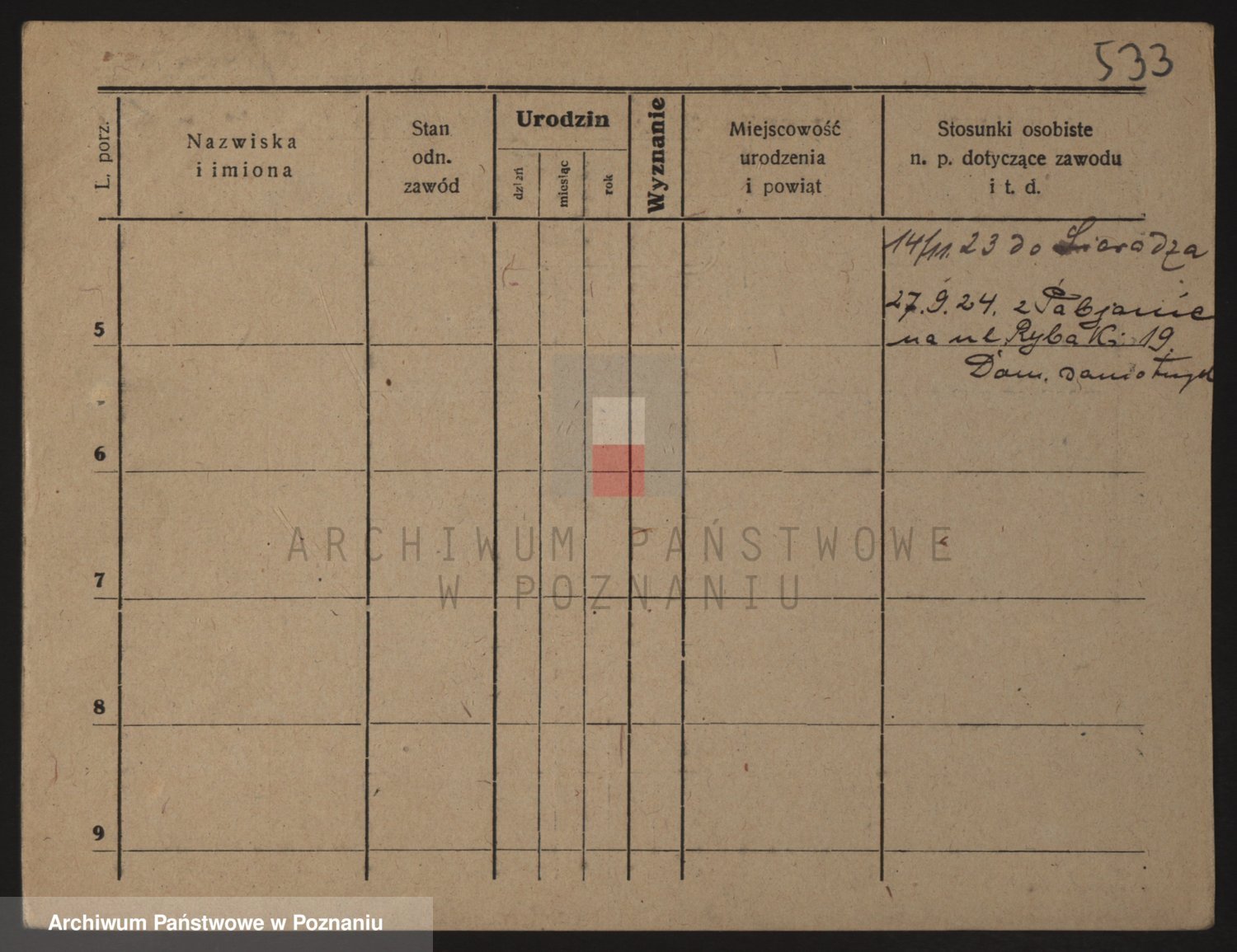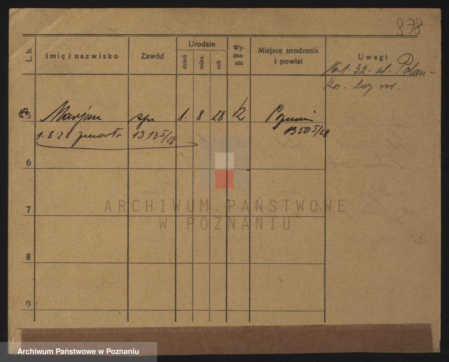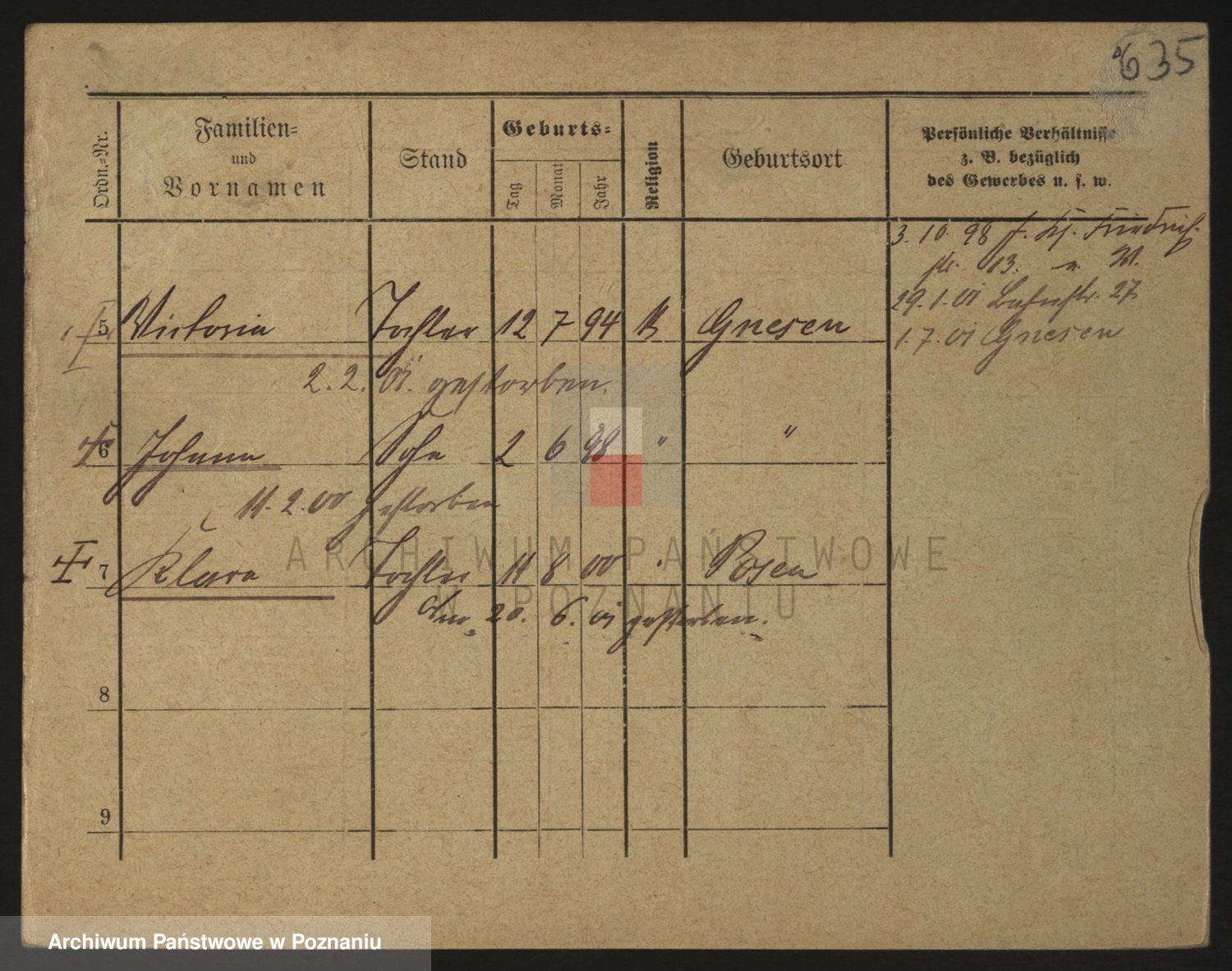 Podgląd karty osobowej dostępny jest po kliknięciu na nazwisko lub ikonkę karty. Można dokonywać powiększenia (ikony na górze) lub przechodzić między kolejnymi skanami (strzałki po bokach).
