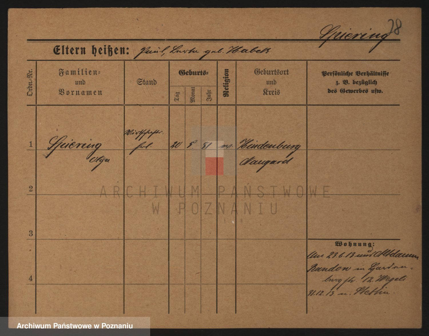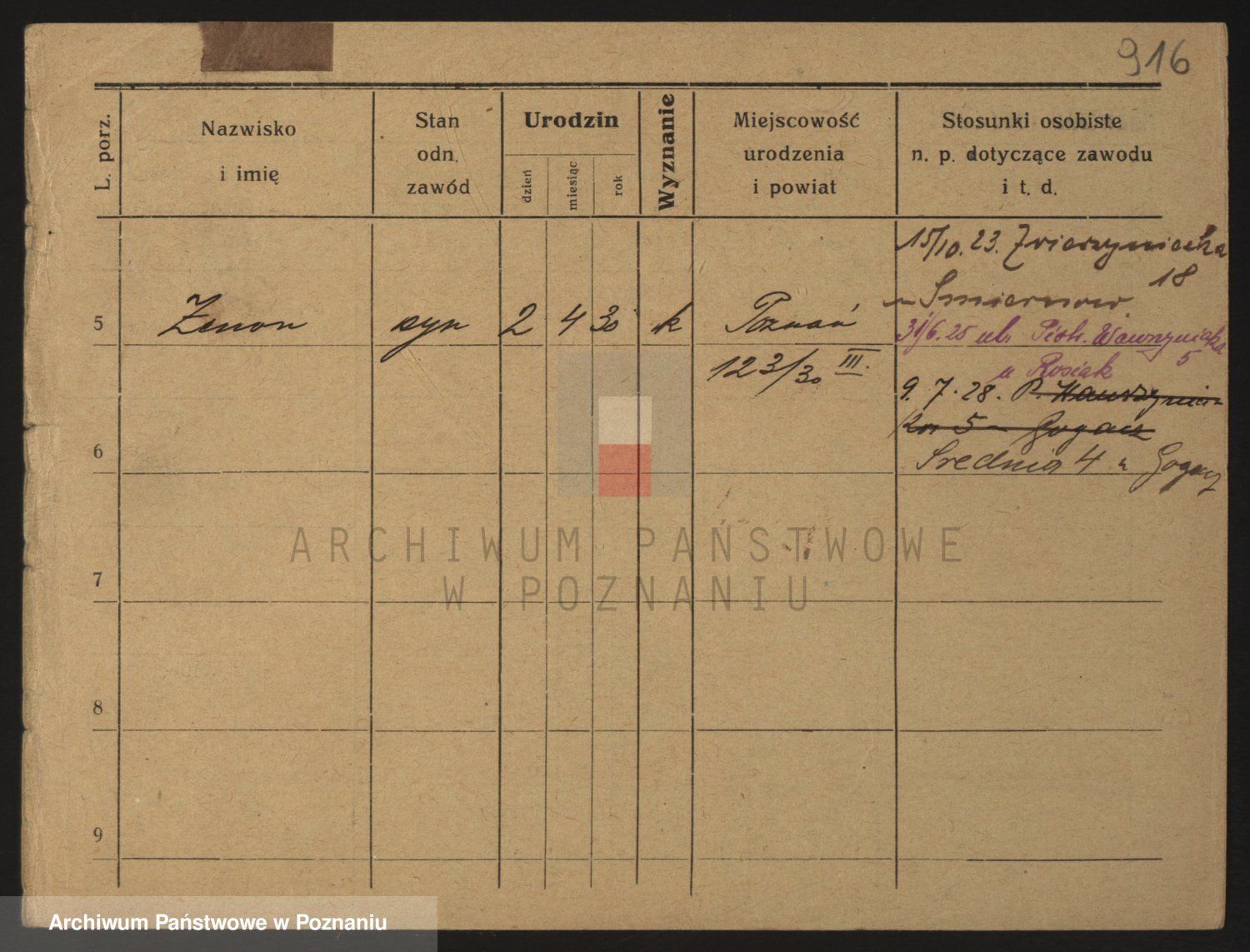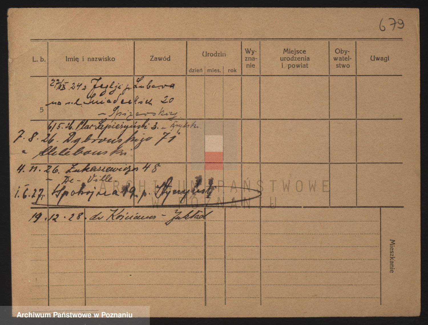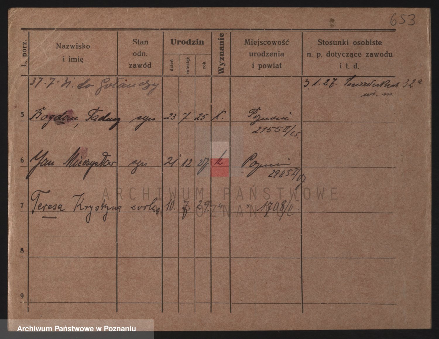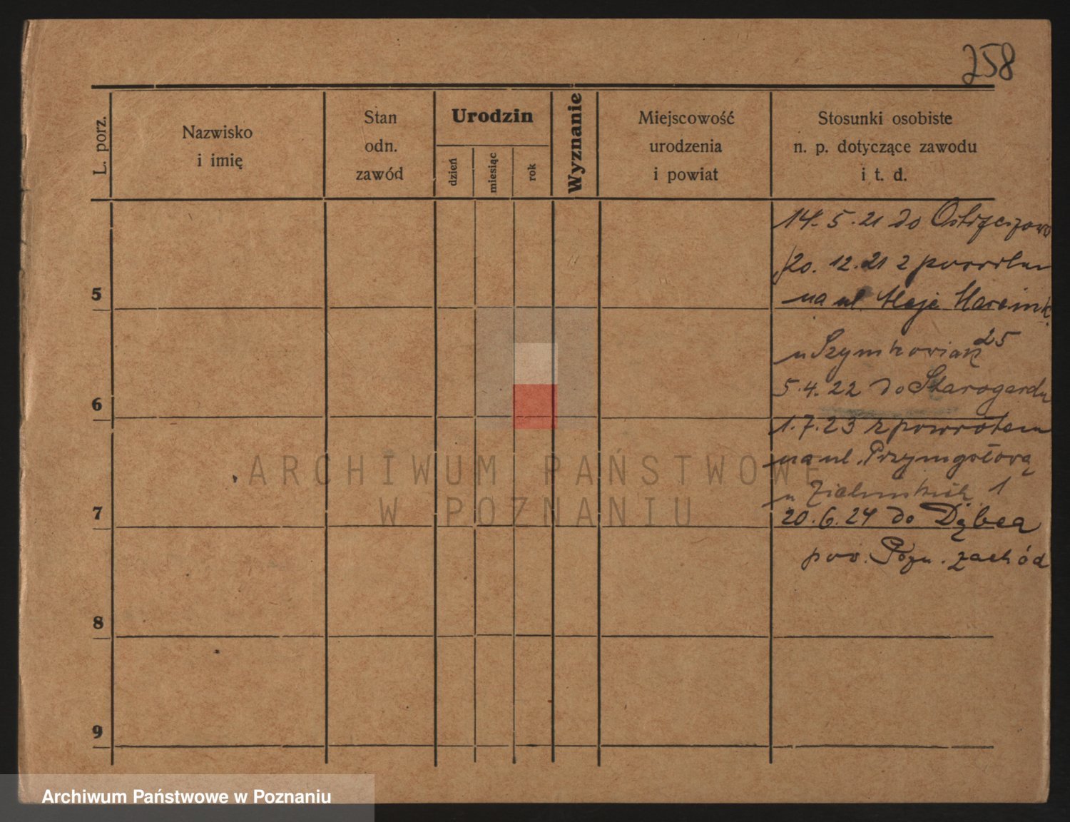 Podgląd karty osobowej dostępny jest po kliknięciu na nazwisko lub ikonkę karty. Można dokonywać powiększenia (ikony na górze) lub przechodzić między kolejnymi skanami (strzałki po bokach).