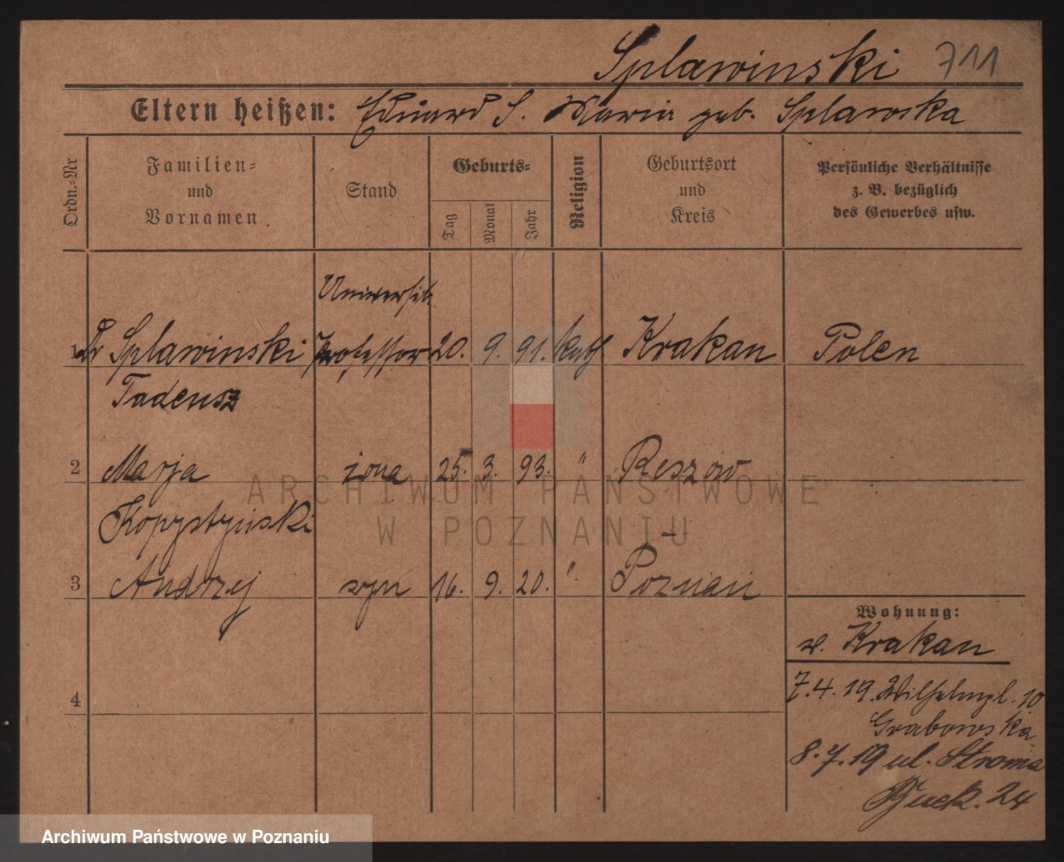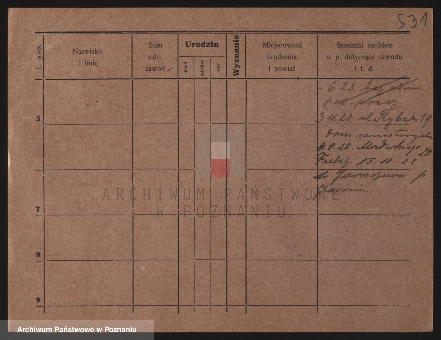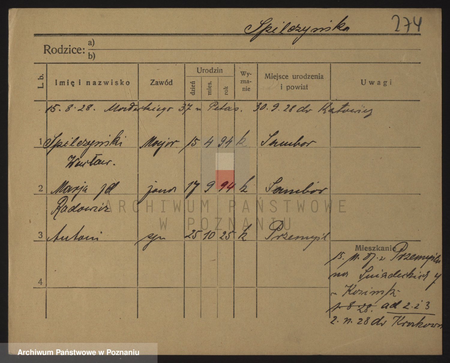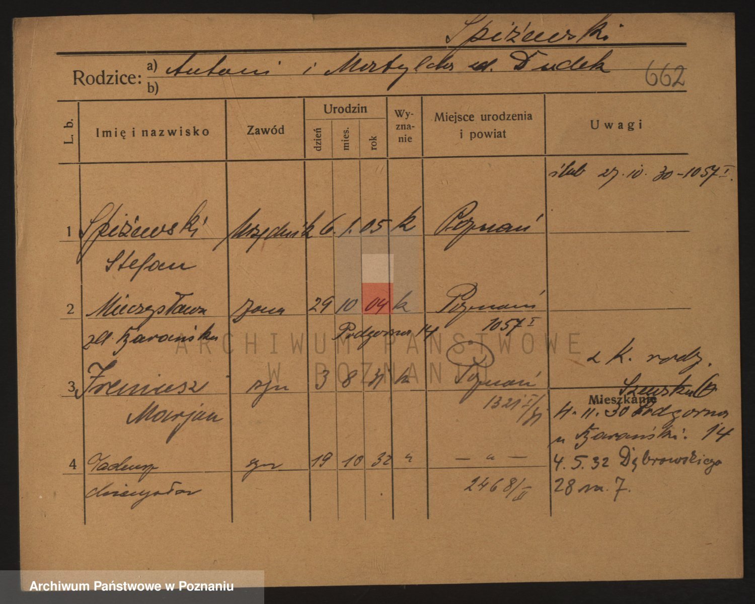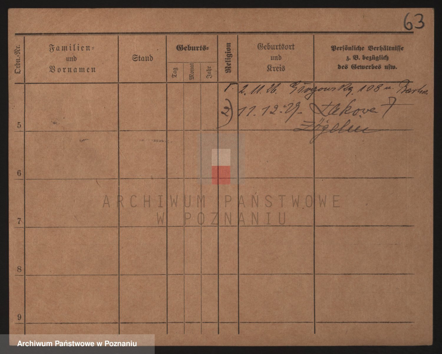 Podgląd karty osobowej dostępny jest po kliknięciu na nazwisko lub ikonkę karty. Można dokonywać powiększenia (ikony na górze) lub przechodzić między kolejnymi skanami (strzałki po bokach).