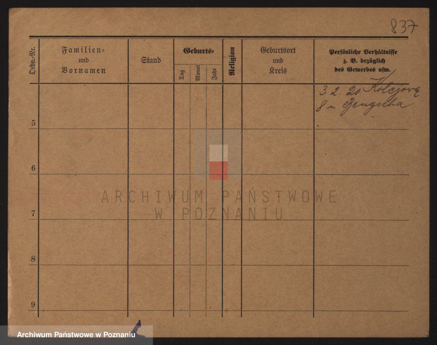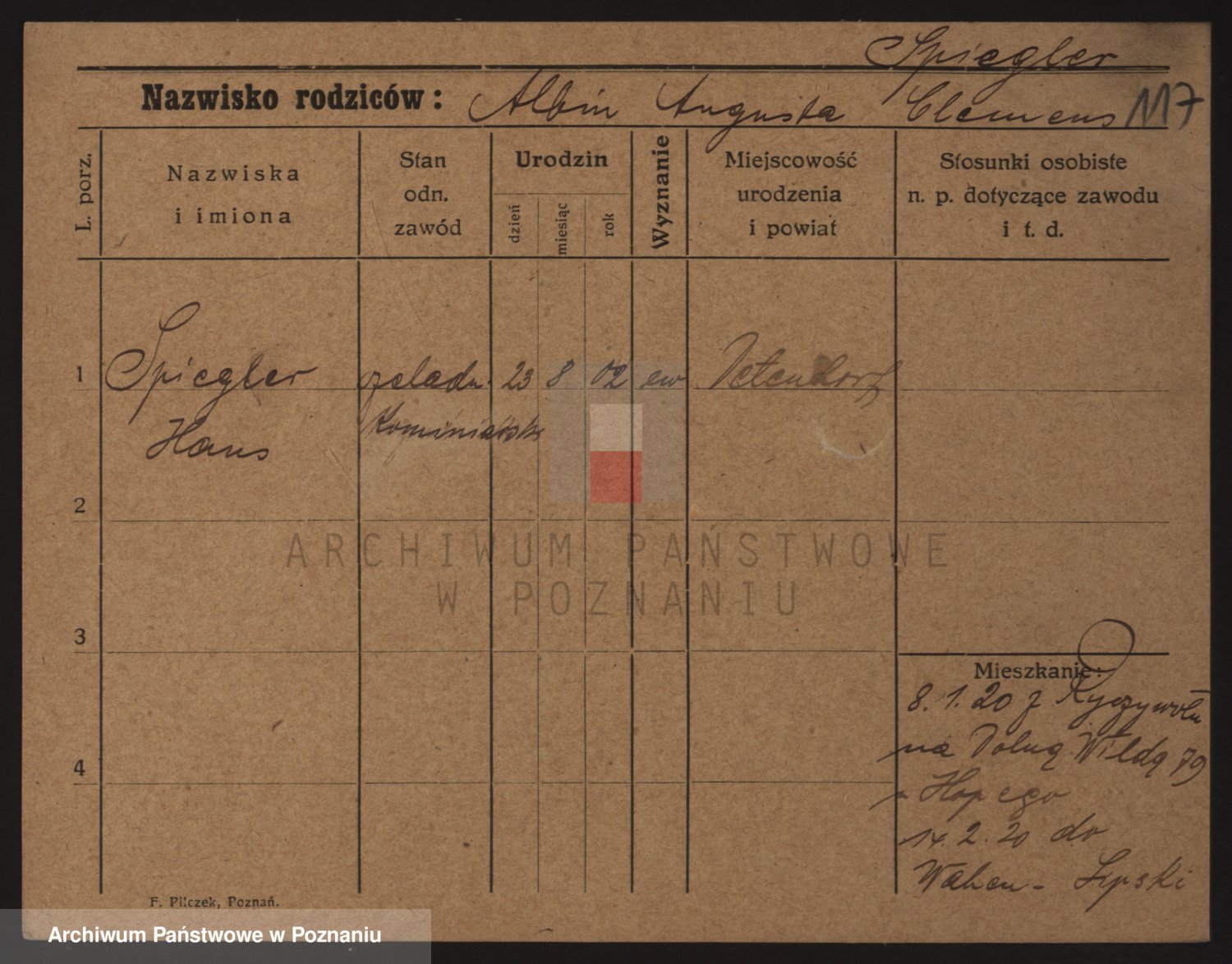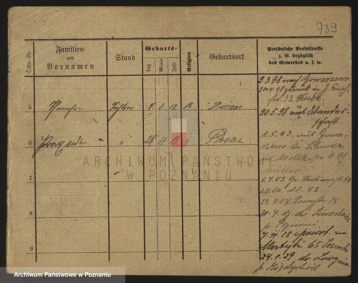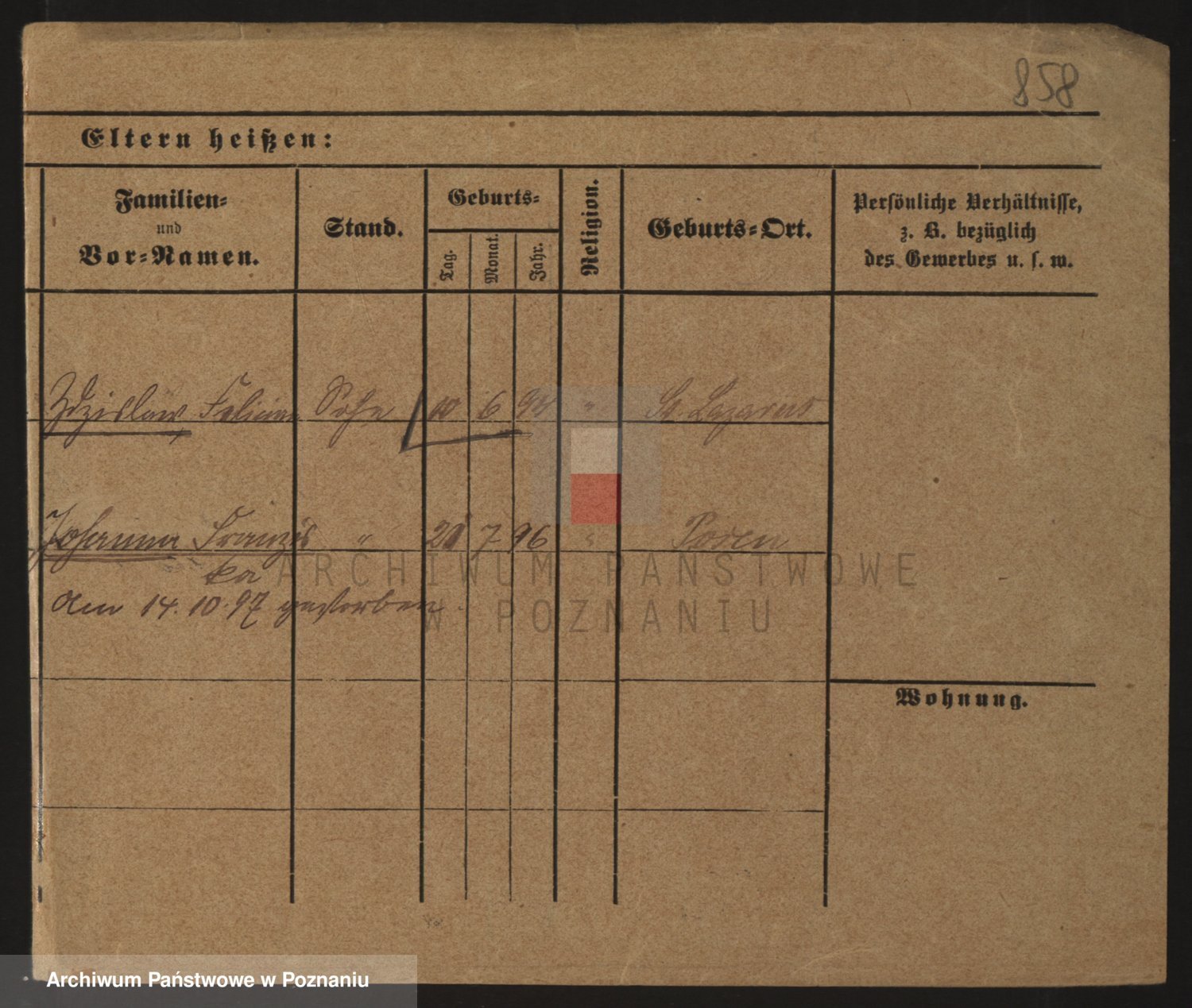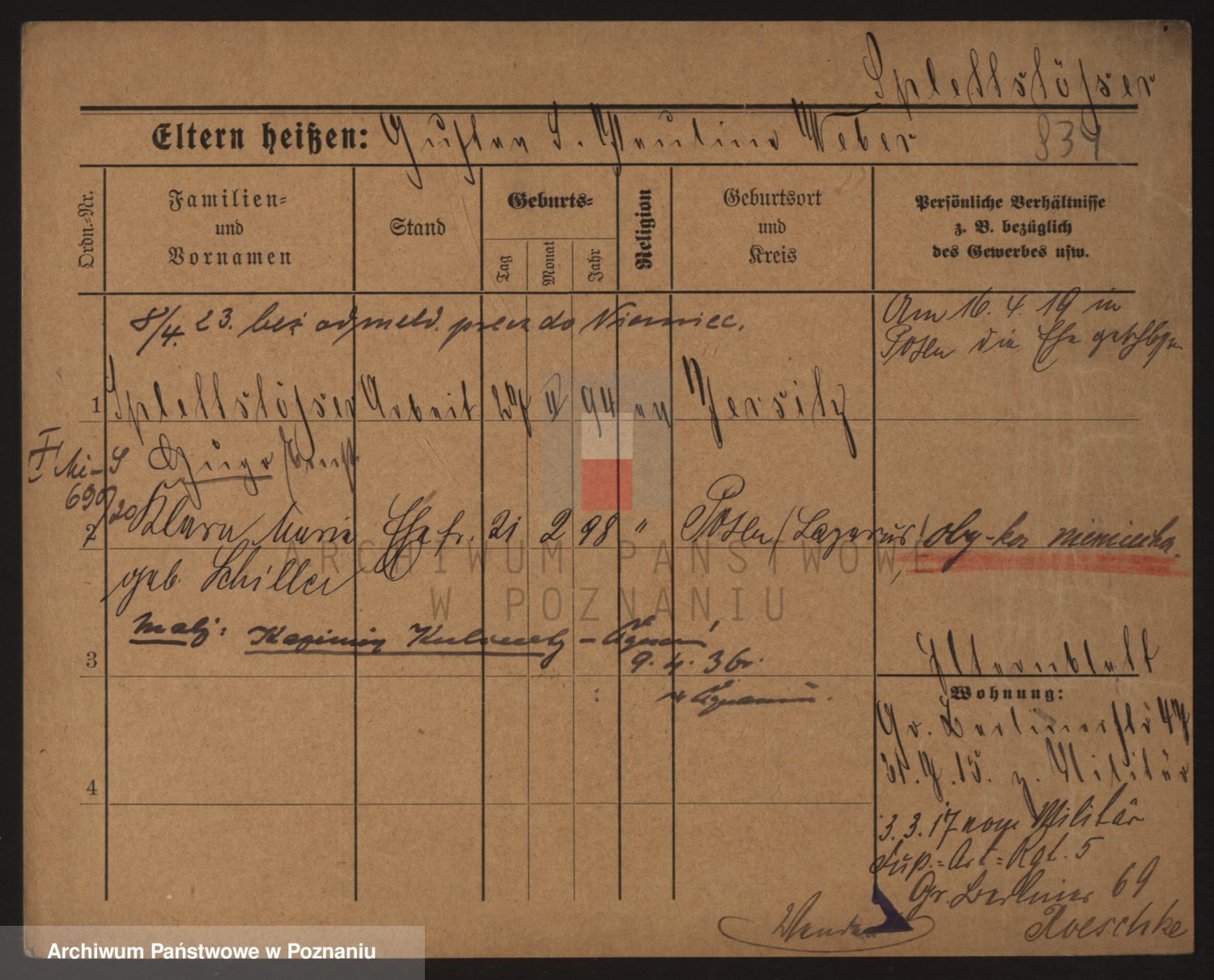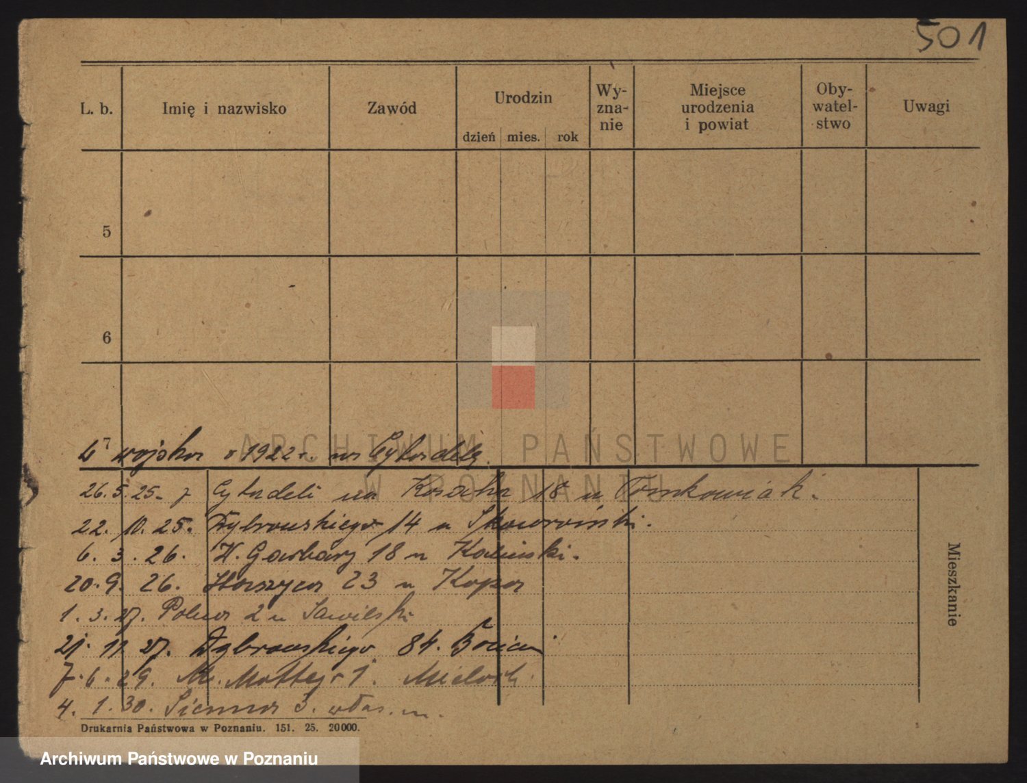 Podgląd karty osobowej dostępny jest po kliknięciu na nazwisko lub ikonkę karty. Można dokonywać powiększenia (ikony na górze) lub przechodzić między kolejnymi skanami (strzałki po bokach).