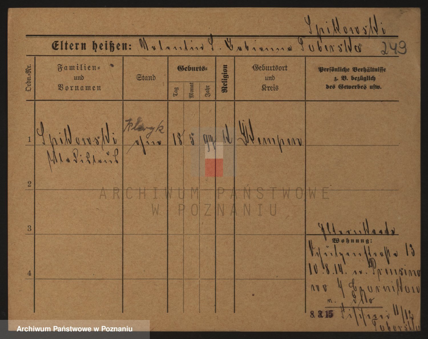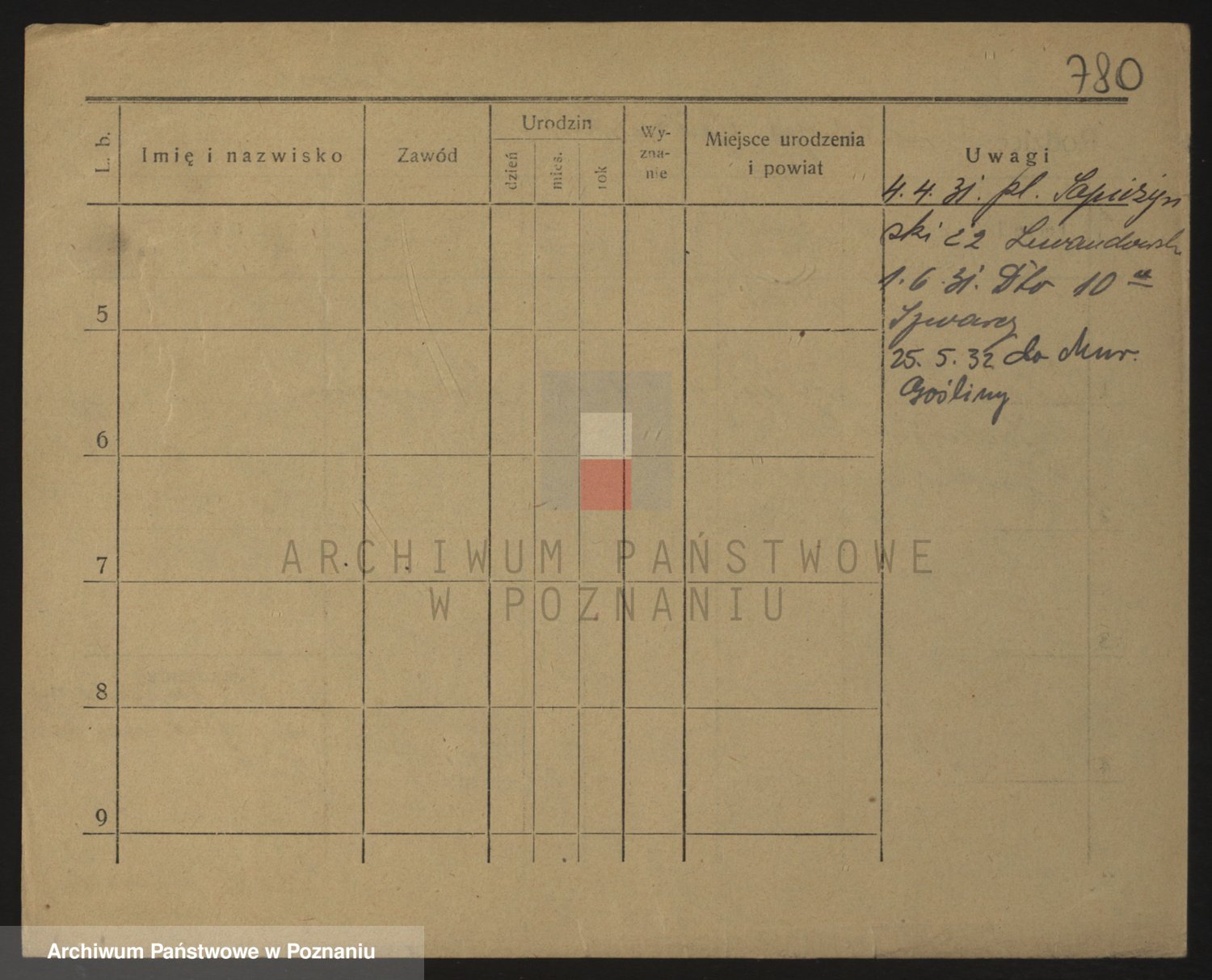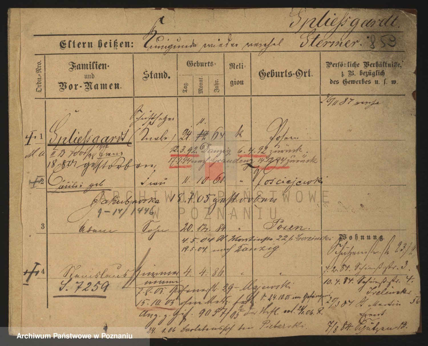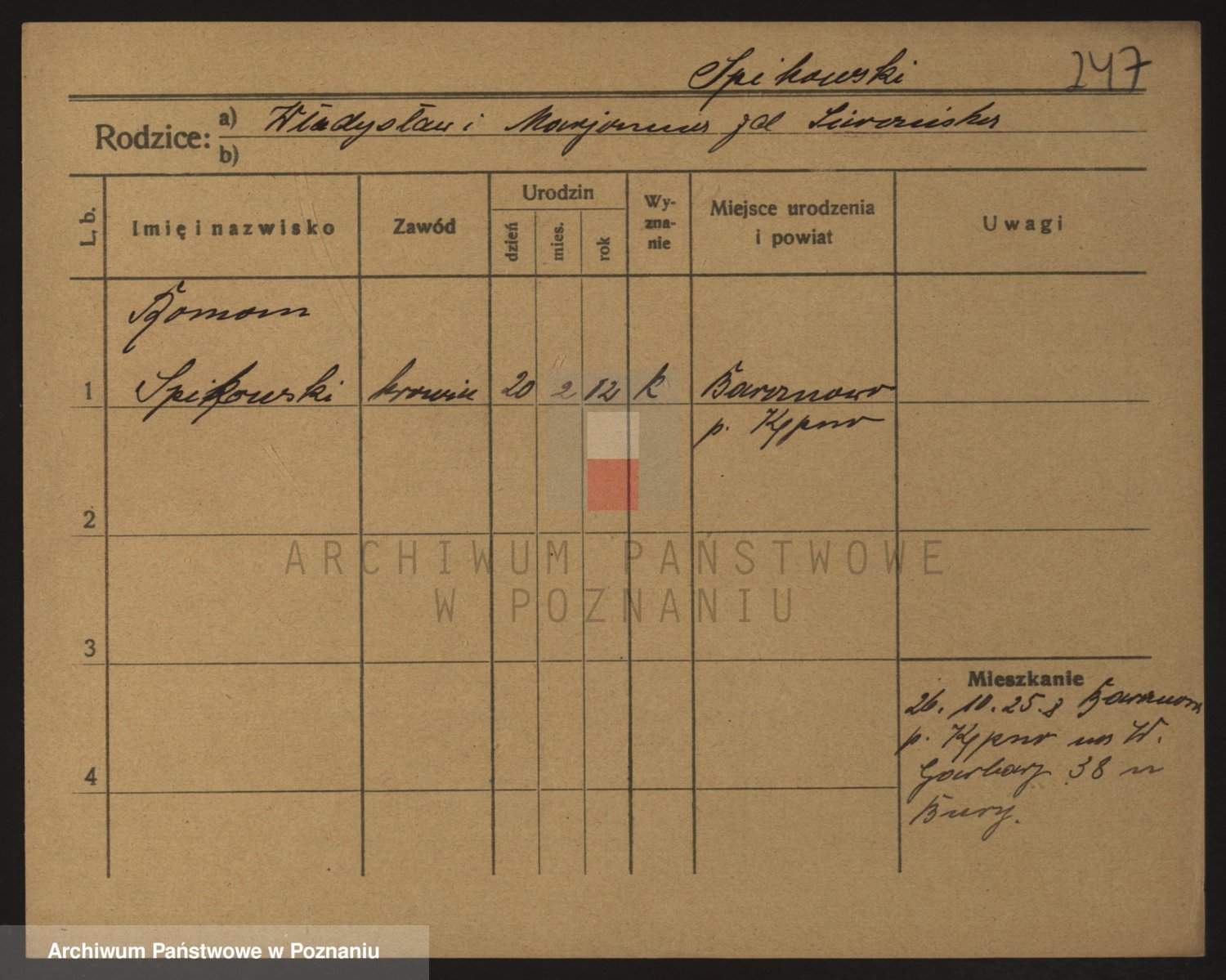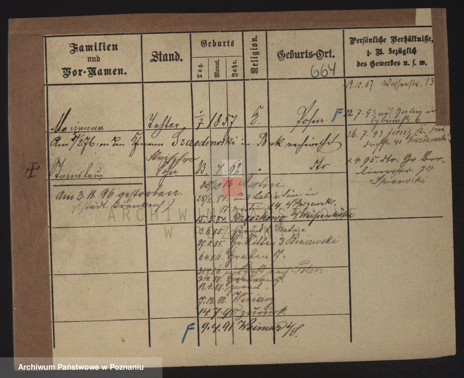 Podgląd karty osobowej dostępny jest po kliknięciu na nazwisko lub ikonkę karty. Można dokonywać powiększenia (ikony na górze) lub przechodzić między kolejnymi skanami (strzałki po bokach).