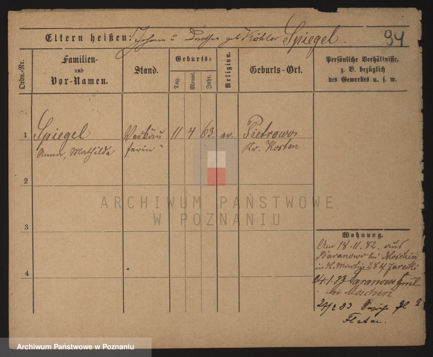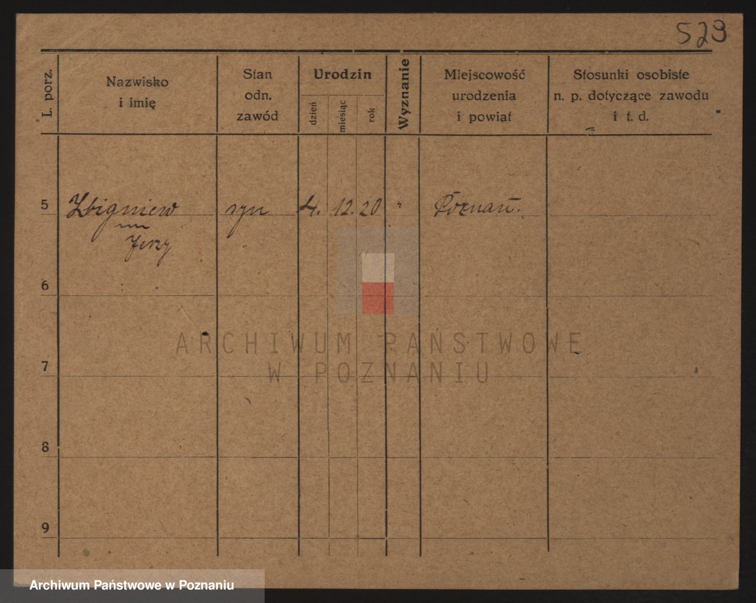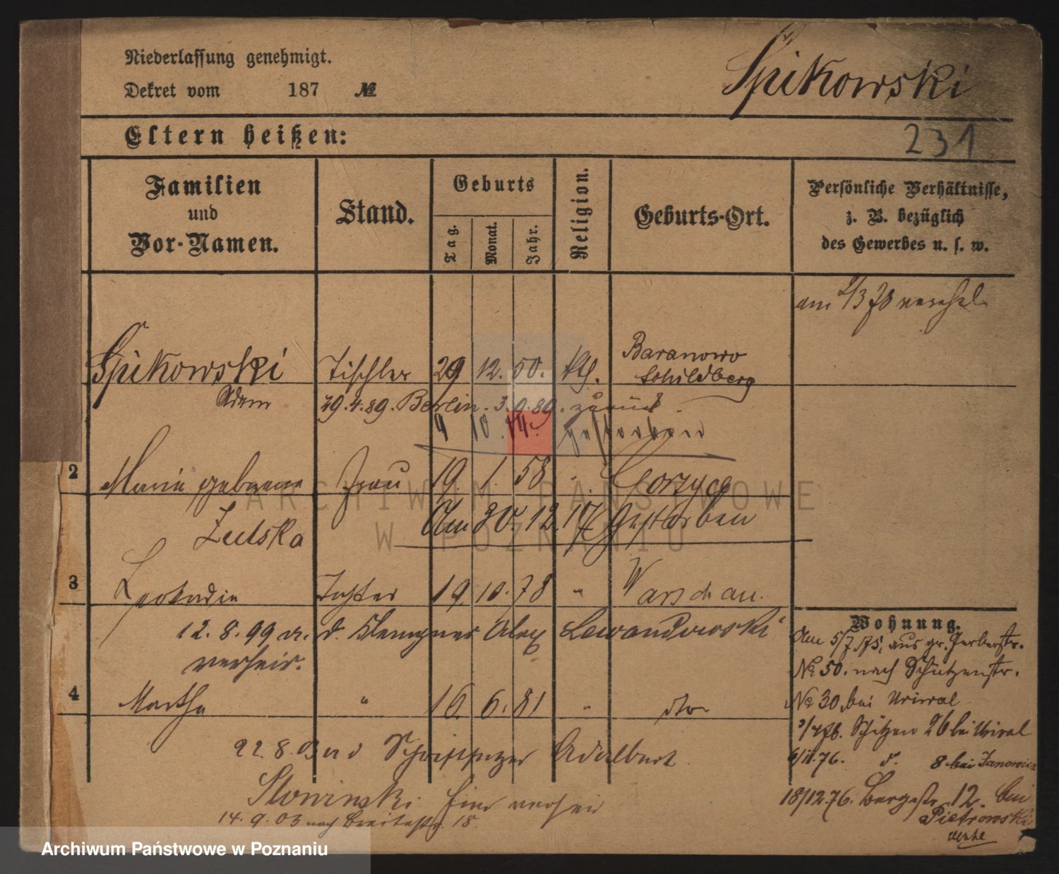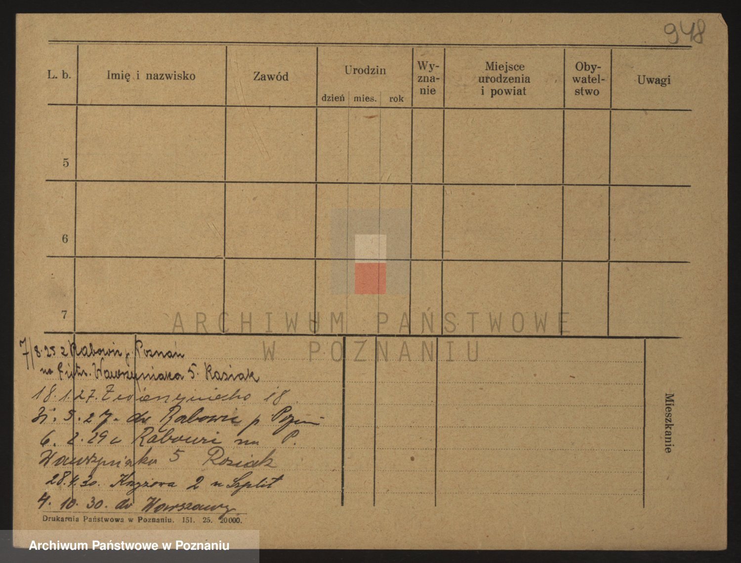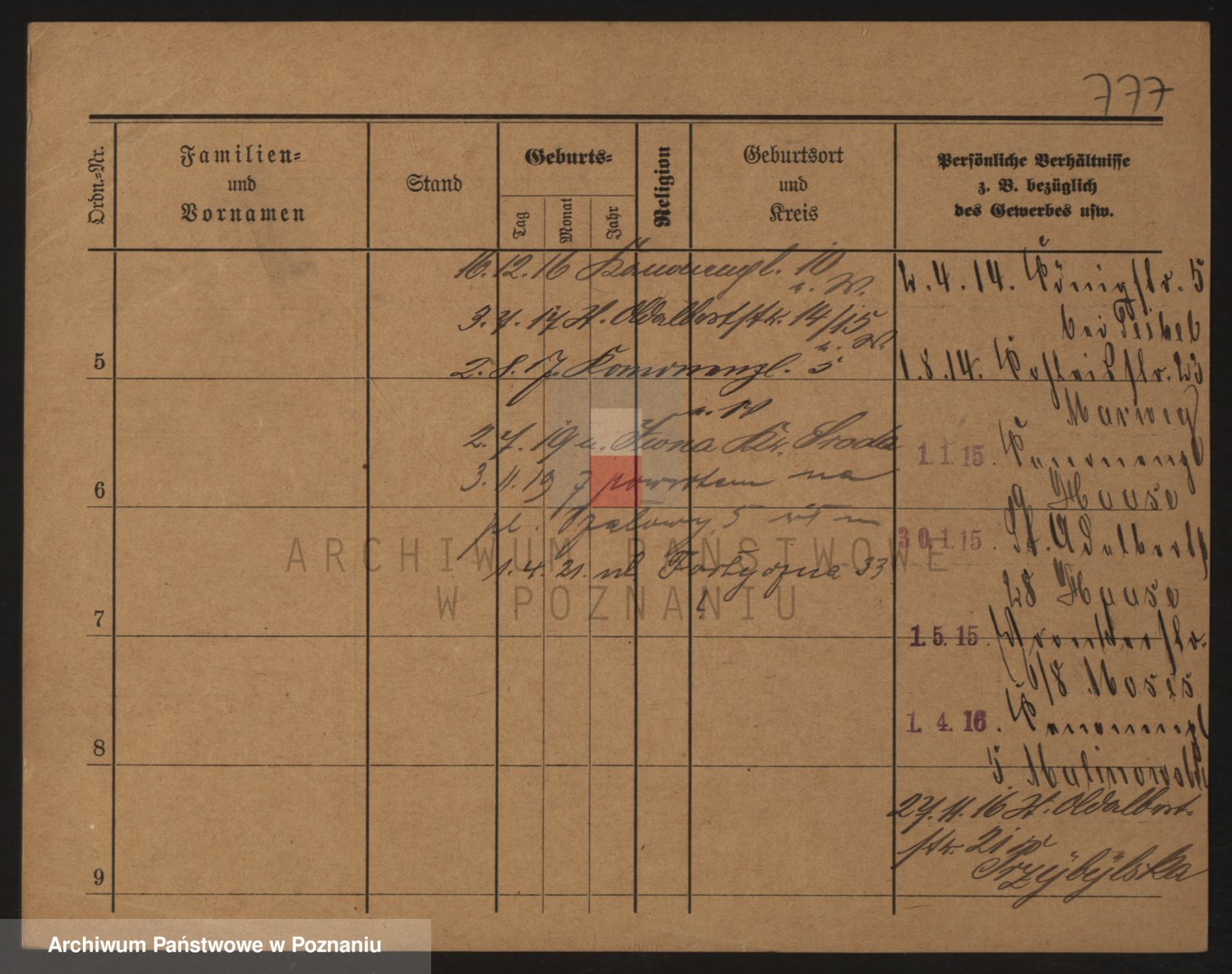 Podgląd karty osobowej dostępny jest po kliknięciu na nazwisko lub ikonkę karty. Można dokonywać powiększenia (ikony na górze) lub przechodzić między kolejnymi skanami (strzałki po bokach).