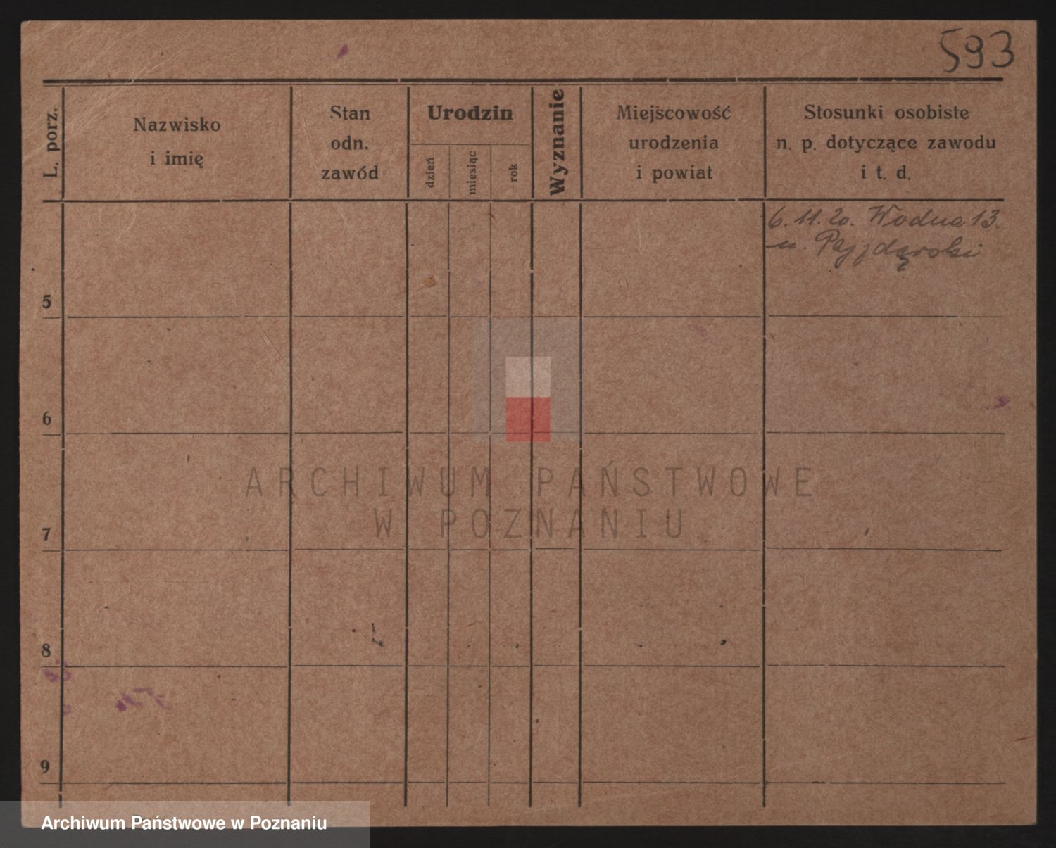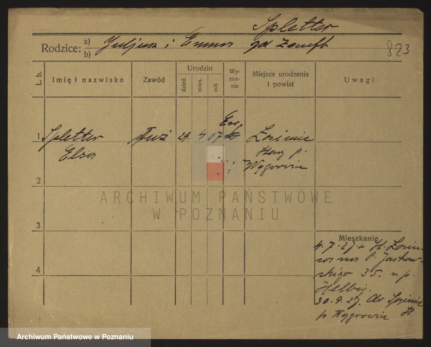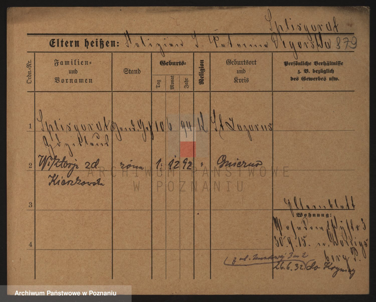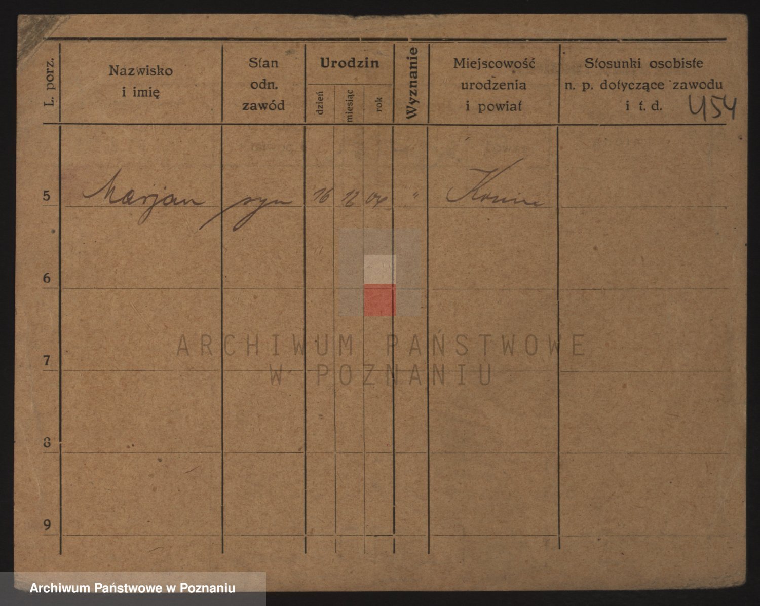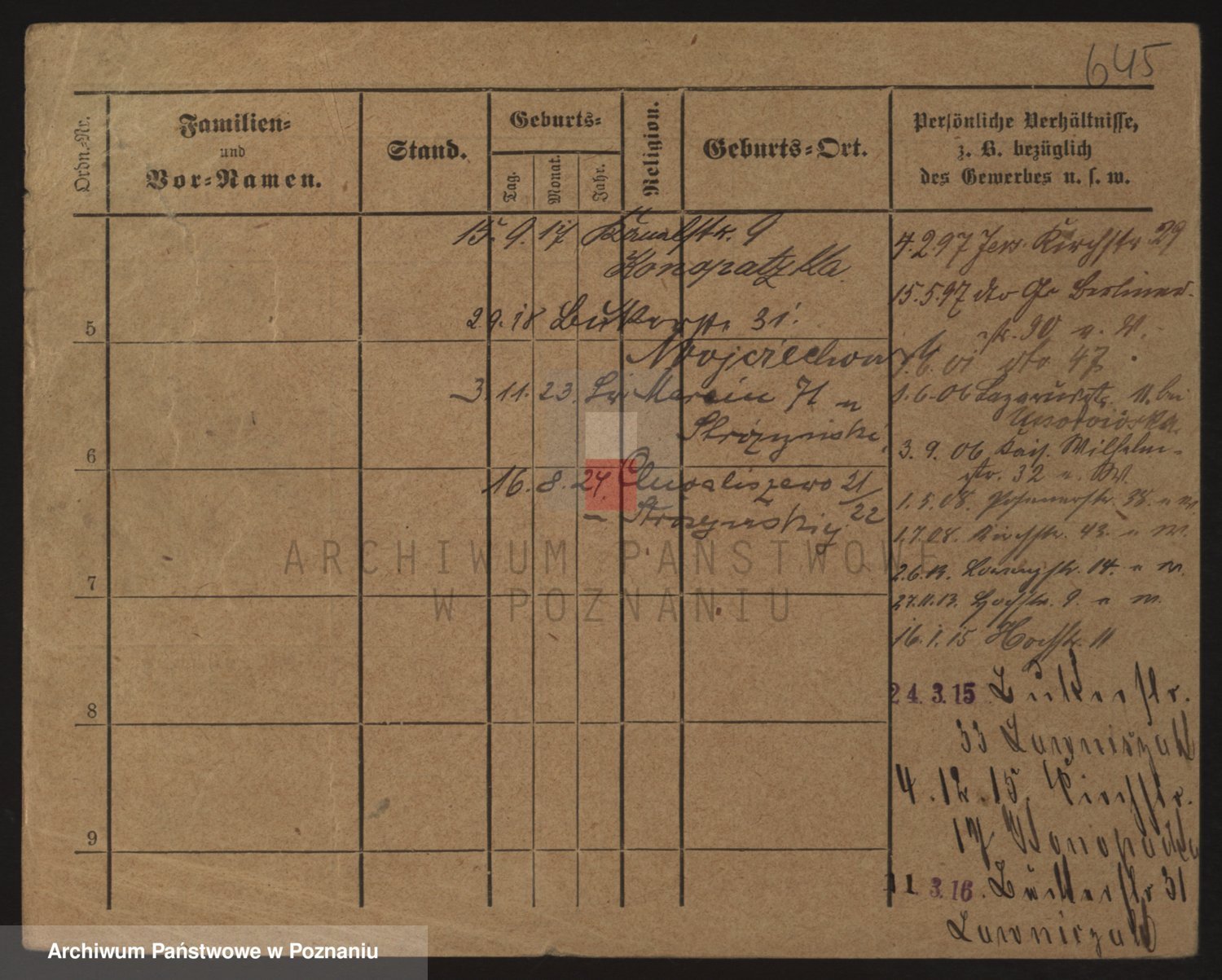 Podgląd karty osobowej dostępny jest po kliknięciu na nazwisko lub ikonkę karty. Można dokonywać powiększenia (ikony na górze) lub przechodzić między kolejnymi skanami (strzałki po bokach).