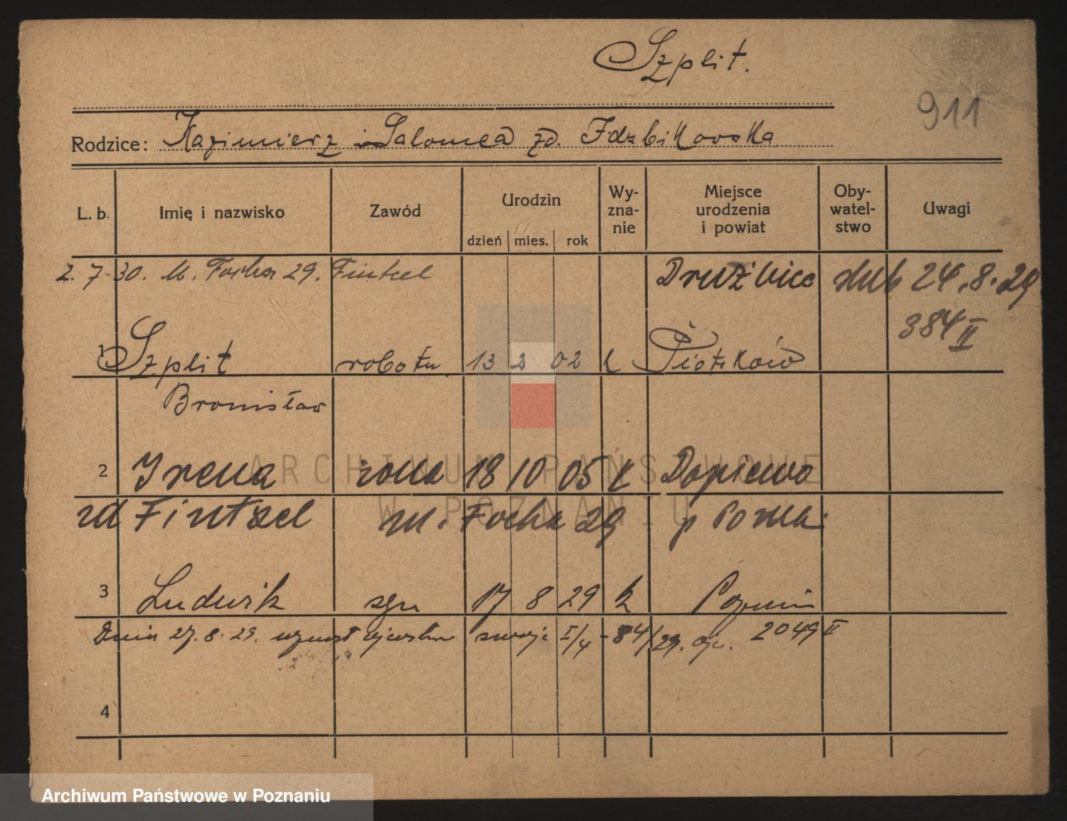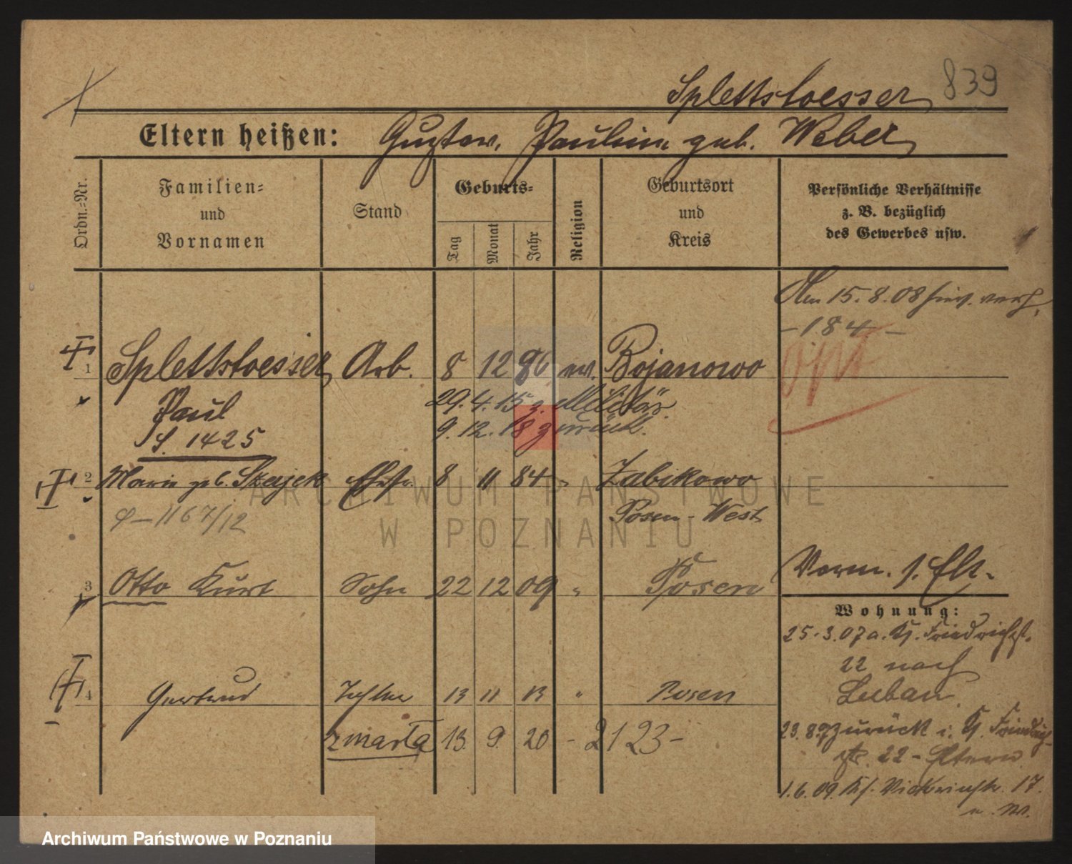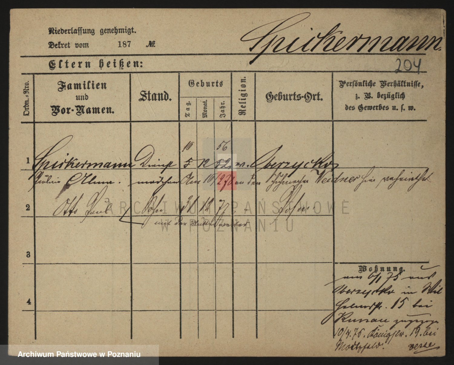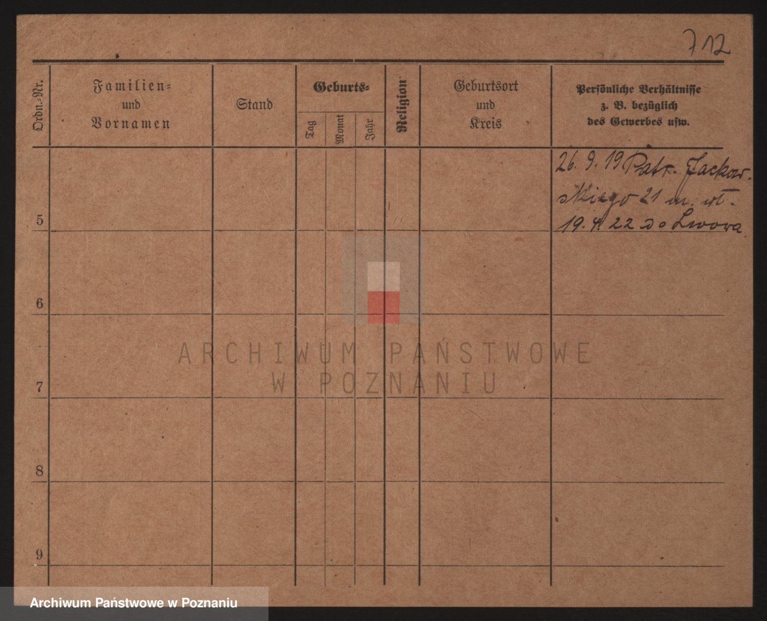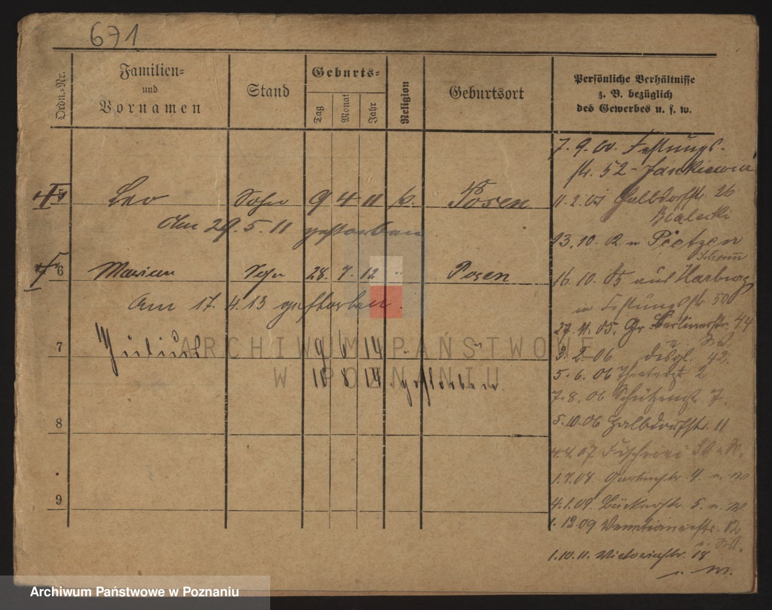 Podgląd karty osobowej dostępny jest po kliknięciu na nazwisko lub ikonkę karty. Można dokonywać powiększenia (ikony na górze) lub przechodzić między kolejnymi skanami (strzałki po bokach).