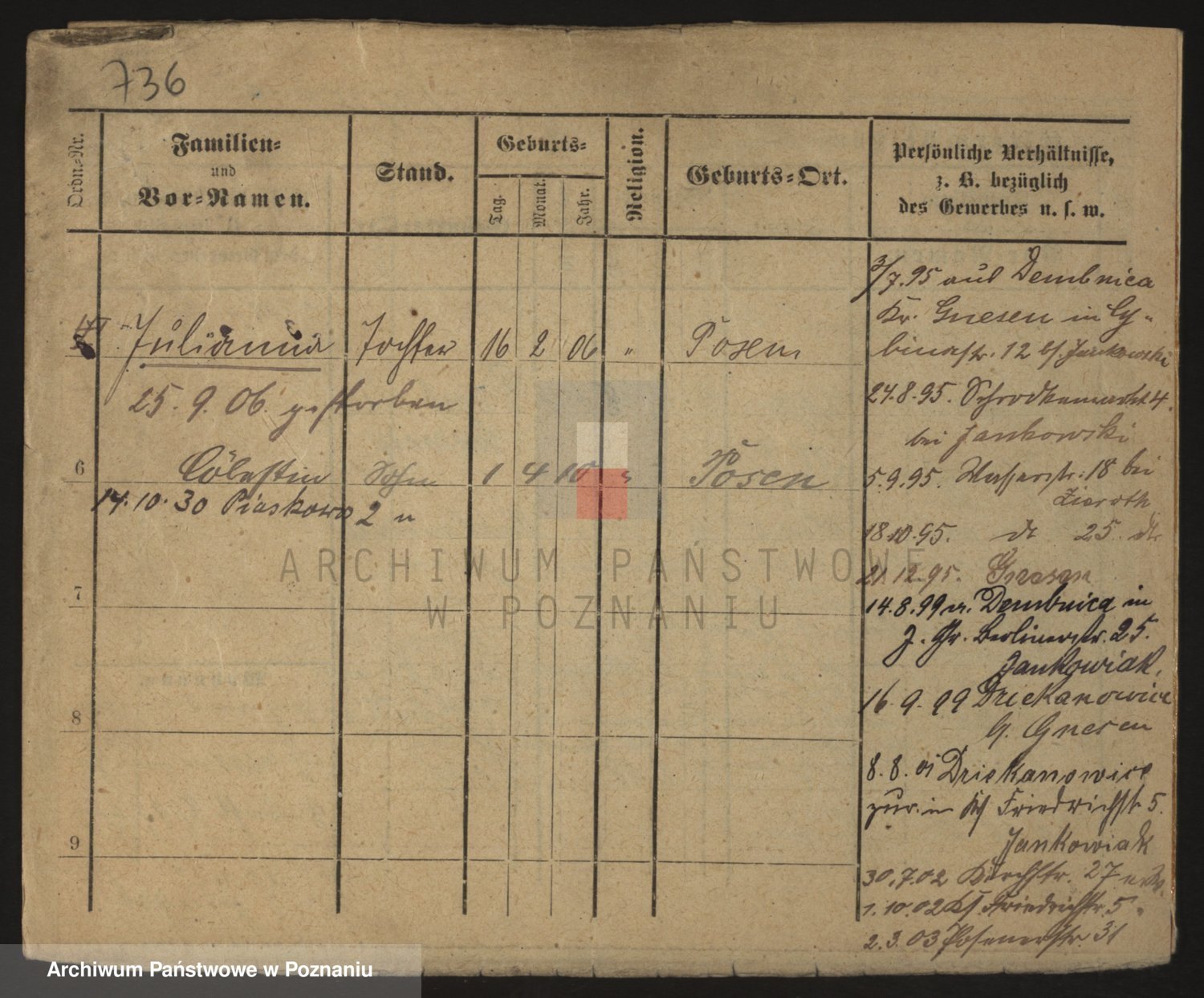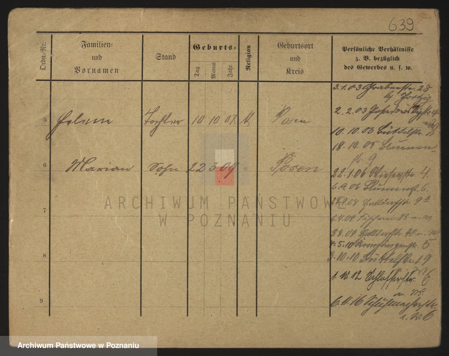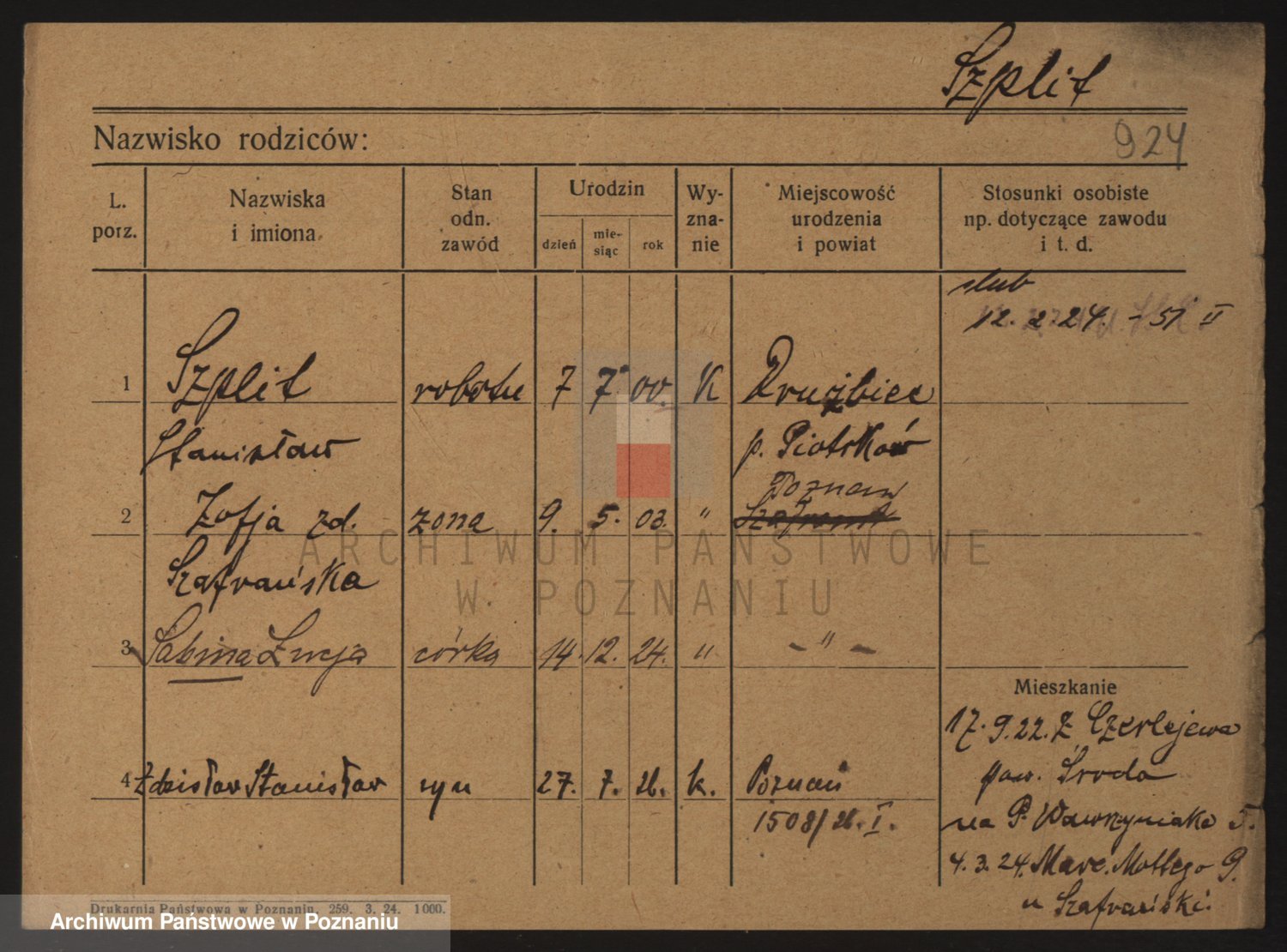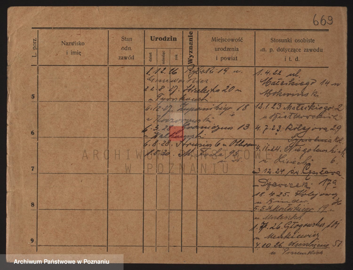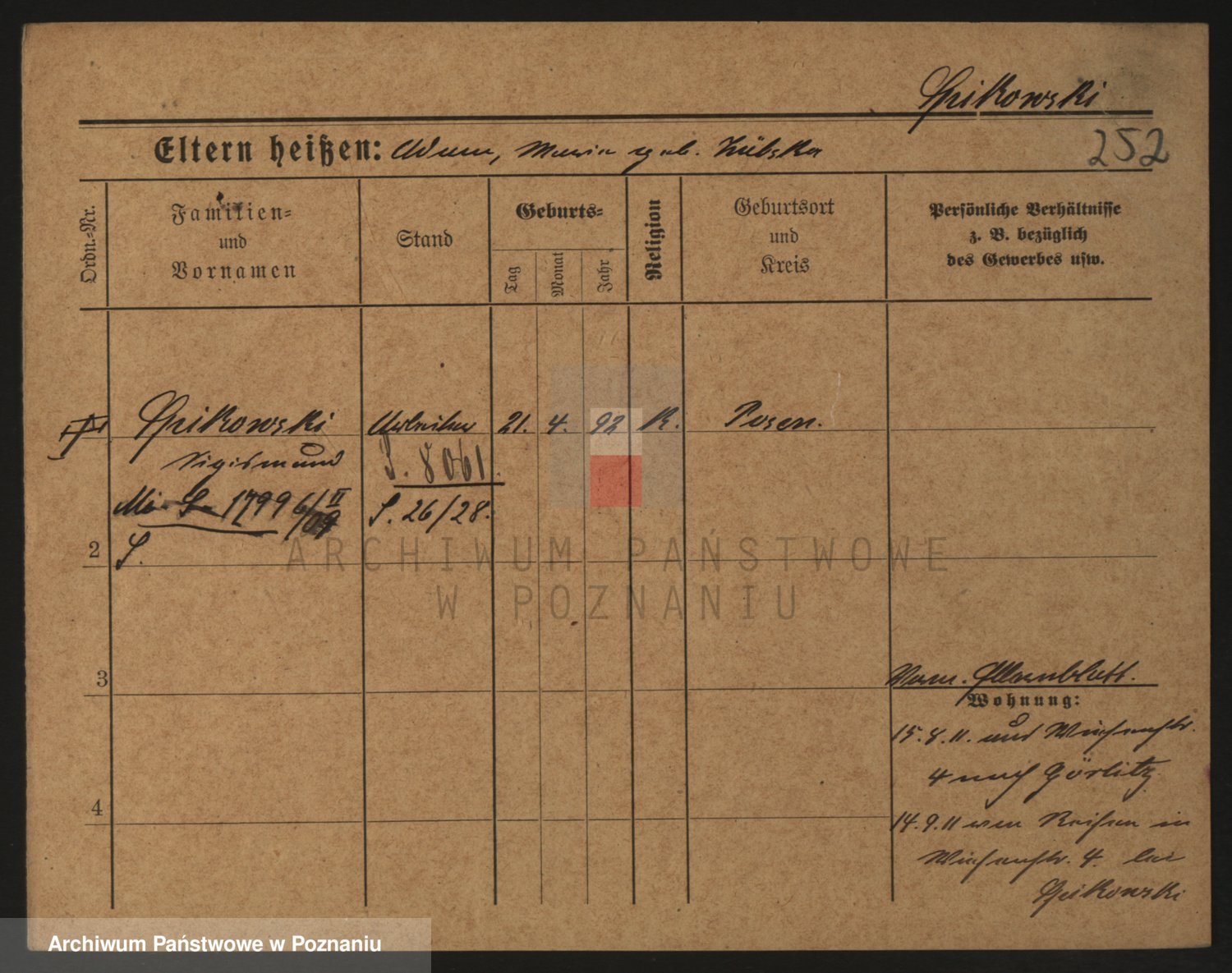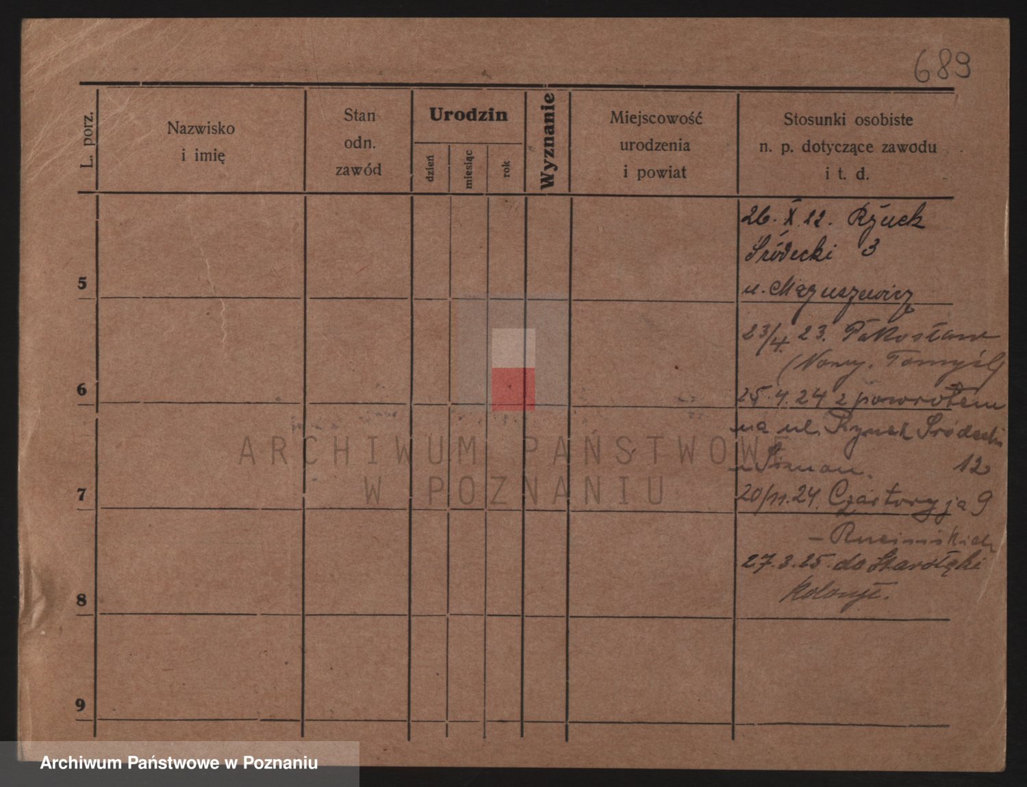 Podgląd karty osobowej dostępny jest po kliknięciu na nazwisko lub ikonkę karty. Można dokonywać powiększenia (ikony na górze) lub przechodzić między kolejnymi skanami (strzałki po bokach).