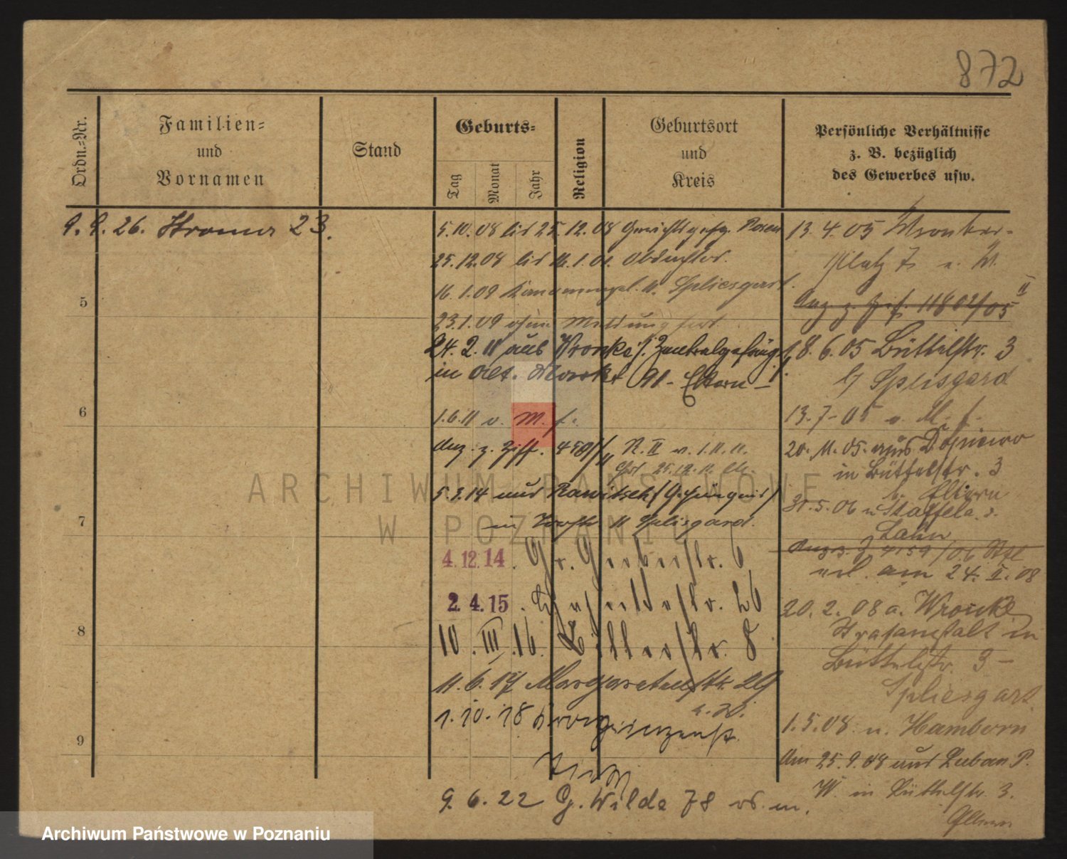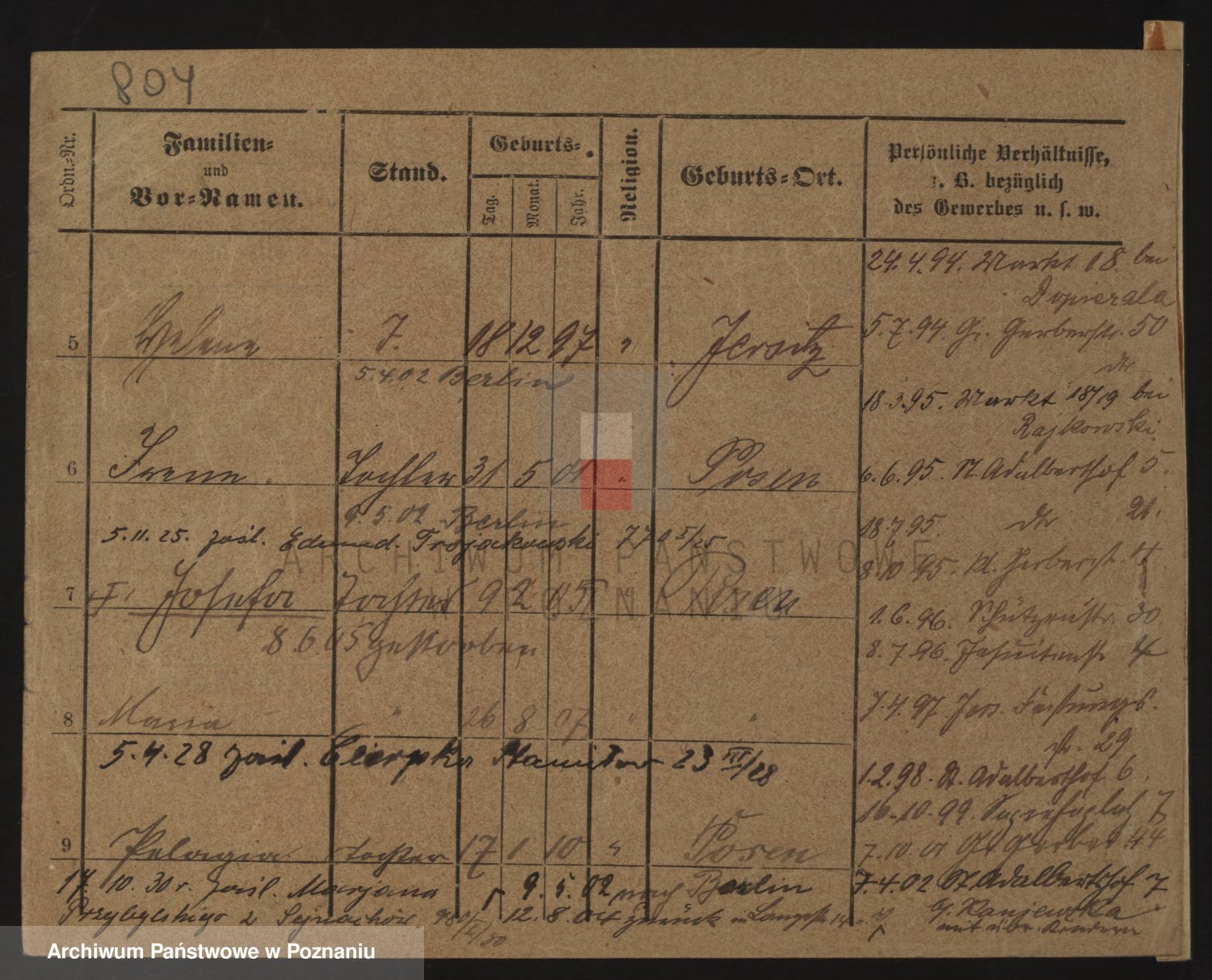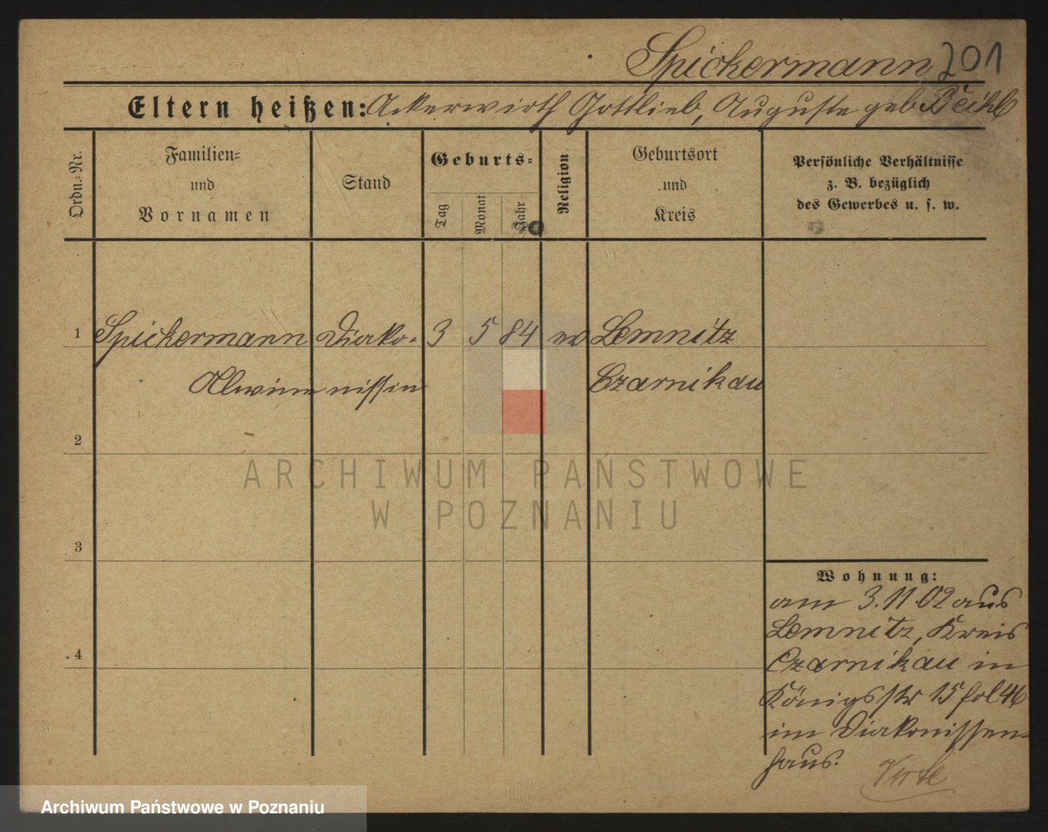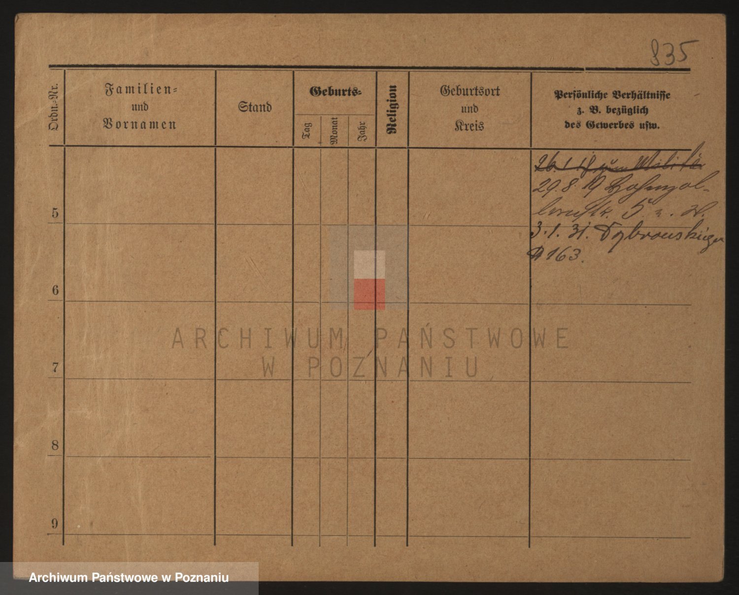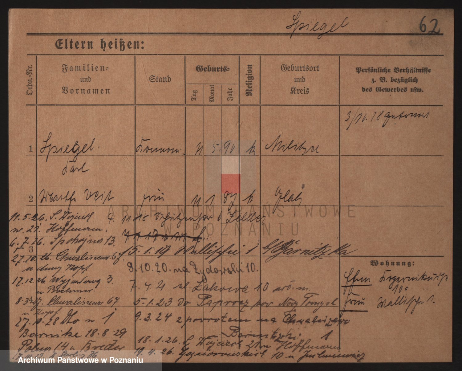 Podgląd karty osobowej dostępny jest po kliknięciu na nazwisko lub ikonkę karty. Można dokonywać powiększenia (ikony na górze) lub przechodzić między kolejnymi skanami (strzałki po bokach).