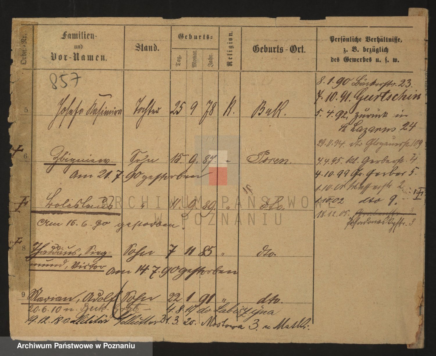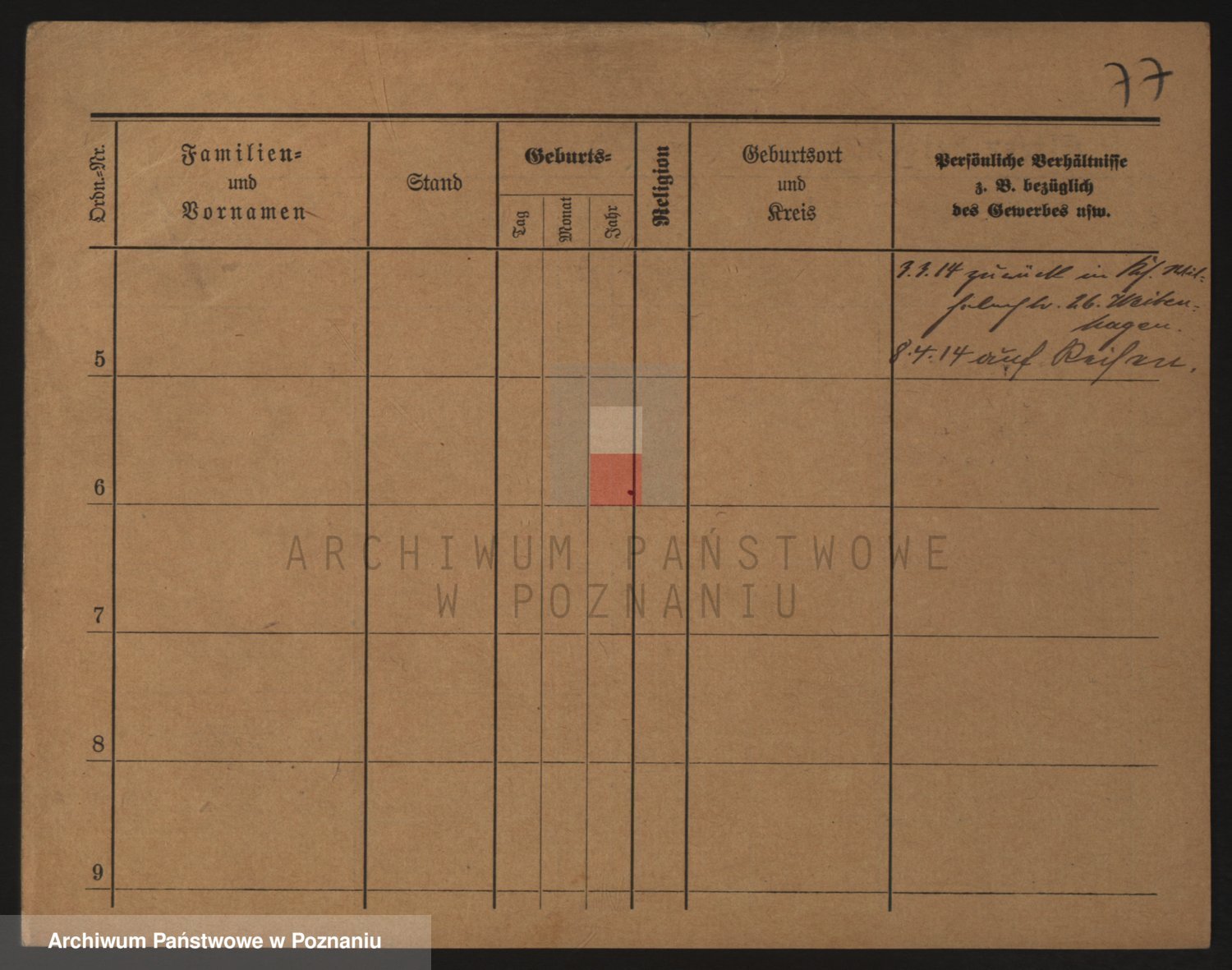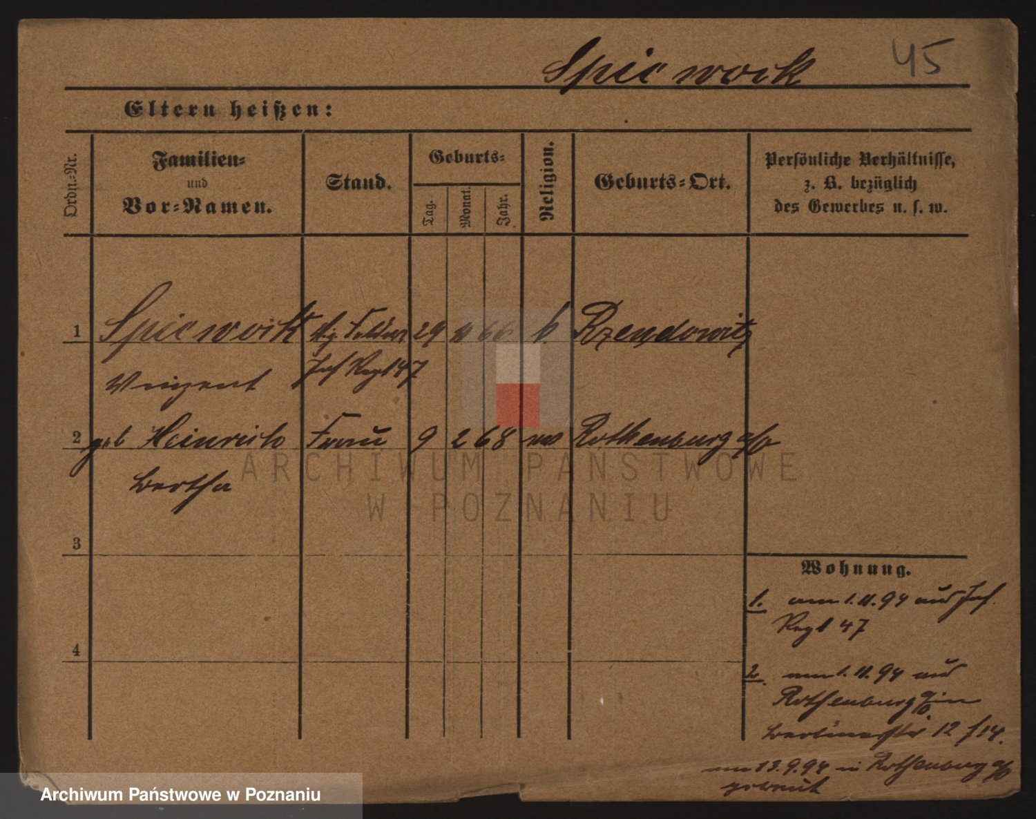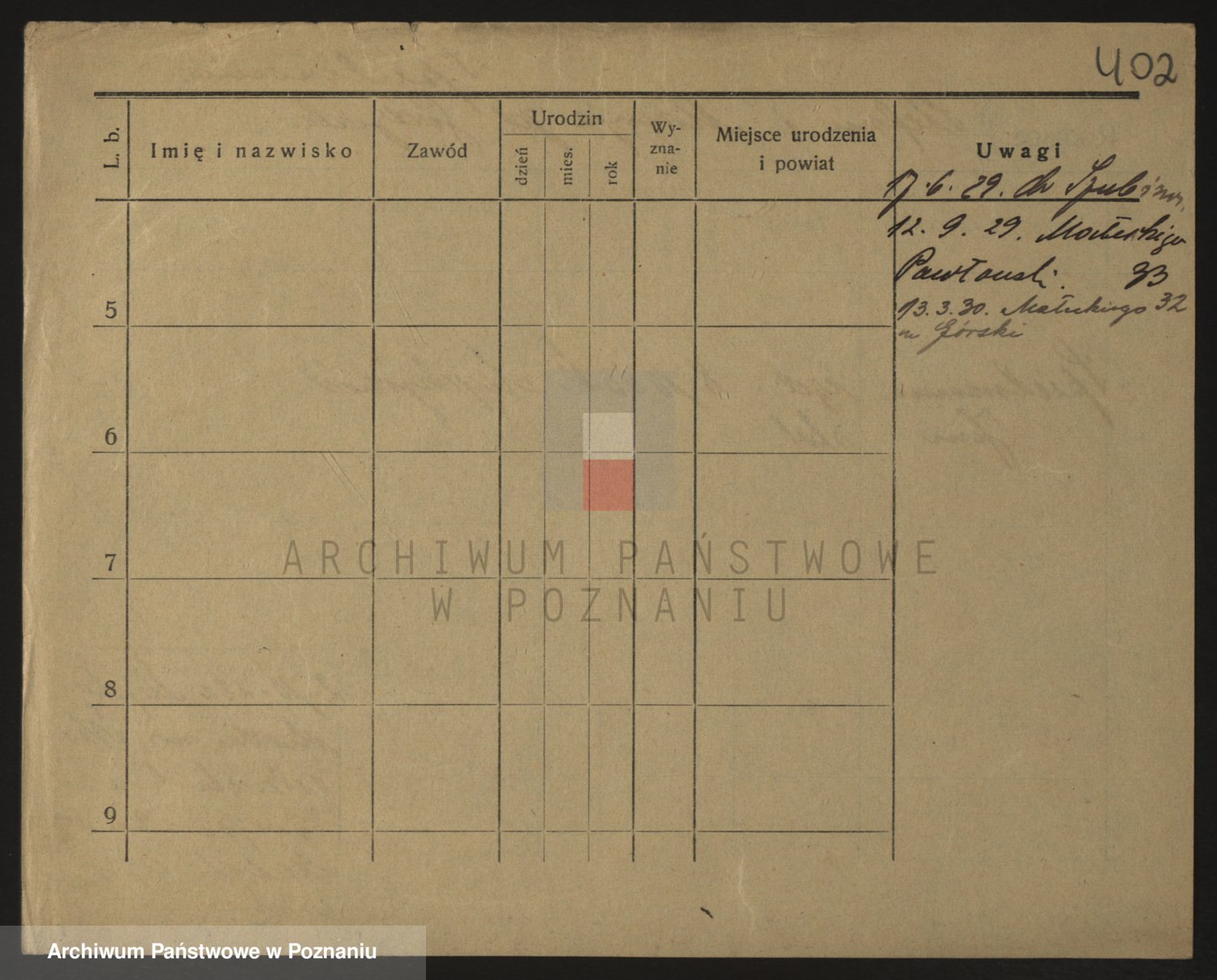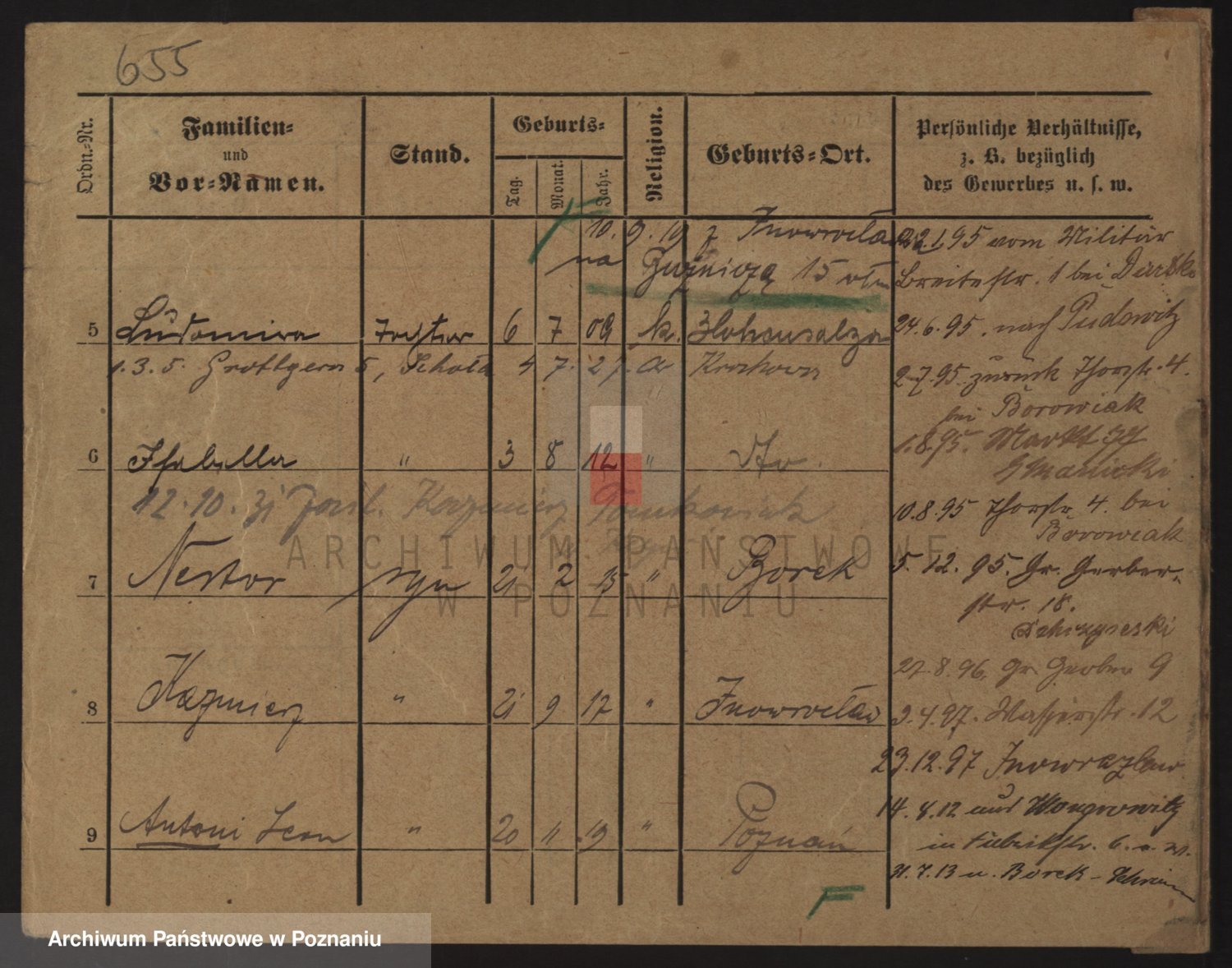 Podgląd karty osobowej dostępny jest po kliknięciu na nazwisko lub ikonkę karty. Można dokonywać powiększenia (ikony na górze) lub przechodzić między kolejnymi skanami (strzałki po bokach).