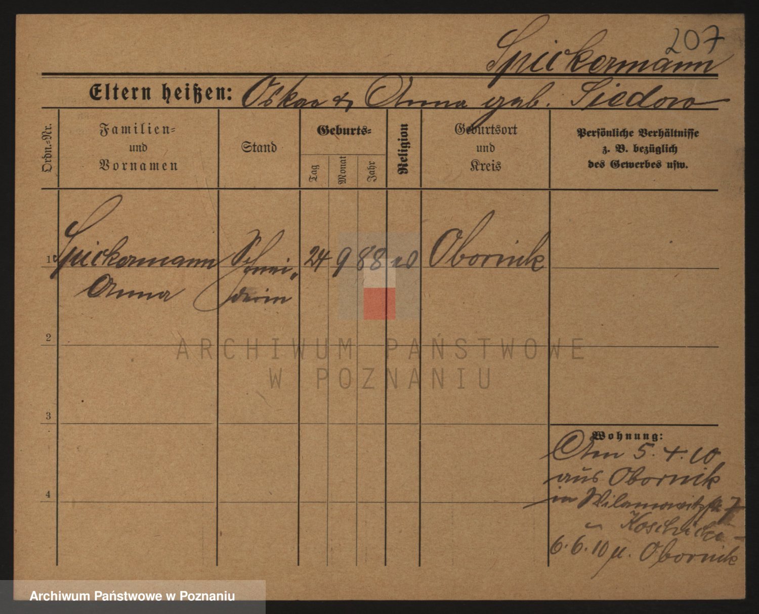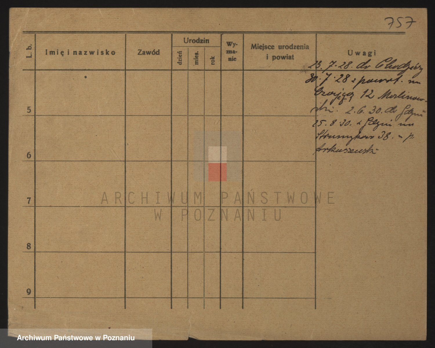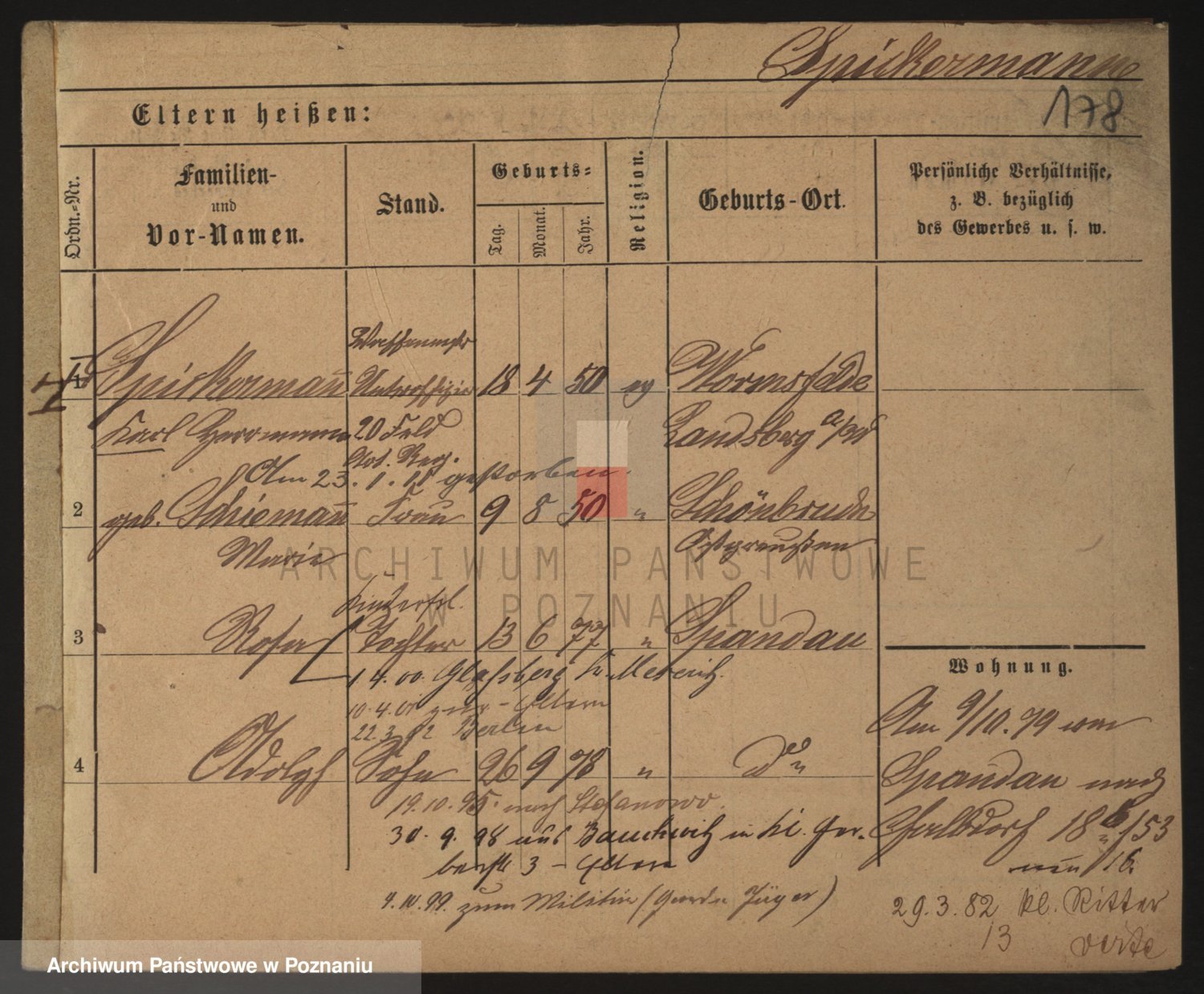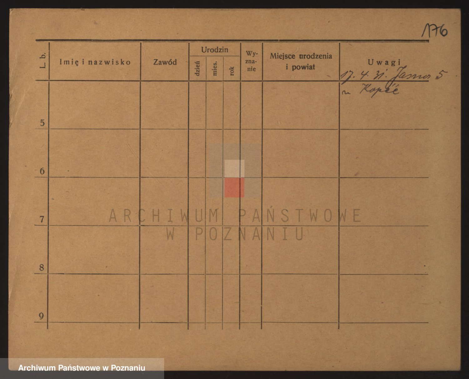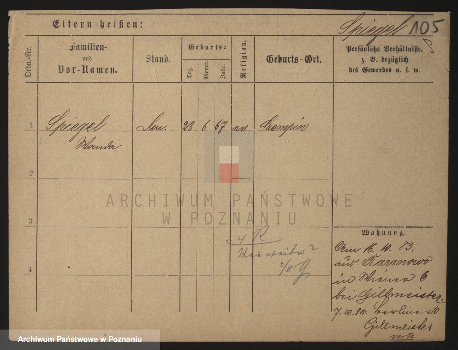 Podgląd karty osobowej dostępny jest po kliknięciu na nazwisko lub ikonkę karty. Można dokonywać powiększenia (ikony na górze) lub przechodzić między kolejnymi skanami (strzałki po bokach).