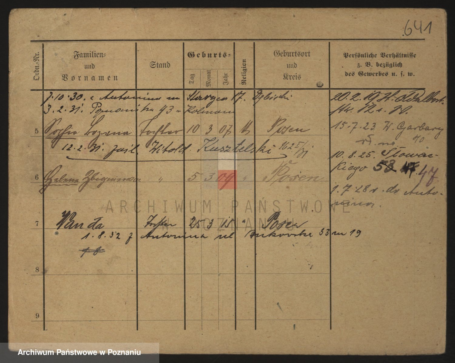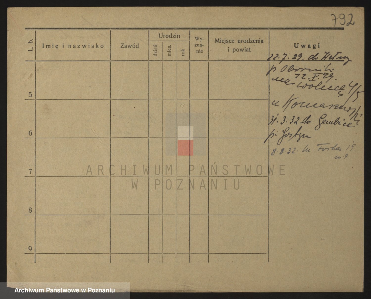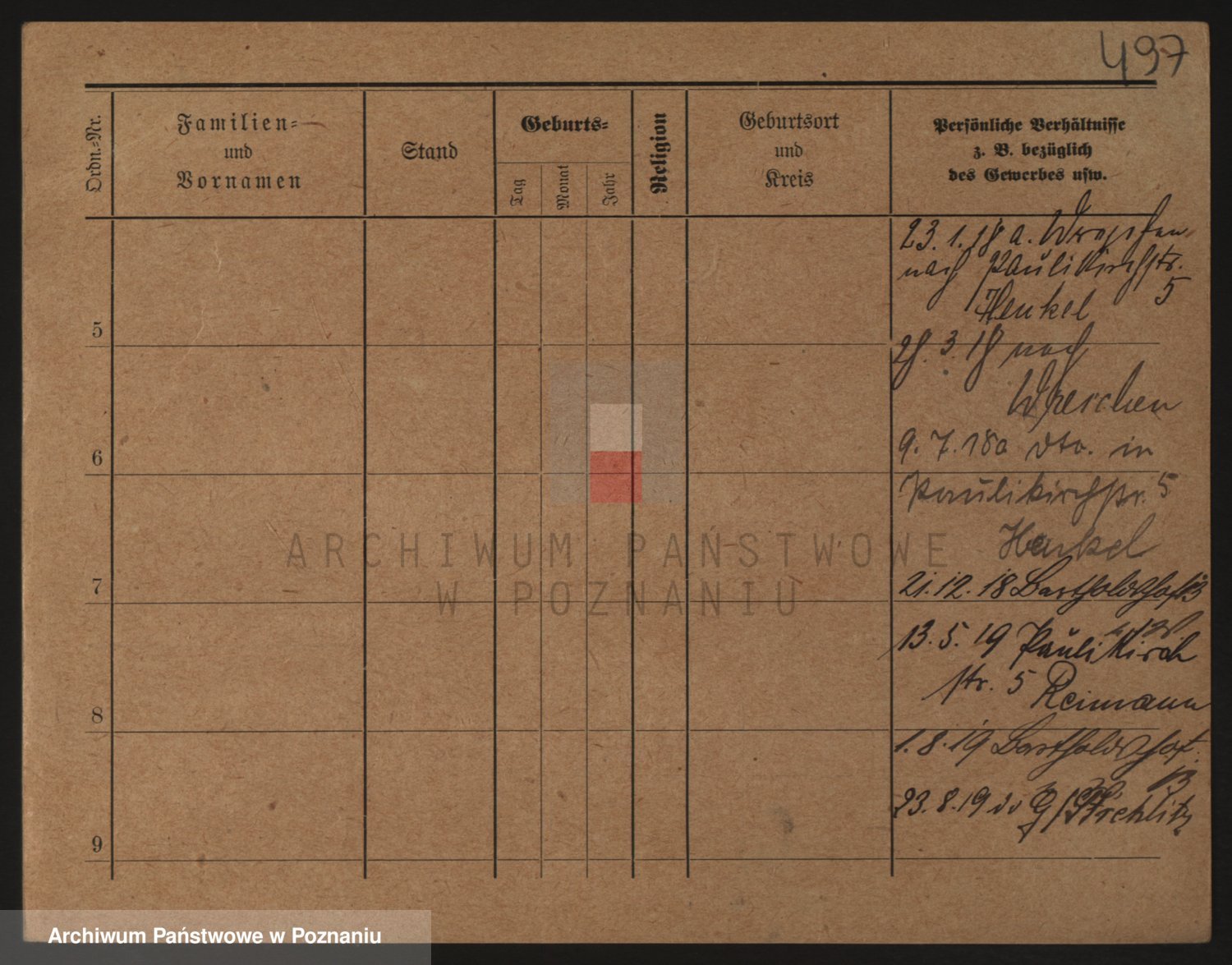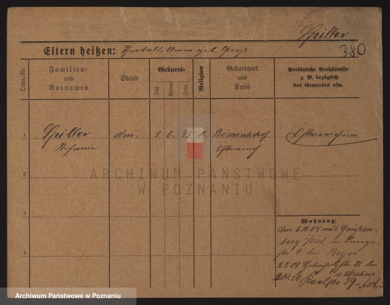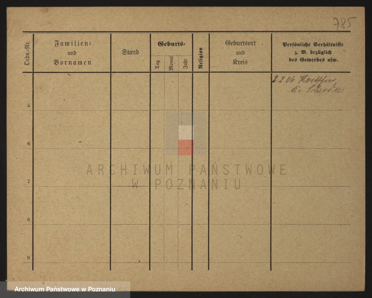Podgląd karty osobowej dostępny jest po kliknięciu na nazwisko lub ikonkę karty. Można dokonywać powiększenia (ikony na górze) lub przechodzić między kolejnymi skanami (strzałki po bokach).
