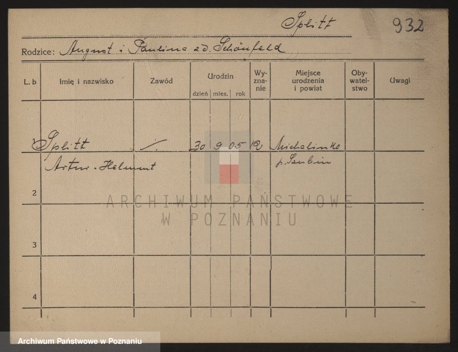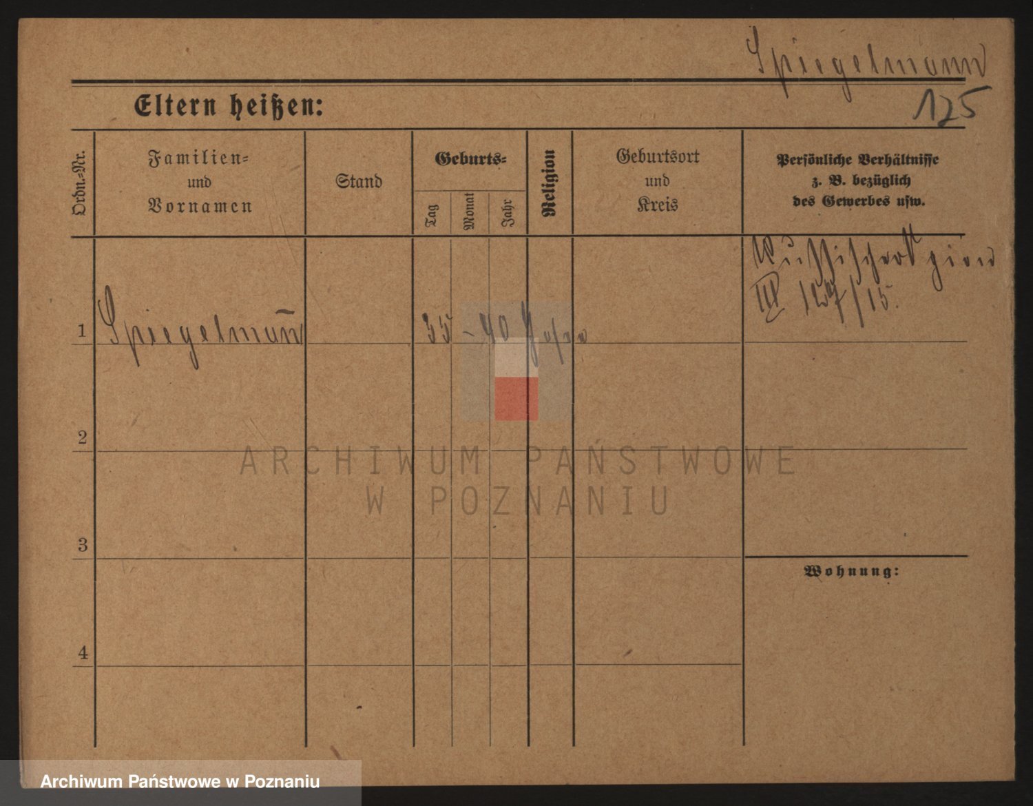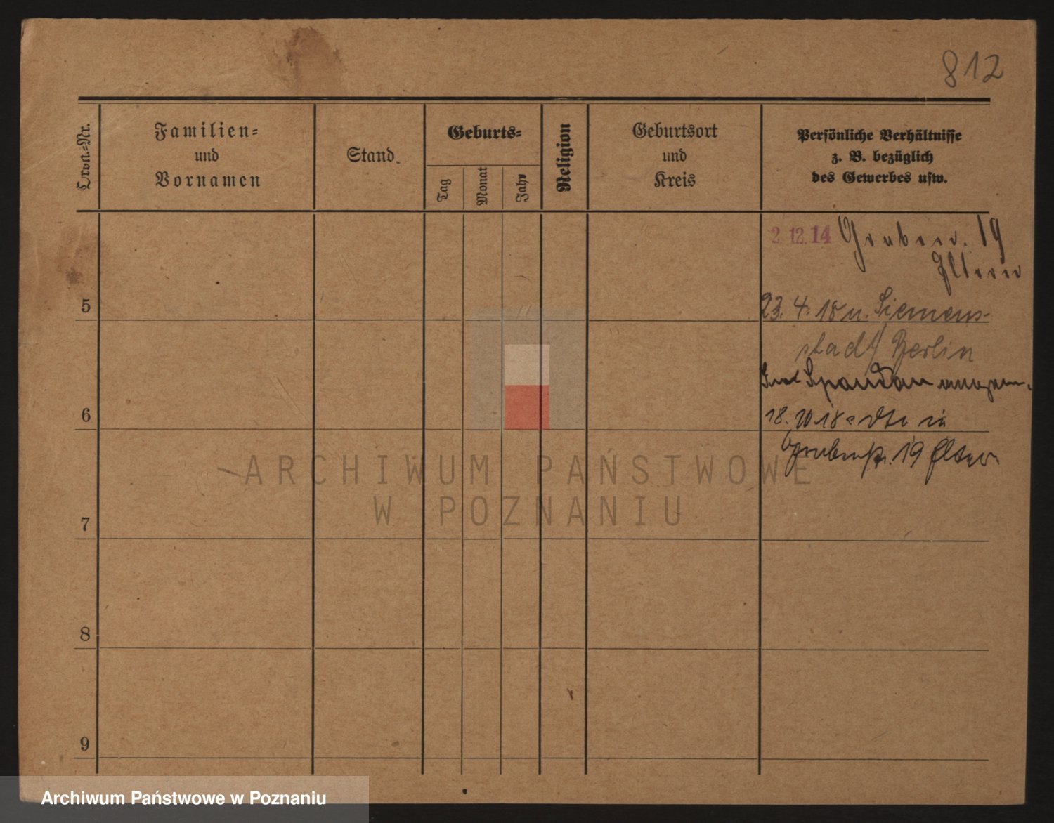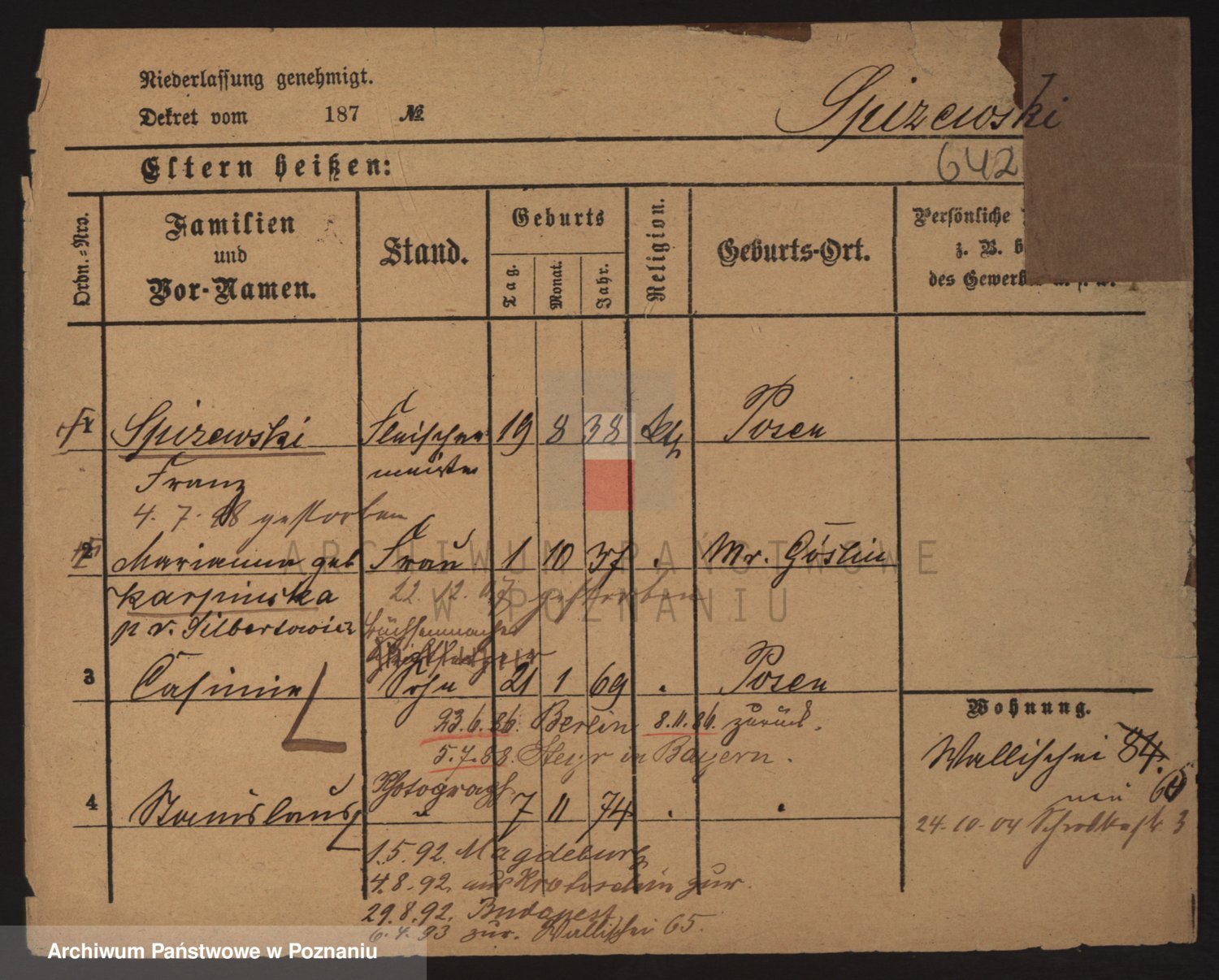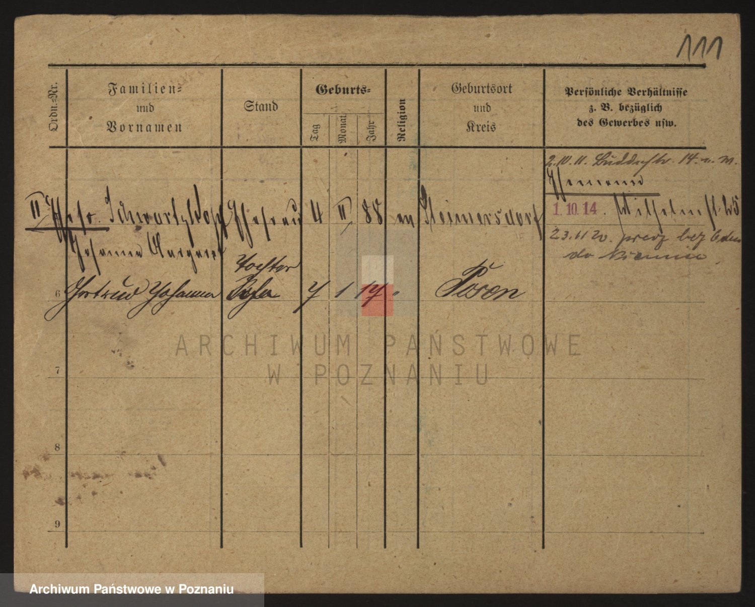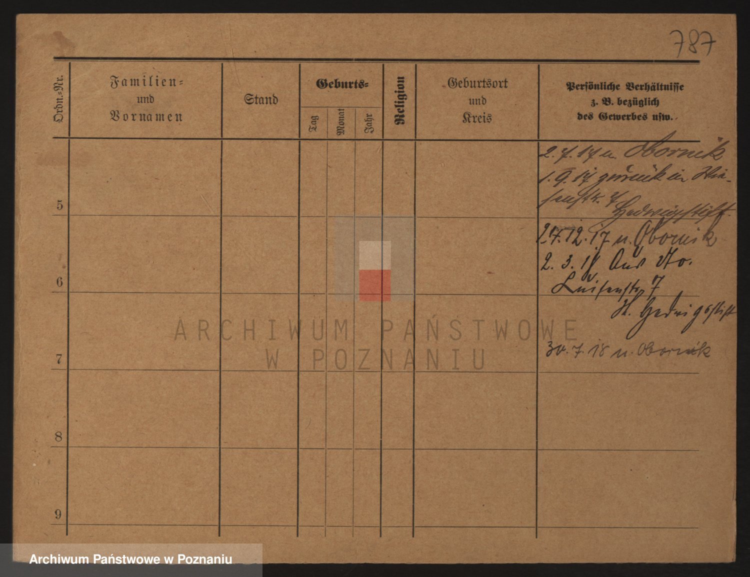 Podgląd karty osobowej dostępny jest po kliknięciu na nazwisko lub ikonkę karty. Można dokonywać powiększenia (ikony na górze) lub przechodzić między kolejnymi skanami (strzałki po bokach).