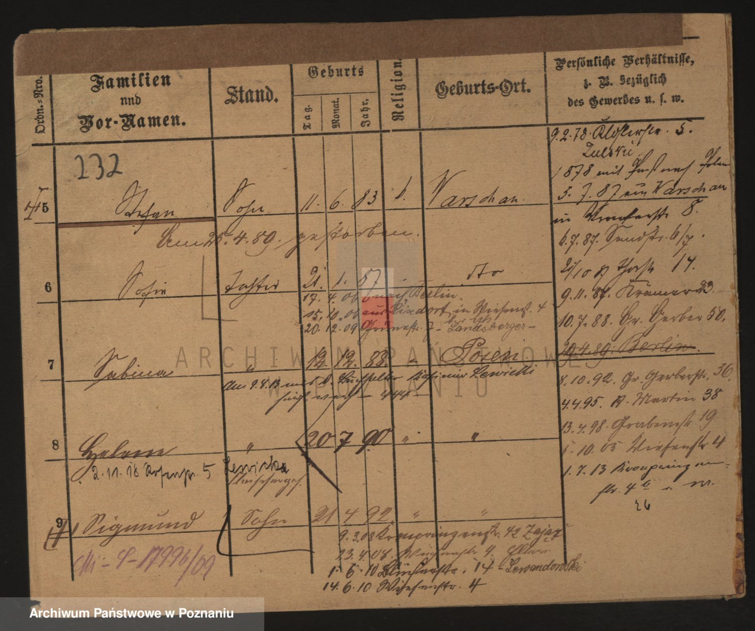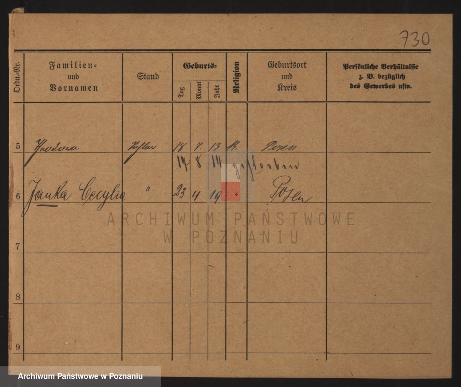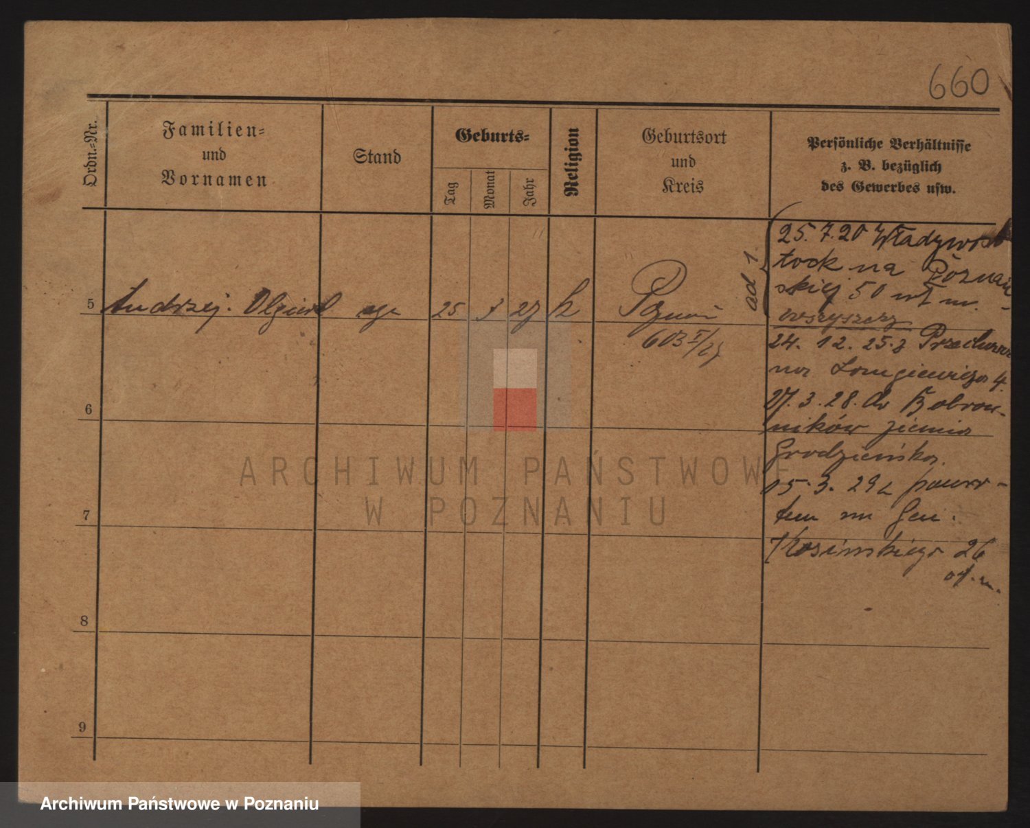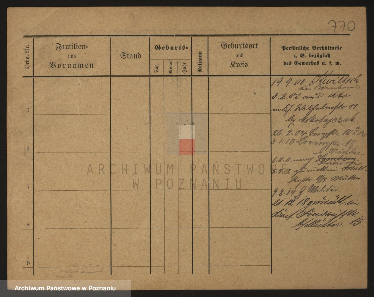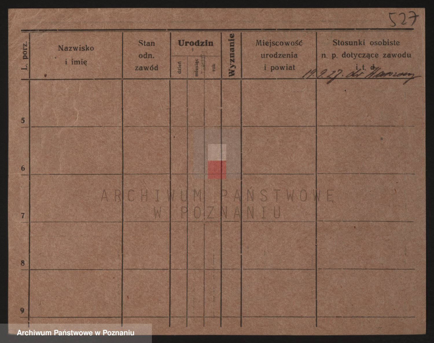 Podgląd karty osobowej dostępny jest po kliknięciu na nazwisko lub ikonkę karty. Można dokonywać powiększenia (ikony na górze) lub przechodzić między kolejnymi skanami (strzałki po bokach).