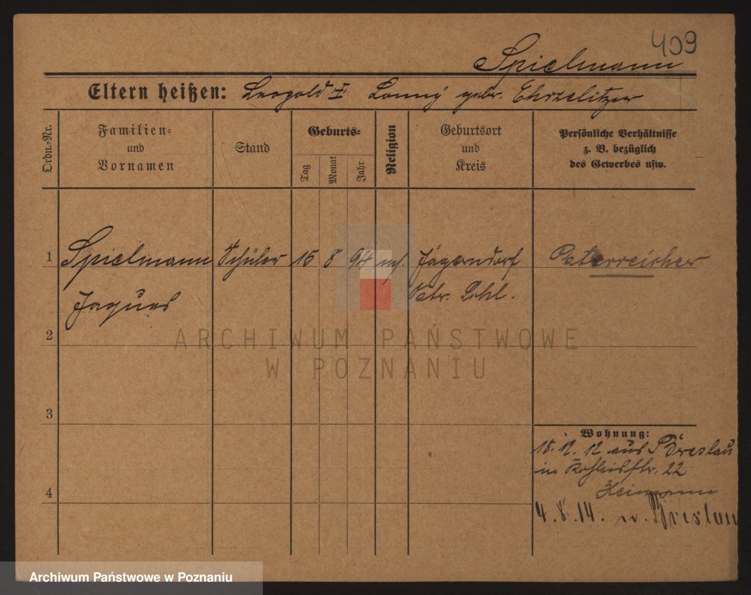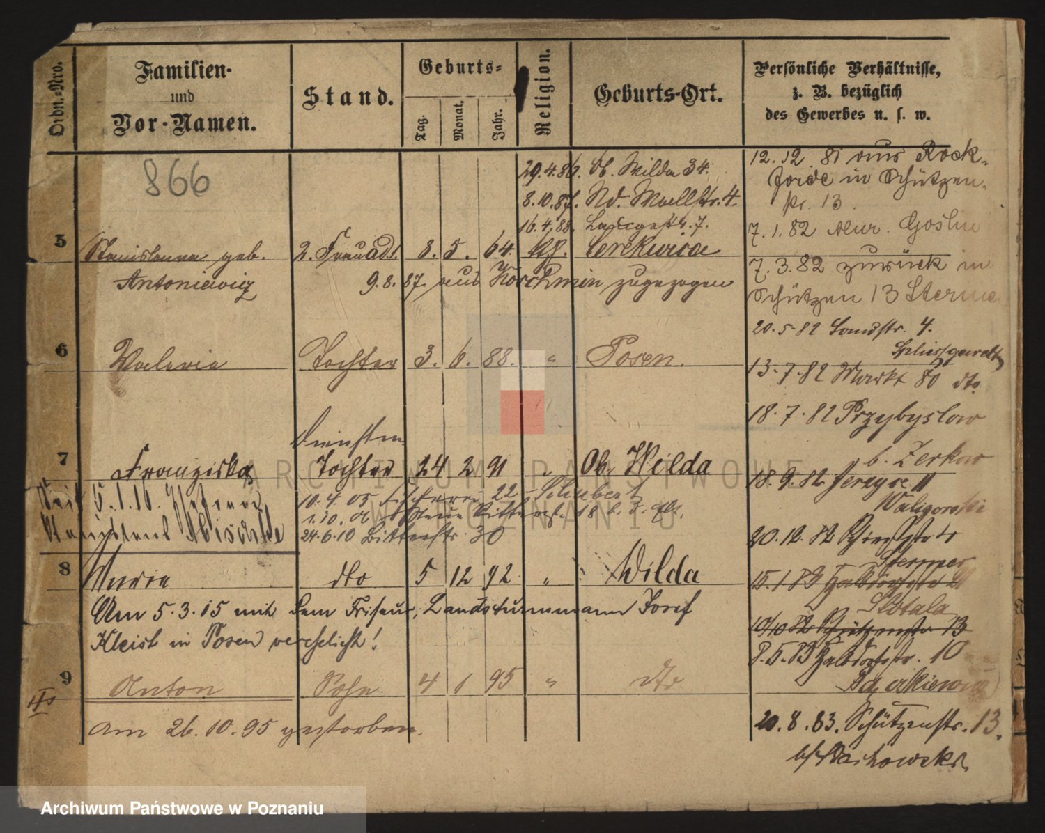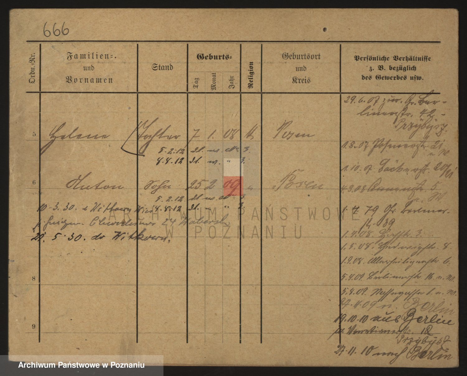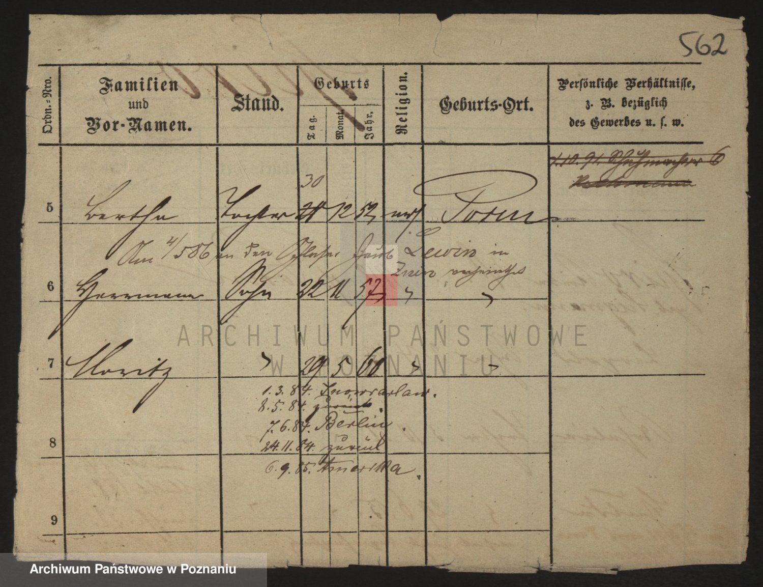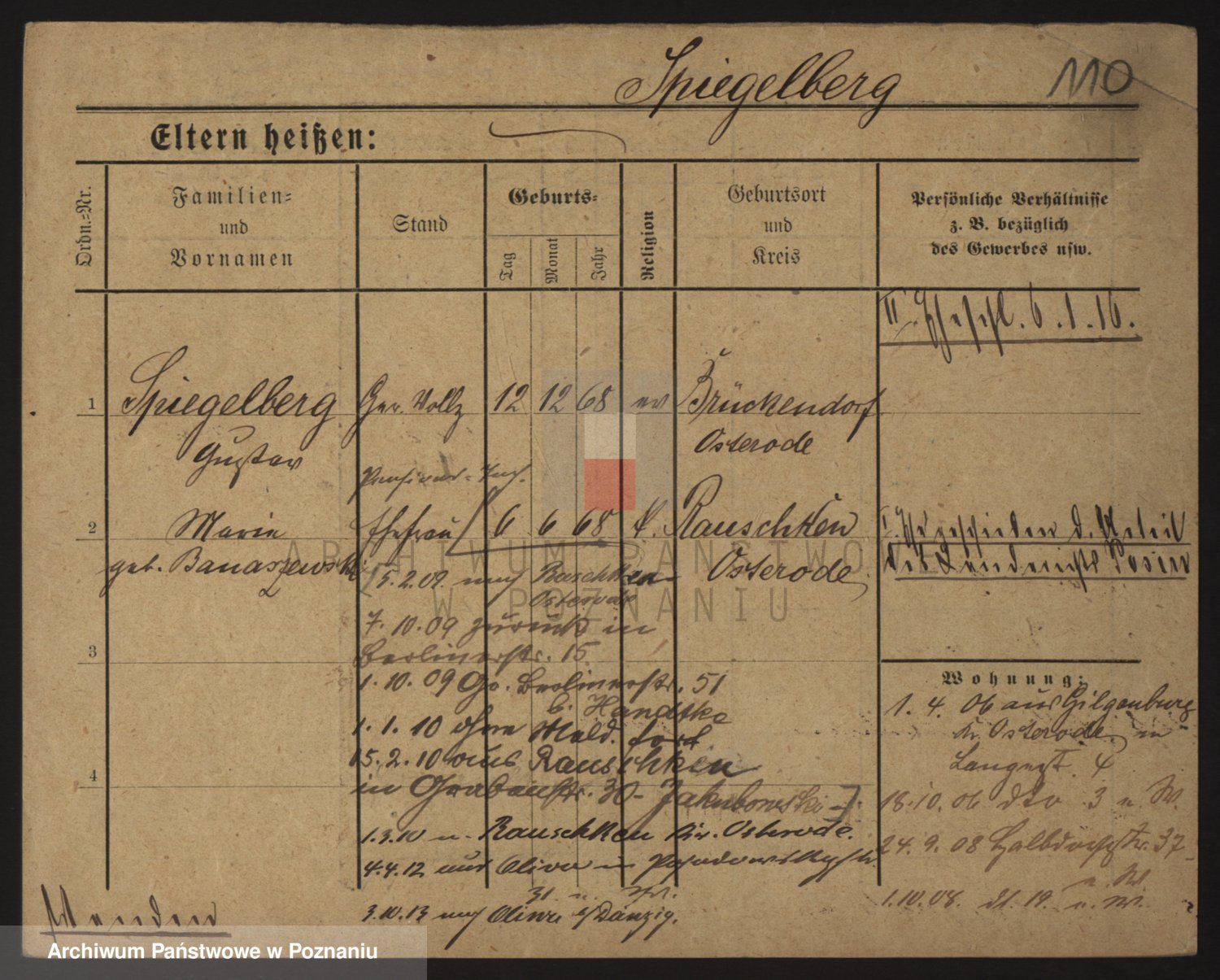 Podgląd karty osobowej dostępny jest po kliknięciu na nazwisko lub ikonkę karty. Można dokonywać powiększenia (ikony na górze) lub przechodzić między kolejnymi skanami (strzałki po bokach).