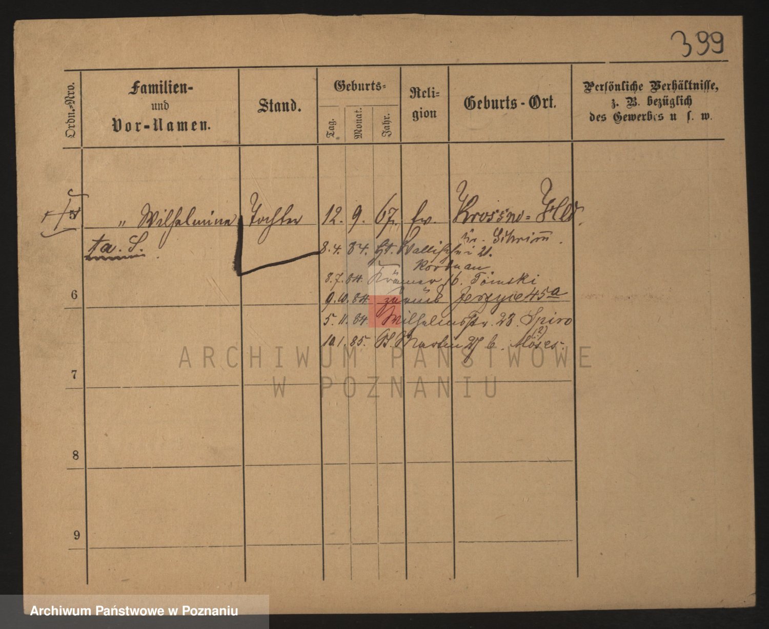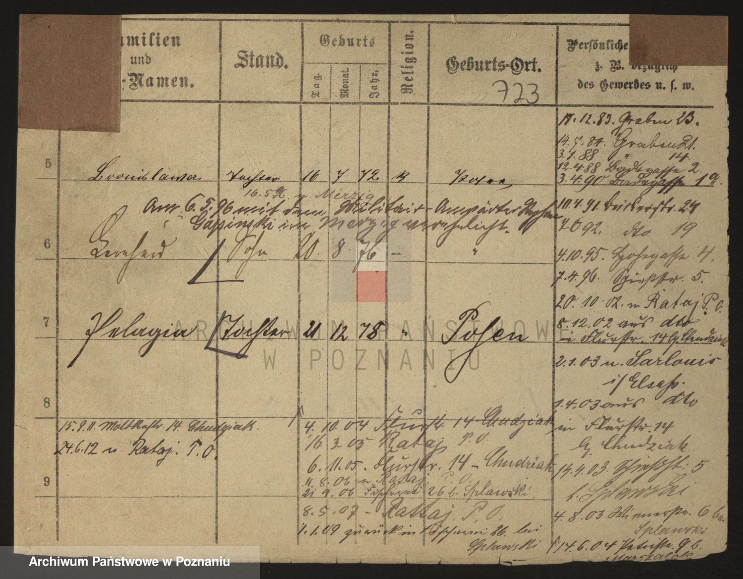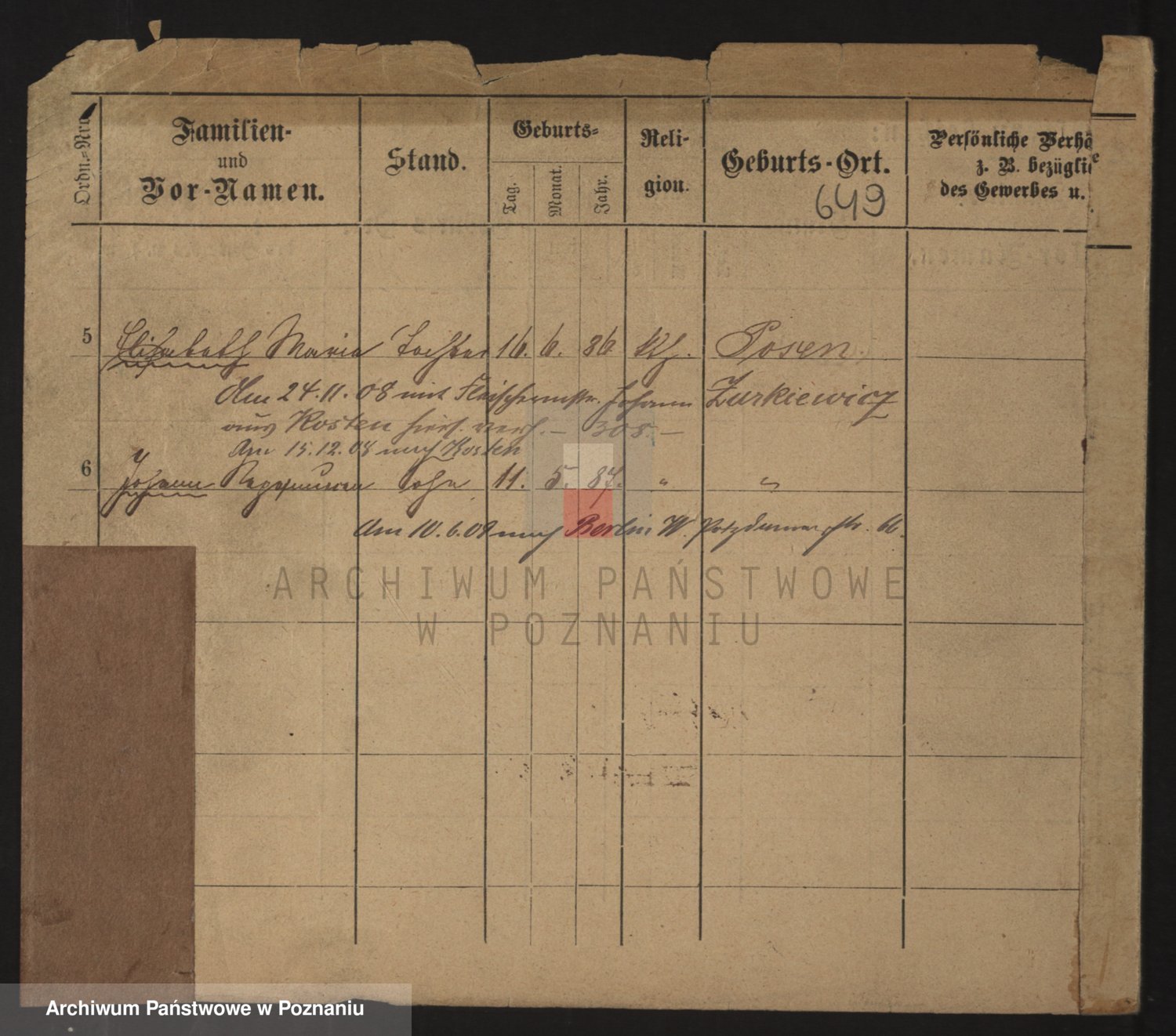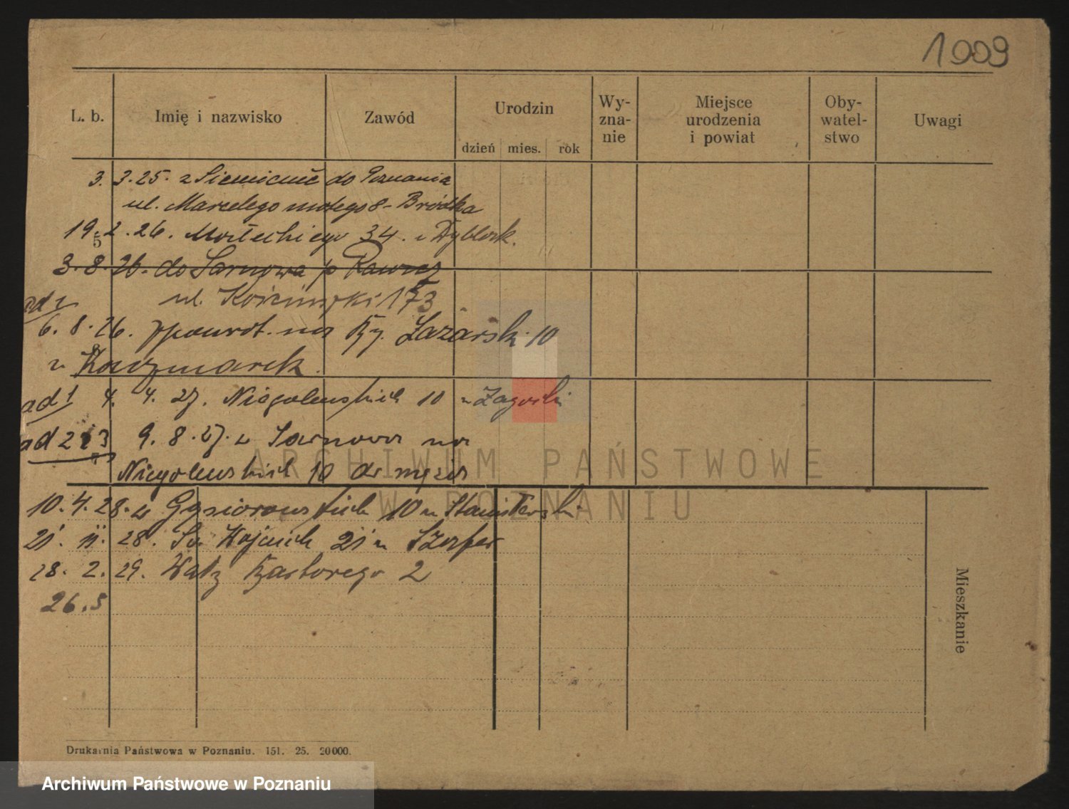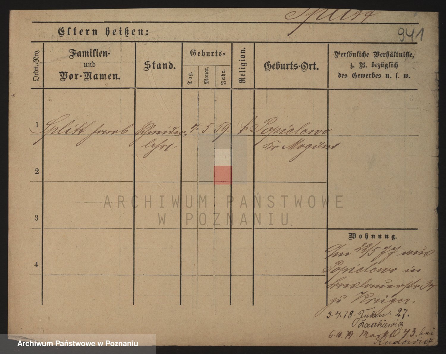 Podgląd karty osobowej dostępny jest po kliknięciu na nazwisko lub ikonkę karty. Można dokonywać powiększenia (ikony na górze) lub przechodzić między kolejnymi skanami (strzałki po bokach).