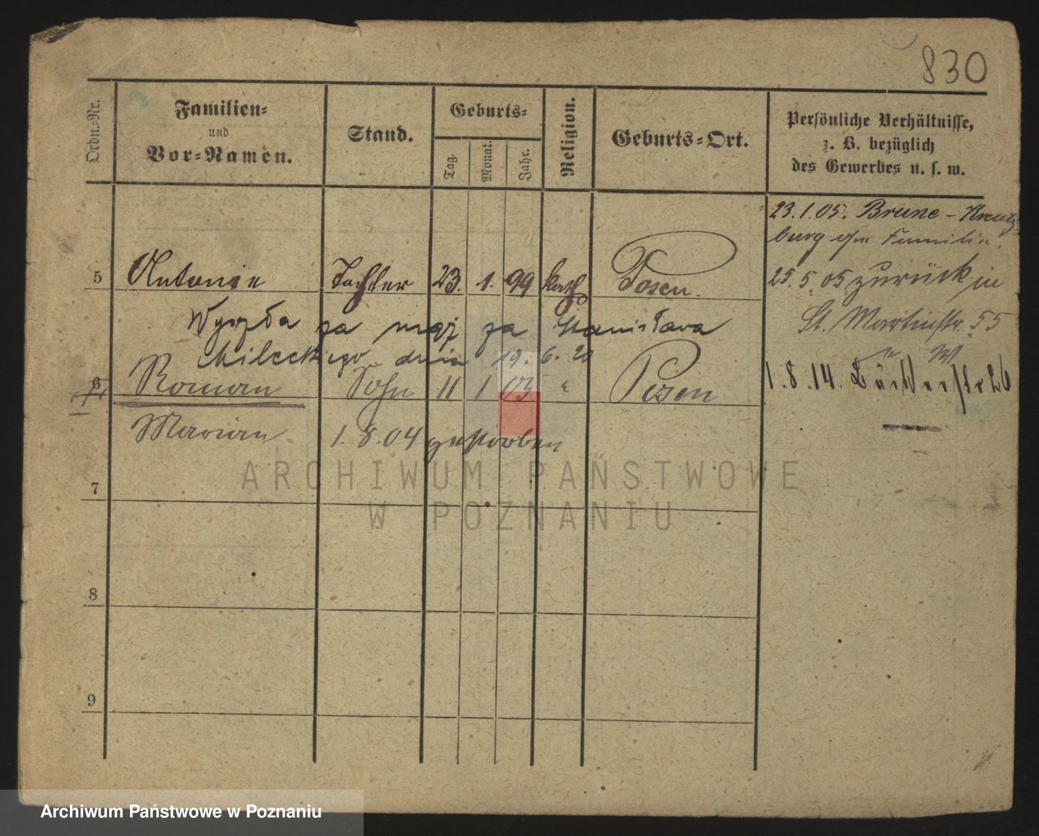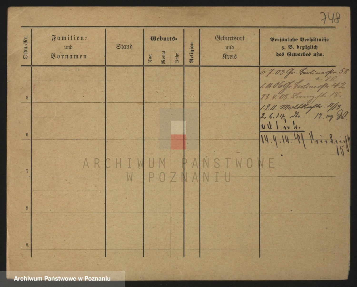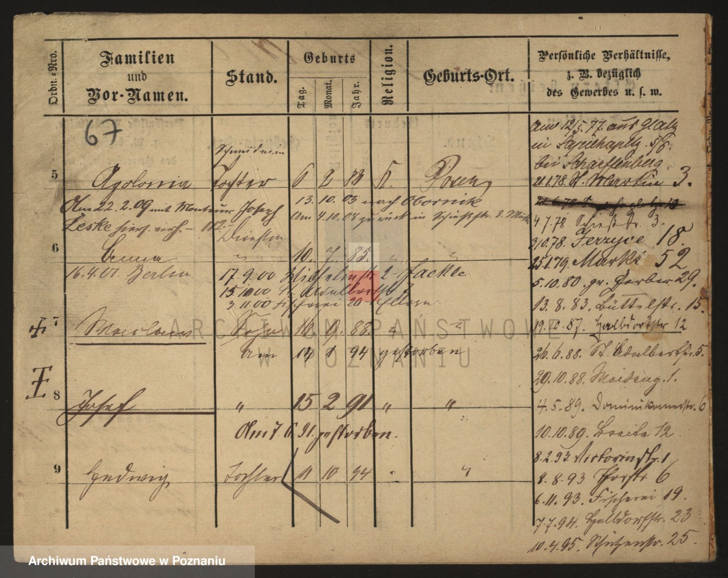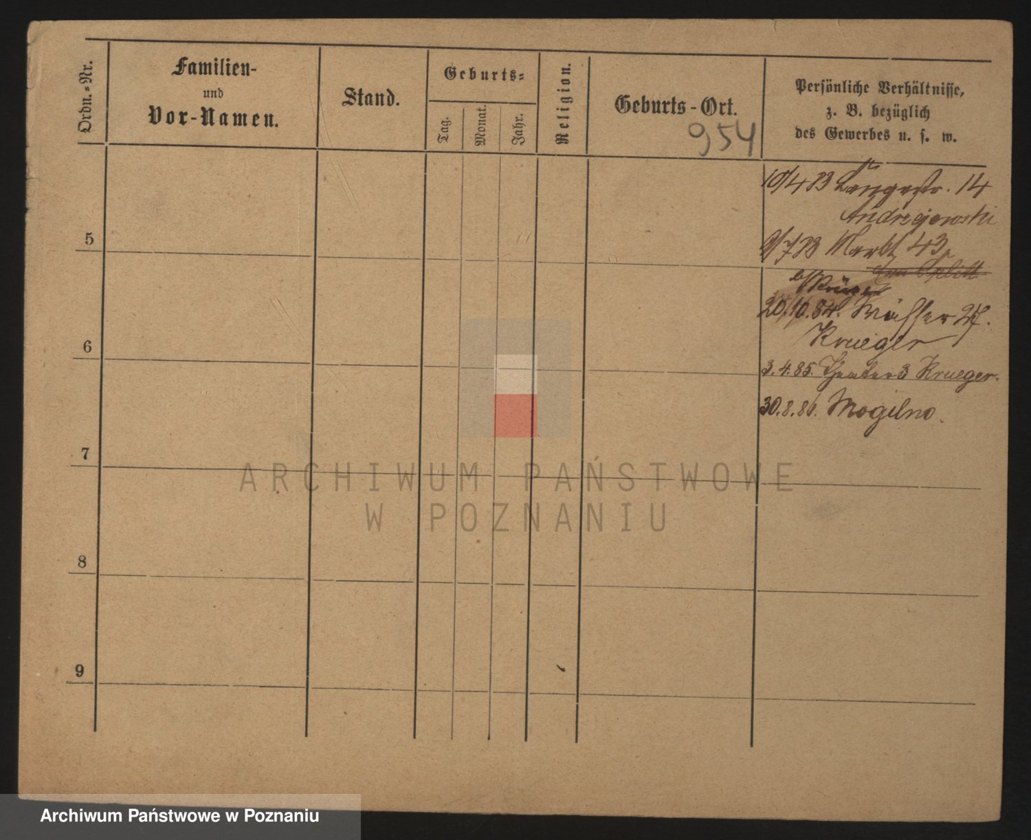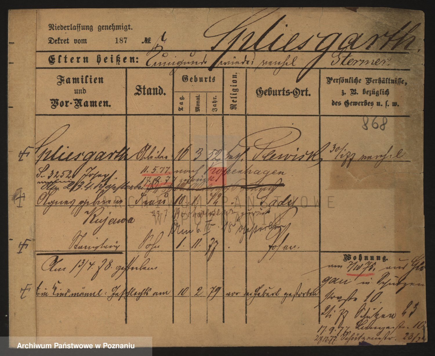 Podgląd karty osobowej dostępny jest po kliknięciu na nazwisko lub ikonkę karty. Można dokonywać powiększenia (ikony na górze) lub przechodzić między kolejnymi skanami (strzałki po bokach).