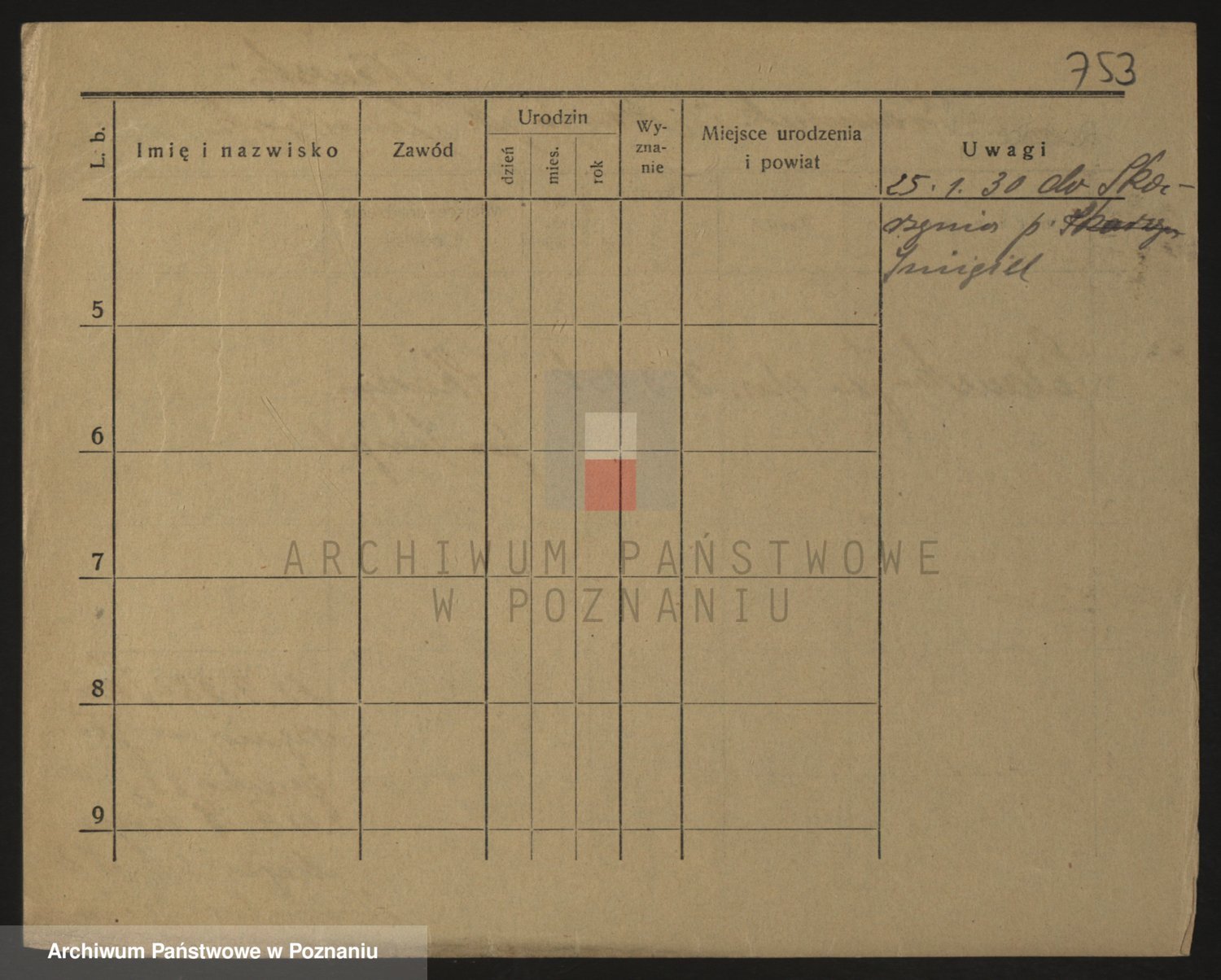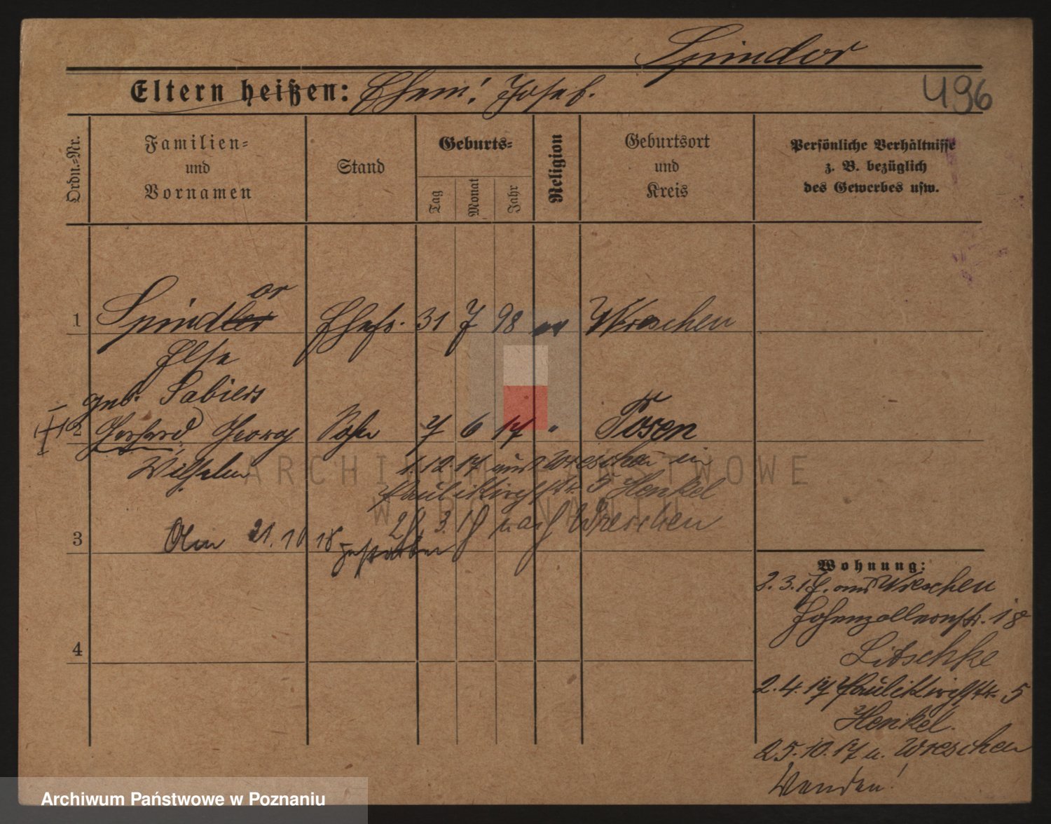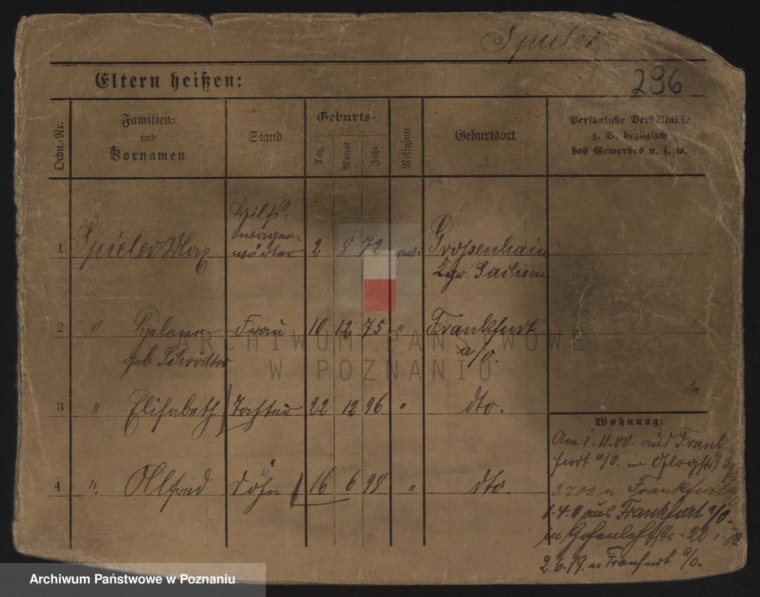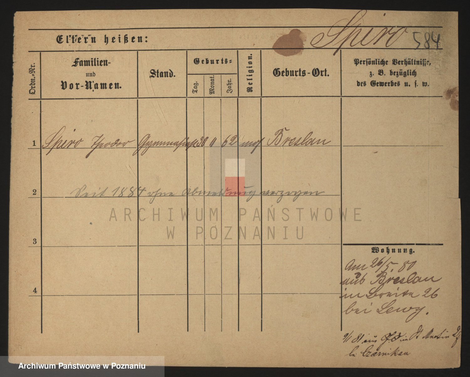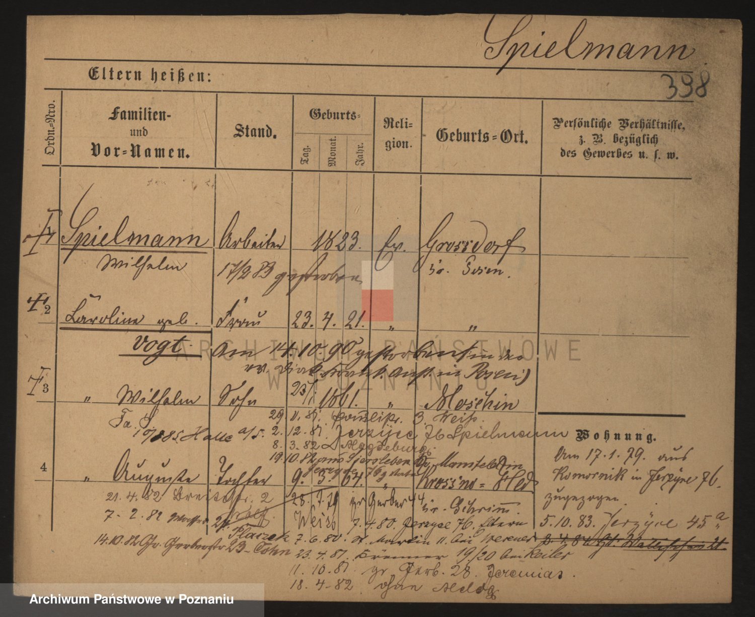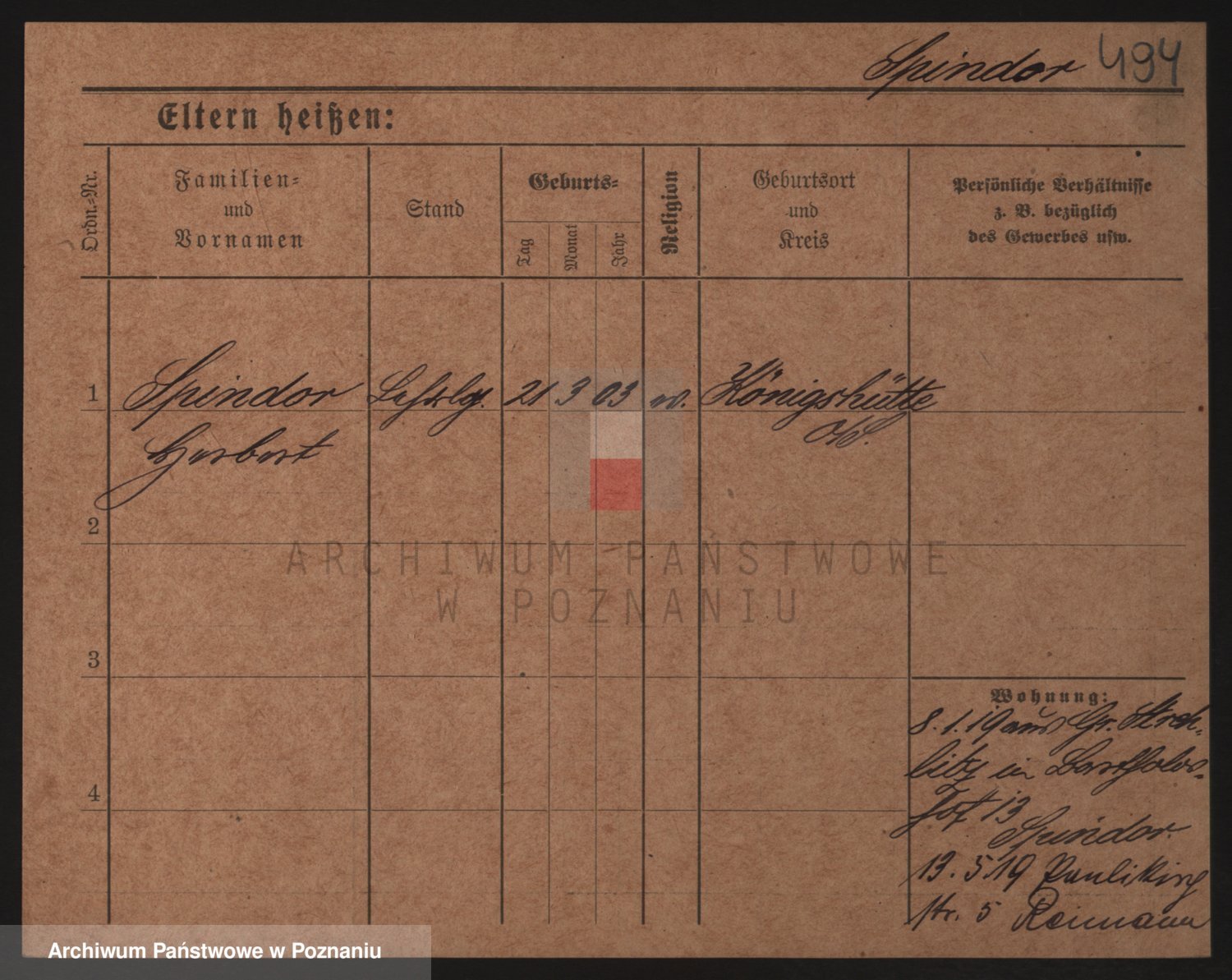 Podgląd karty osobowej dostępny jest po kliknięciu na nazwisko lub ikonkę karty. Można dokonywać powiększenia (ikony na górze) lub przechodzić między kolejnymi skanami (strzałki po bokach).