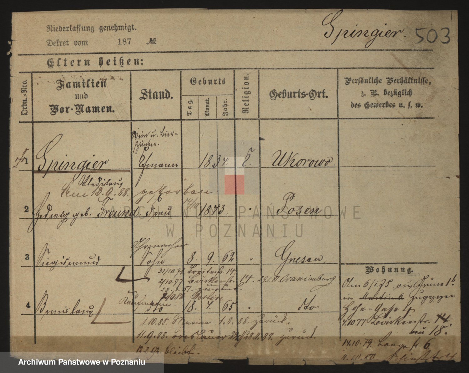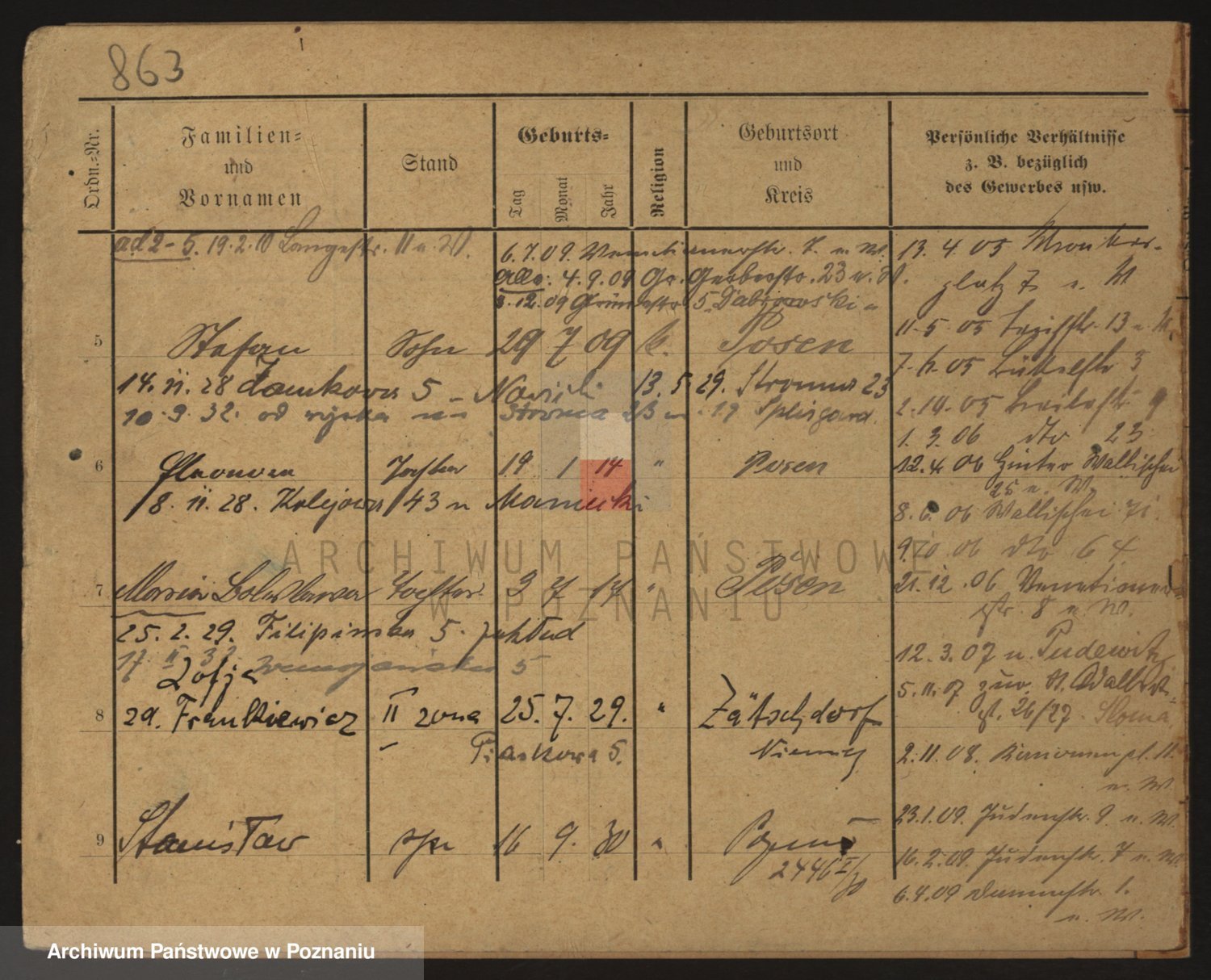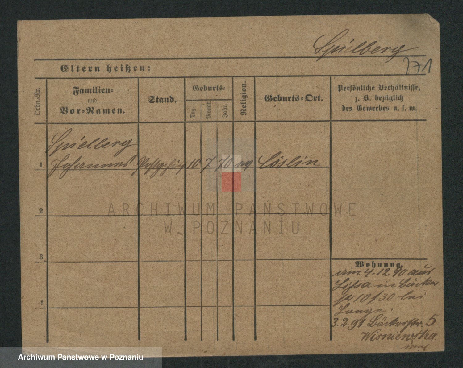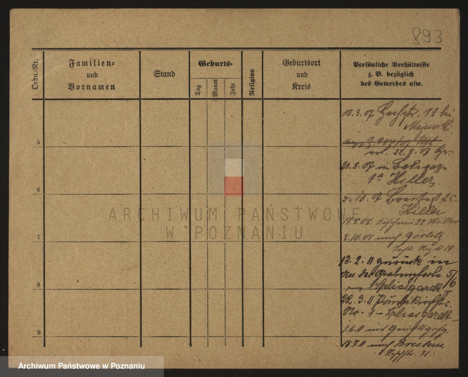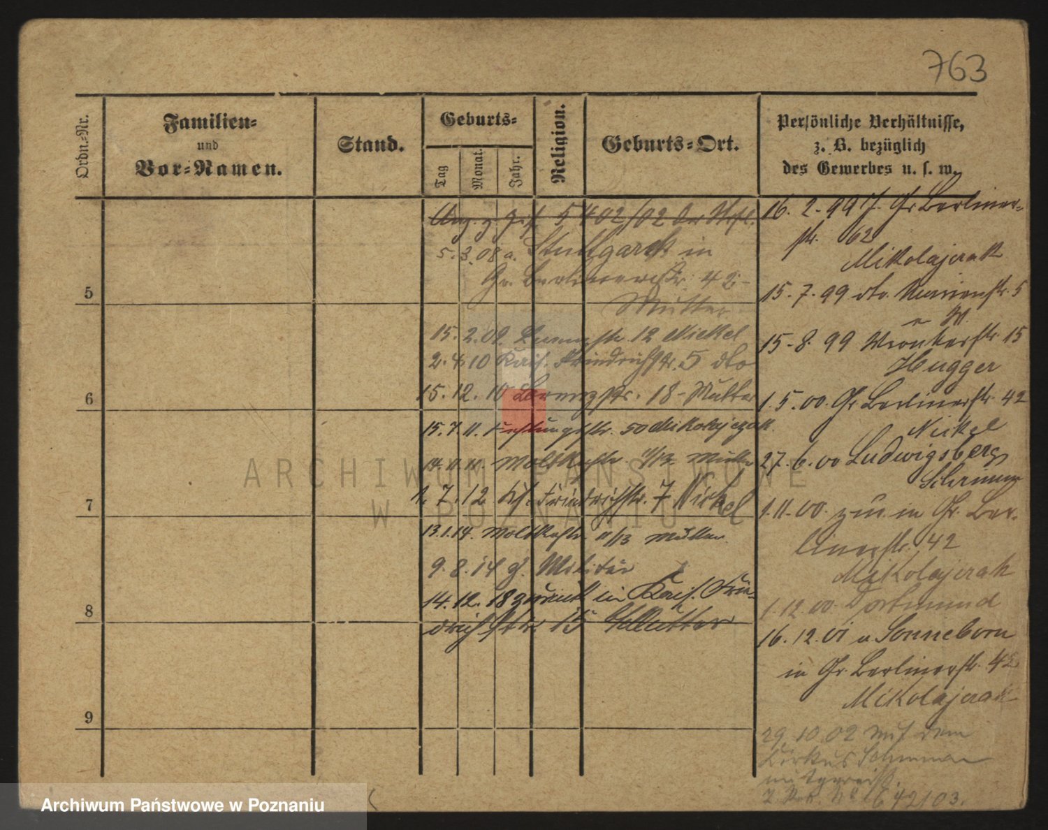Podgląd karty osobowej dostępny jest po kliknięciu na nazwisko lub ikonkę karty. Można dokonywać powiększenia (ikony na górze) lub przechodzić między kolejnymi skanami (strzałki po bokach).