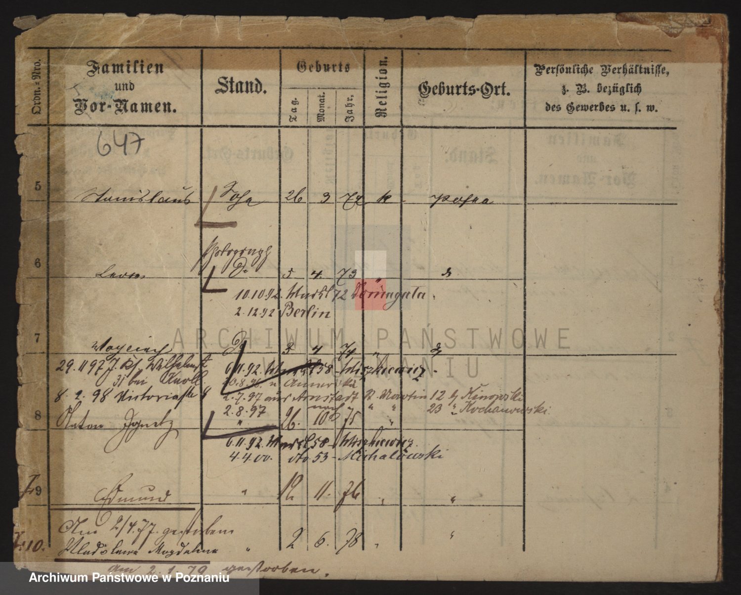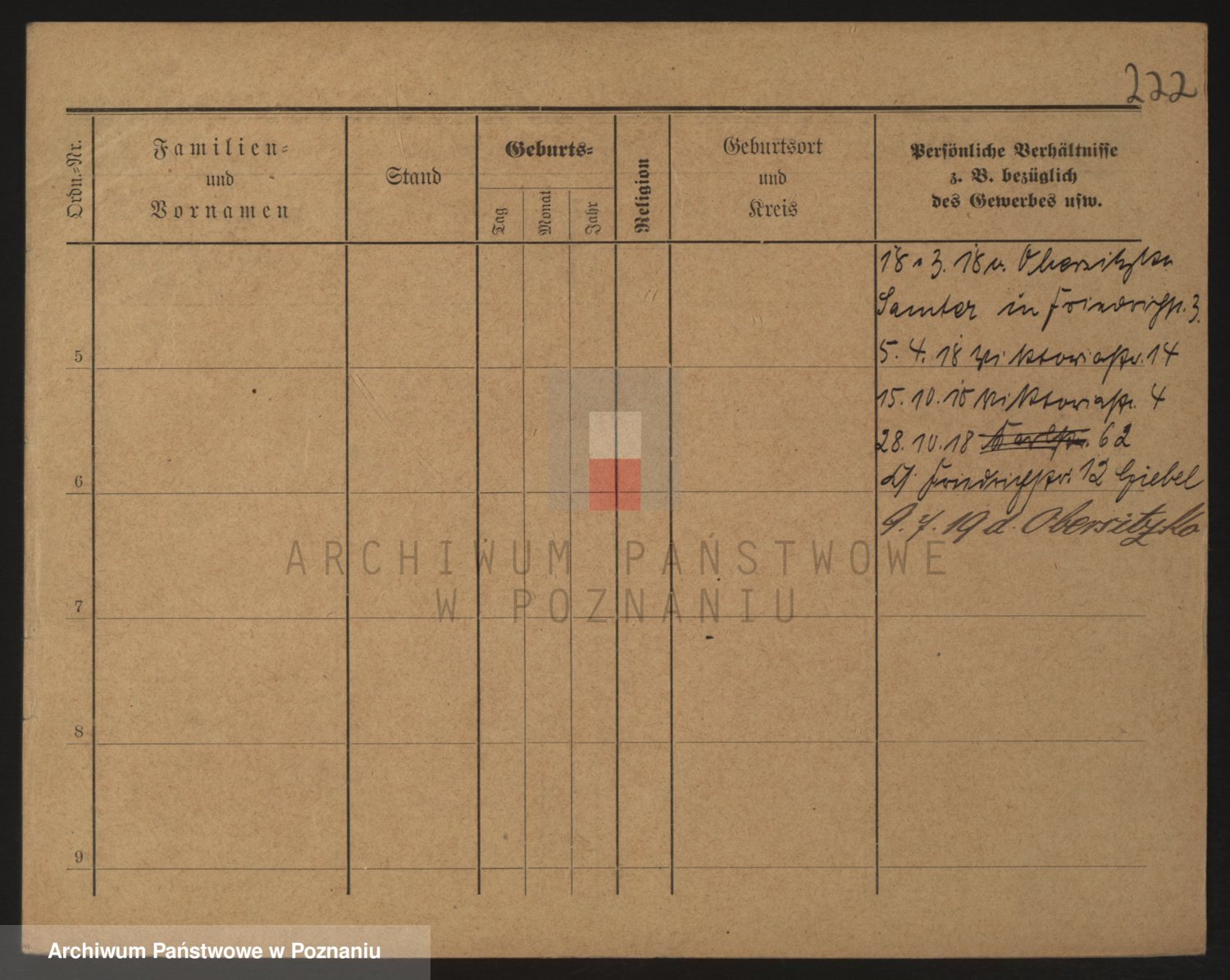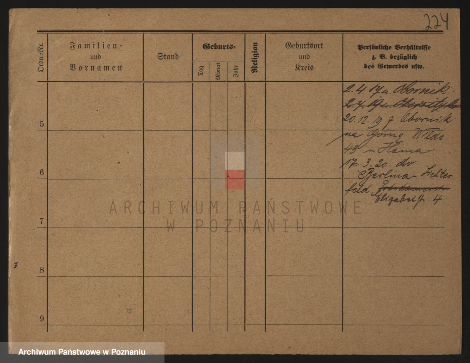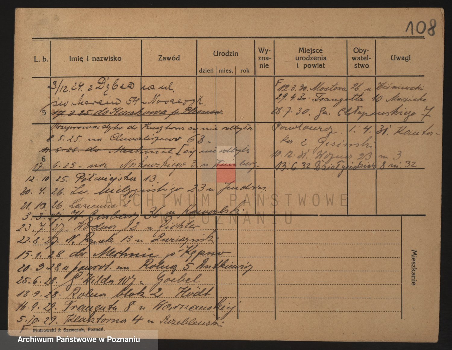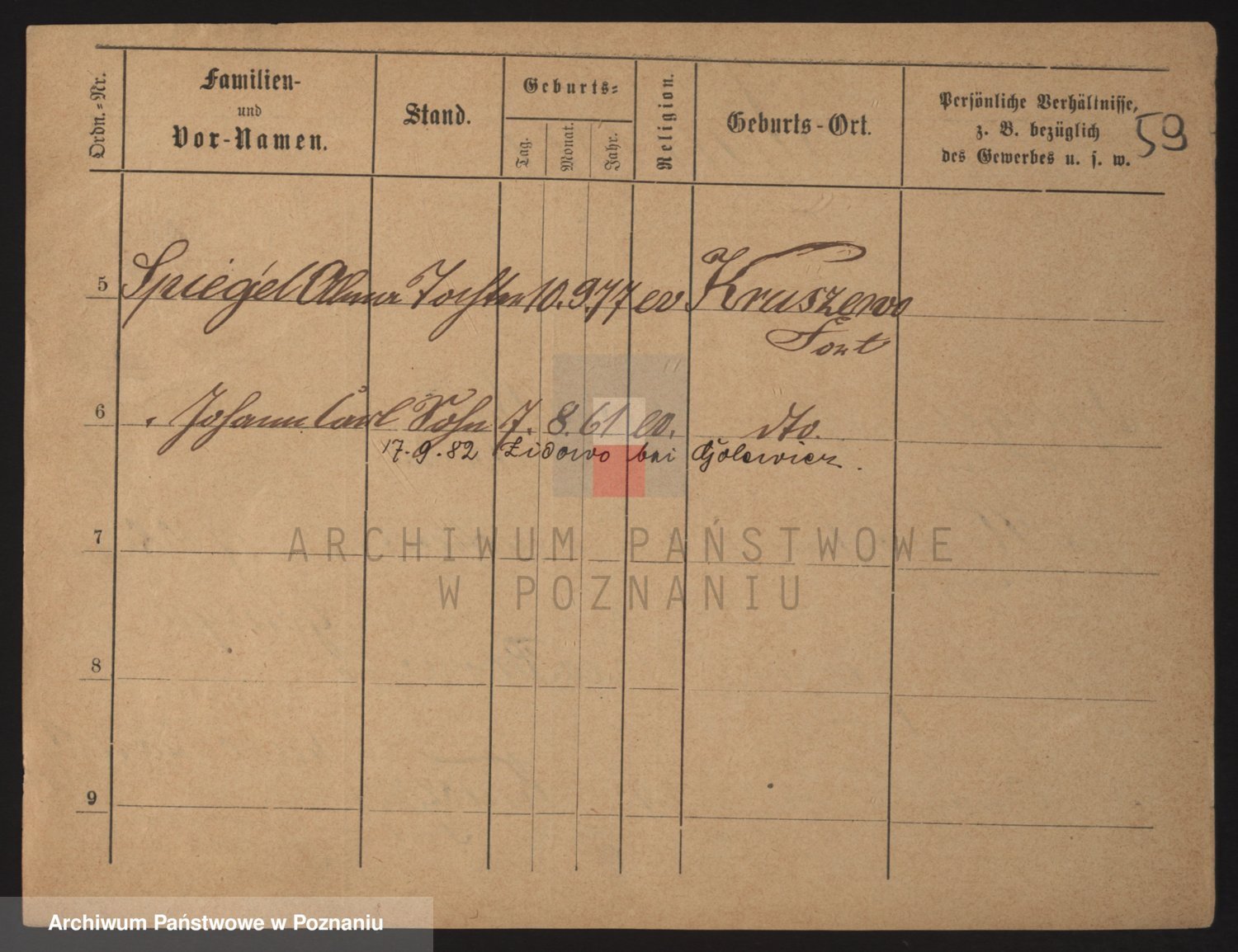 Podgląd karty osobowej dostępny jest po kliknięciu na nazwisko lub ikonkę karty. Można dokonywać powiększenia (ikony na górze) lub przechodzić między kolejnymi skanami (strzałki po bokach).