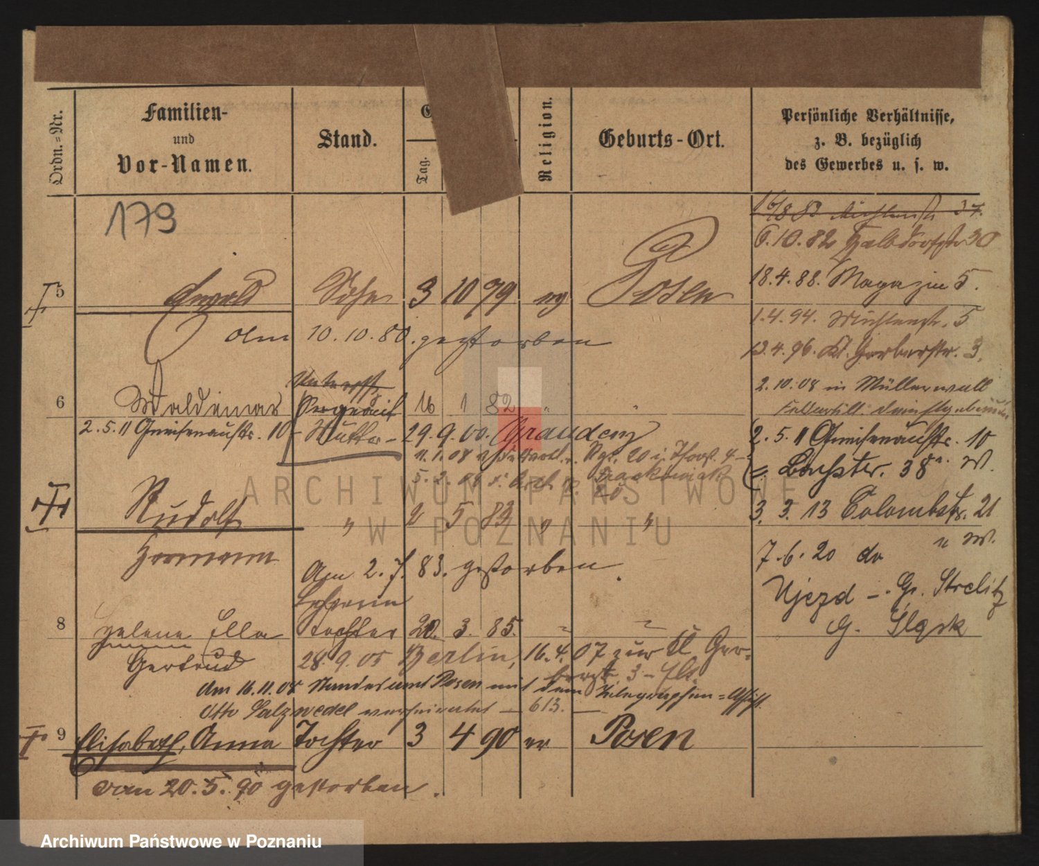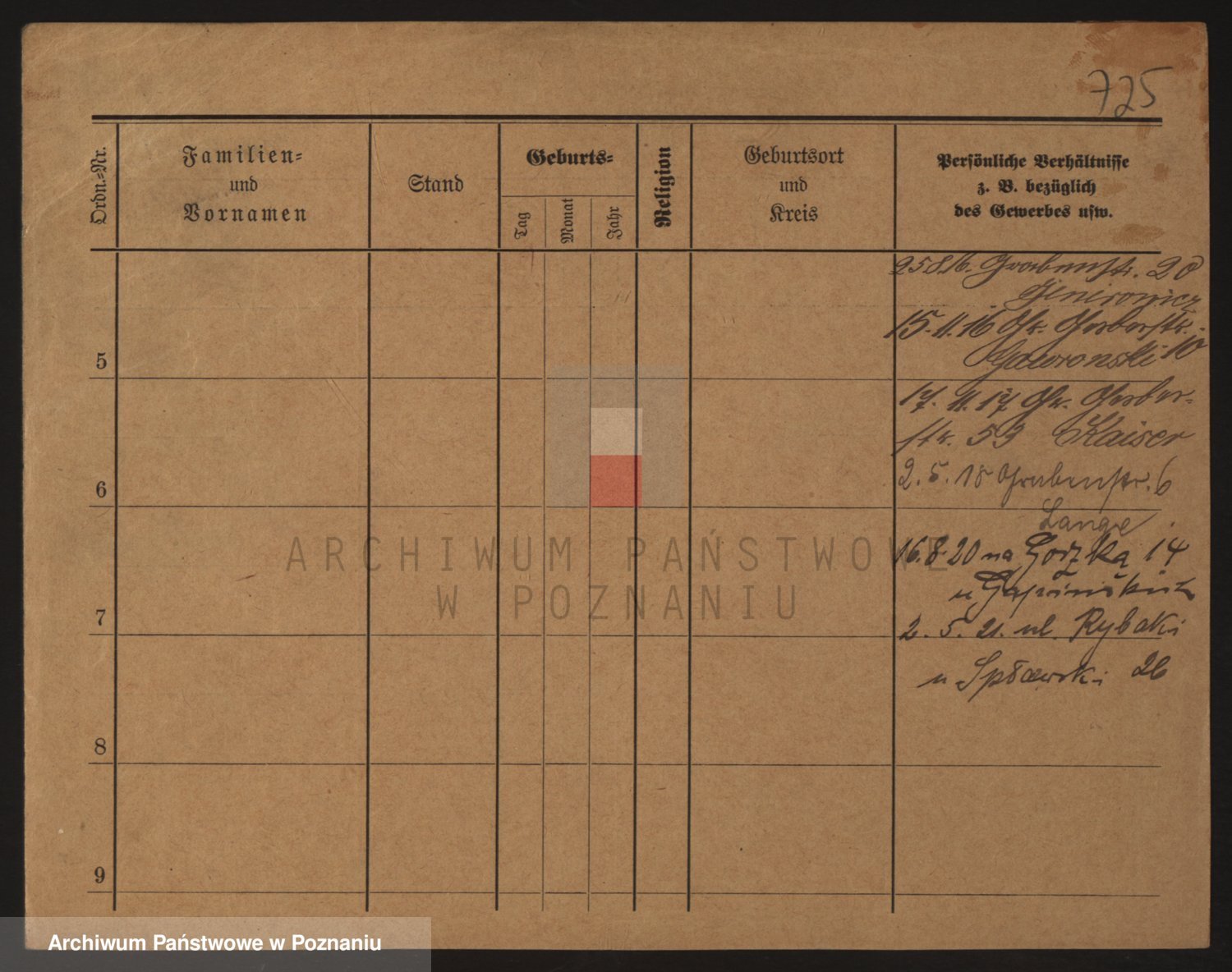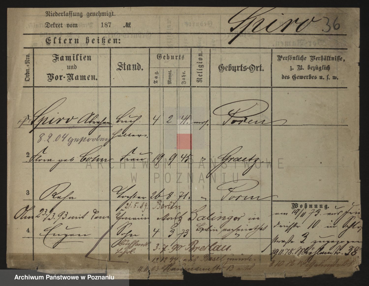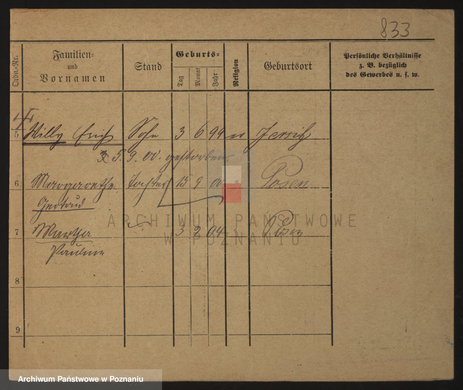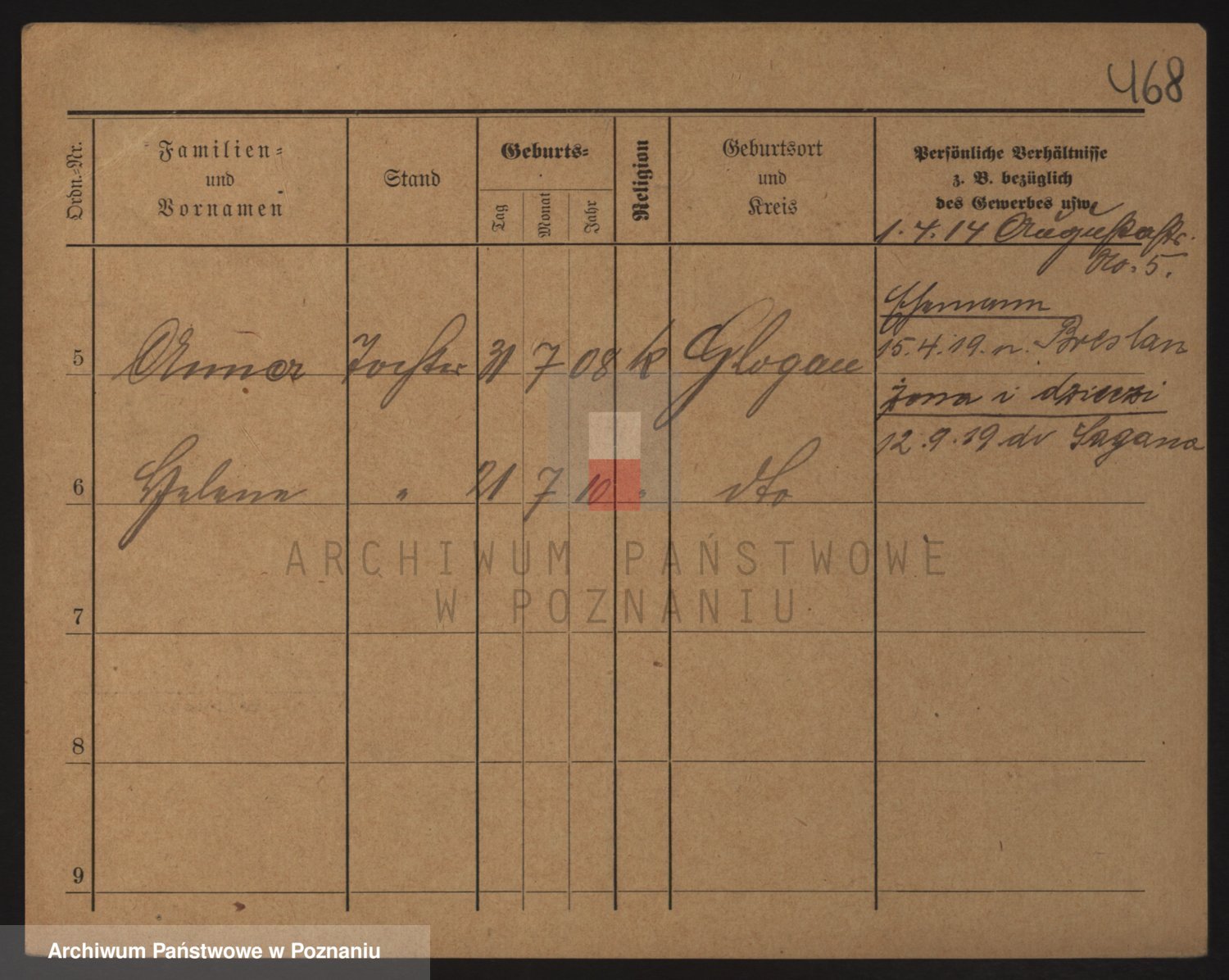 Podgląd karty osobowej dostępny jest po kliknięciu na nazwisko lub ikonkę karty. Można dokonywać powiększenia (ikony na górze) lub przechodzić między kolejnymi skanami (strzałki po bokach).