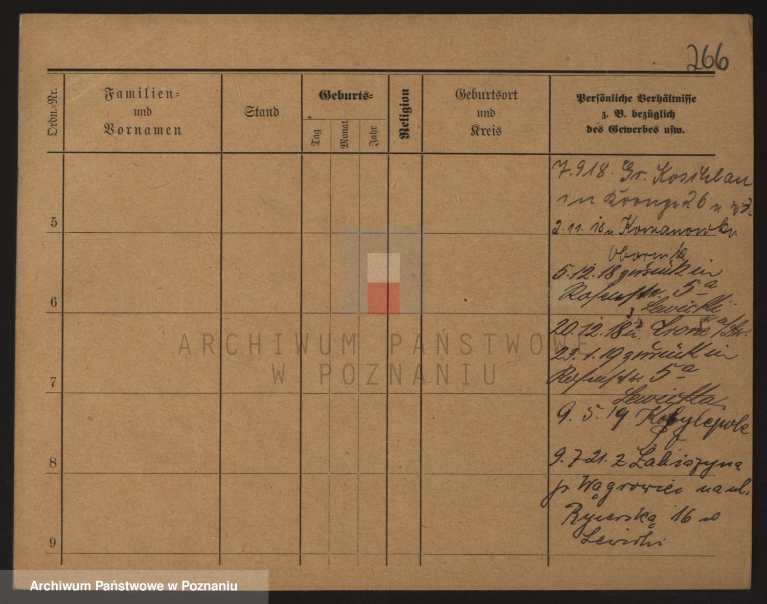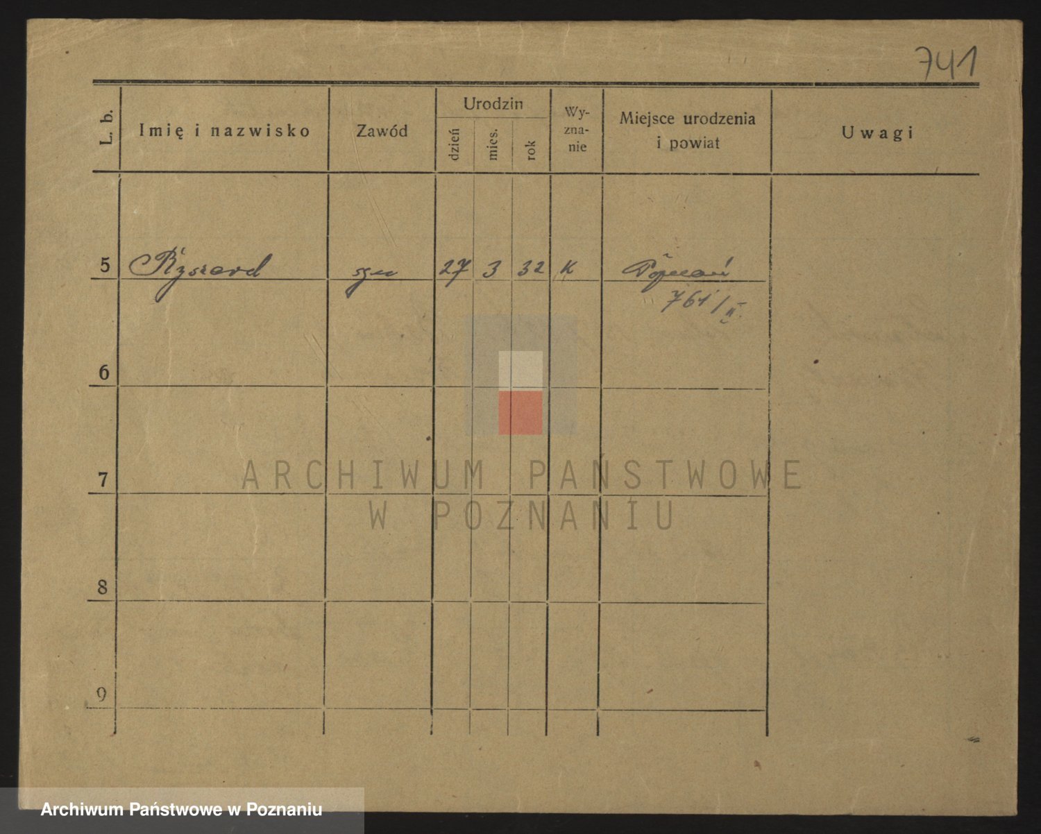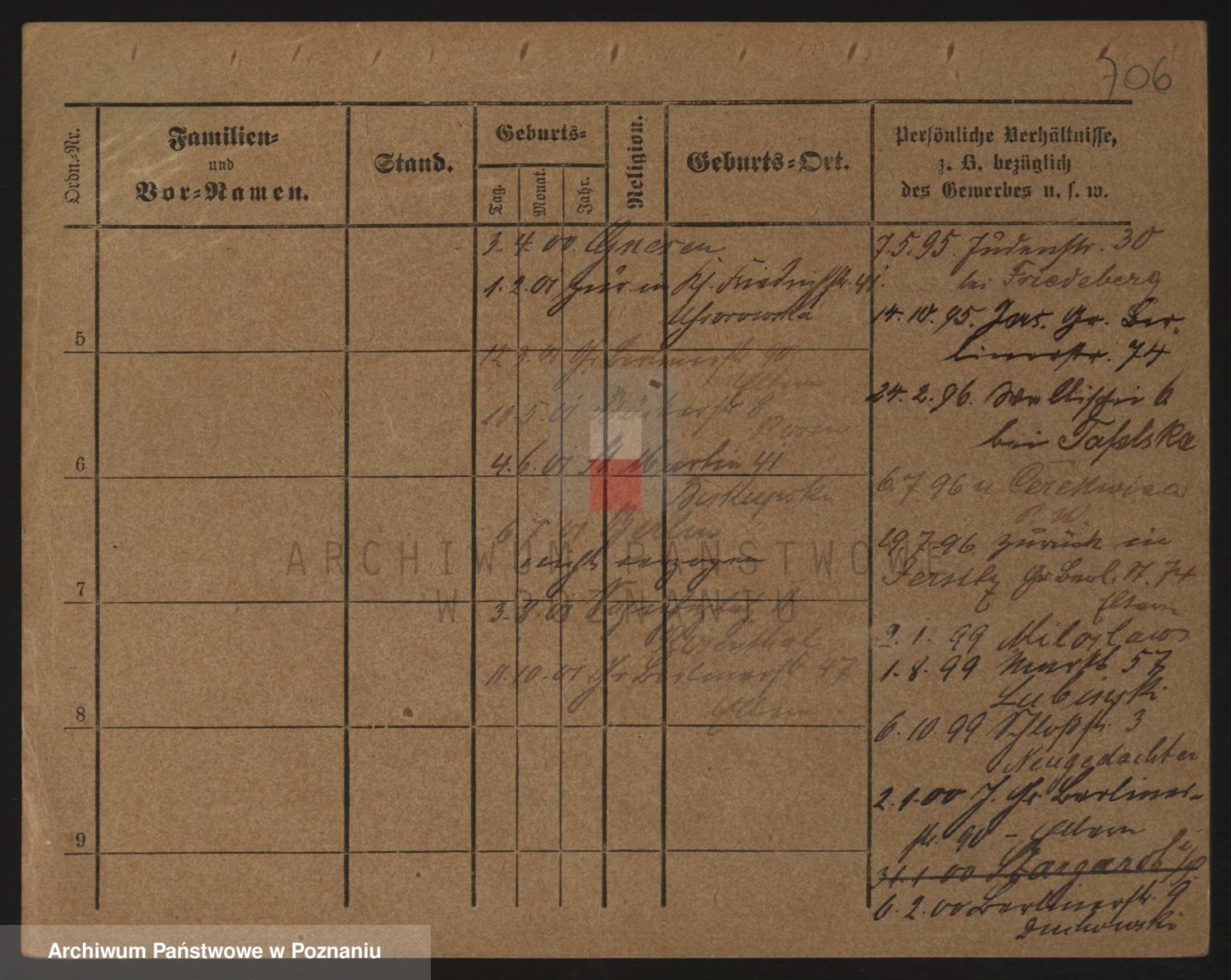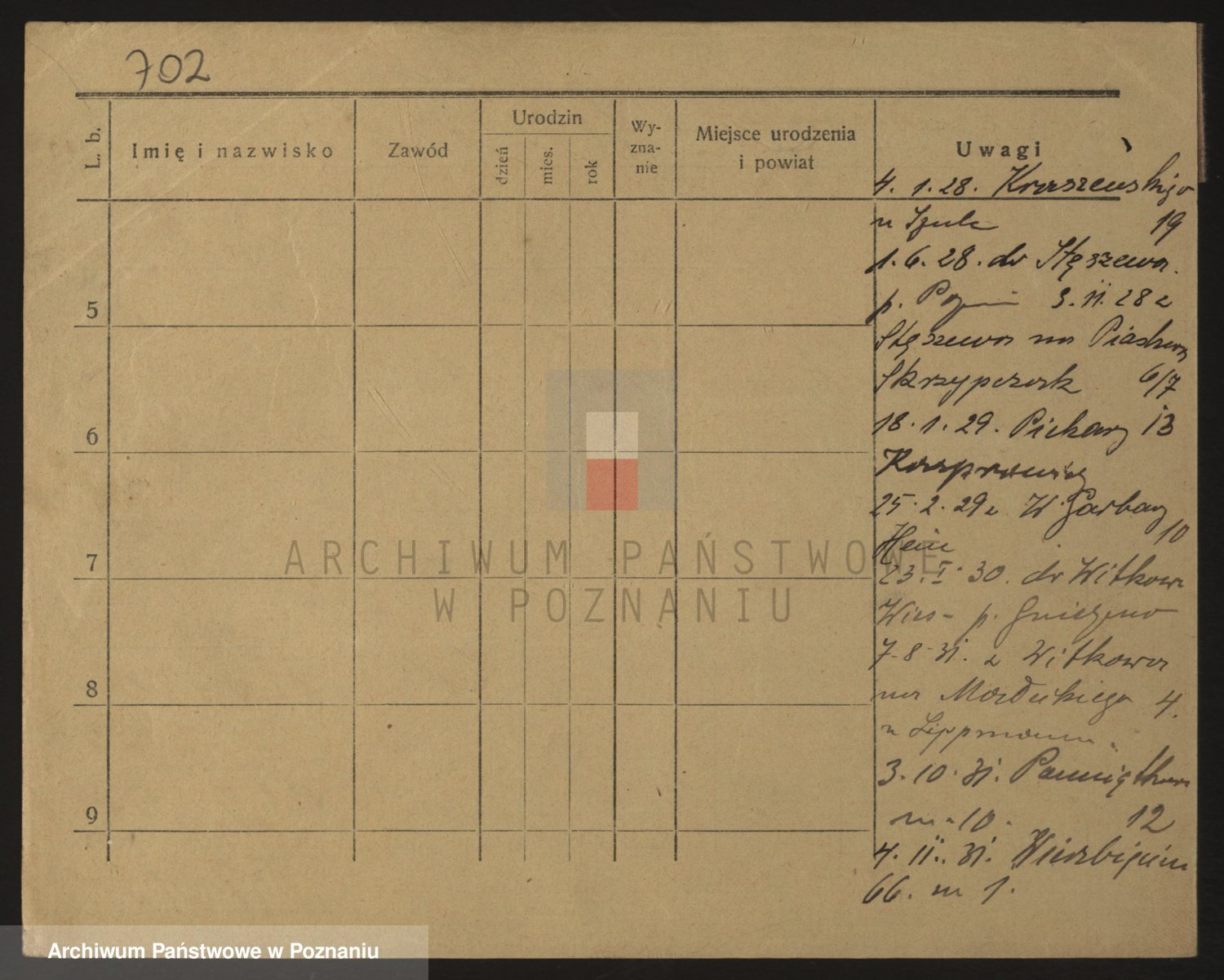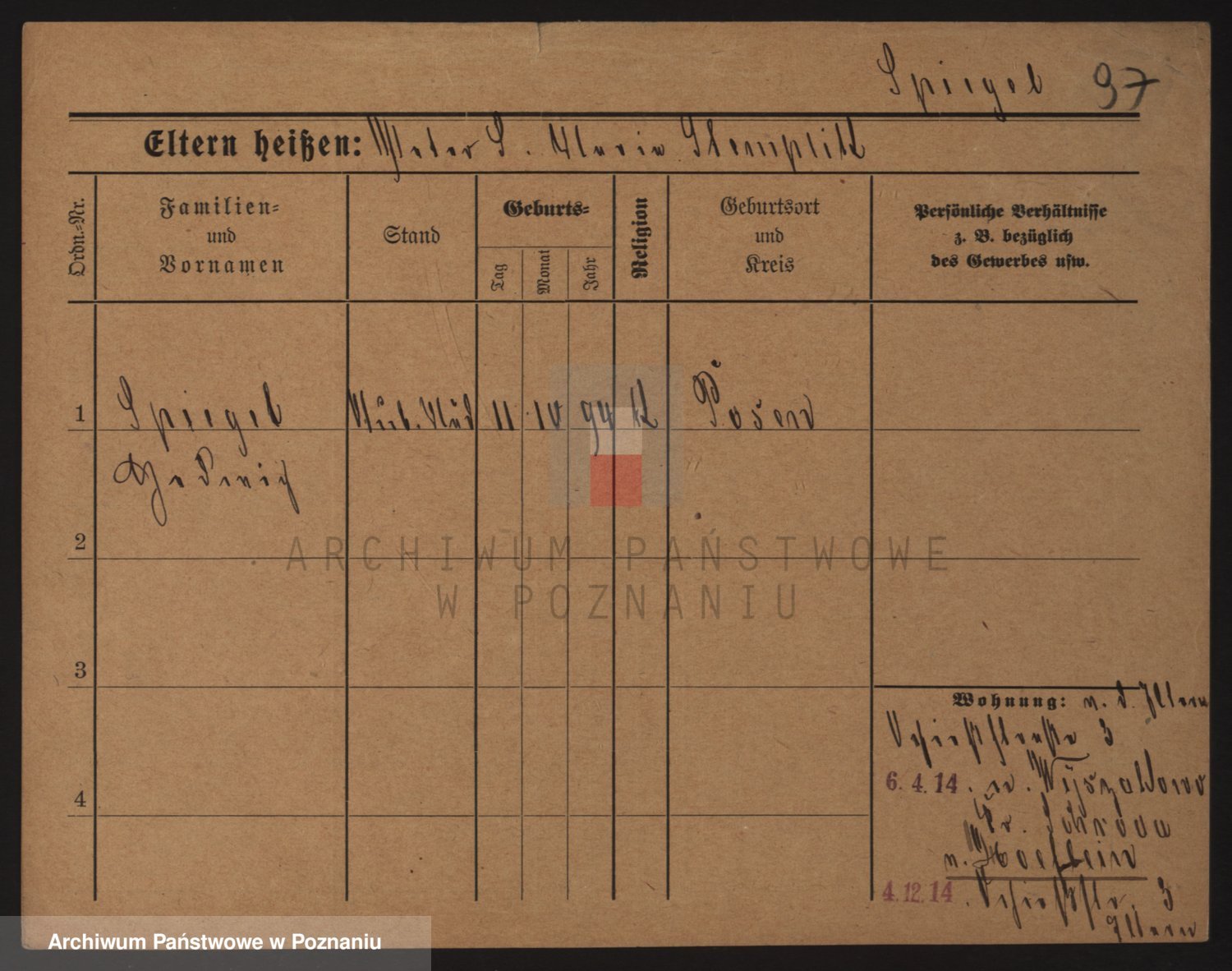 Podgląd karty osobowej dostępny jest po kliknięciu na nazwisko lub ikonkę karty. Można dokonywać powiększenia (ikony na górze) lub przechodzić między kolejnymi skanami (strzałki po bokach).
