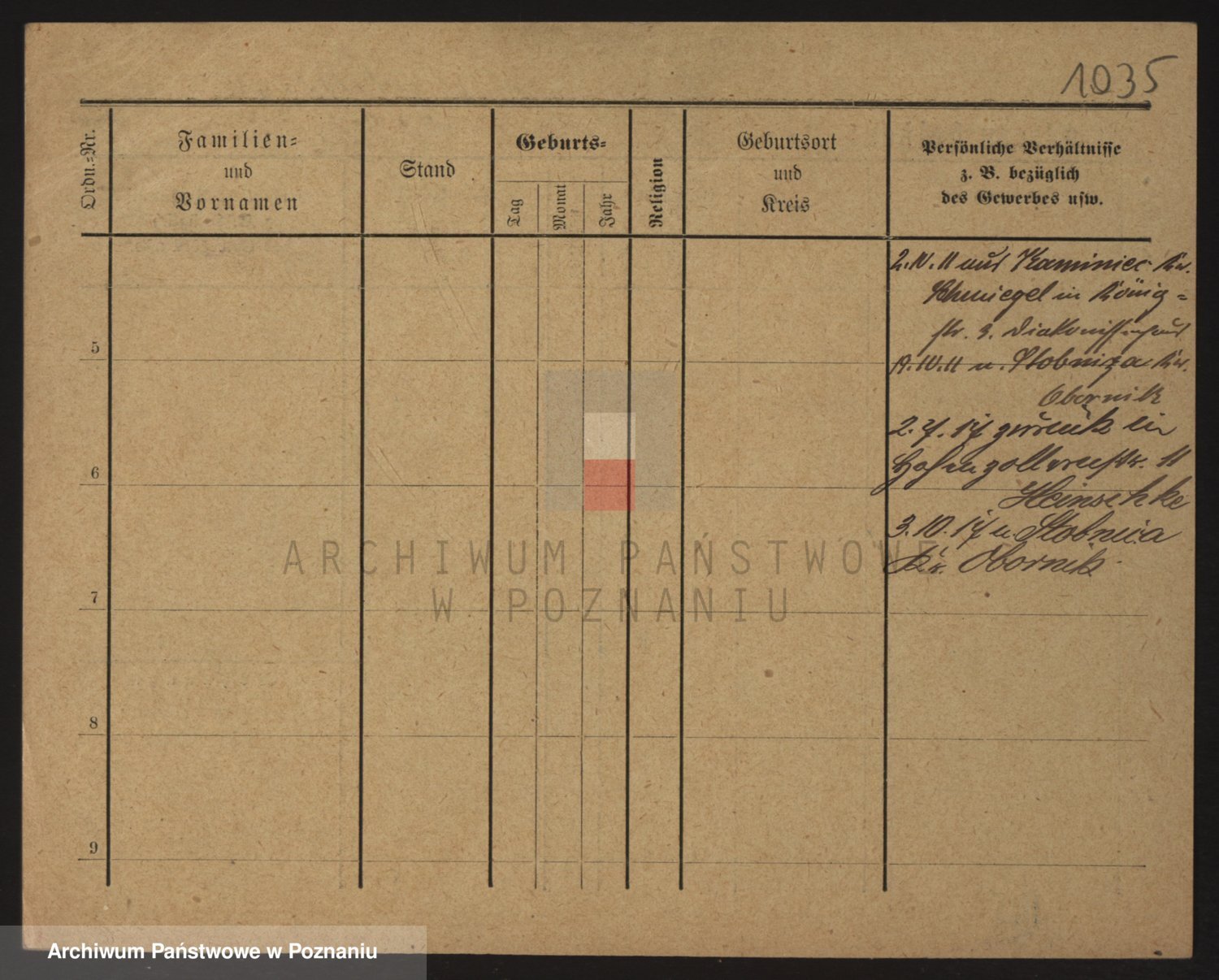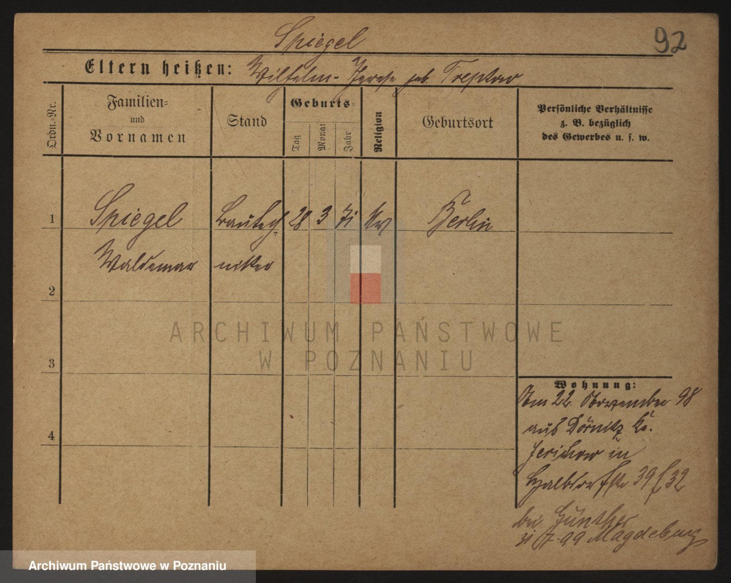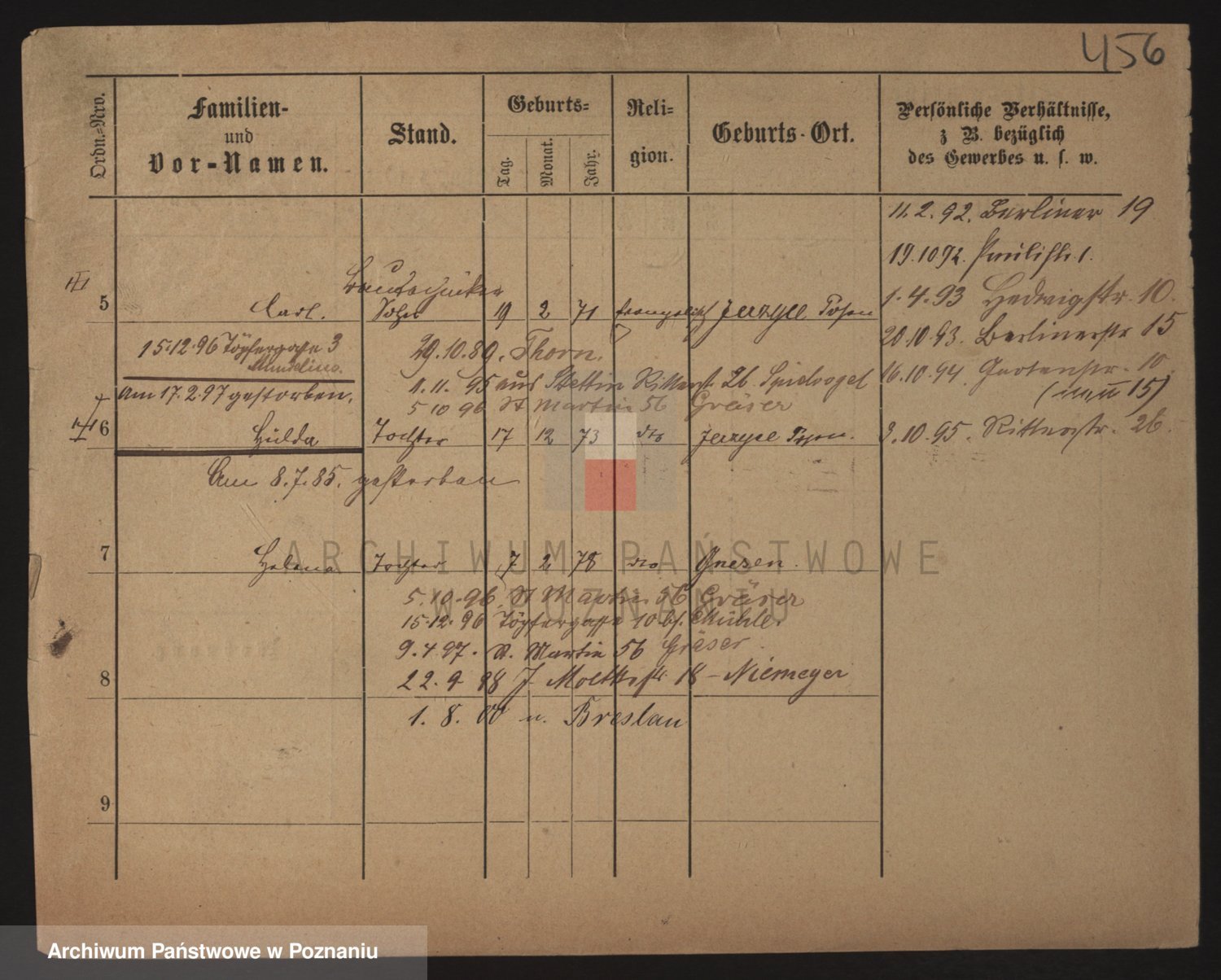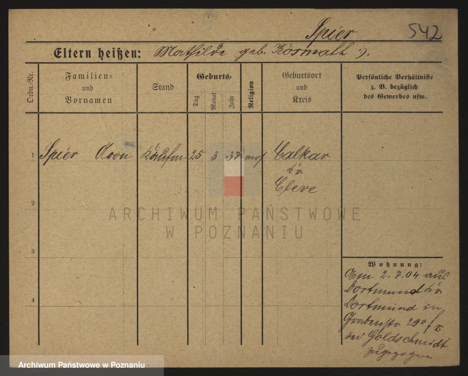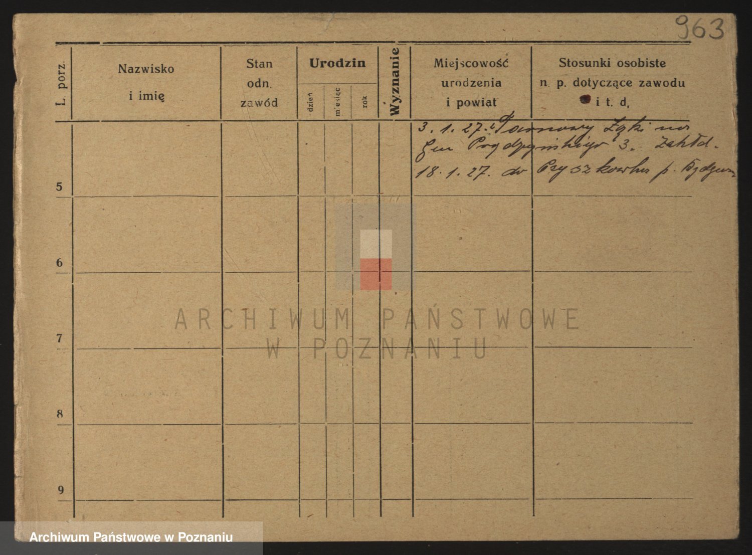 Podgląd karty osobowej dostępny jest po kliknięciu na nazwisko lub ikonkę karty. Można dokonywać powiększenia (ikony na górze) lub przechodzić między kolejnymi skanami (strzałki po bokach).