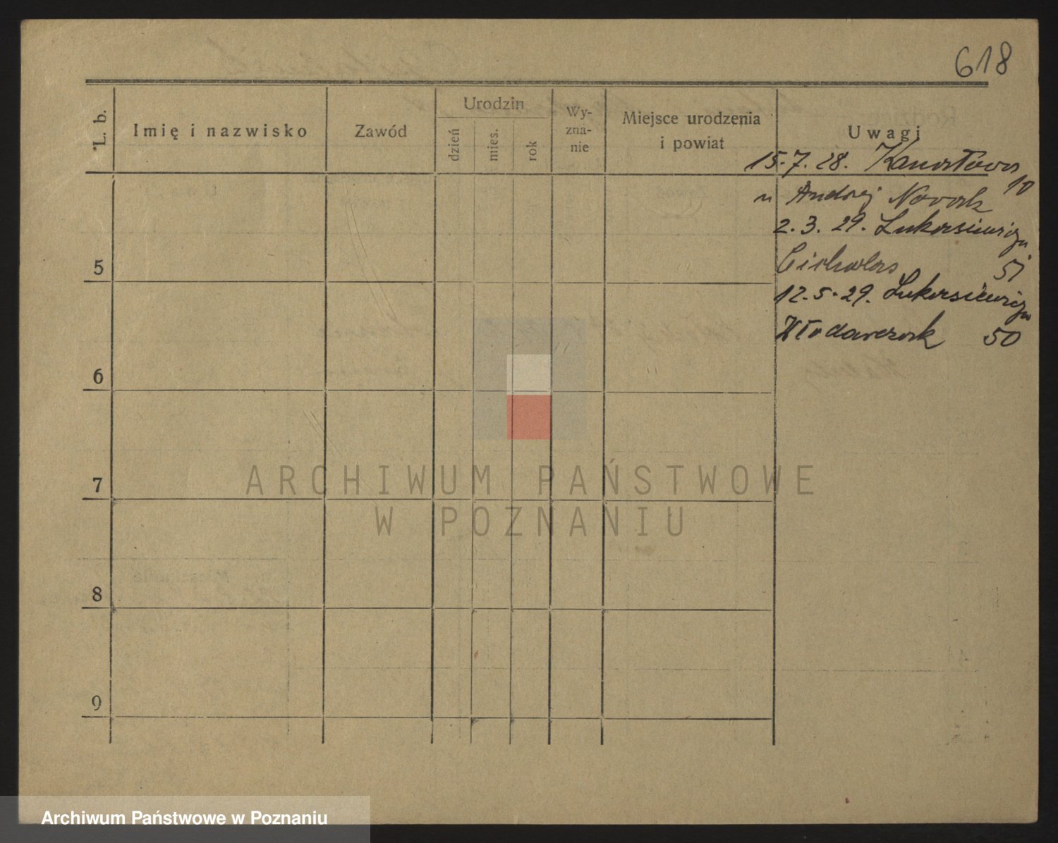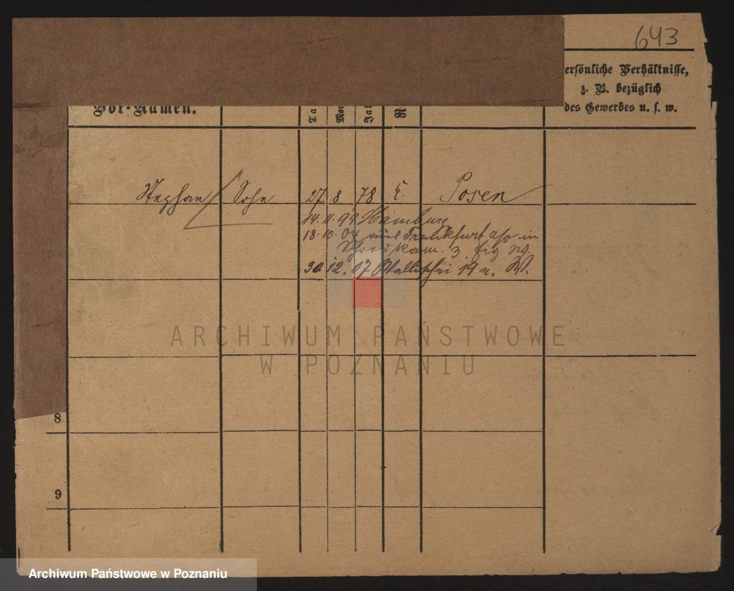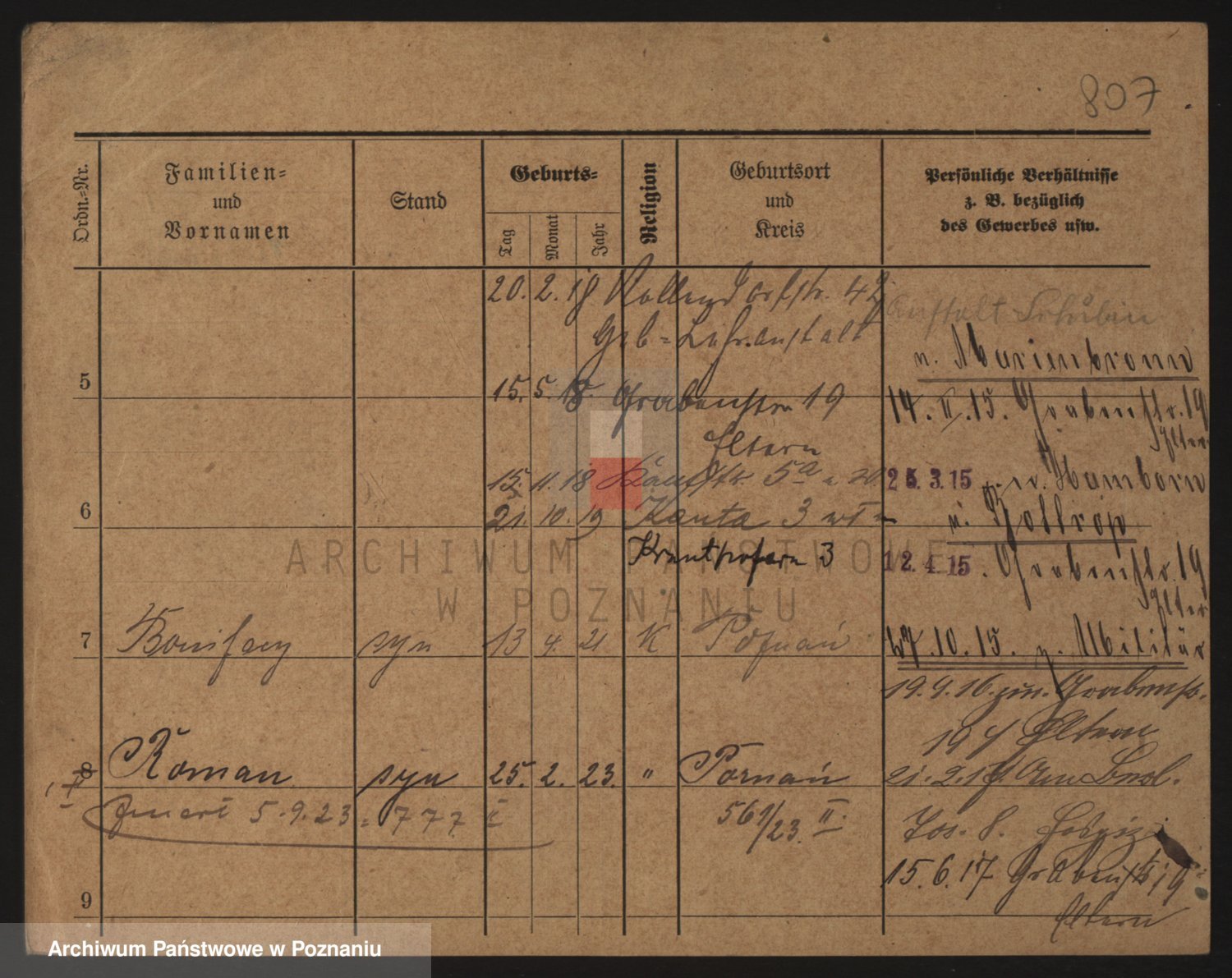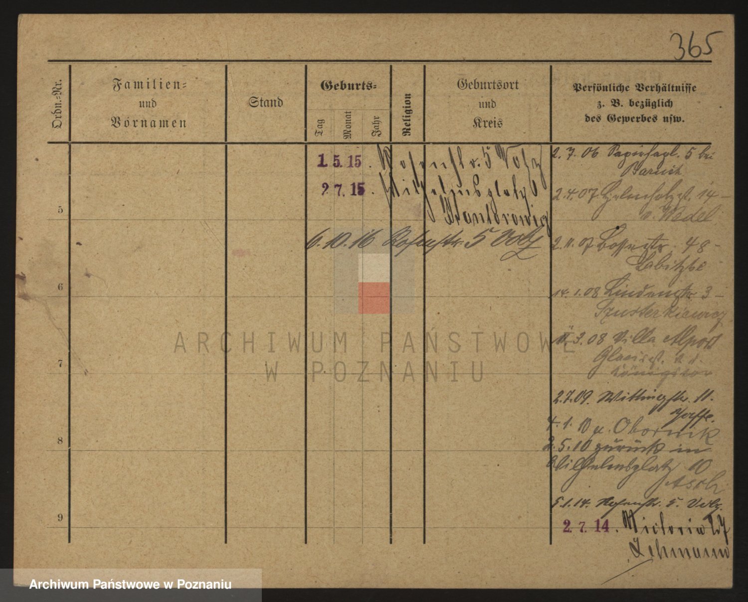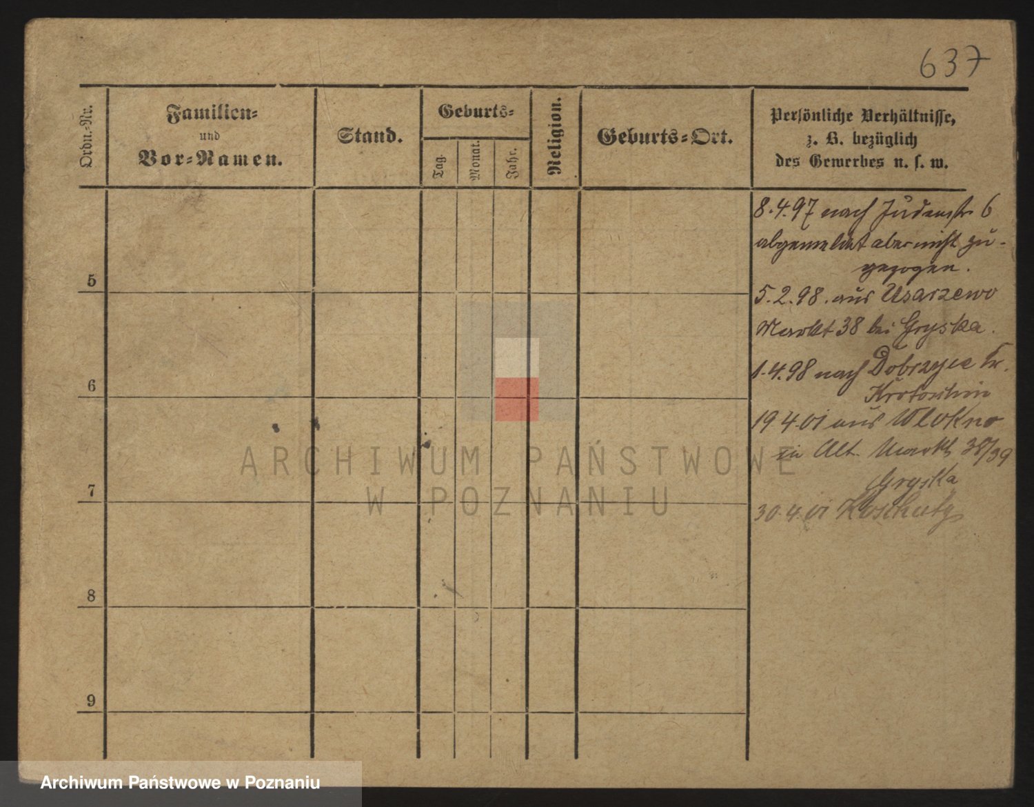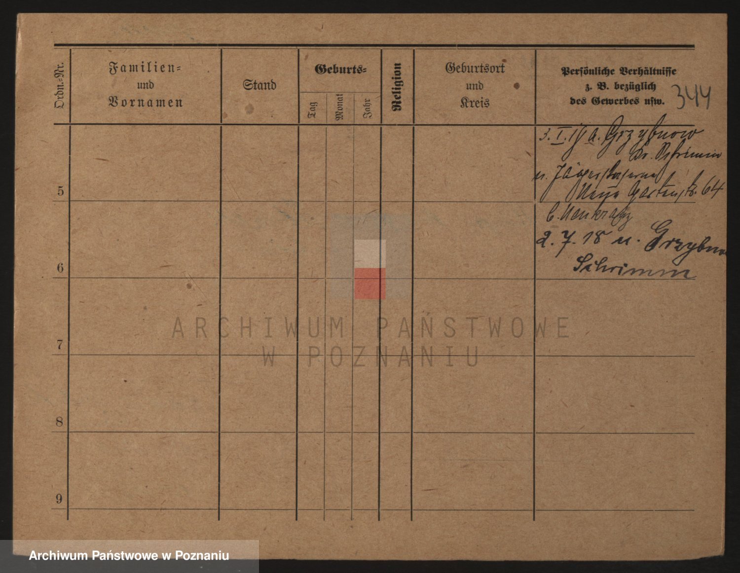 Podgląd karty osobowej dostępny jest po kliknięciu na nazwisko lub ikonkę karty. Można dokonywać powiększenia (ikony na górze) lub przechodzić między kolejnymi skanami (strzałki po bokach).