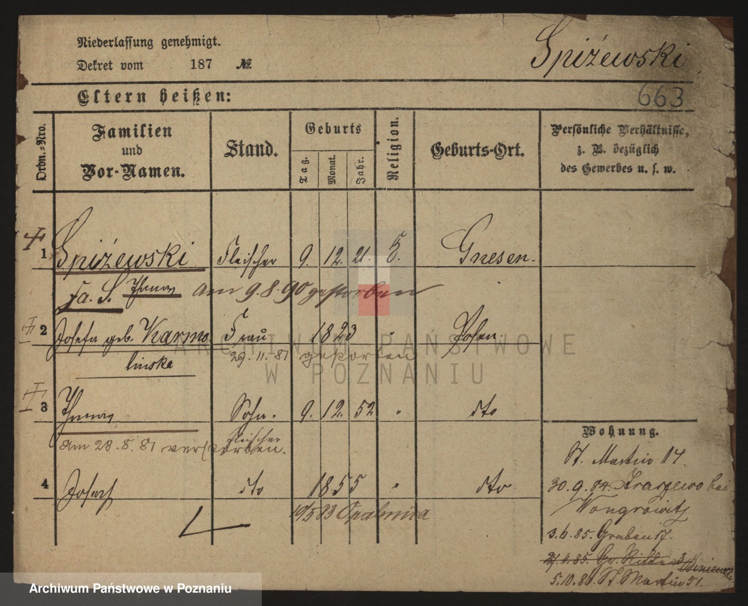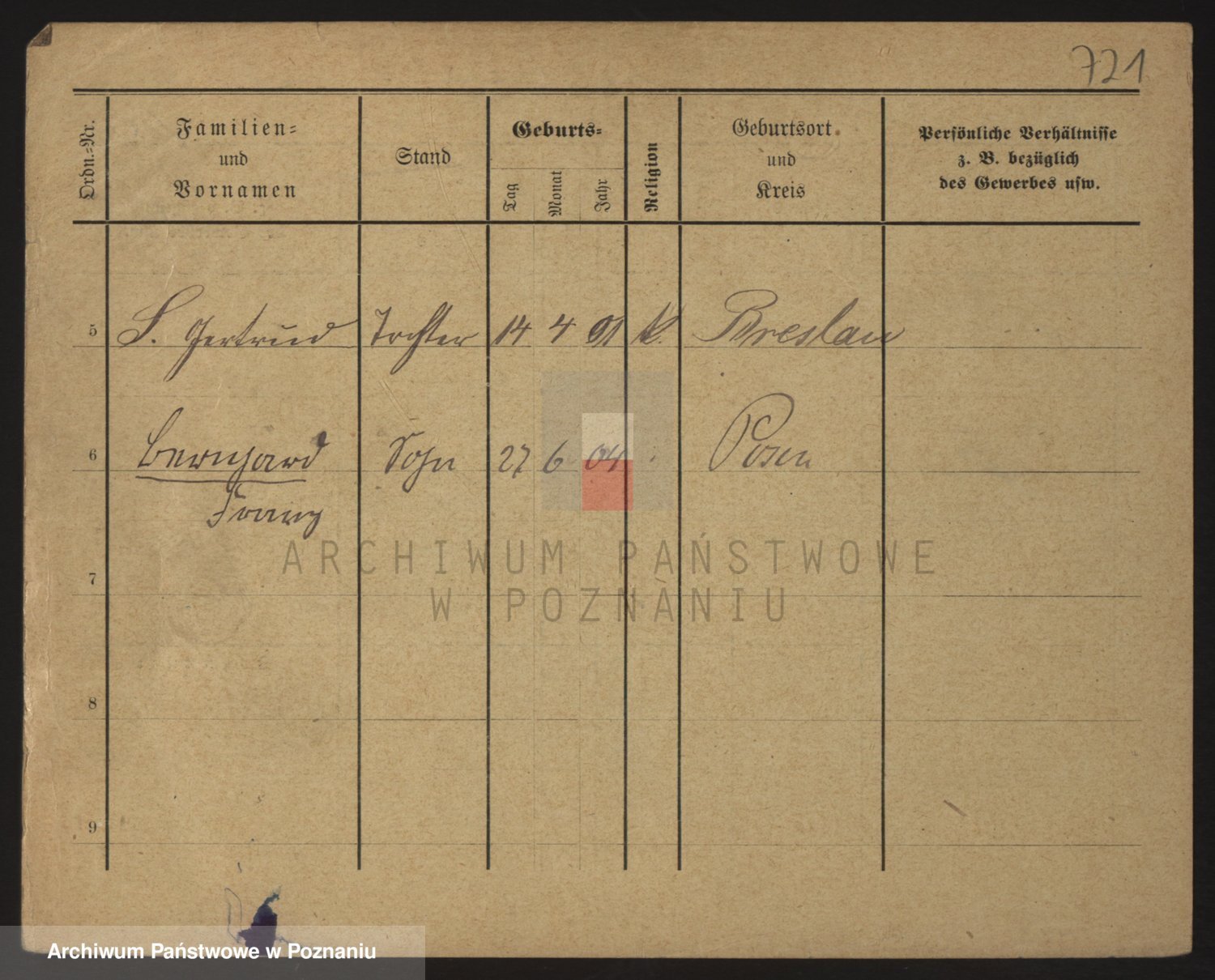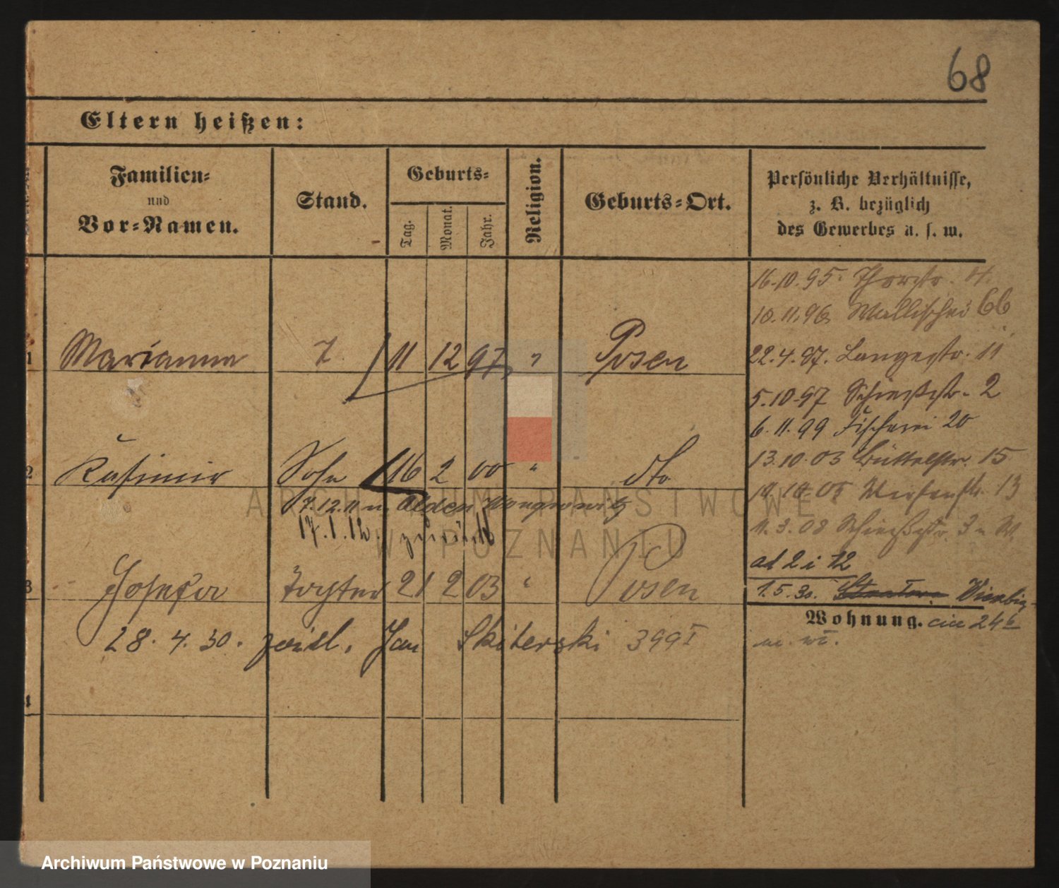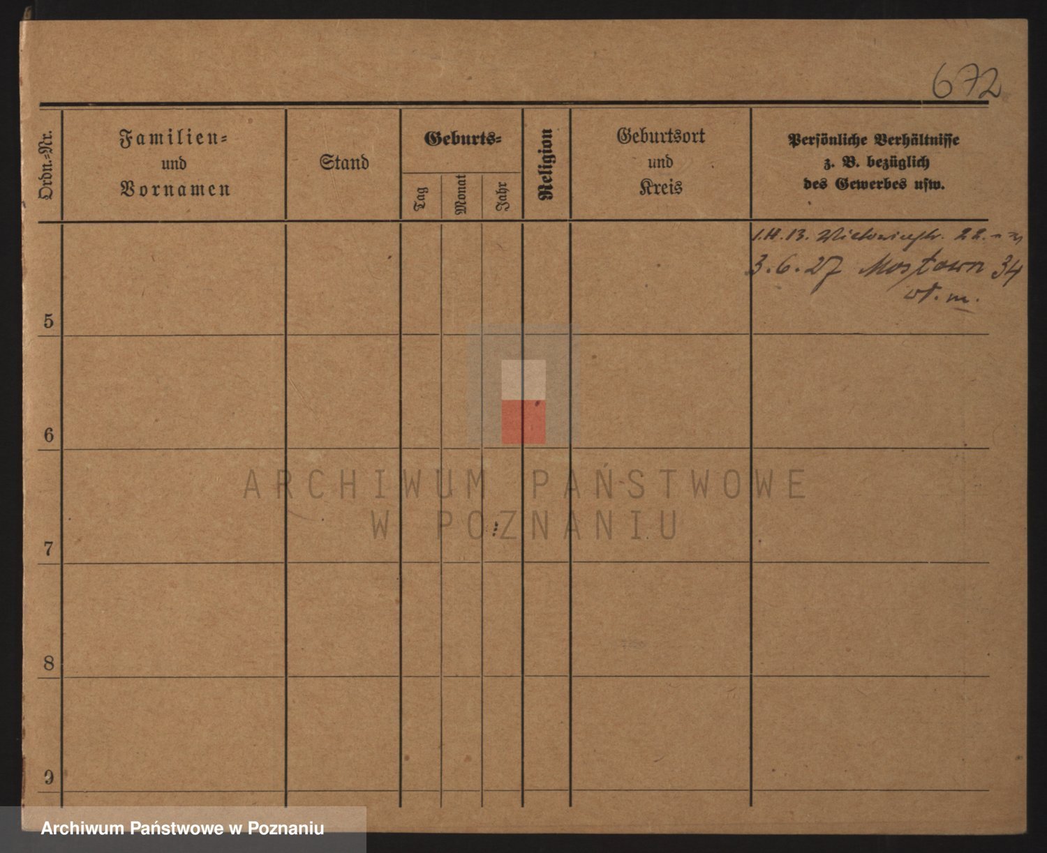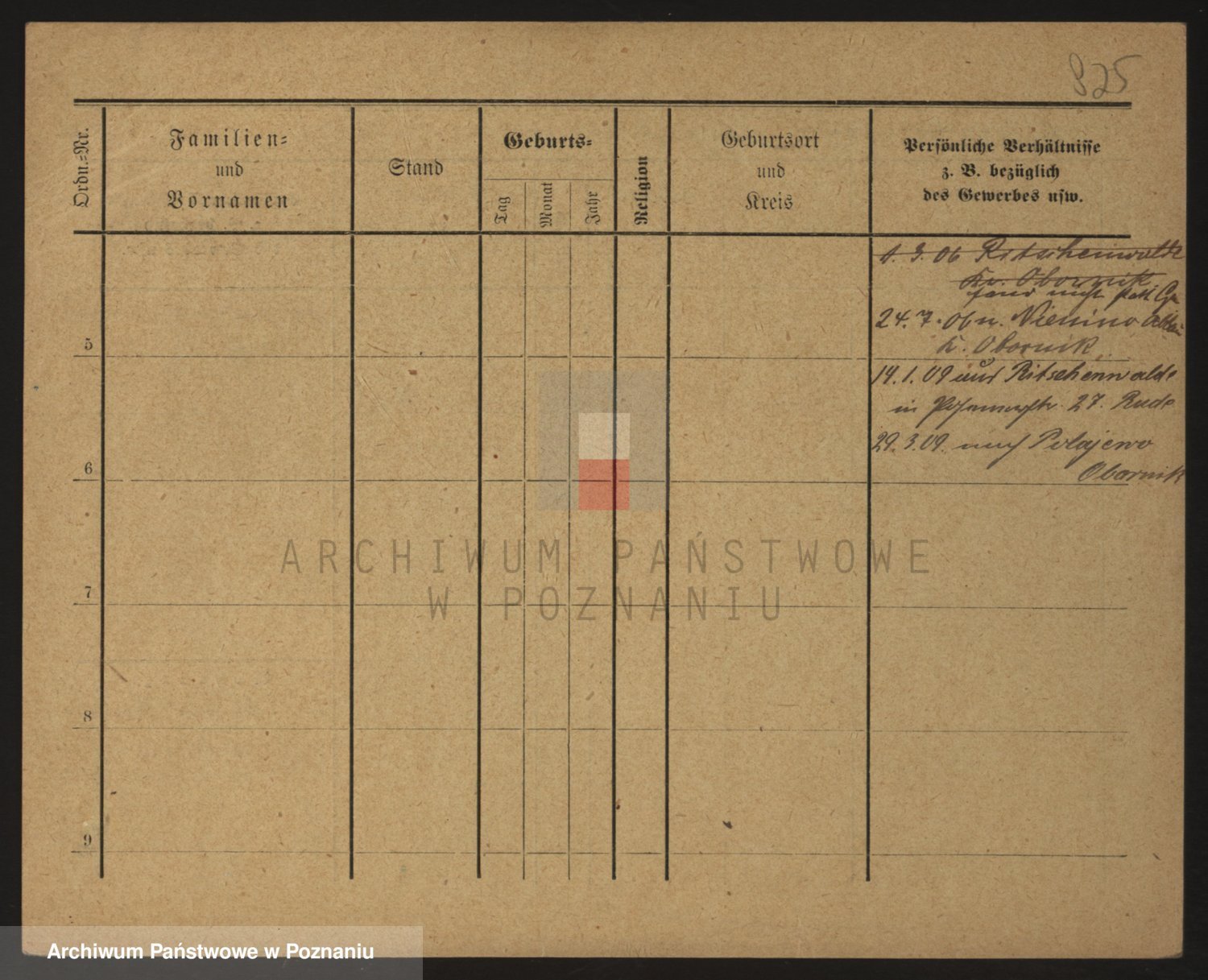 Podgląd karty osobowej dostępny jest po kliknięciu na nazwisko lub ikonkę karty. Można dokonywać powiększenia (ikony na górze) lub przechodzić między kolejnymi skanami (strzałki po bokach).