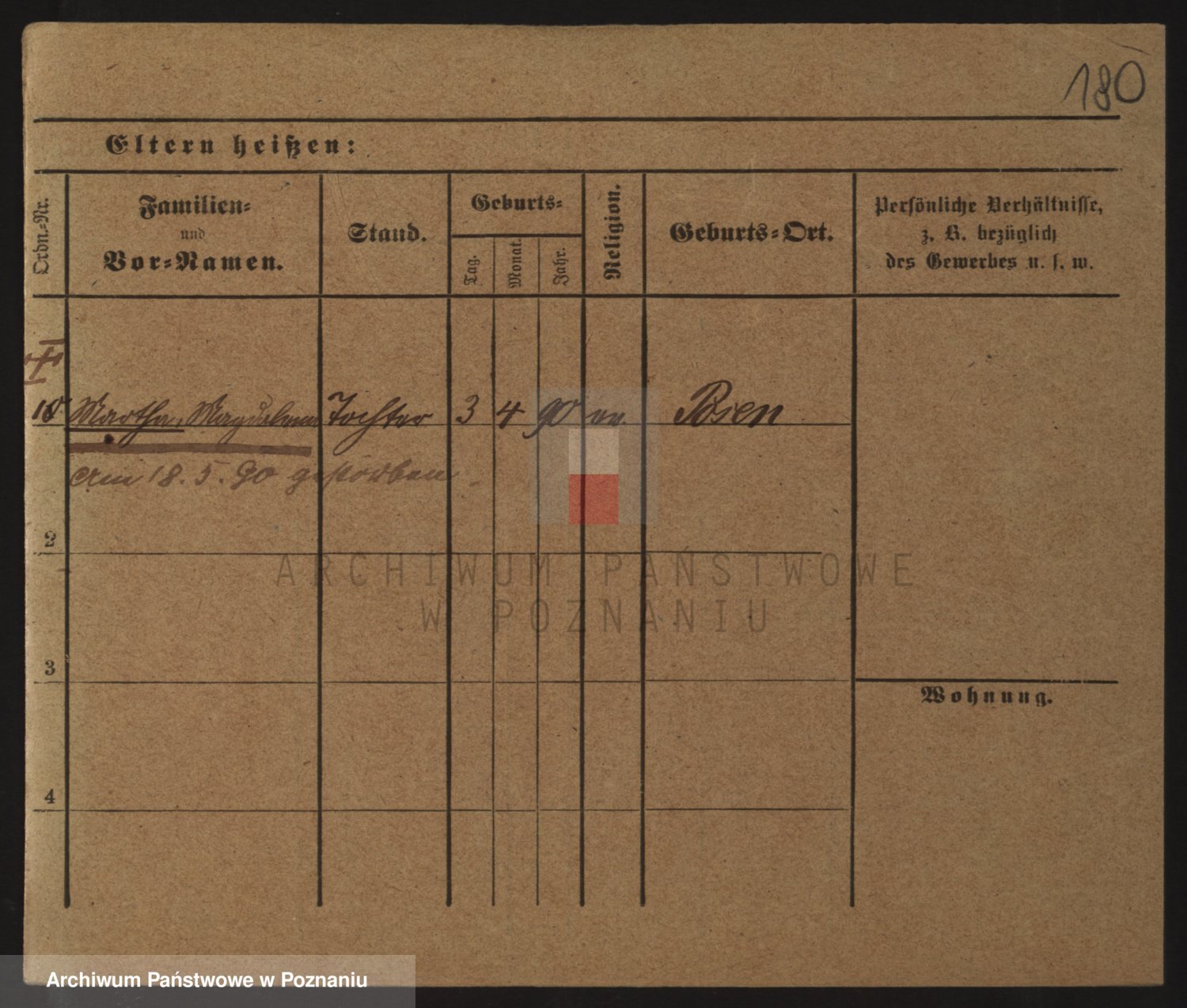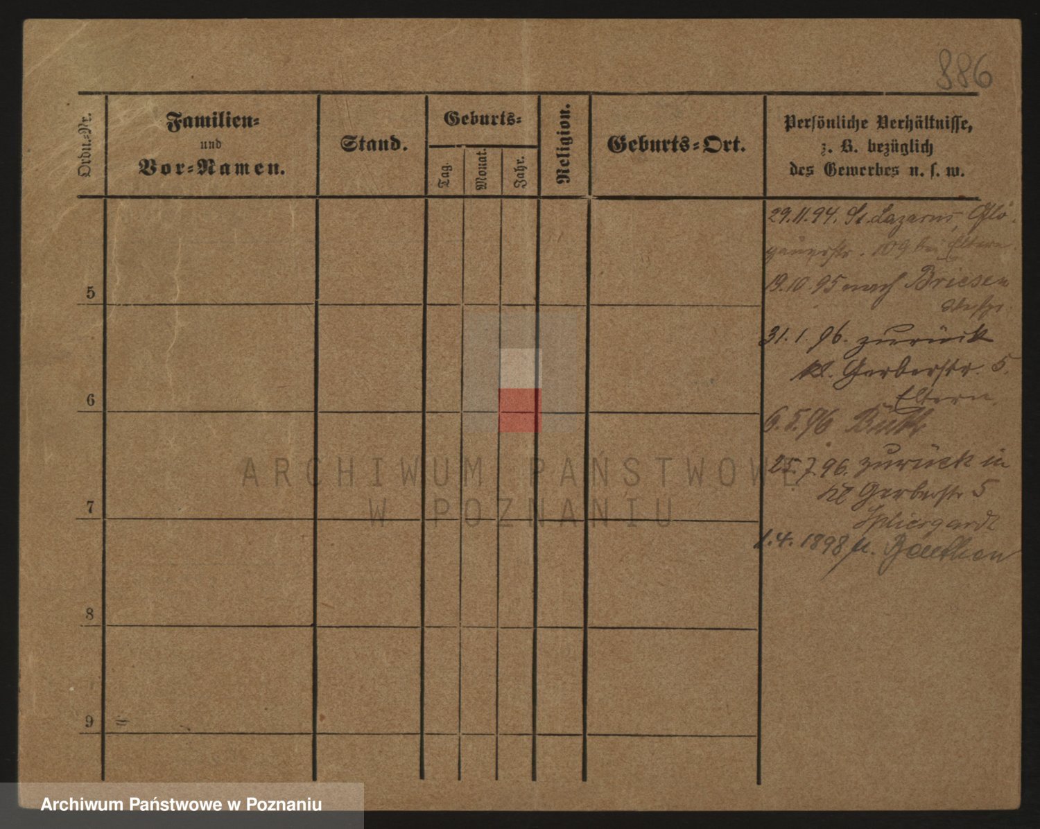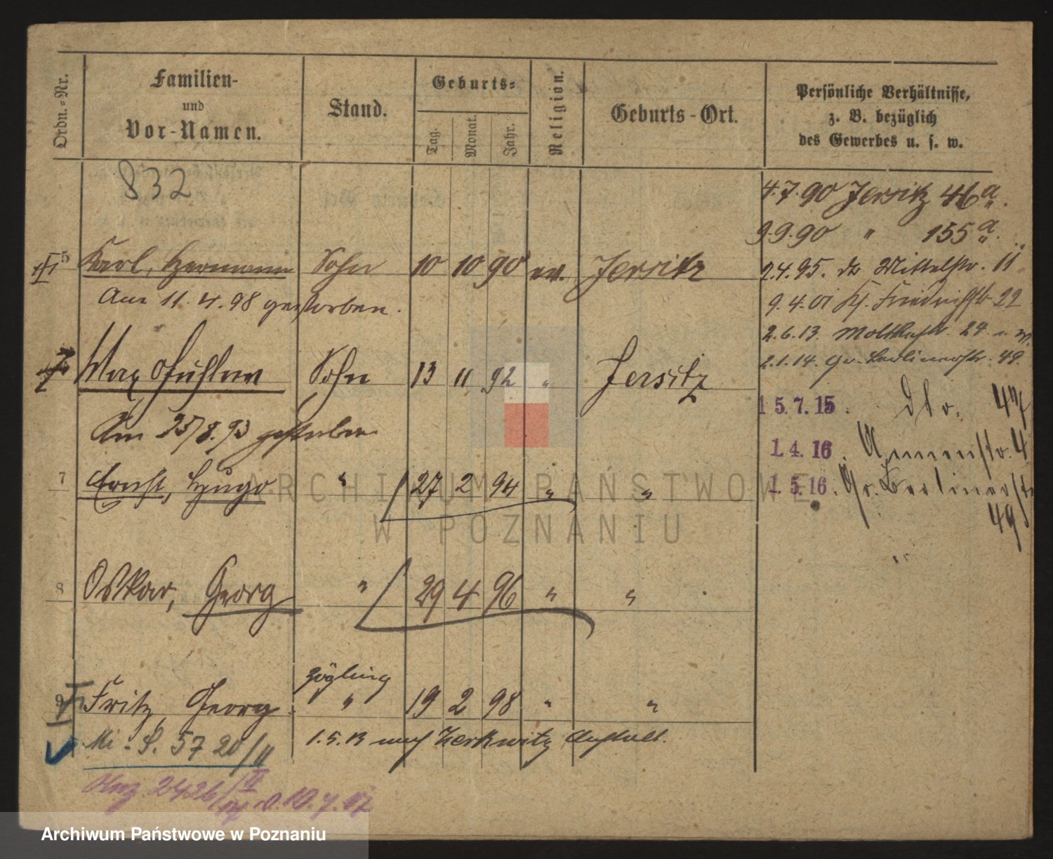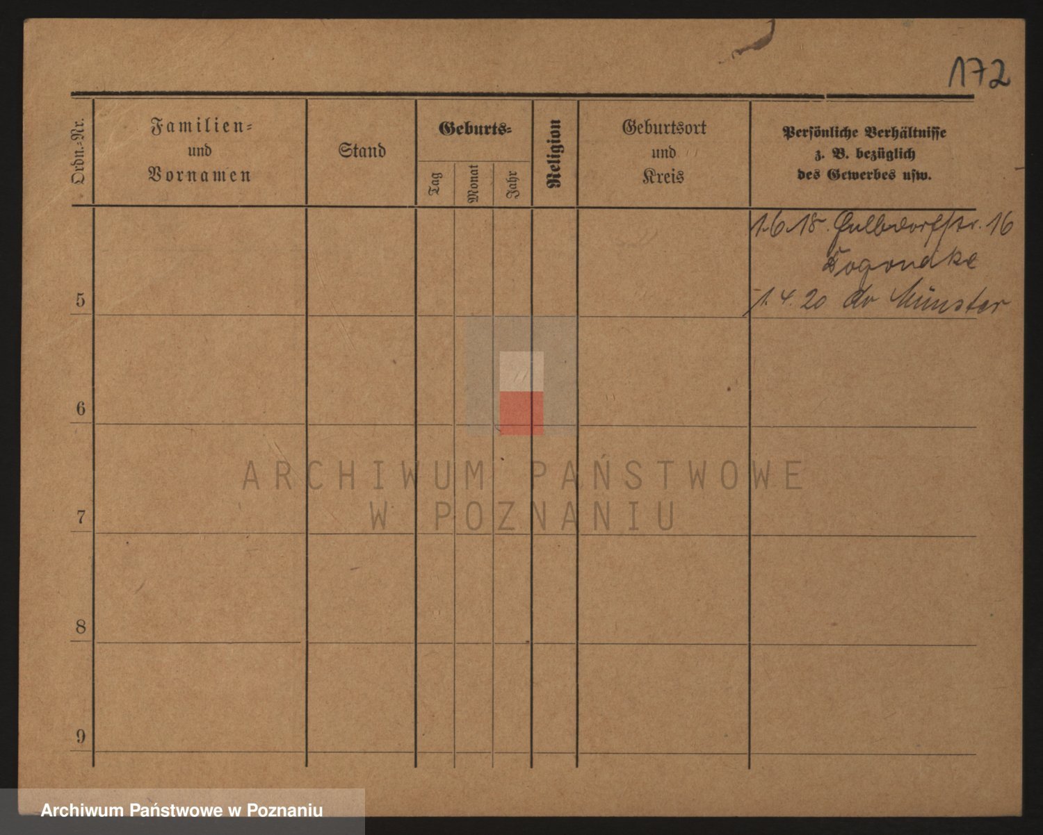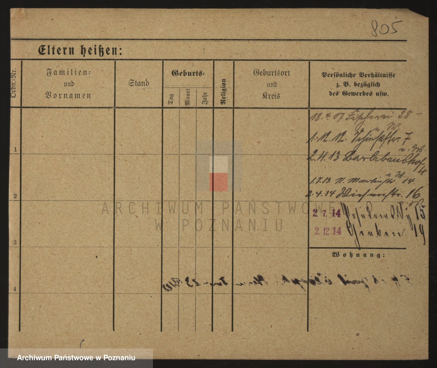 Podgląd karty osobowej dostępny jest po kliknięciu na nazwisko lub ikonkę karty. Można dokonywać powiększenia (ikony na górze) lub przechodzić między kolejnymi skanami (strzałki po bokach).
