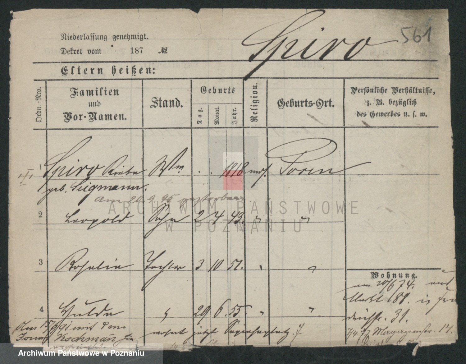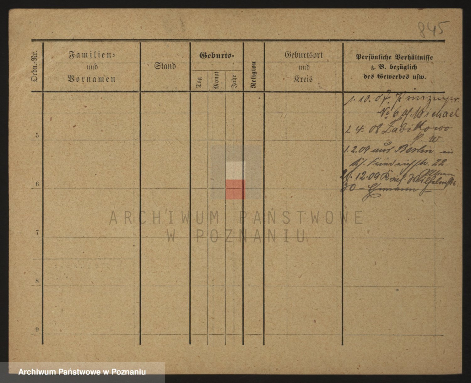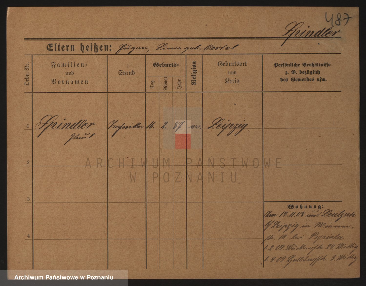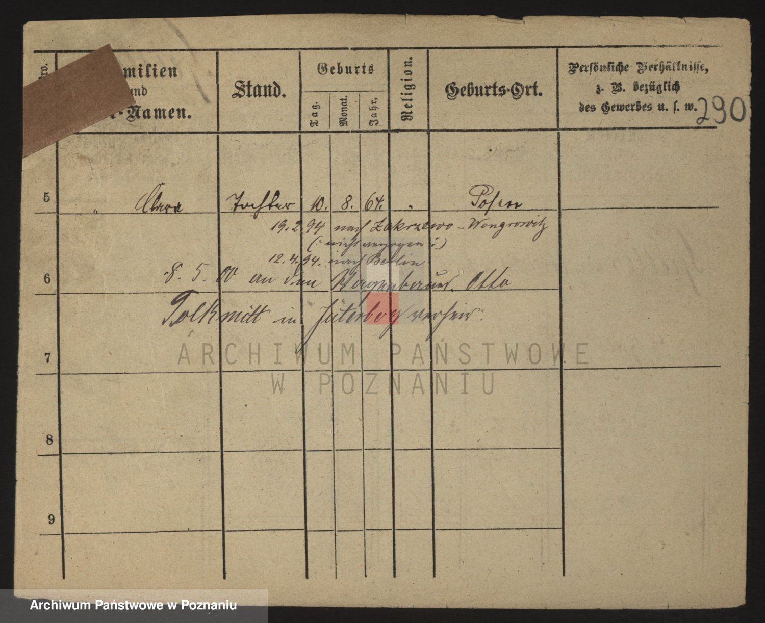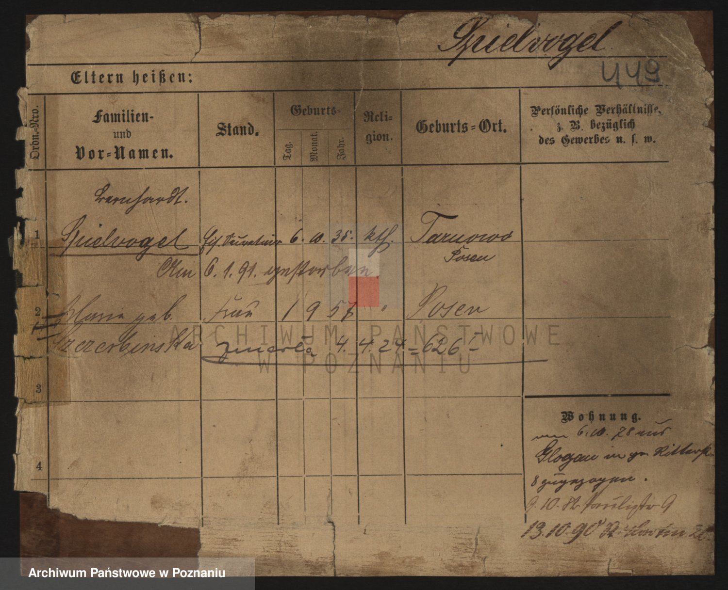 Podgląd karty osobowej dostępny jest po kliknięciu na nazwisko lub ikonkę karty. Można dokonywać powiększenia (ikony na górze) lub przechodzić między kolejnymi skanami (strzałki po bokach).
