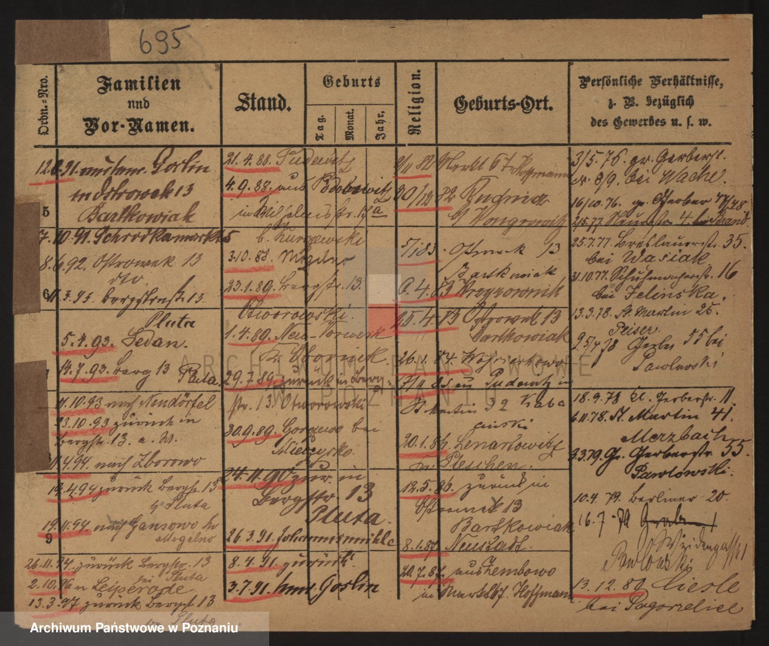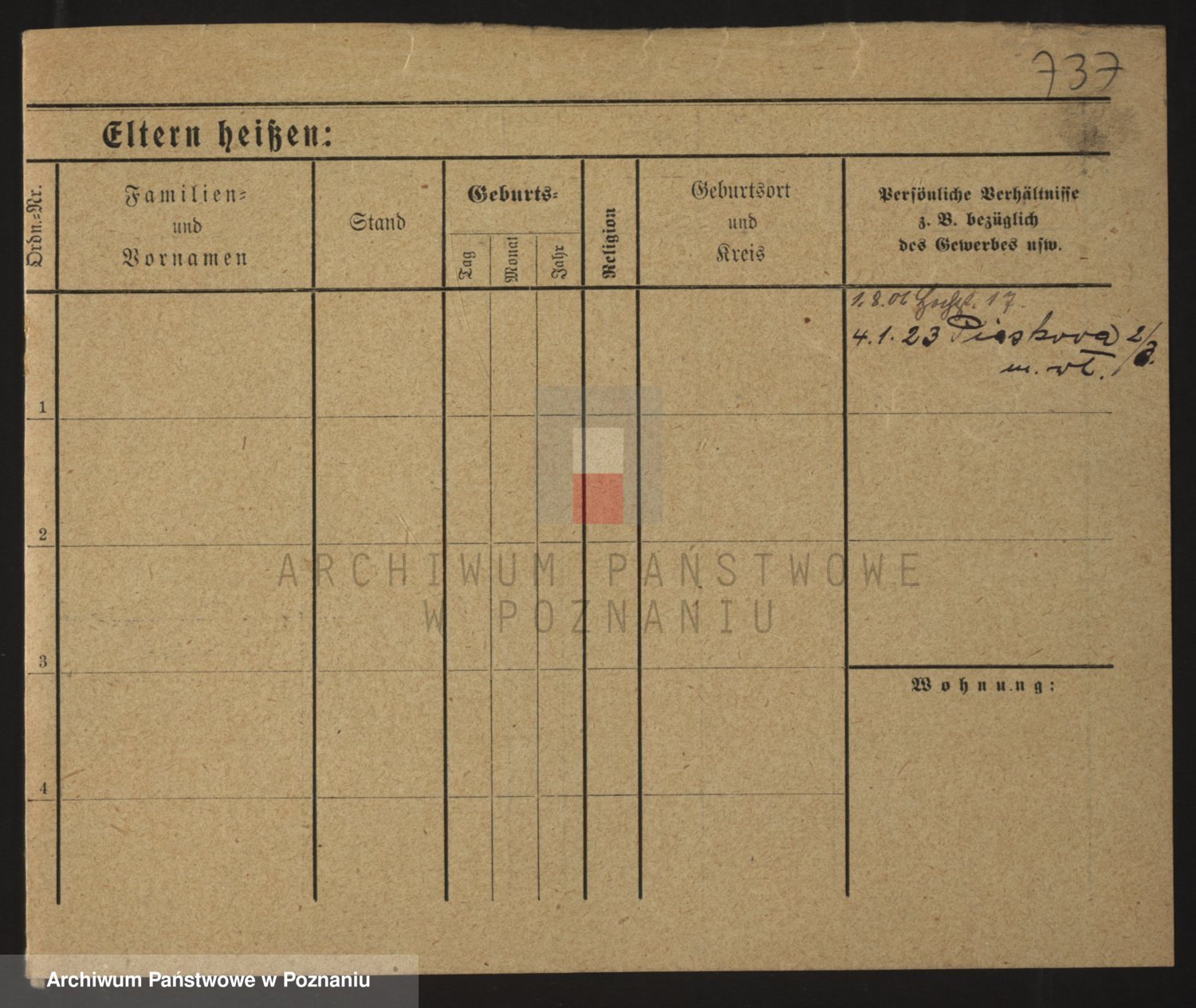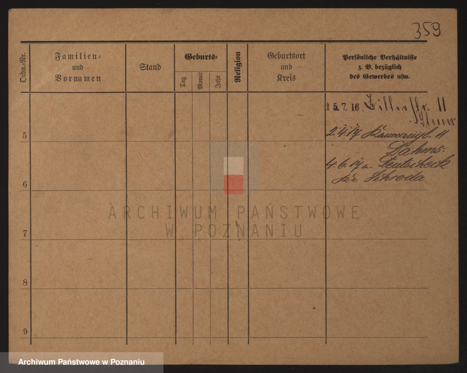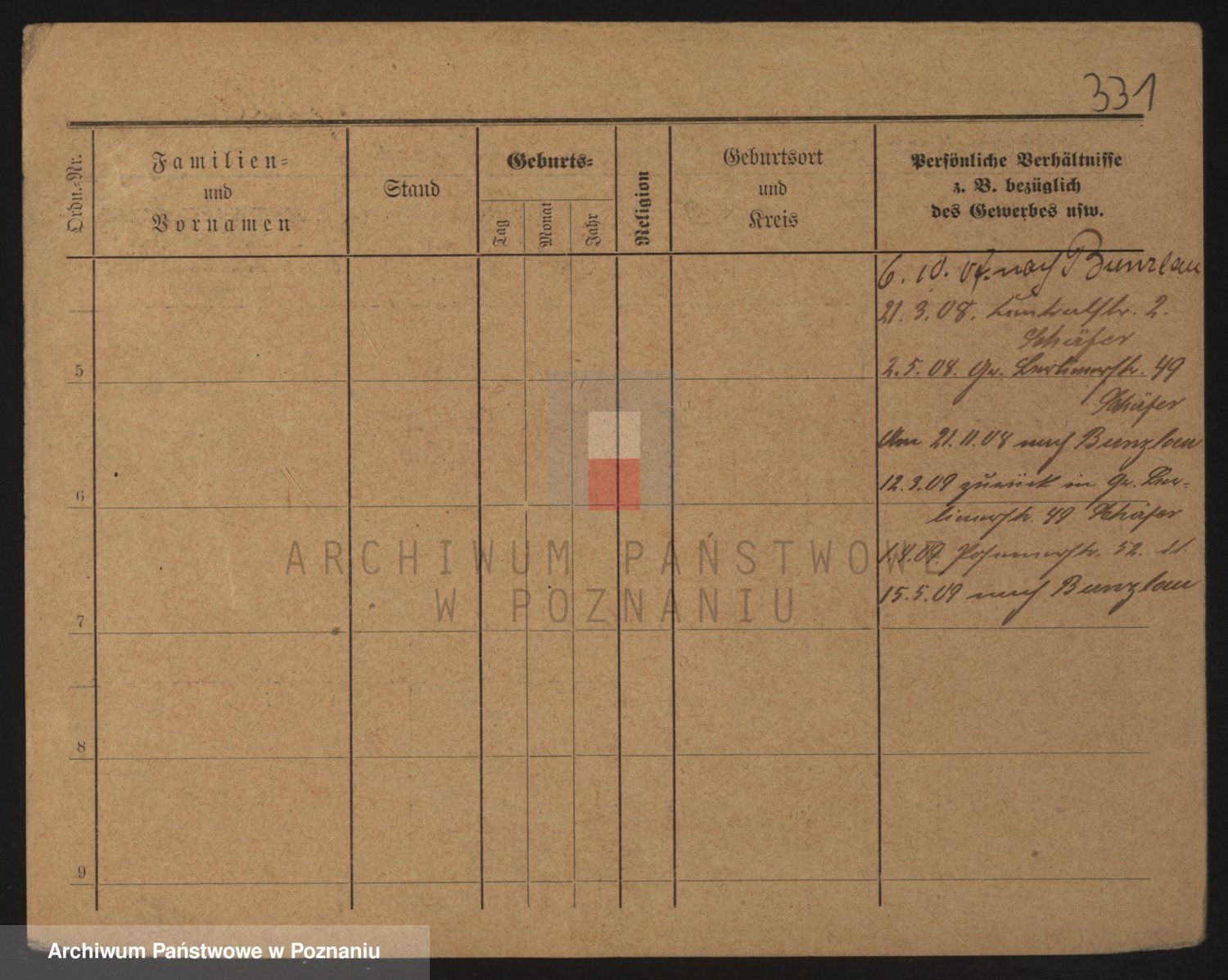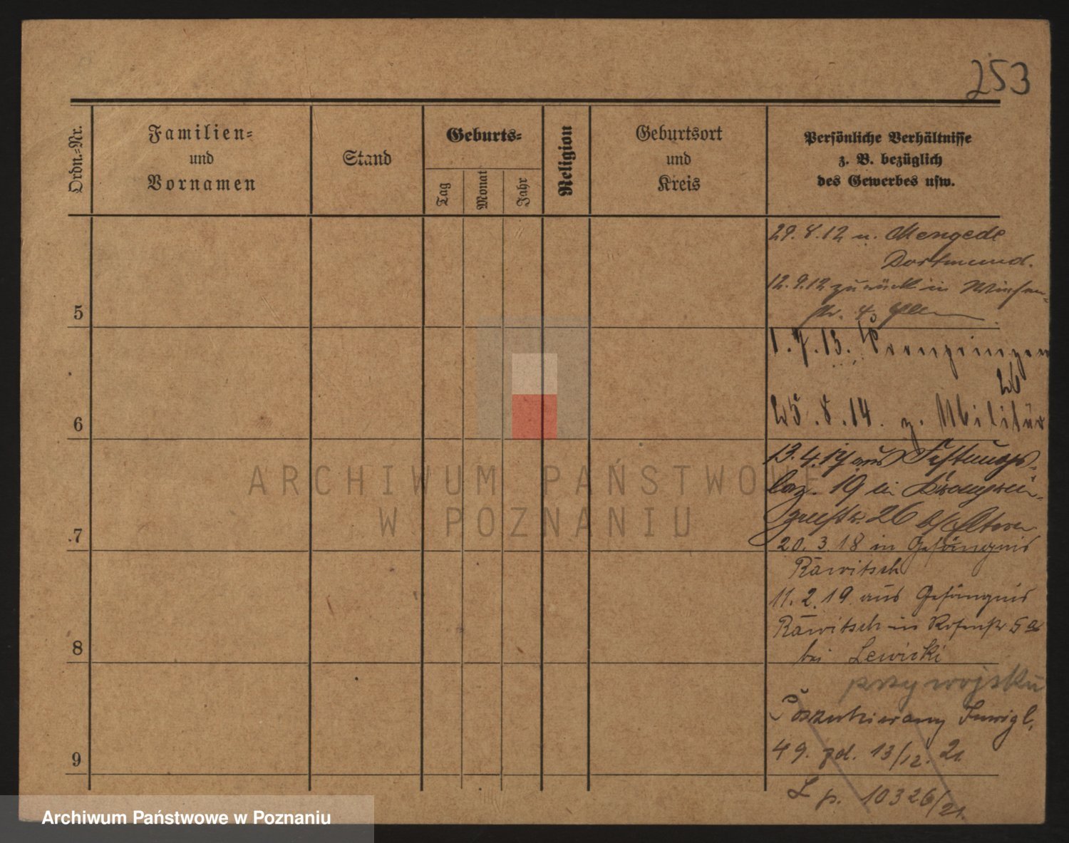 Podgląd karty osobowej dostępny jest po kliknięciu na nazwisko lub ikonkę karty. Można dokonywać powiększenia (ikony na górze) lub przechodzić między kolejnymi skanami (strzałki po bokach).