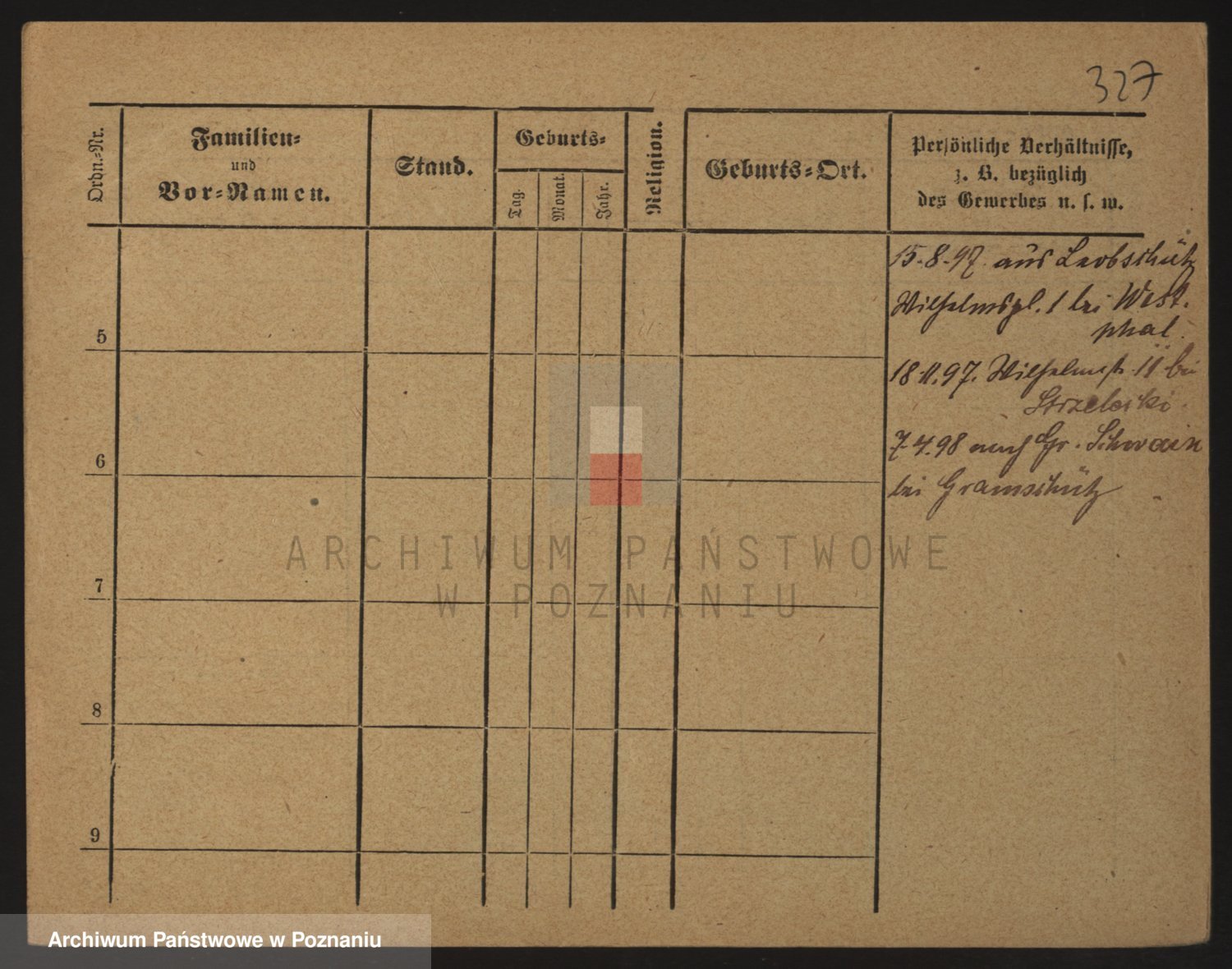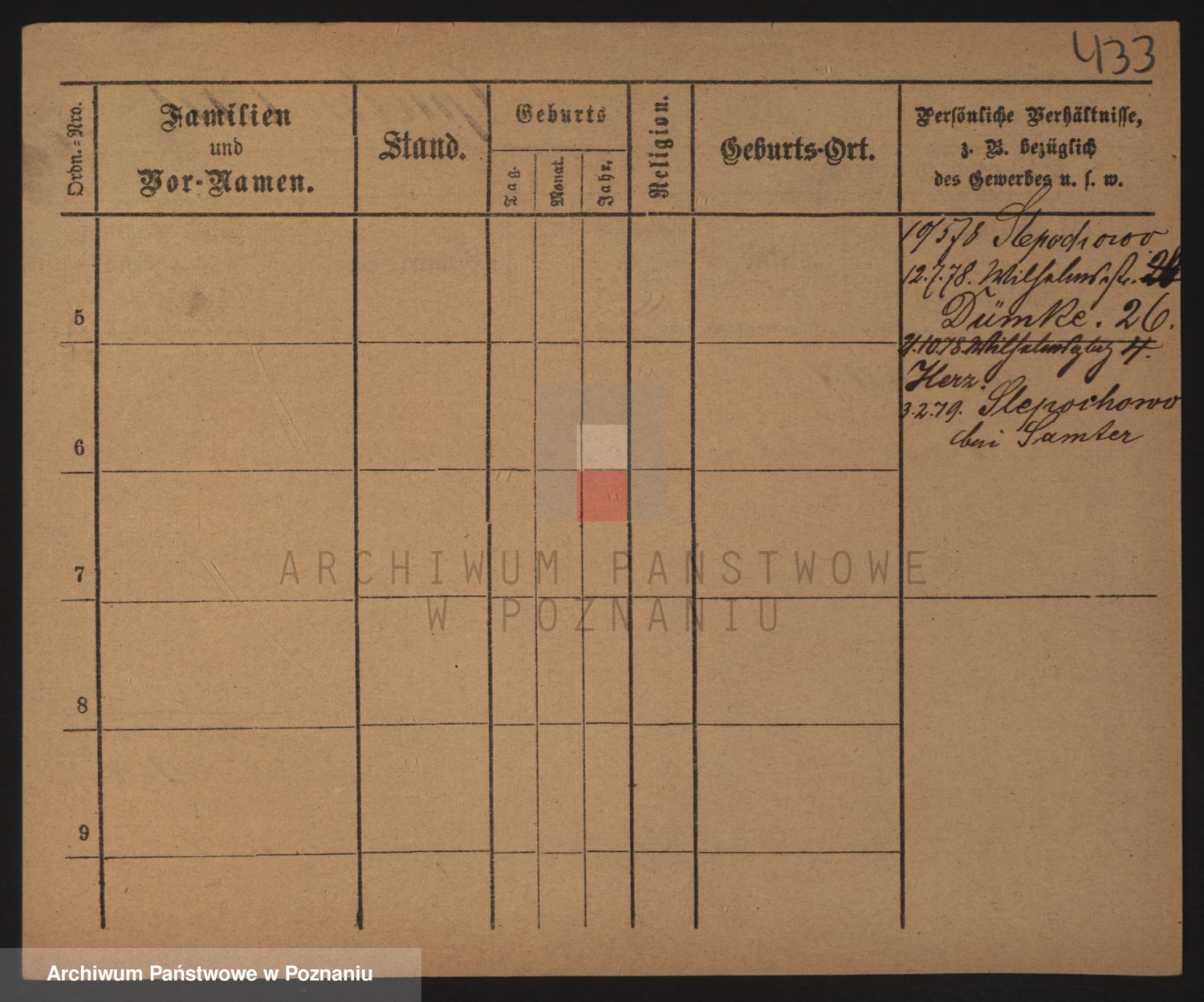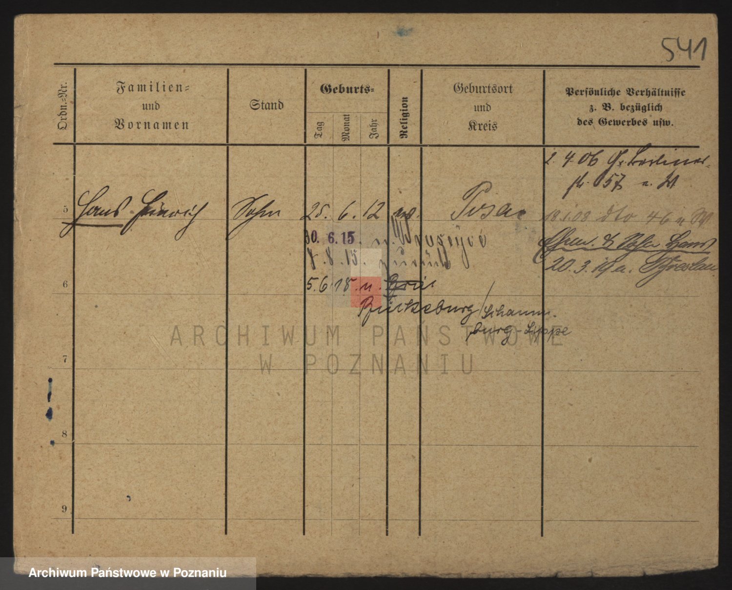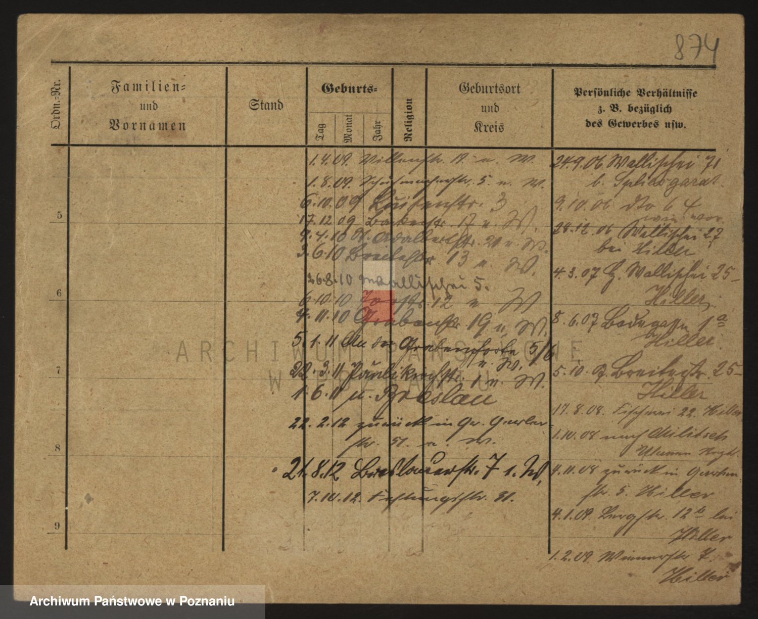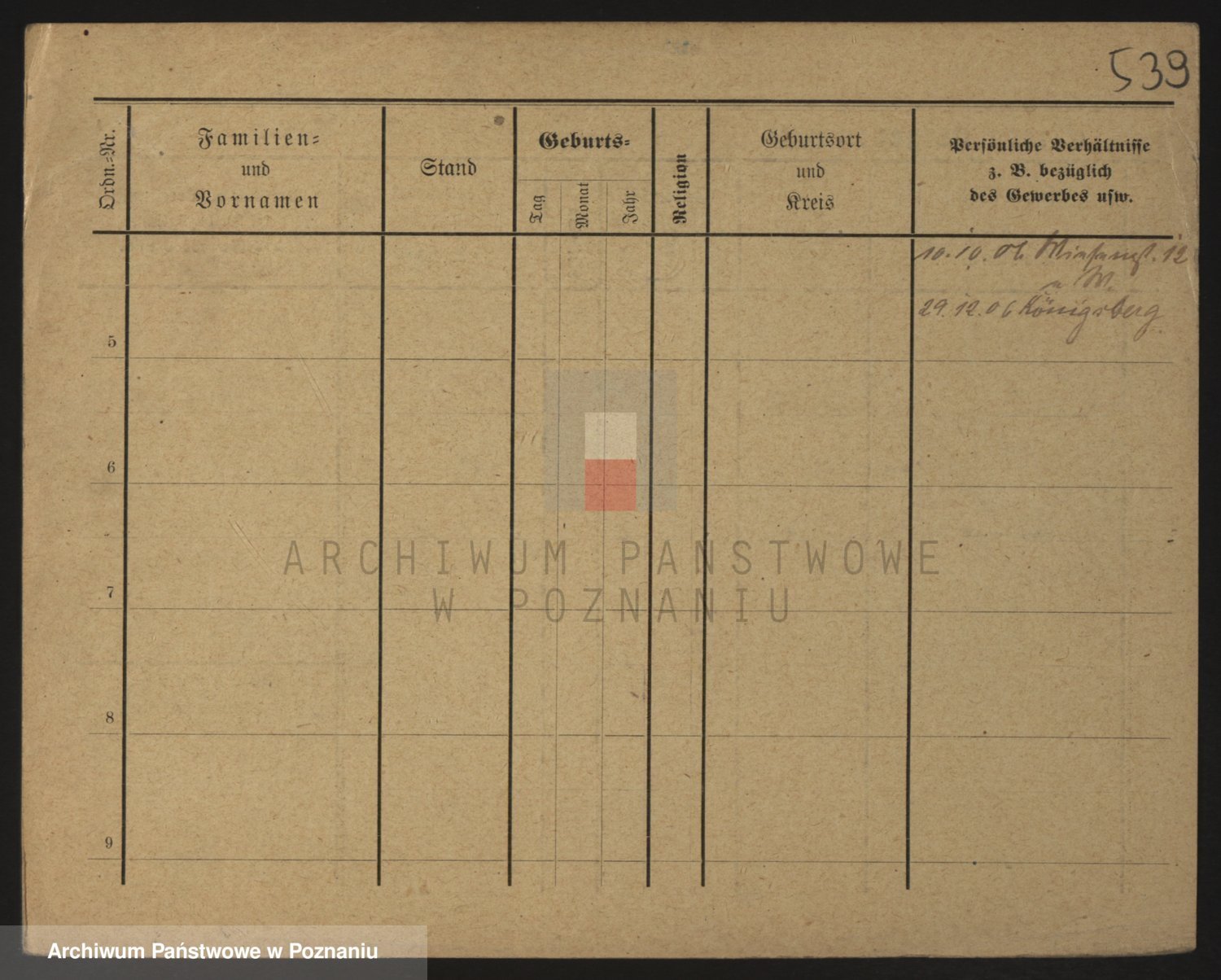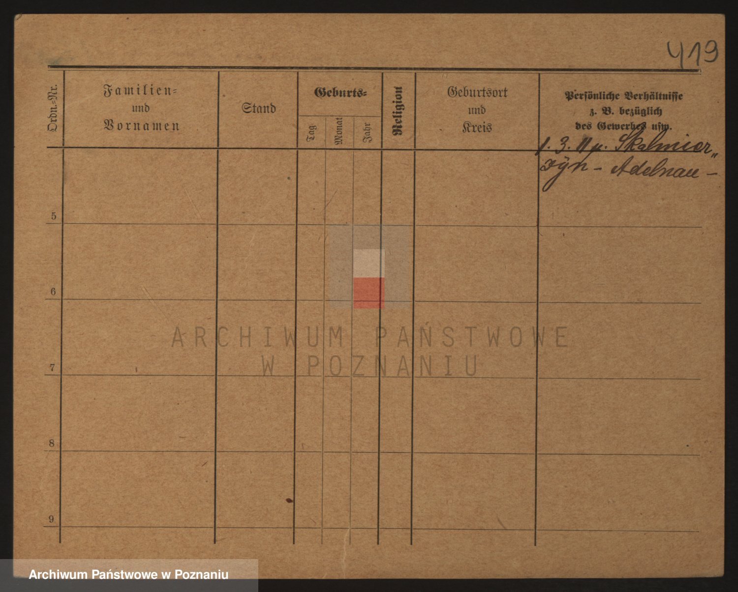 Podgląd karty osobowej dostępny jest po kliknięciu na nazwisko lub ikonkę karty. Można dokonywać powiększenia (ikony na górze) lub przechodzić między kolejnymi skanami (strzałki po bokach).
