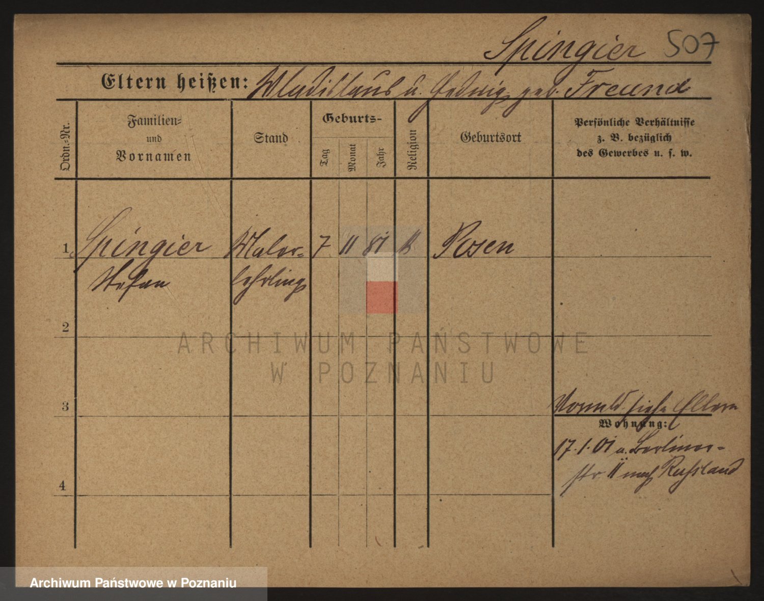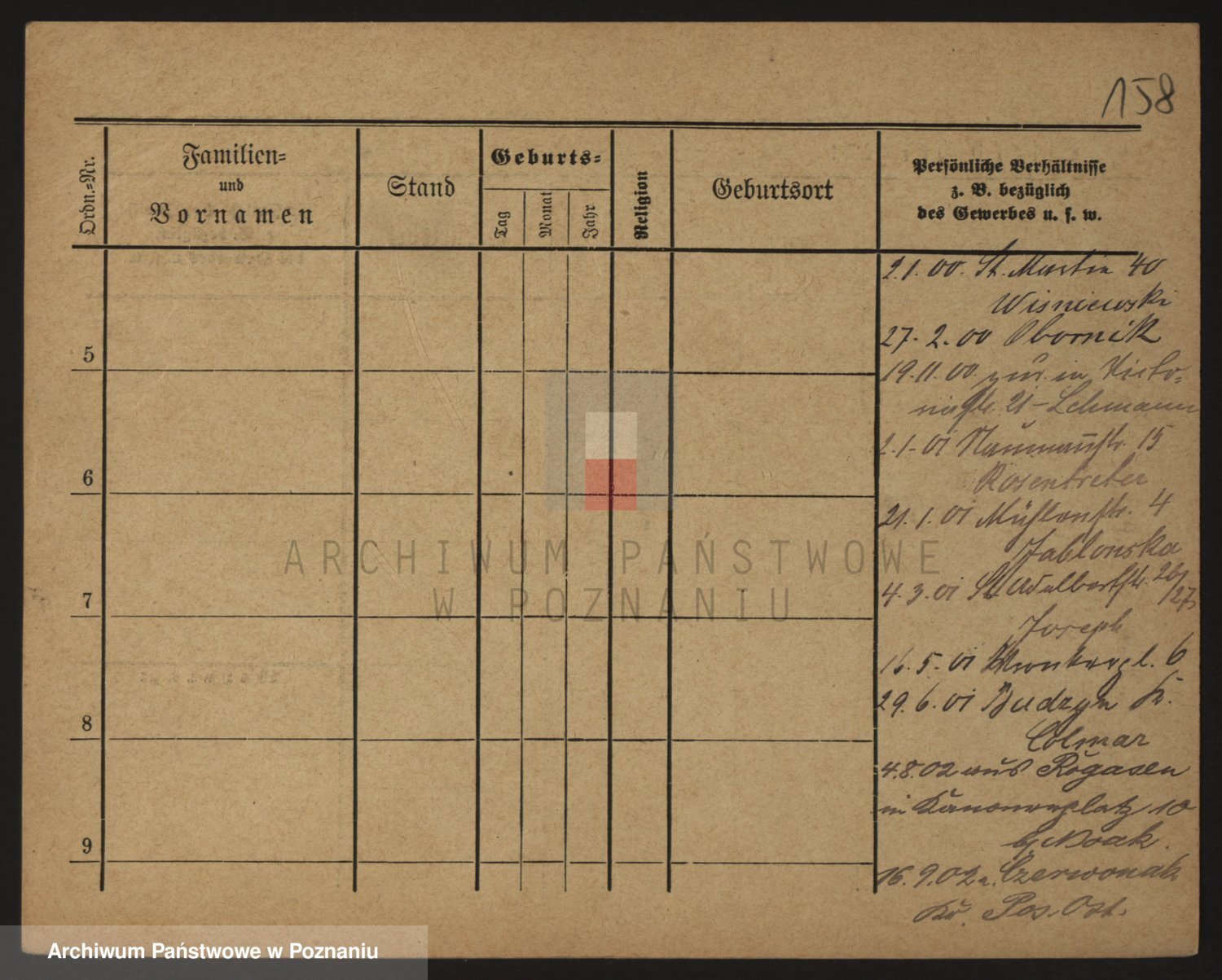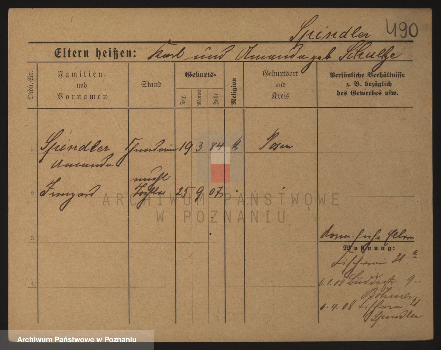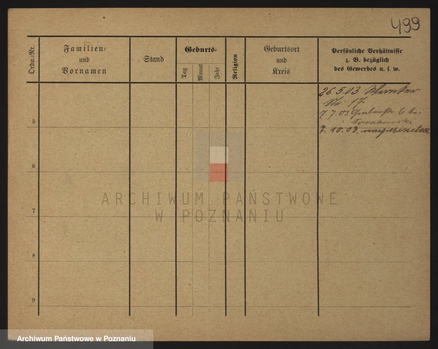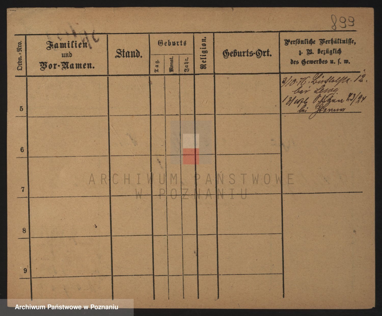 Podgląd karty osobowej dostępny jest po kliknięciu na nazwisko lub ikonkę karty. Można dokonywać powiększenia (ikony na górze) lub przechodzić między kolejnymi skanami (strzałki po bokach).