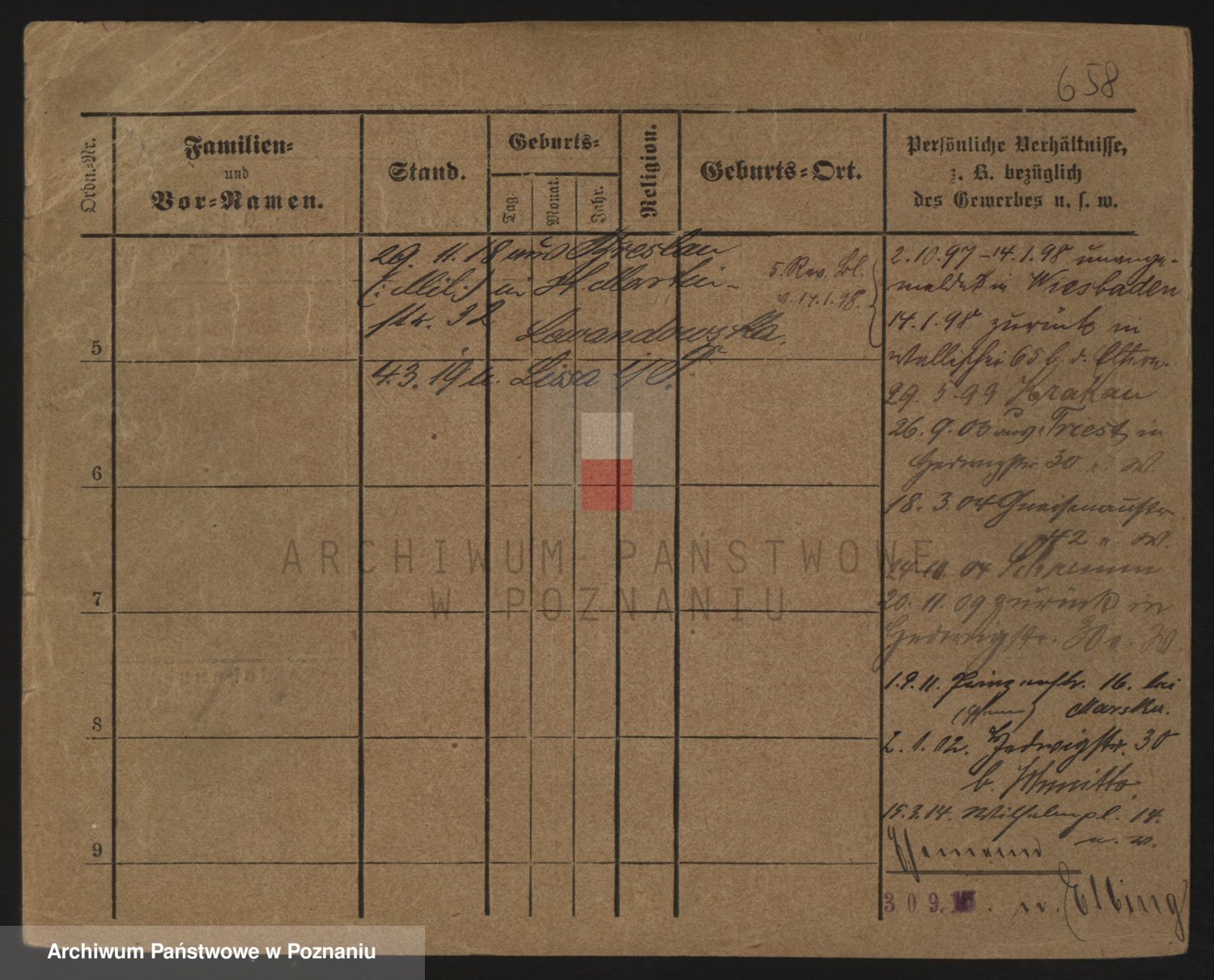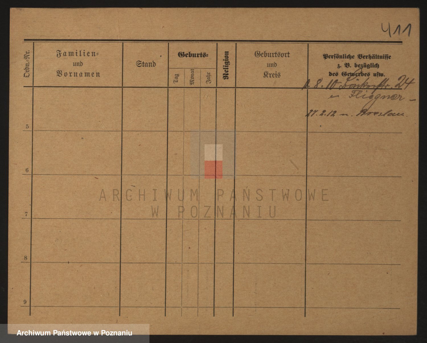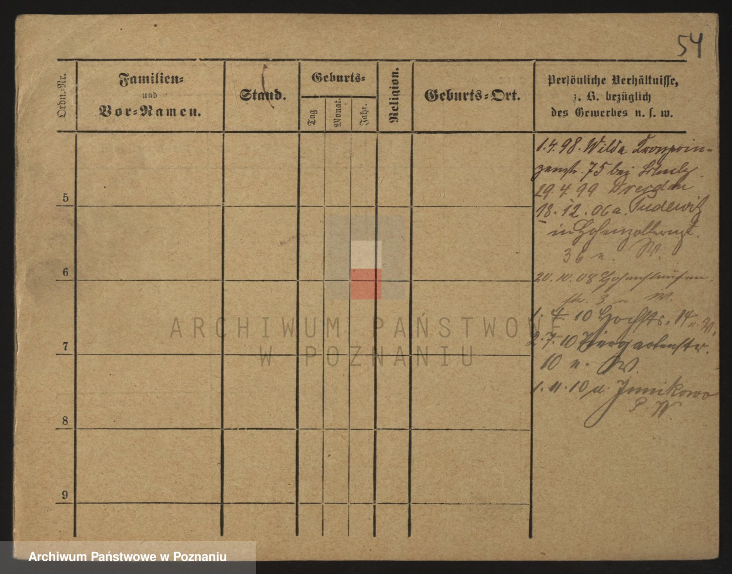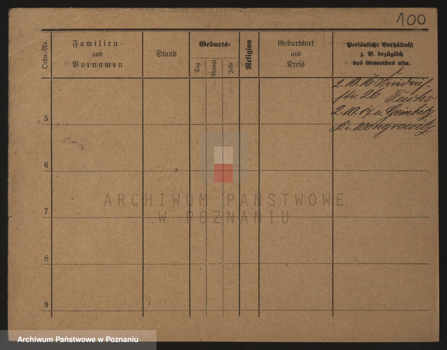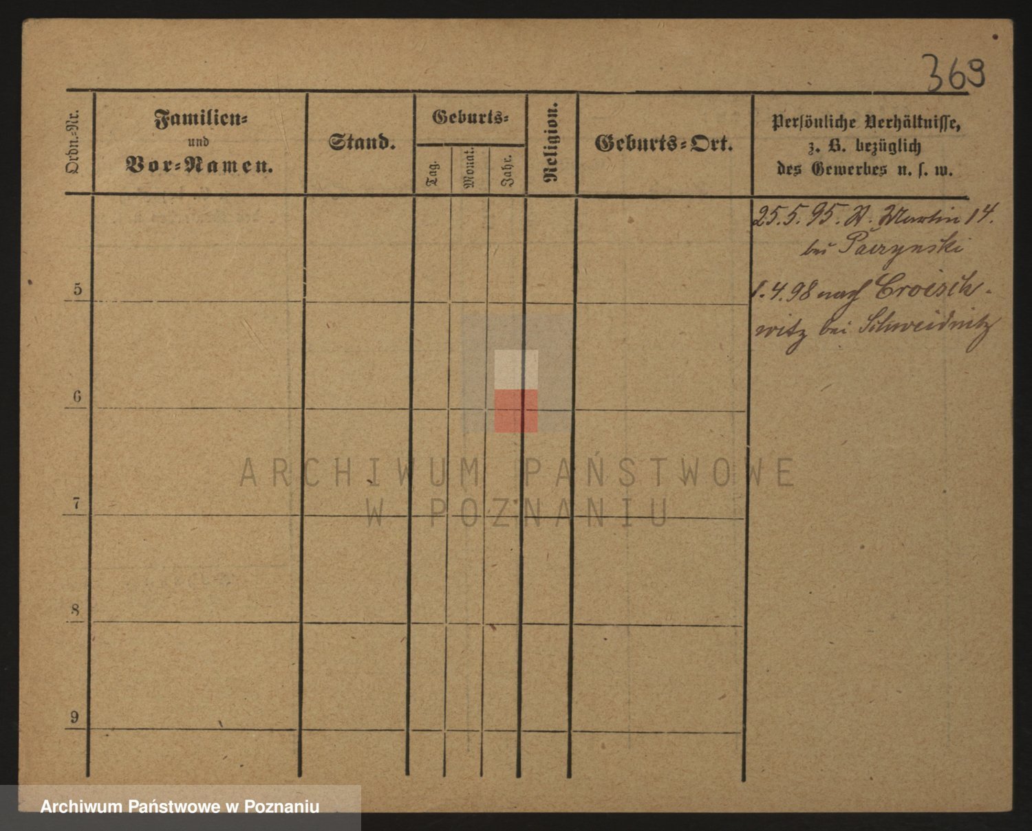 Podgląd karty osobowej dostępny jest po kliknięciu na nazwisko lub ikonkę karty. Można dokonywać powiększenia (ikony na górze) lub przechodzić między kolejnymi skanami (strzałki po bokach).