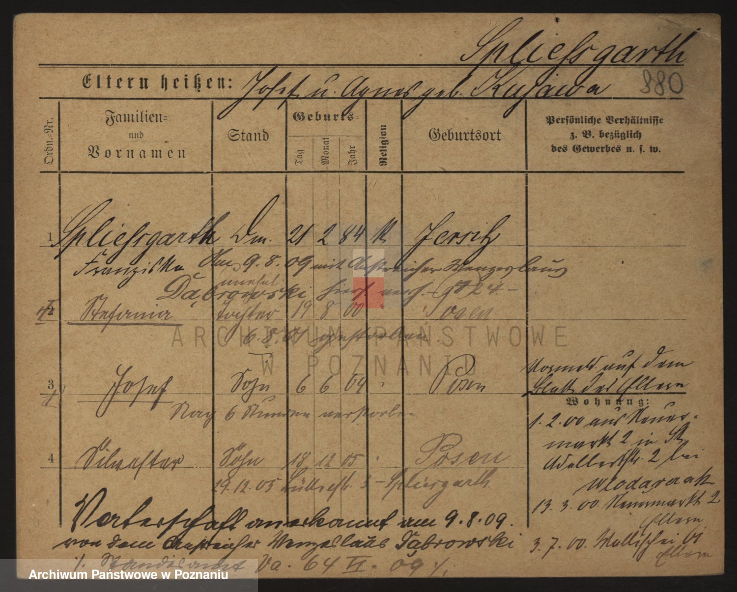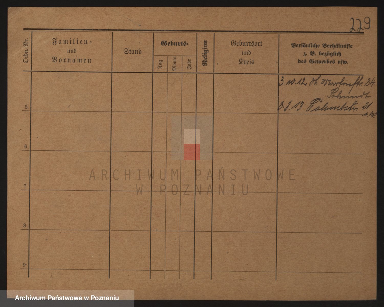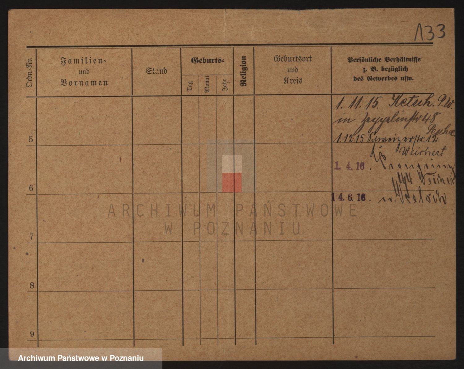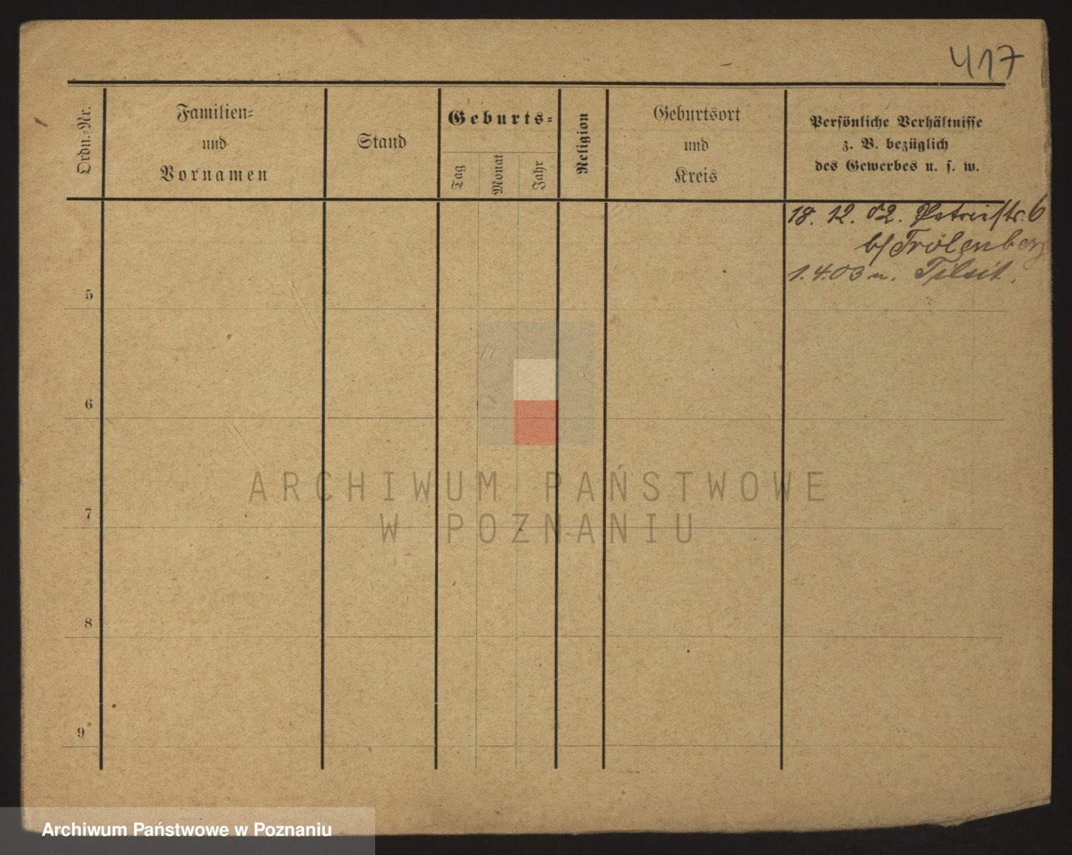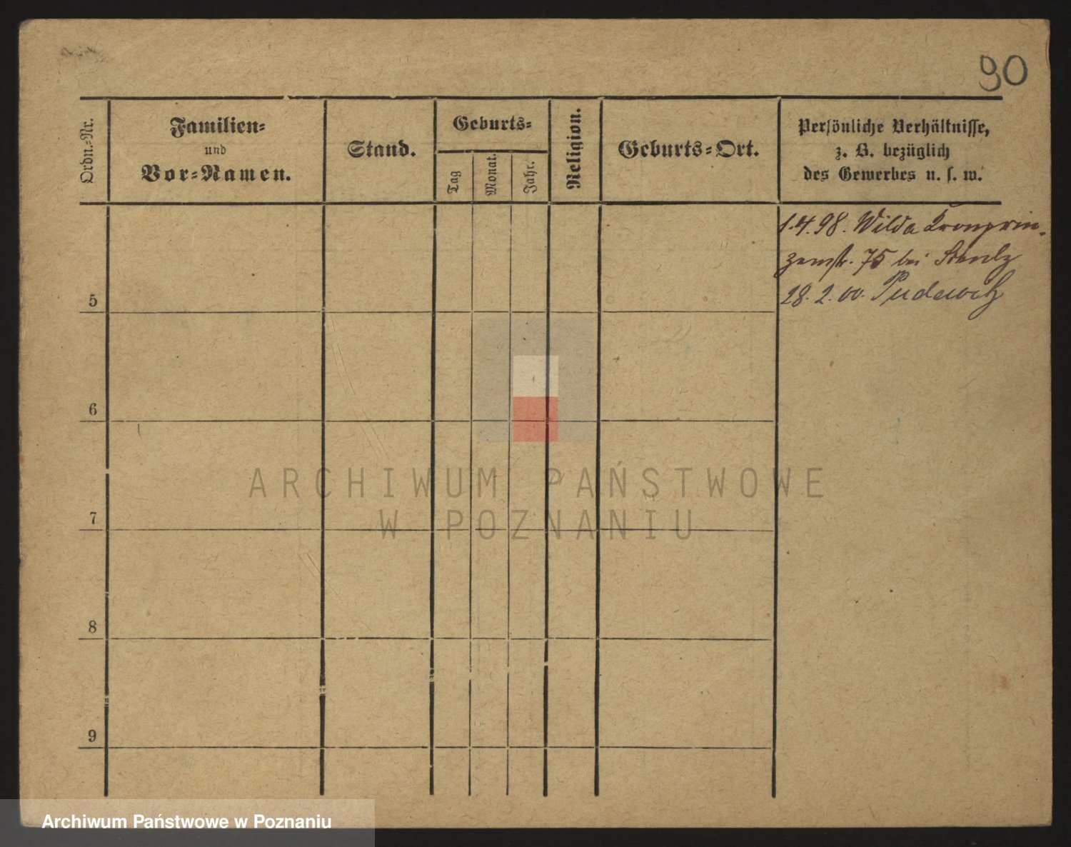 Podgląd karty osobowej dostępny jest po kliknięciu na nazwisko lub ikonkę karty. Można dokonywać powiększenia (ikony na górze) lub przechodzić między kolejnymi skanami (strzałki po bokach).
