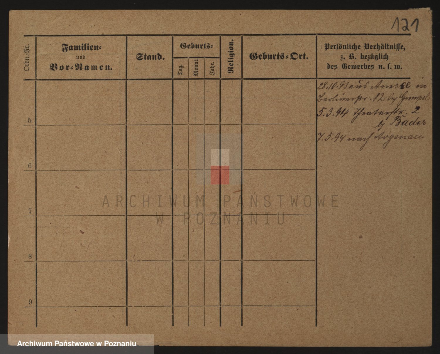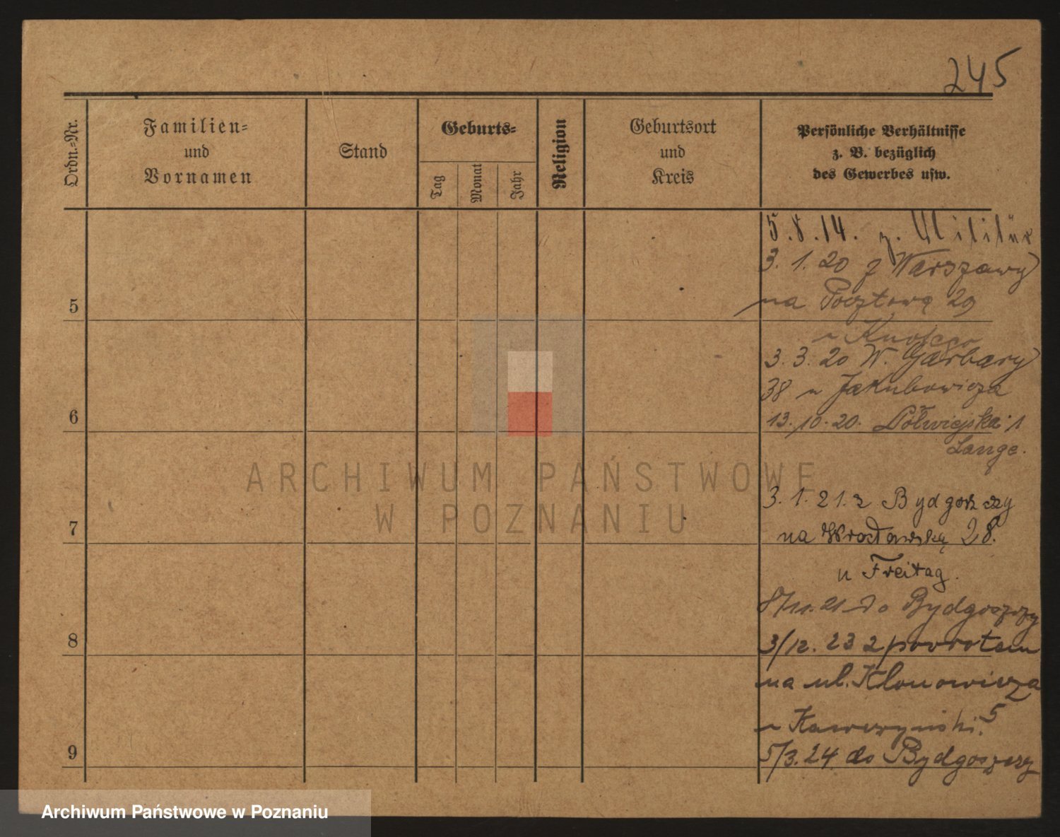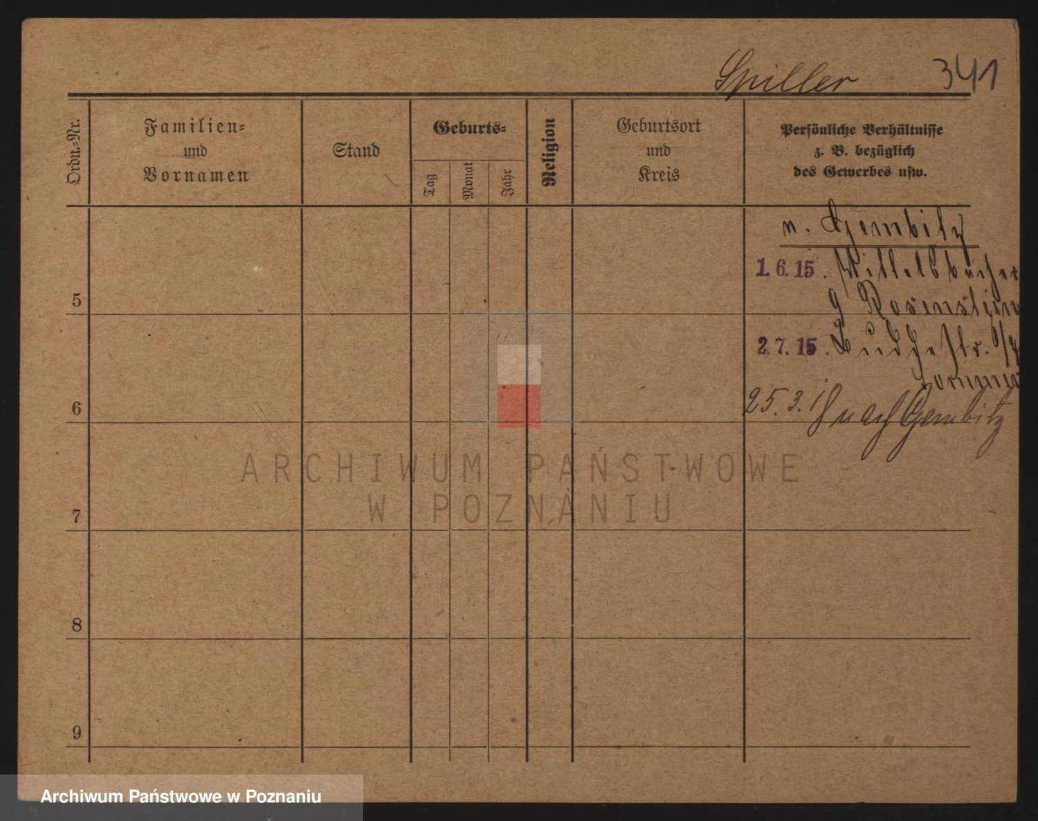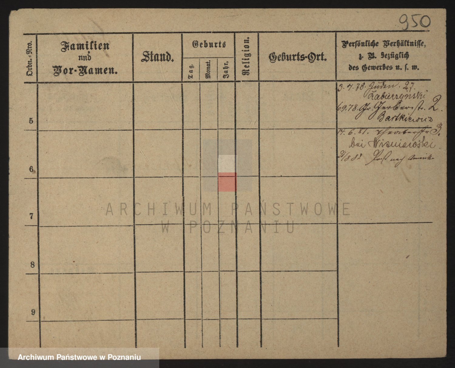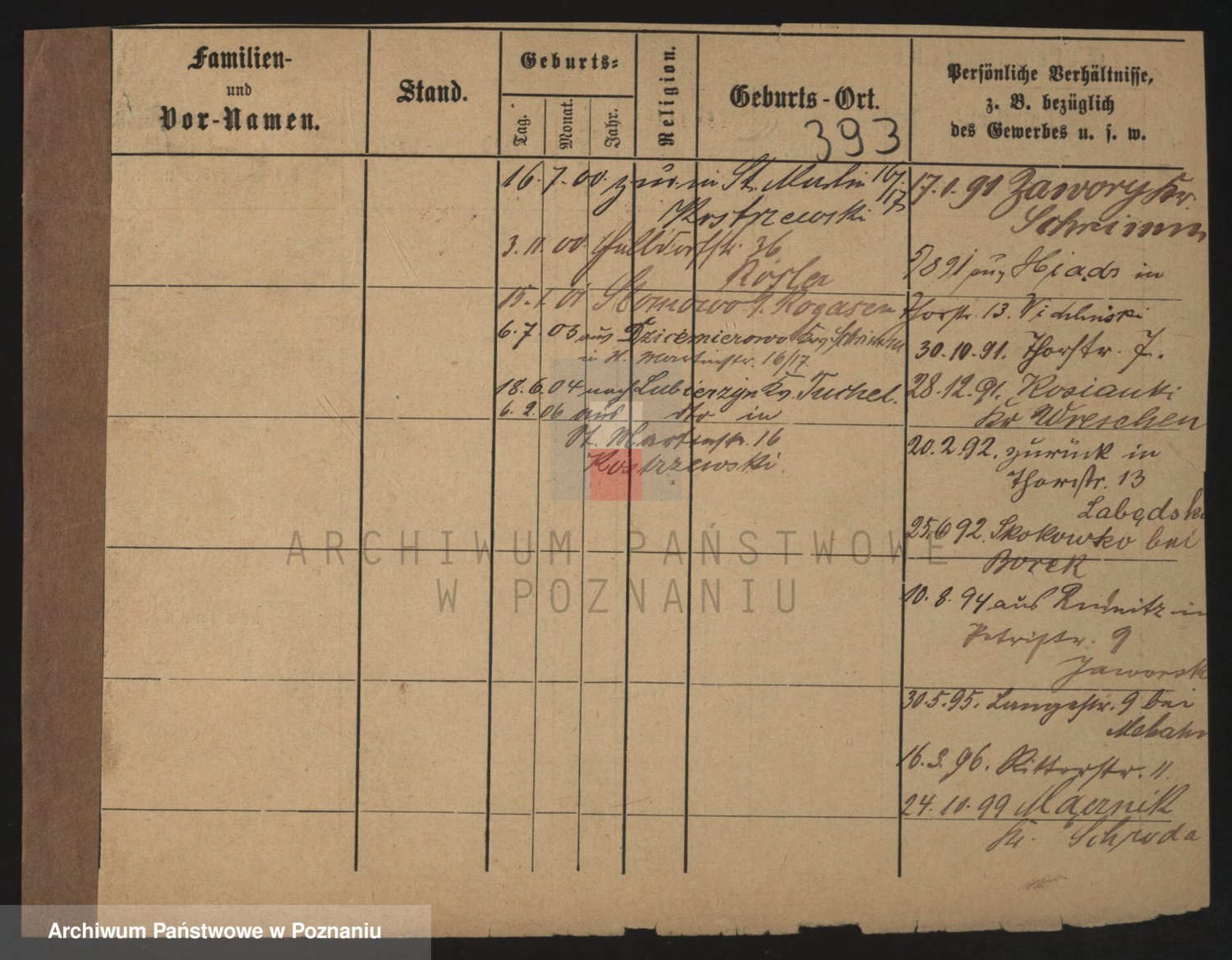 Podgląd karty osobowej dostępny jest po kliknięciu na nazwisko lub ikonkę karty. Można dokonywać powiększenia (ikony na górze) lub przechodzić między kolejnymi skanami (strzałki po bokach).