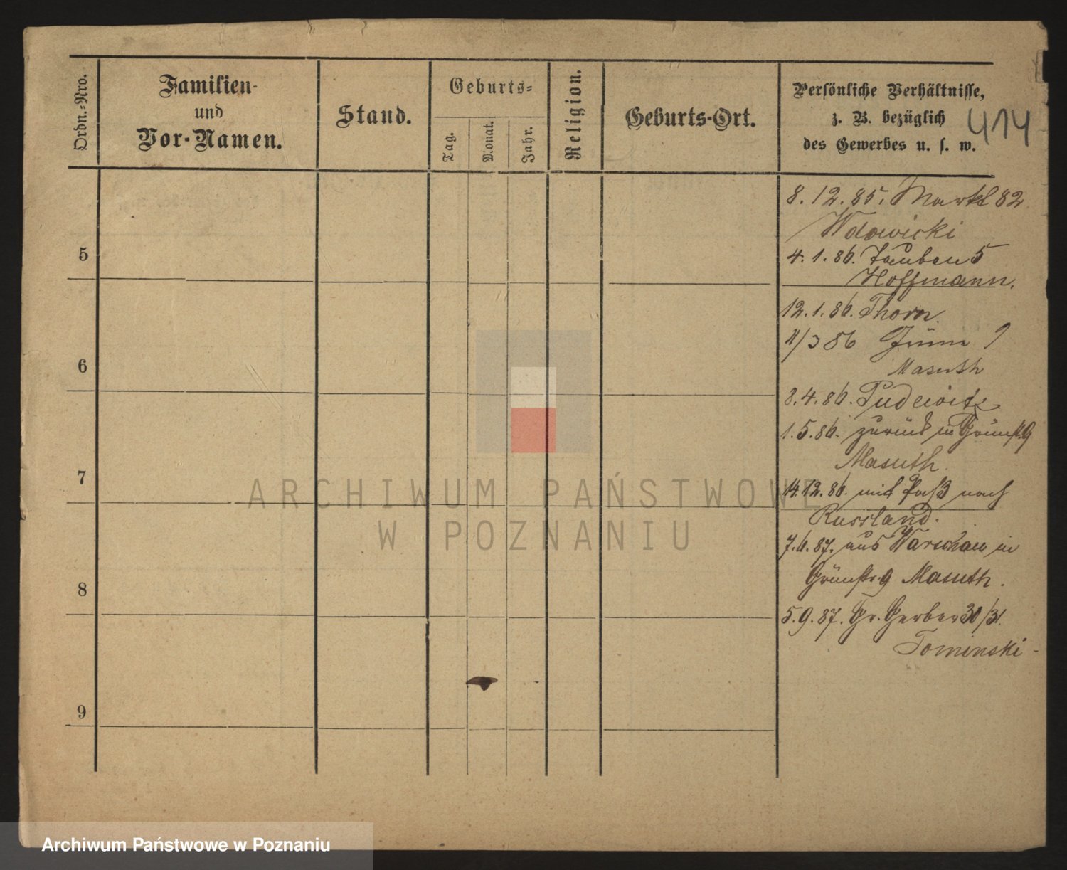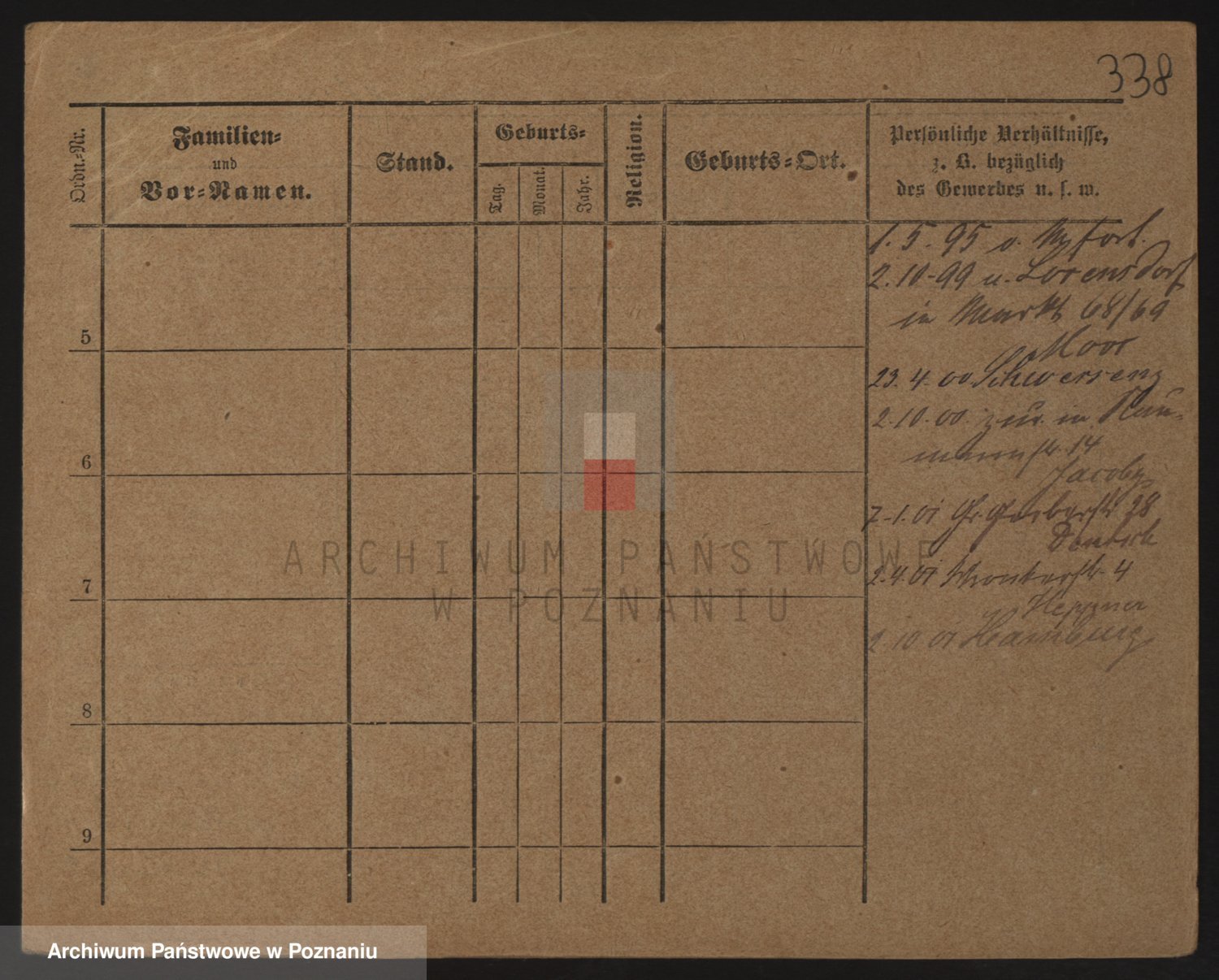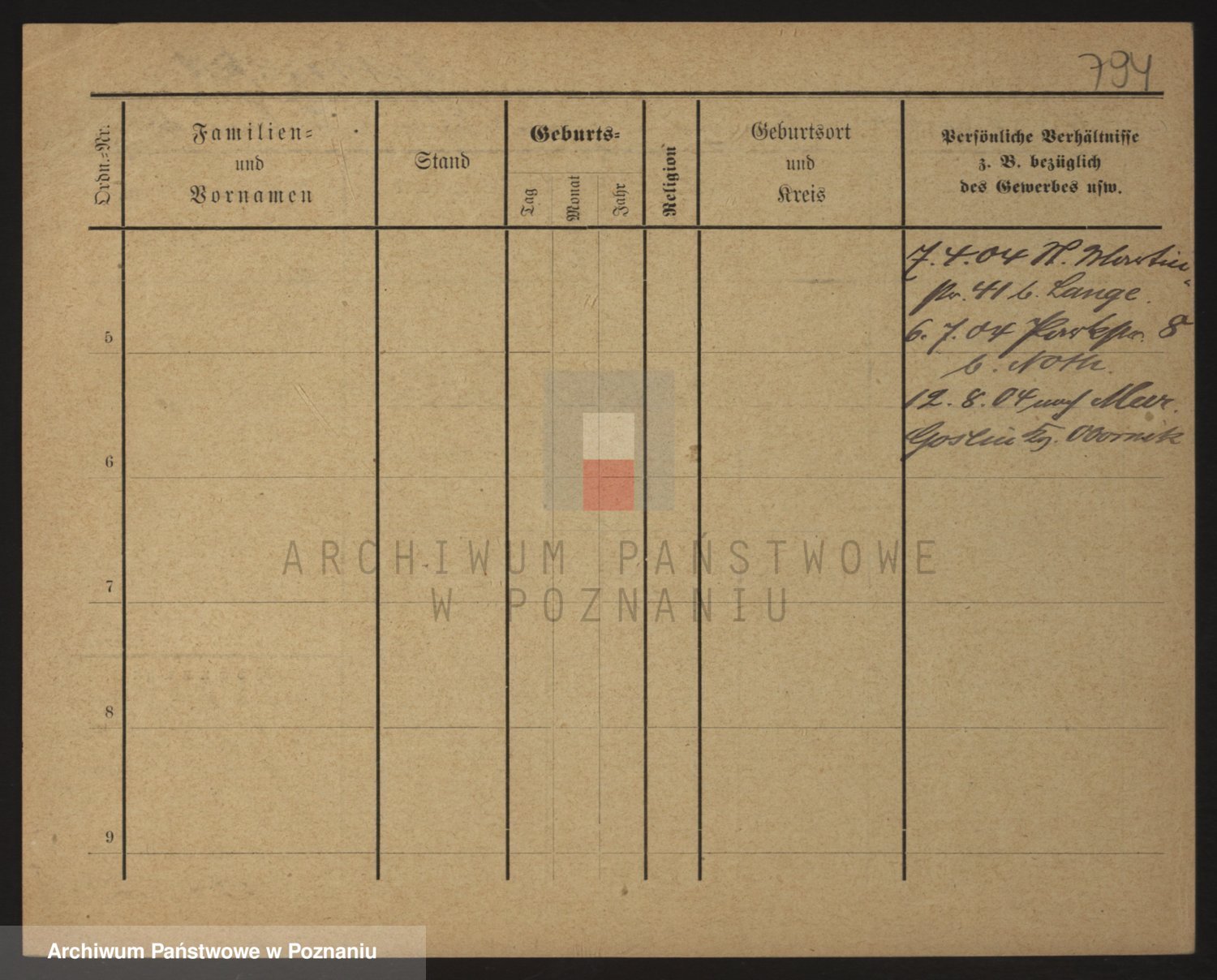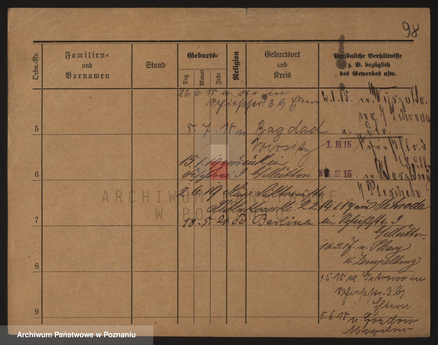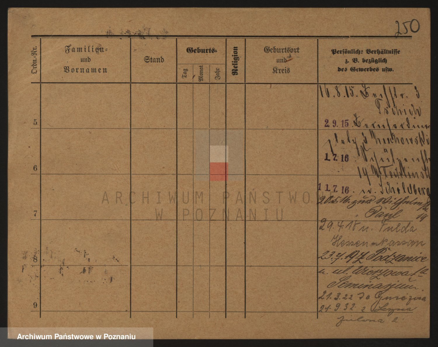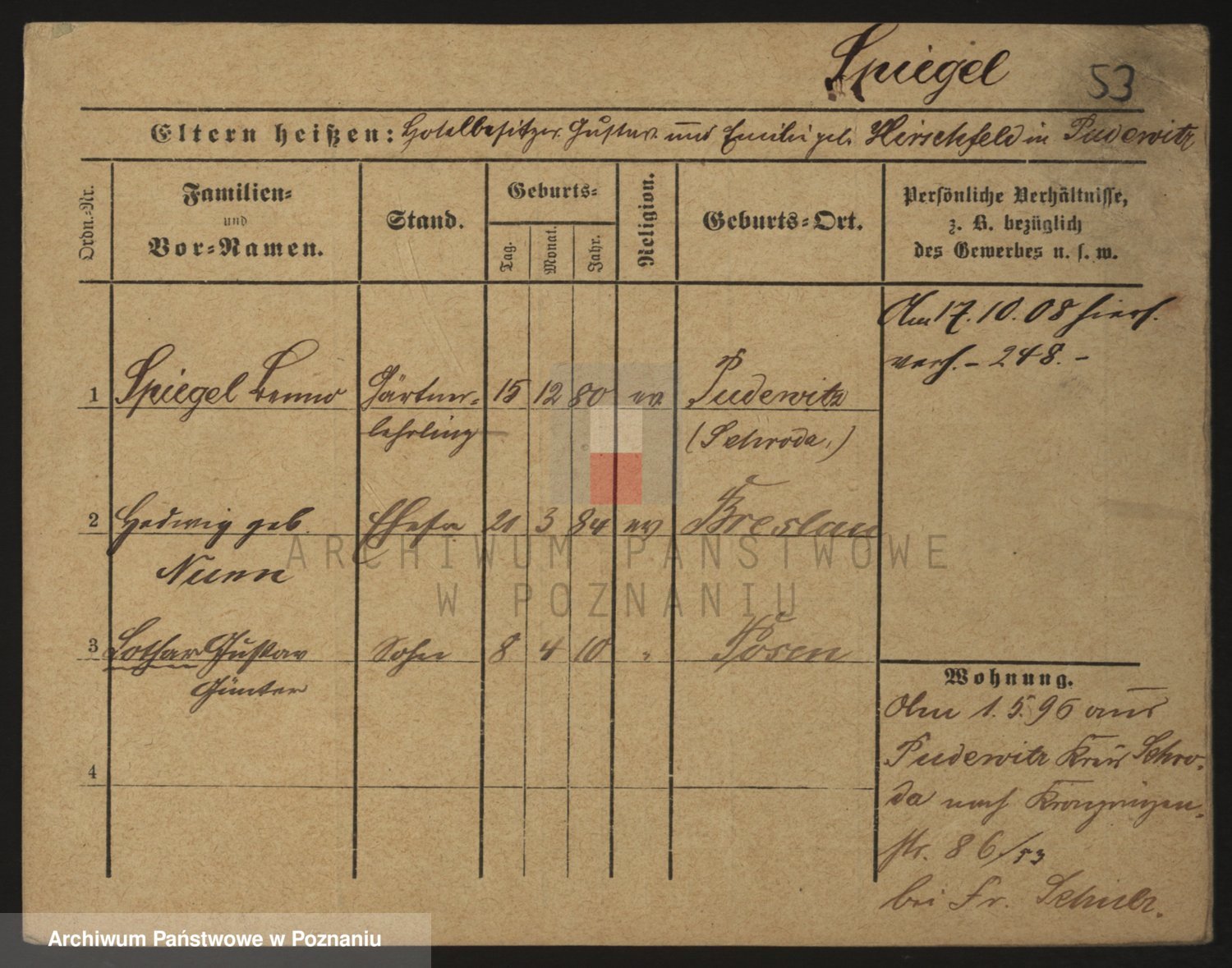 Podgląd karty osobowej dostępny jest po kliknięciu na nazwisko lub ikonkę karty. Można dokonywać powiększenia (ikony na górze) lub przechodzić między kolejnymi skanami (strzałki po bokach).