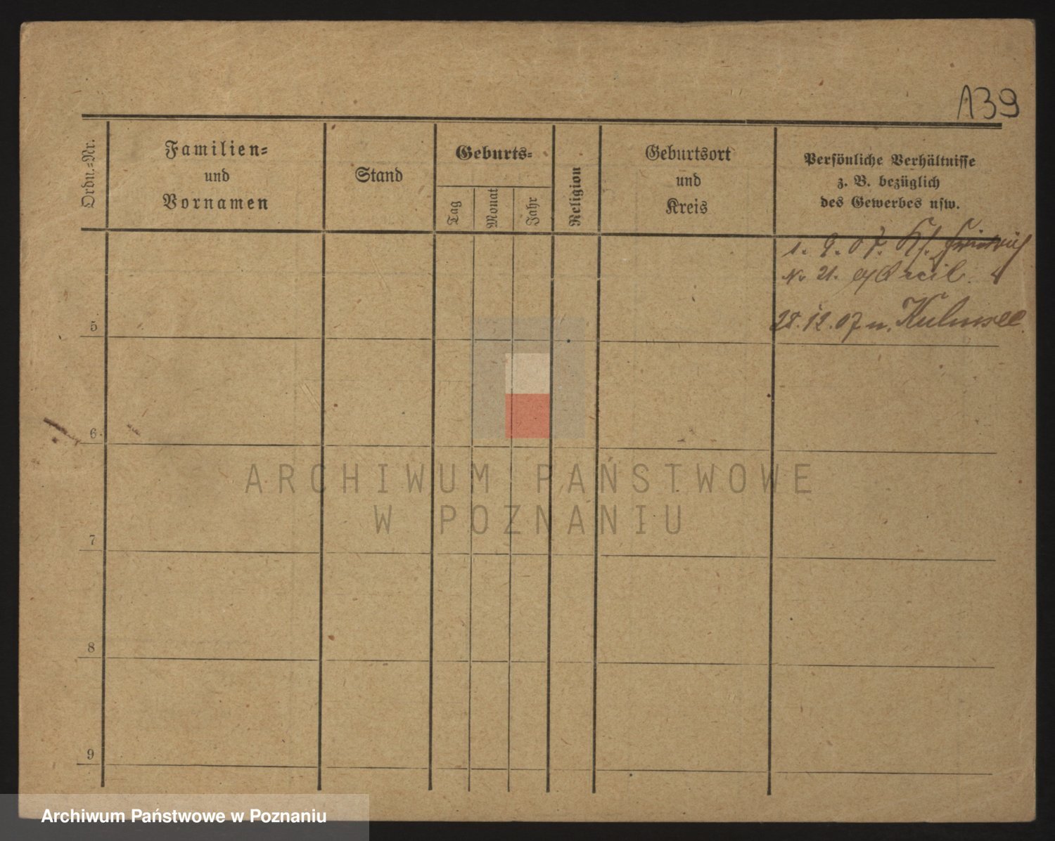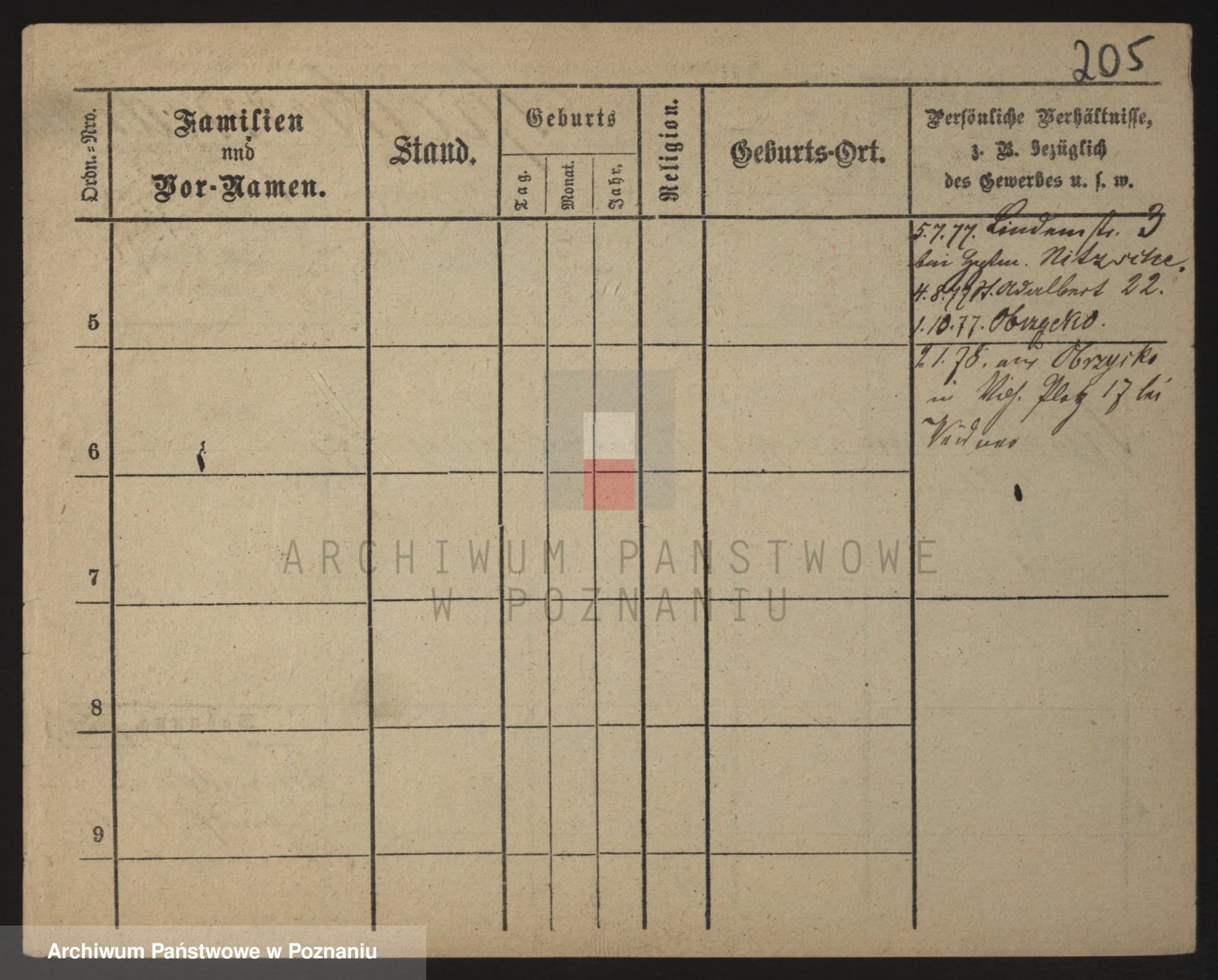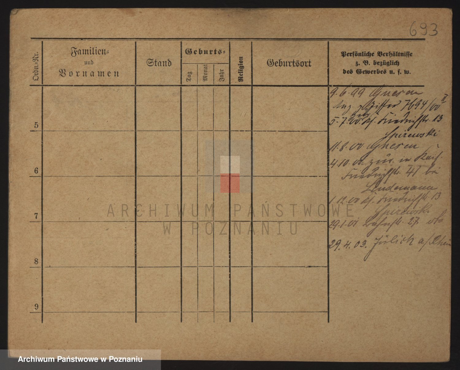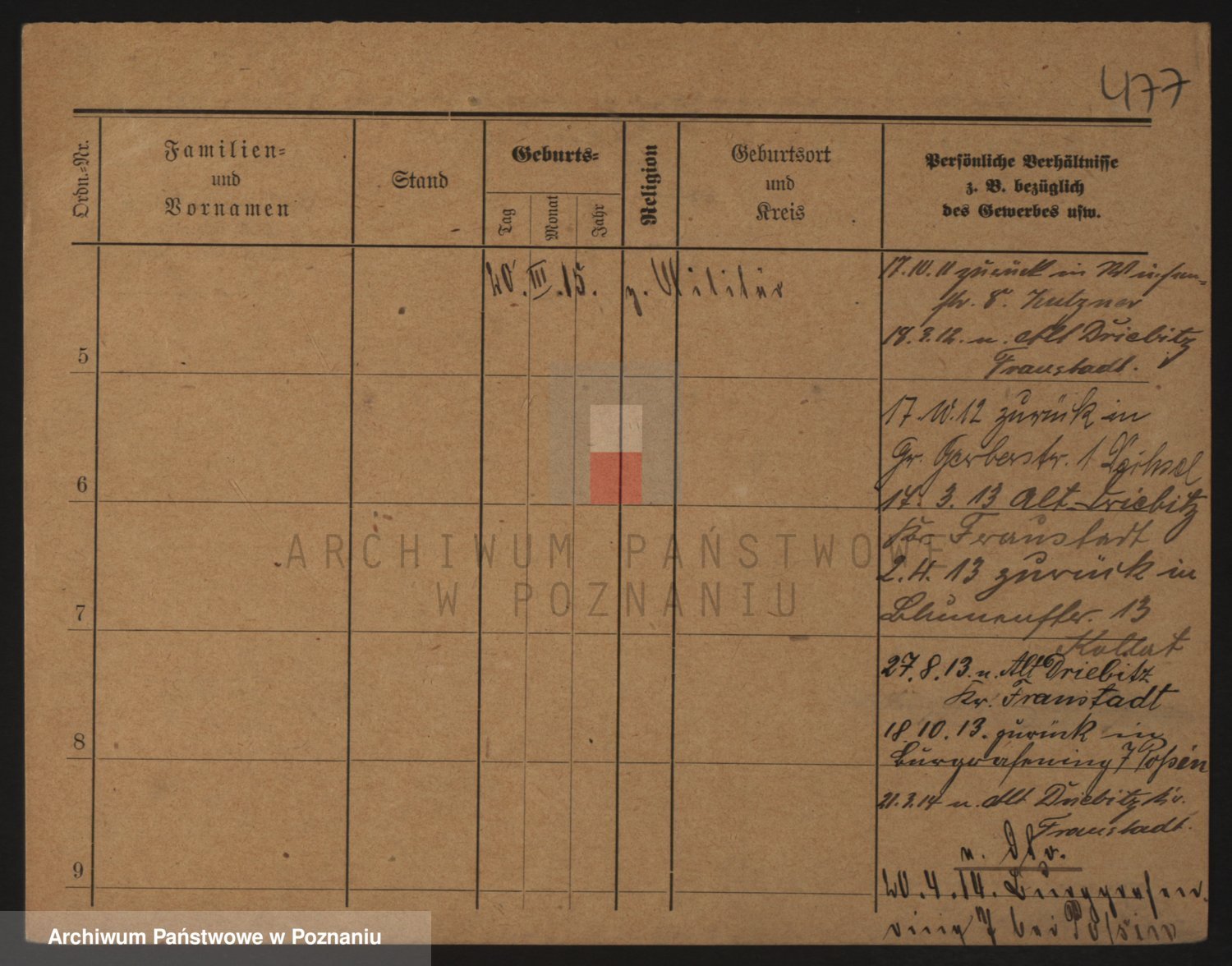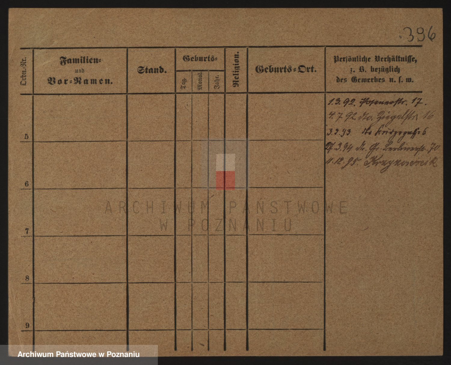Podgląd karty osobowej dostępny jest po kliknięciu na nazwisko lub ikonkę karty. Można dokonywać powiększenia (ikony na górze) lub przechodzić między kolejnymi skanami (strzałki po bokach).