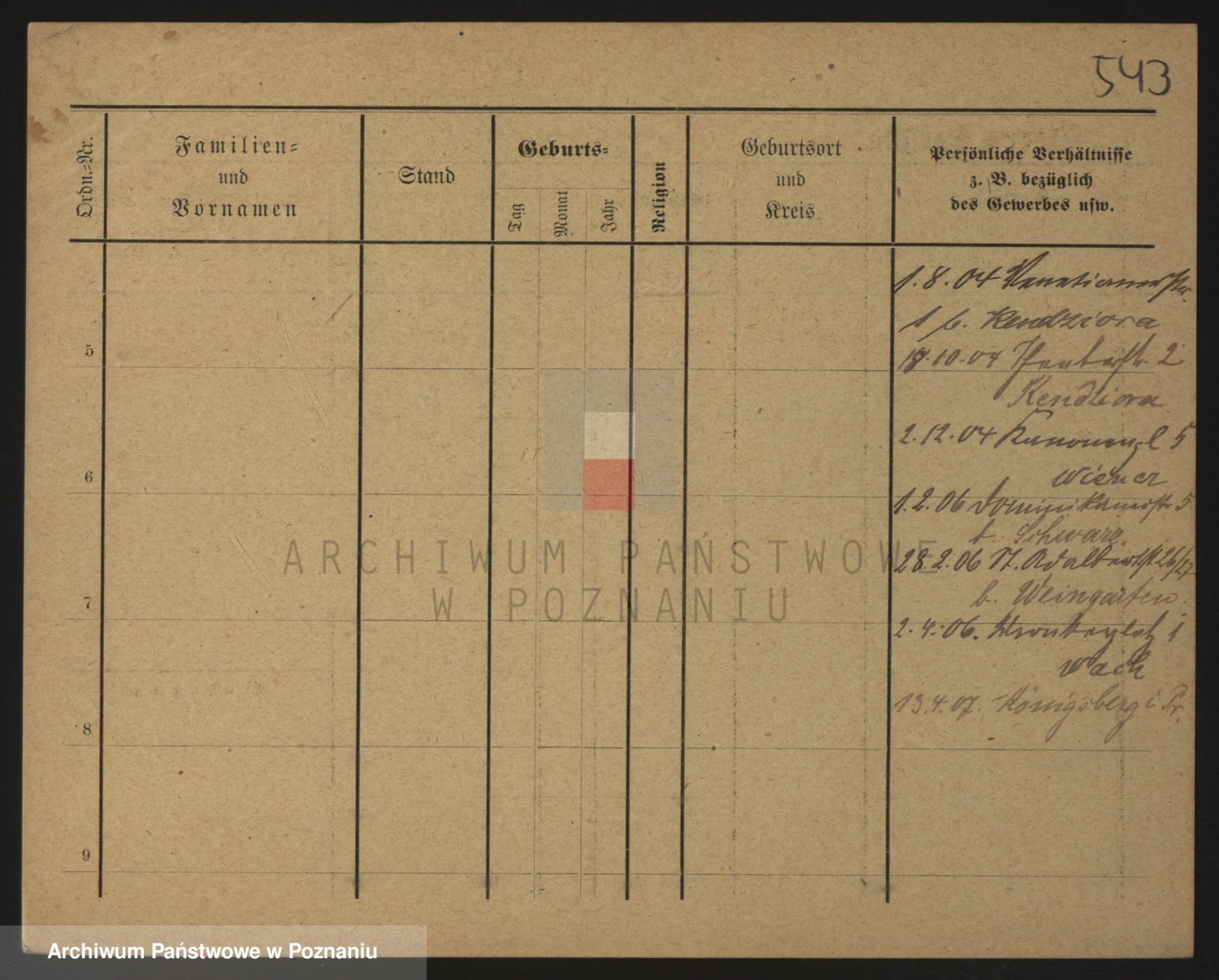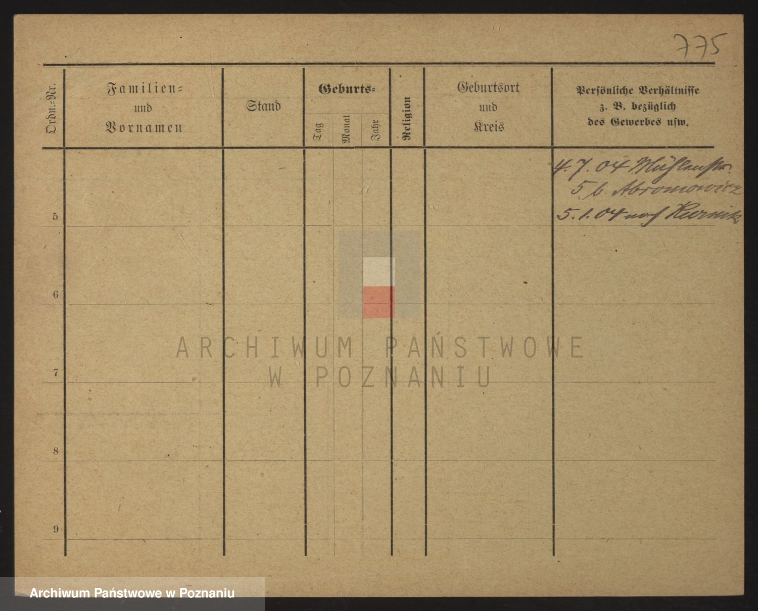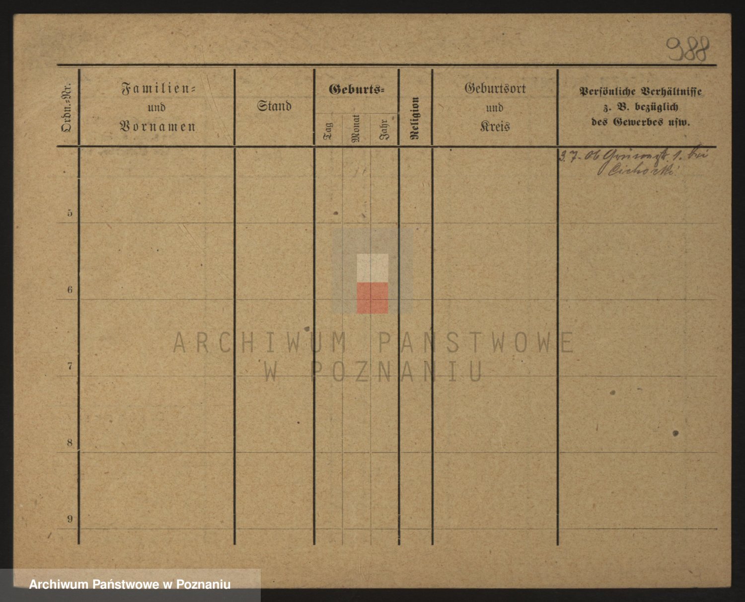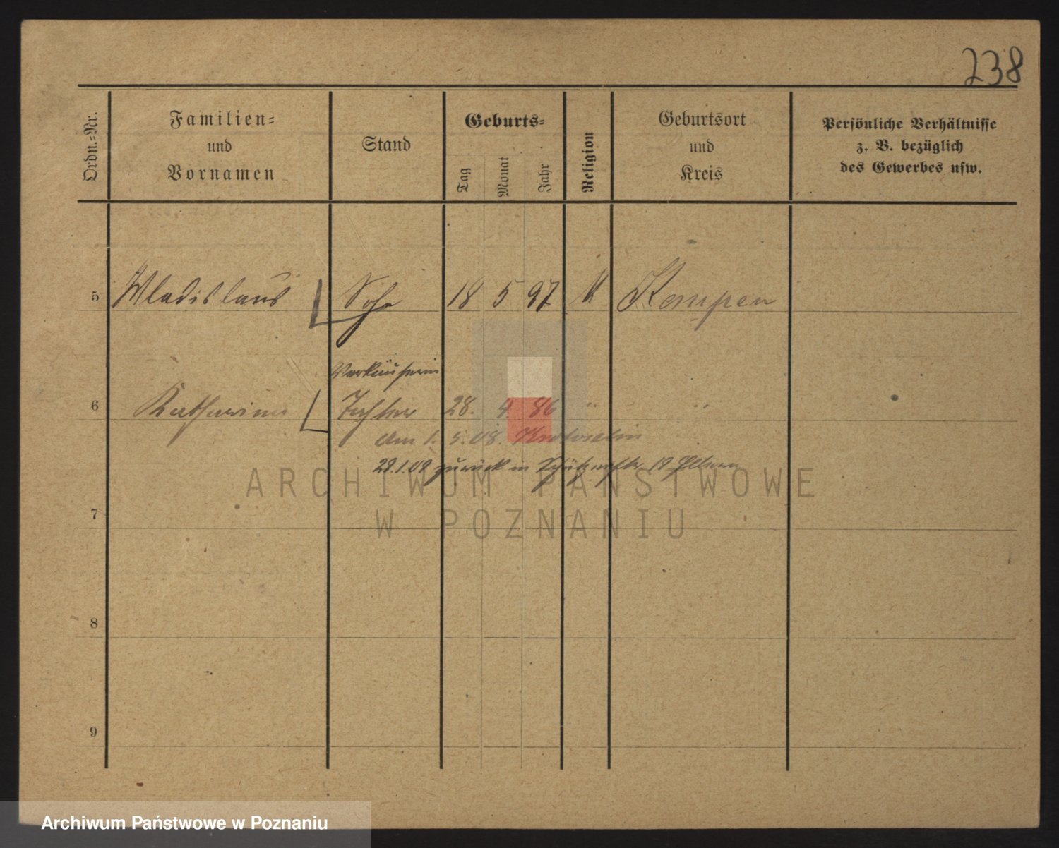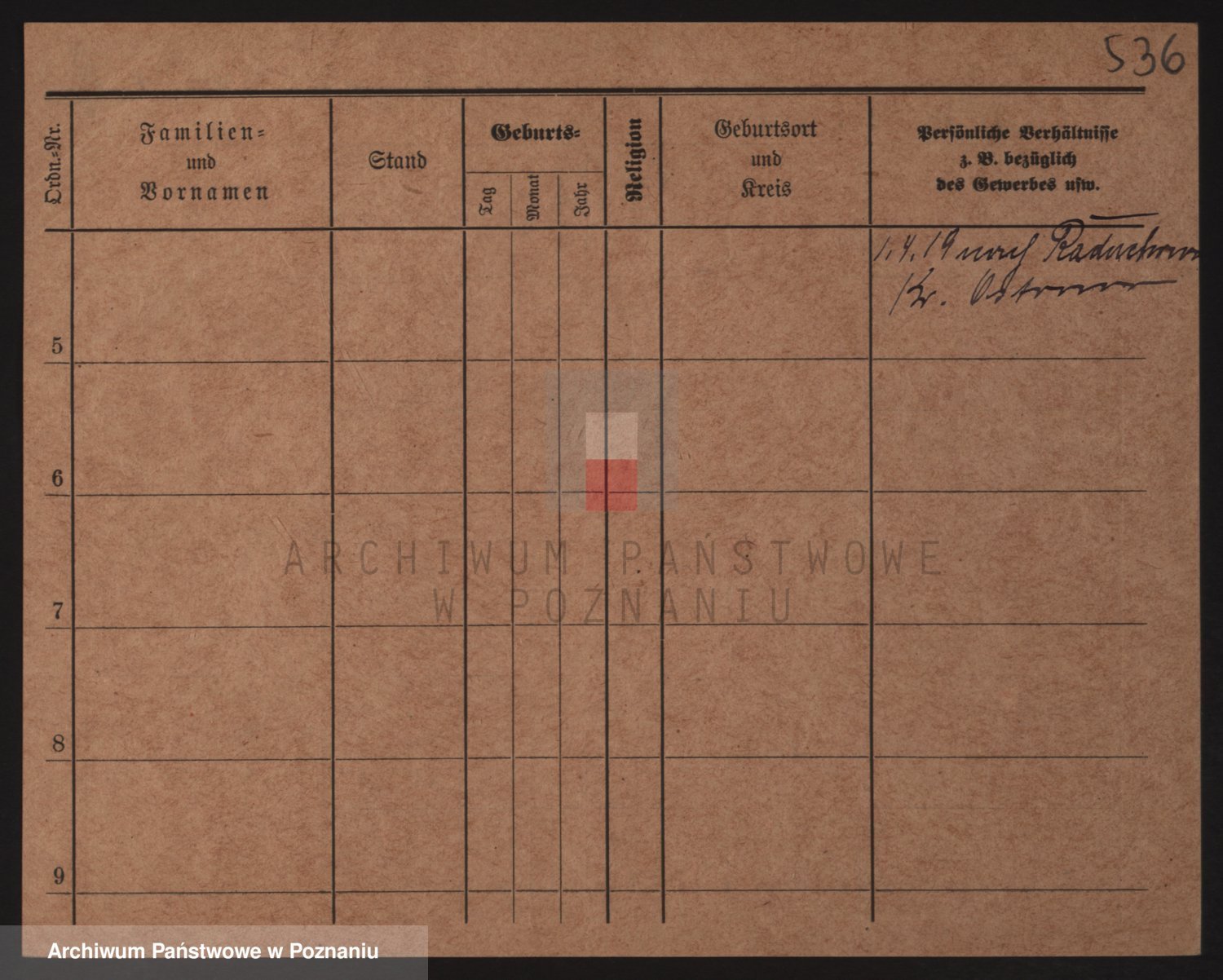 Podgląd karty osobowej dostępny jest po kliknięciu na nazwisko lub ikonkę karty. Można dokonywać powiększenia (ikony na górze) lub przechodzić między kolejnymi skanami (strzałki po bokach).