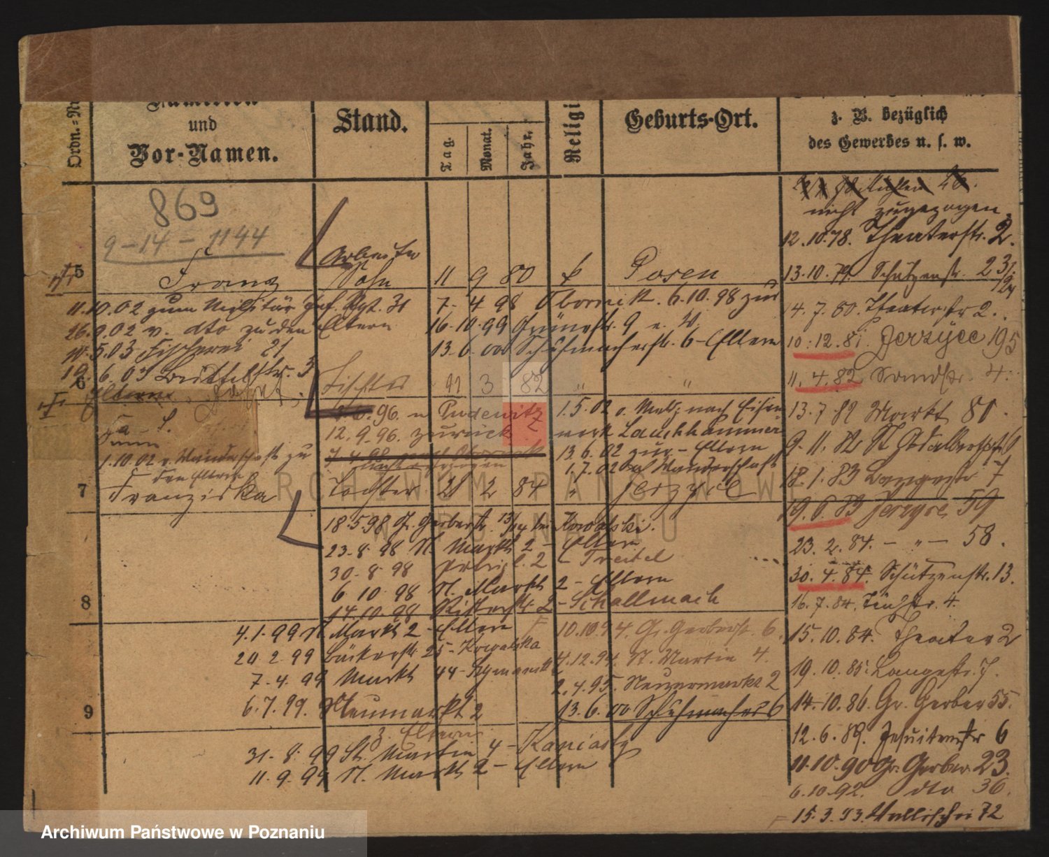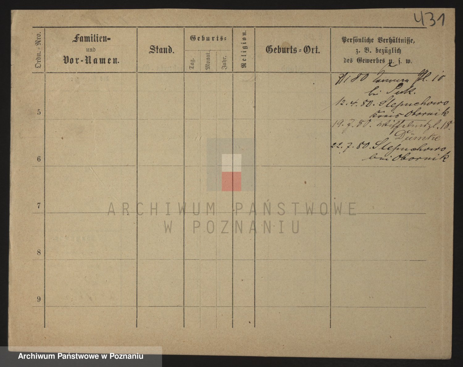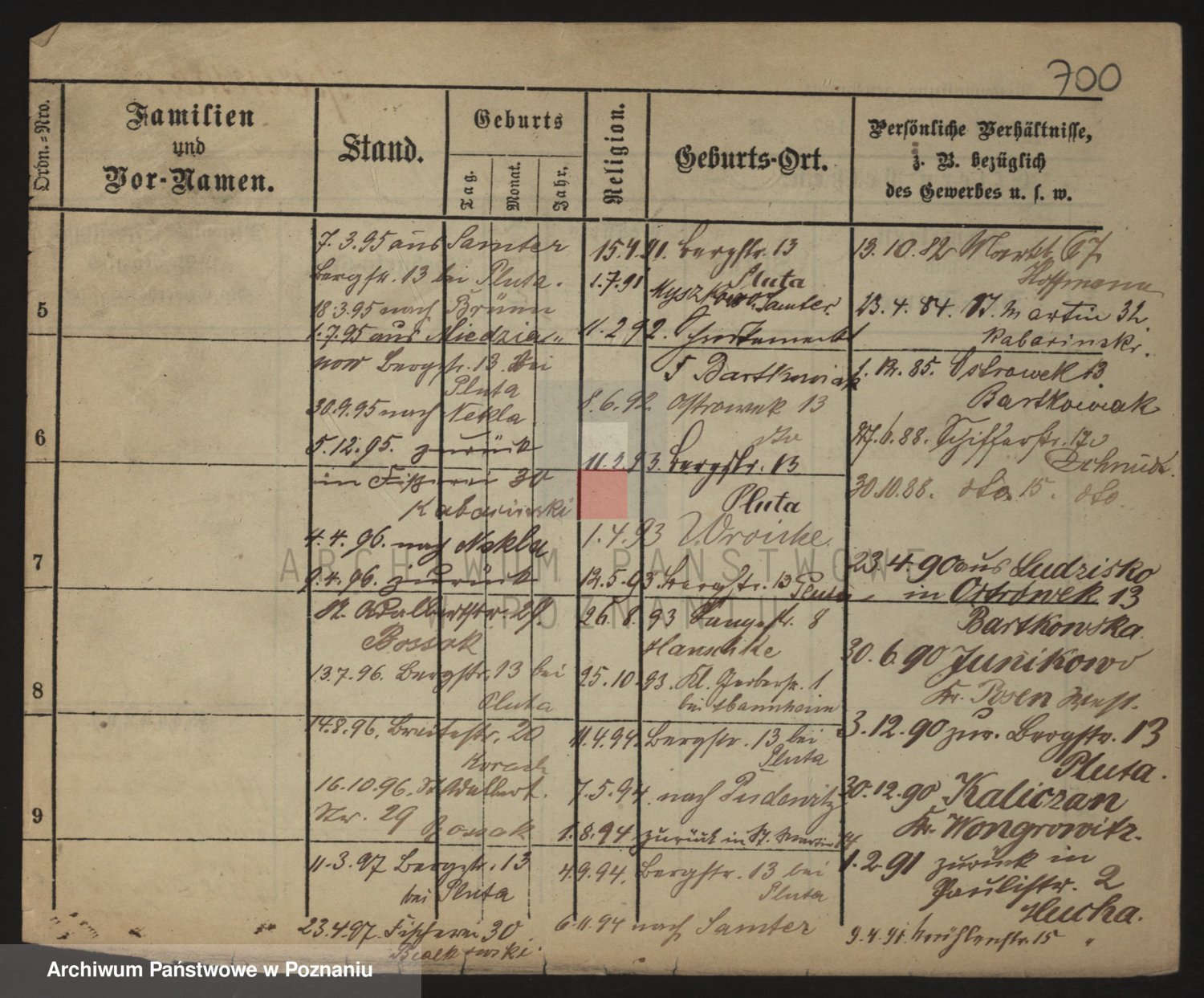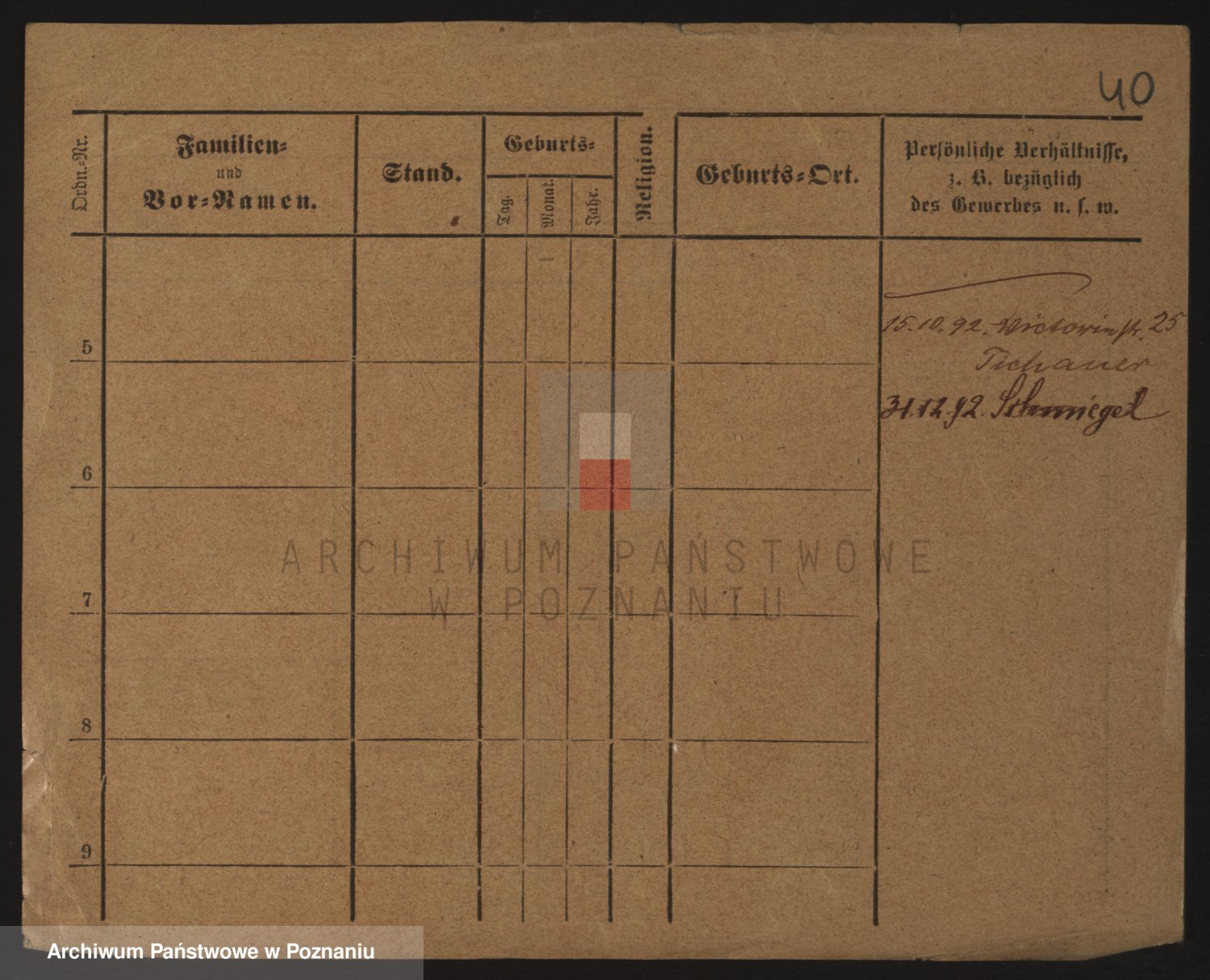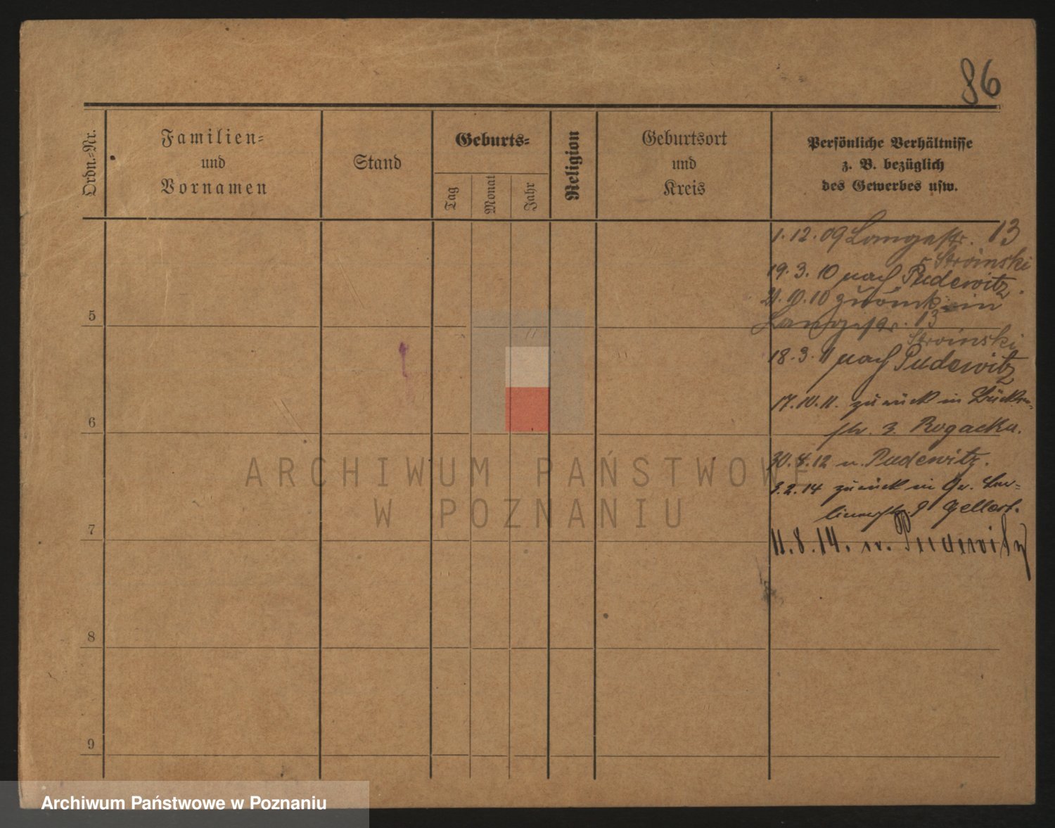 Podgląd karty osobowej dostępny jest po kliknięciu na nazwisko lub ikonkę karty. Można dokonywać powiększenia (ikony na górze) lub przechodzić między kolejnymi skanami (strzałki po bokach).
