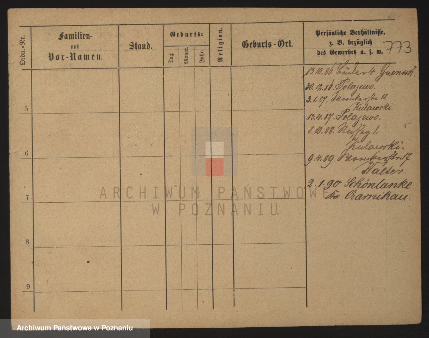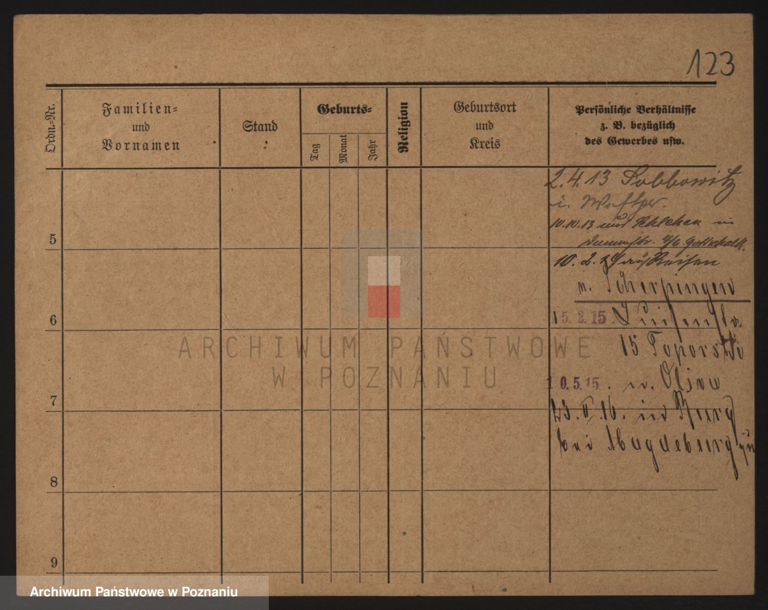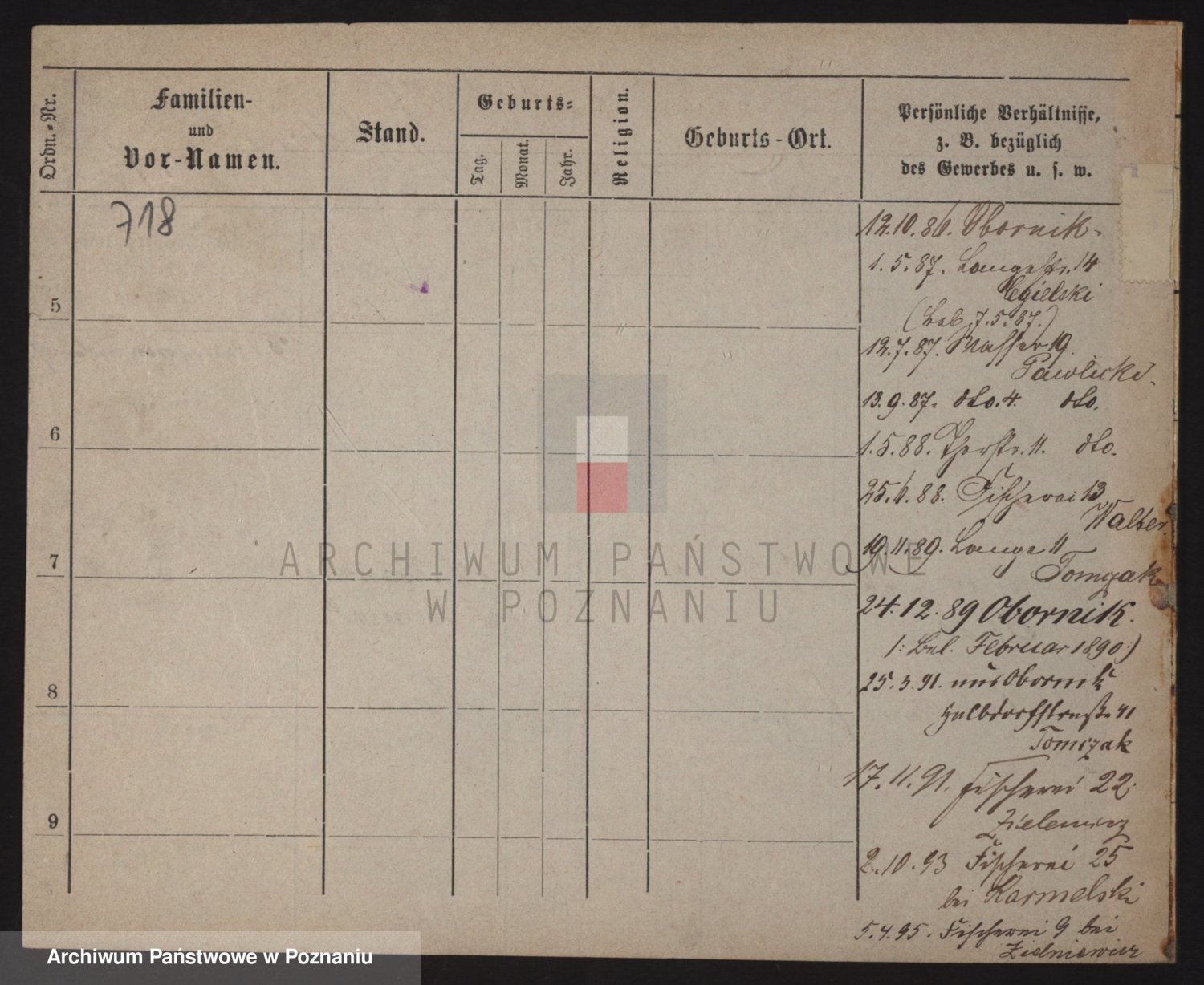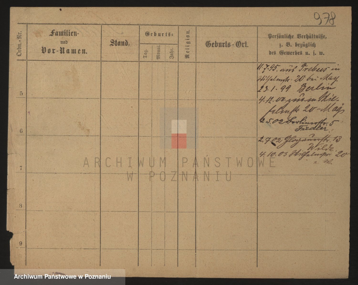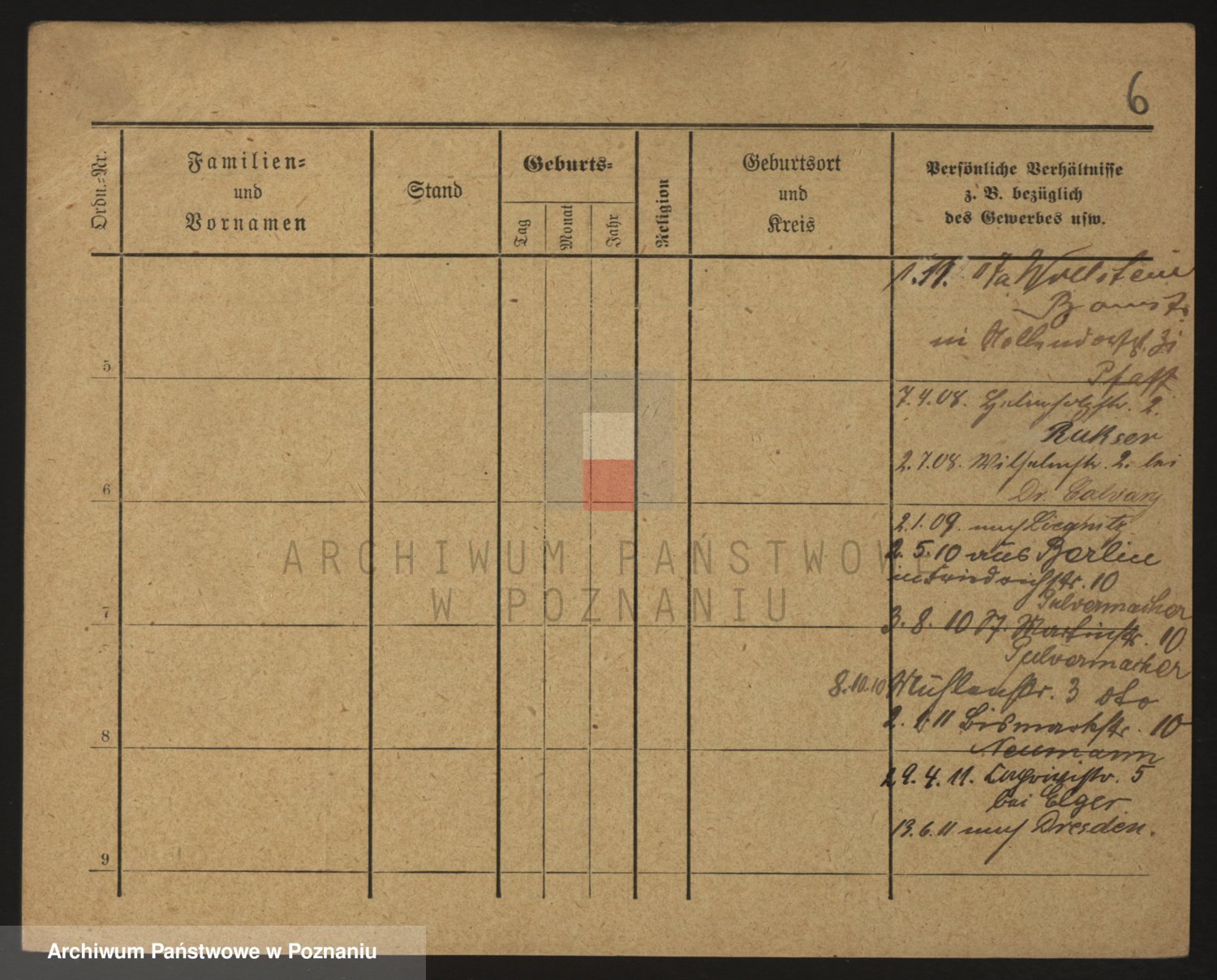 Podgląd karty osobowej dostępny jest po kliknięciu na nazwisko lub ikonkę karty. Można dokonywać powiększenia (ikony na górze) lub przechodzić między kolejnymi skanami (strzałki po bokach).