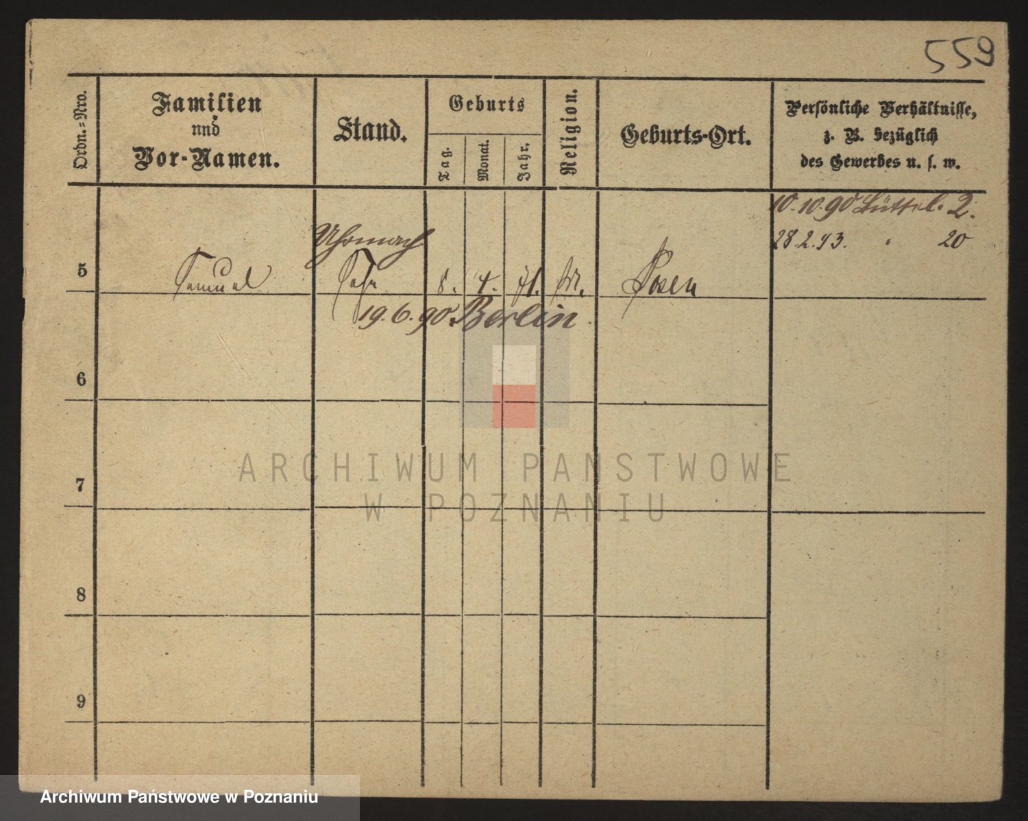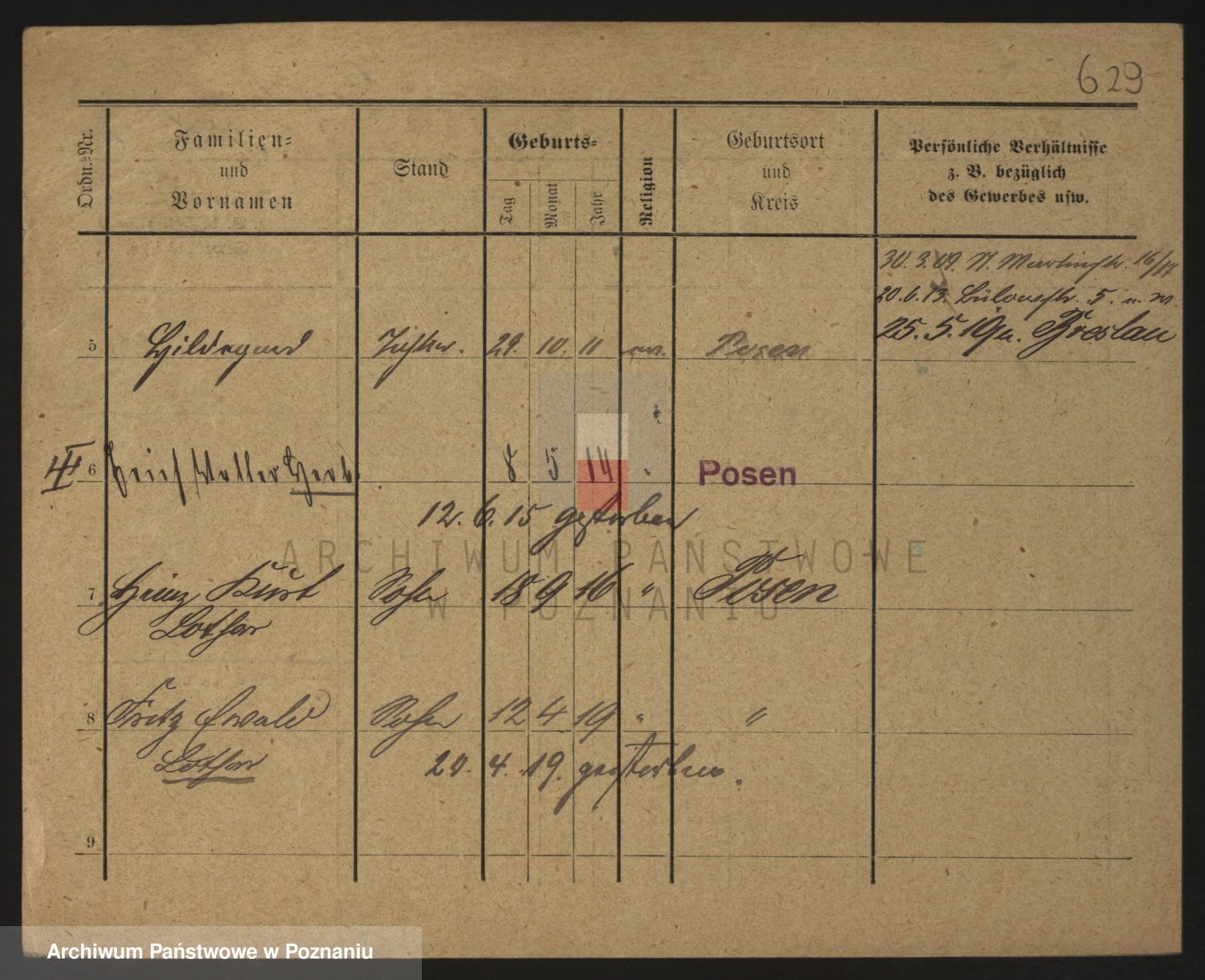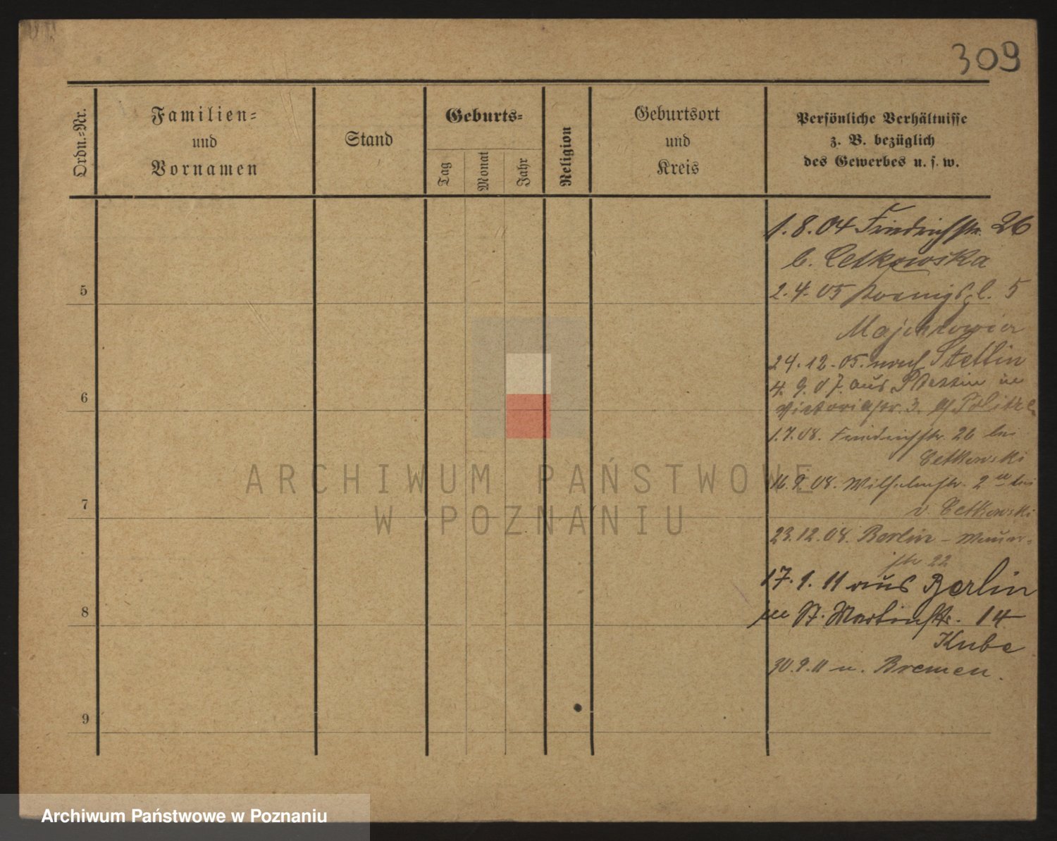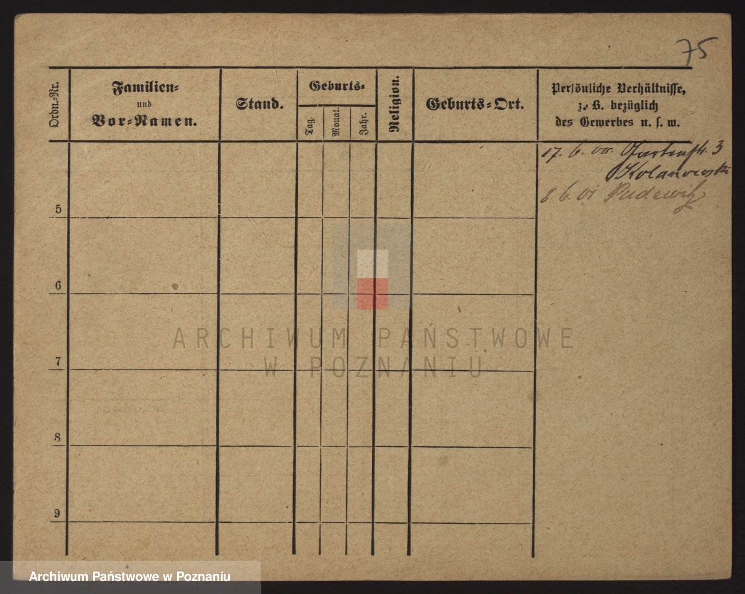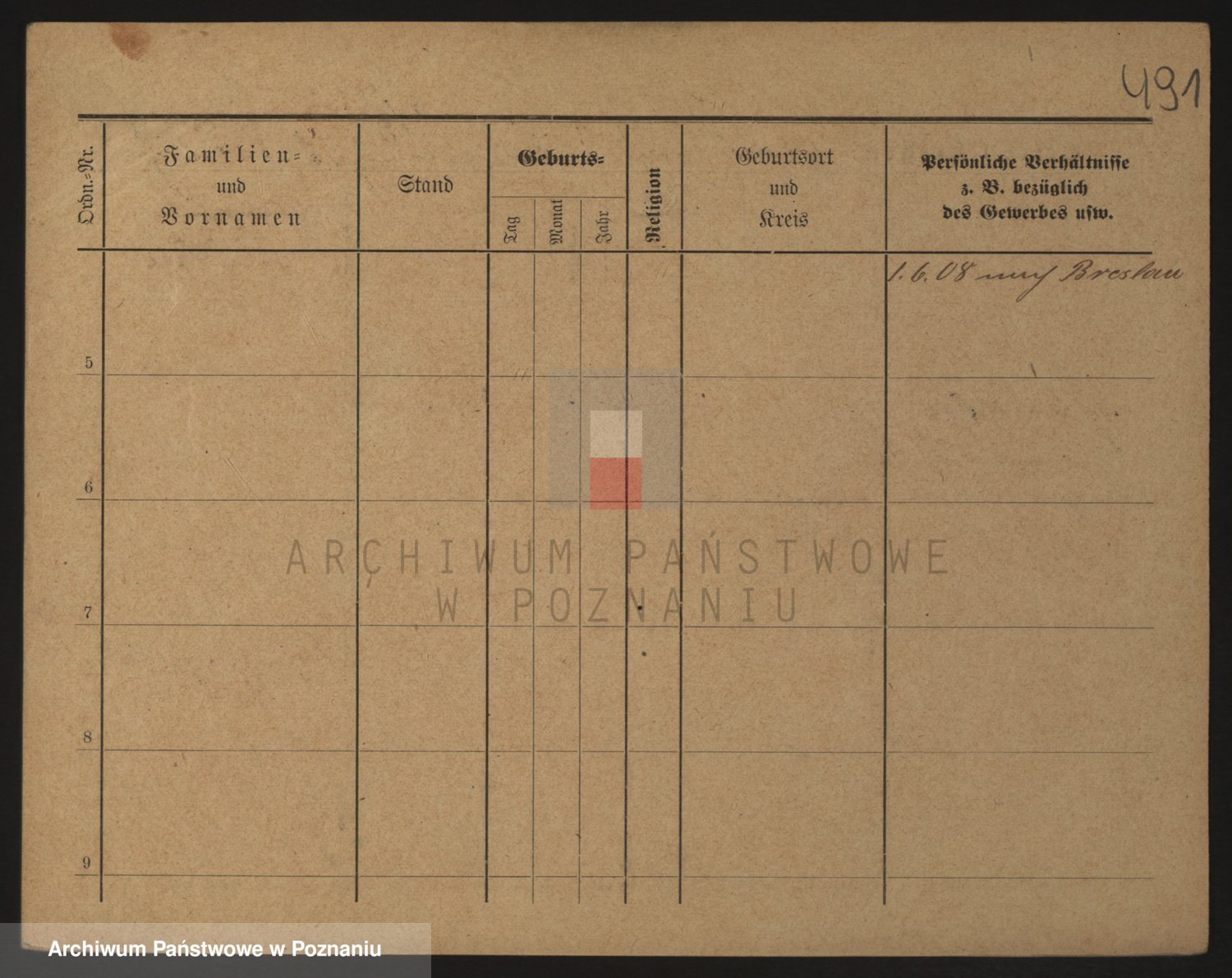 Podgląd karty osobowej dostępny jest po kliknięciu na nazwisko lub ikonkę karty. Można dokonywać powiększenia (ikony na górze) lub przechodzić między kolejnymi skanami (strzałki po bokach).