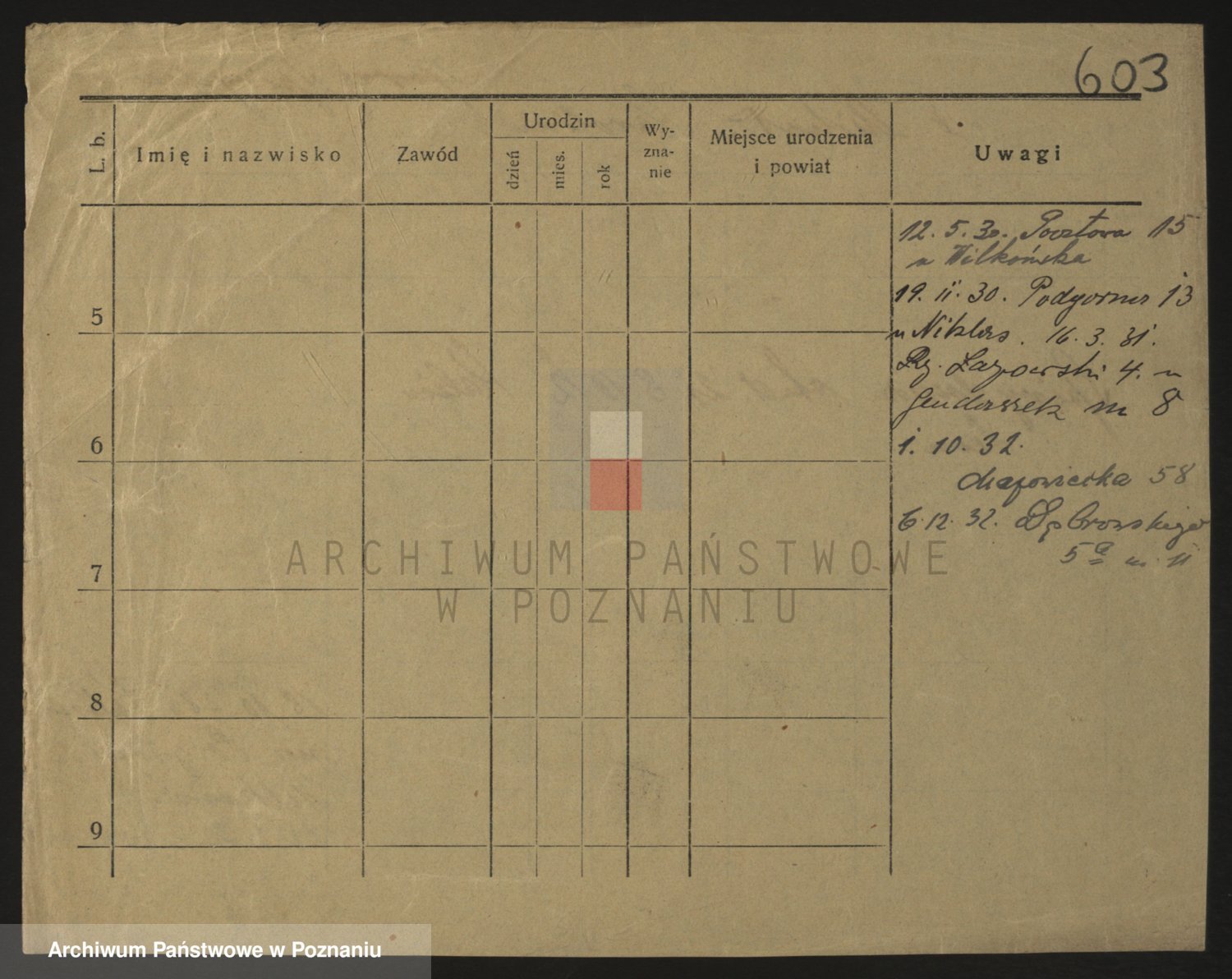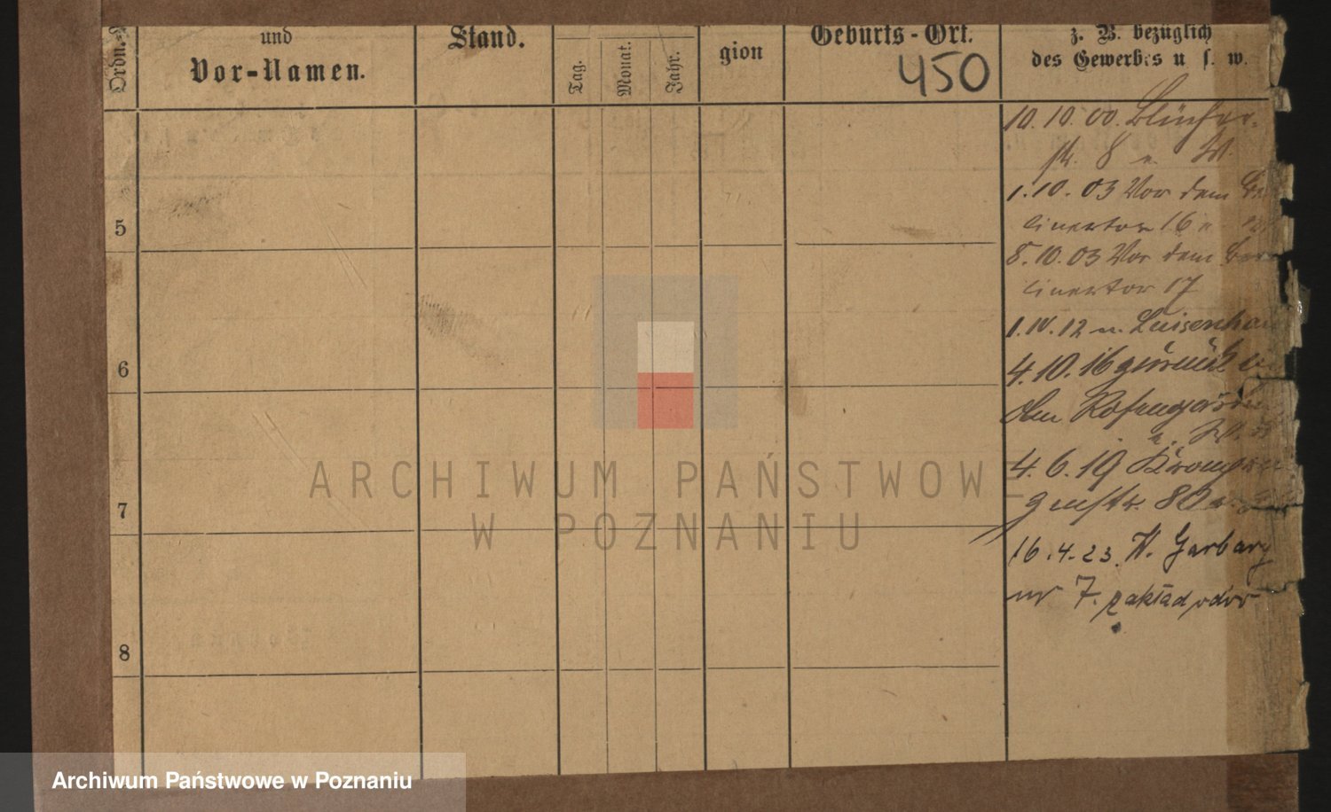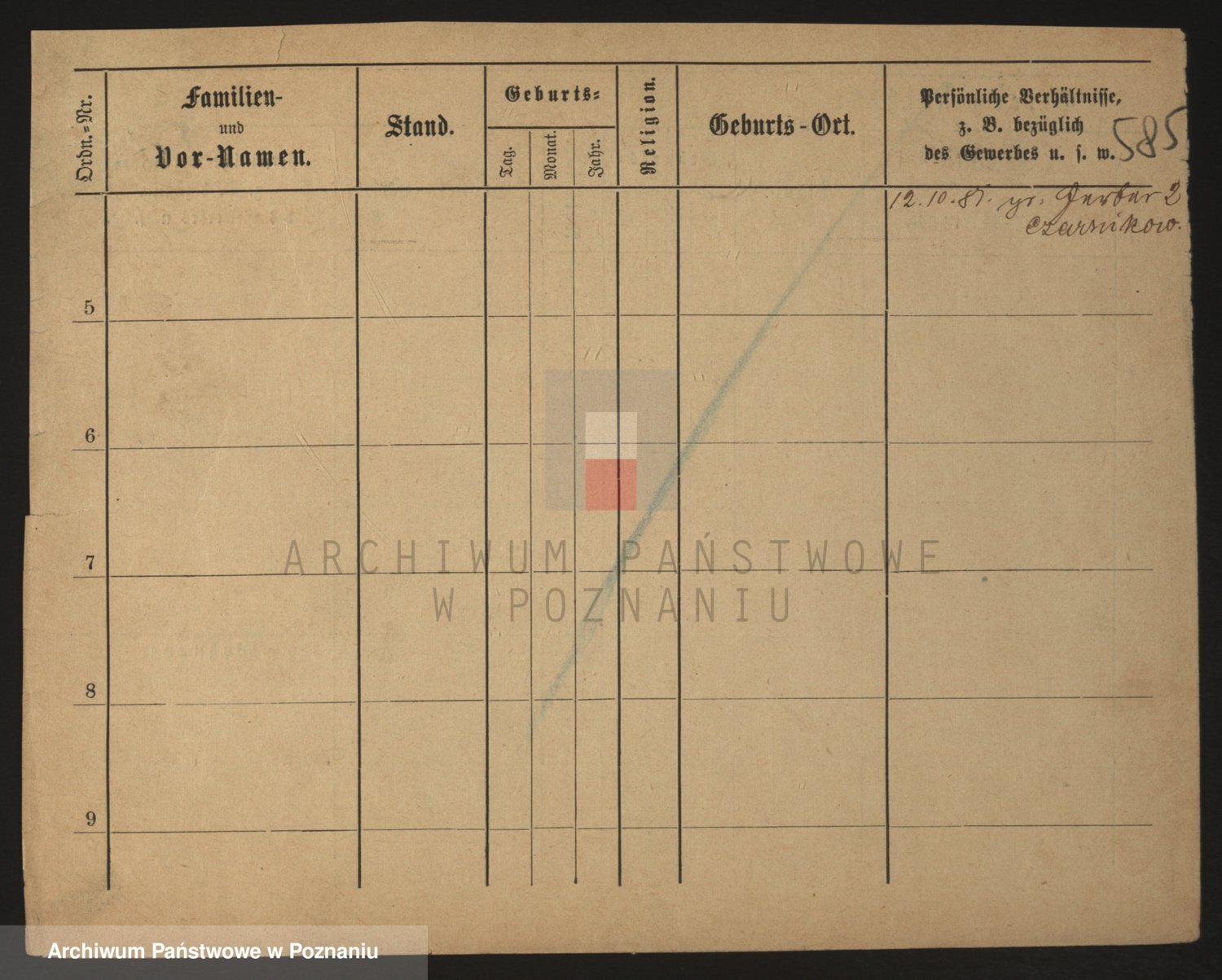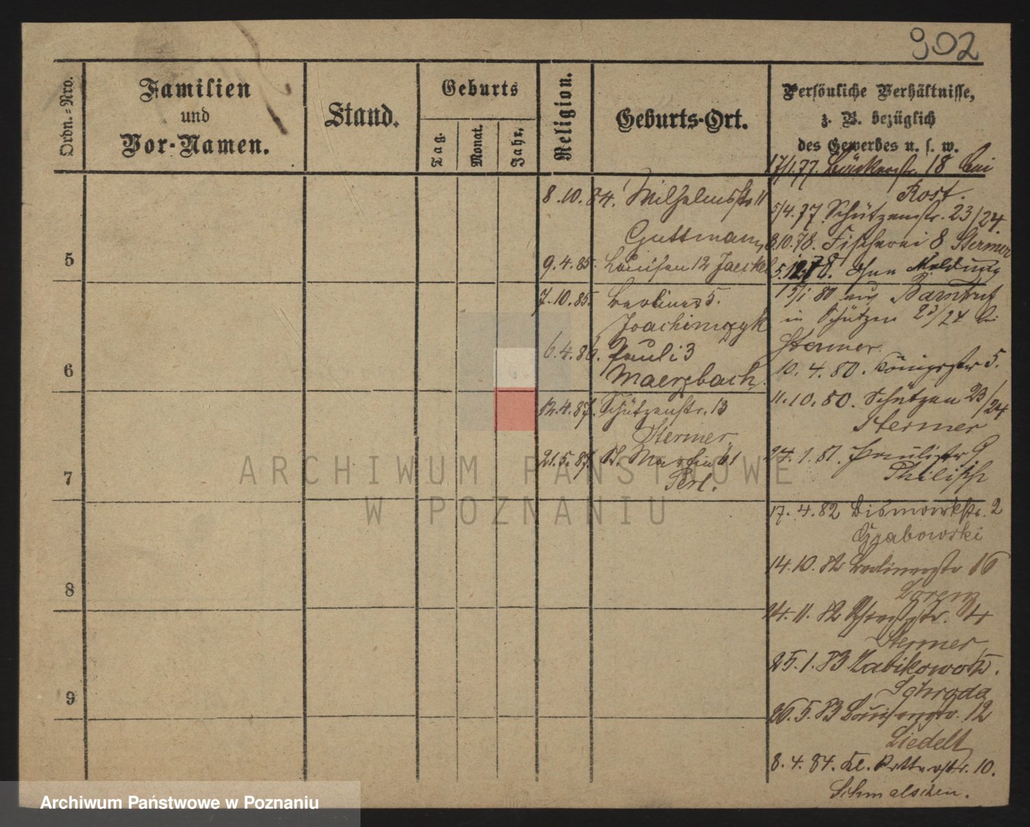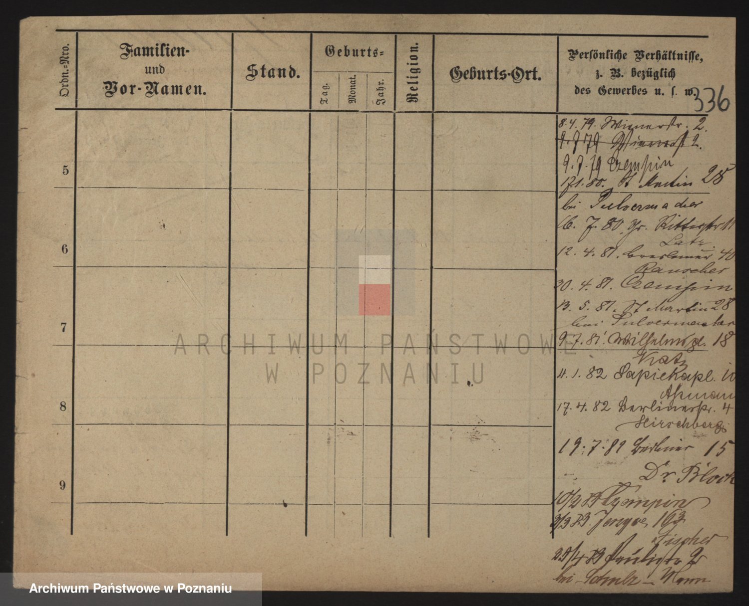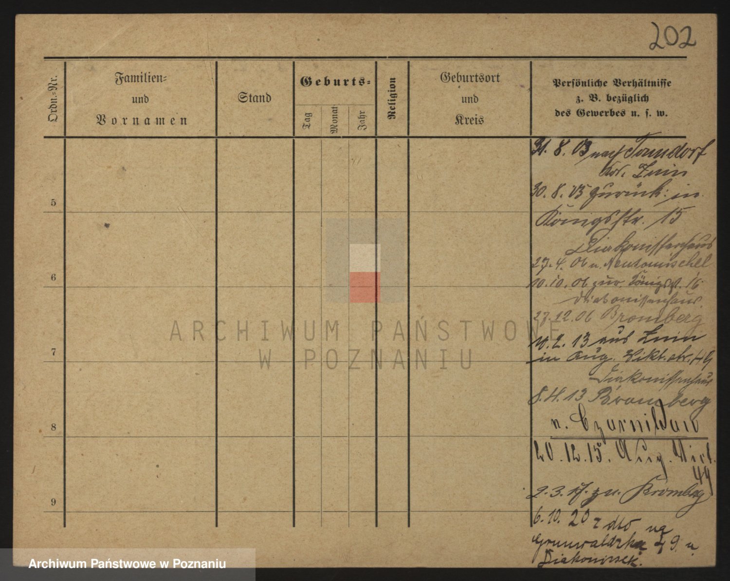 Podgląd karty osobowej dostępny jest po kliknięciu na nazwisko lub ikonkę karty. Można dokonywać powiększenia (ikony na górze) lub przechodzić między kolejnymi skanami (strzałki po bokach).