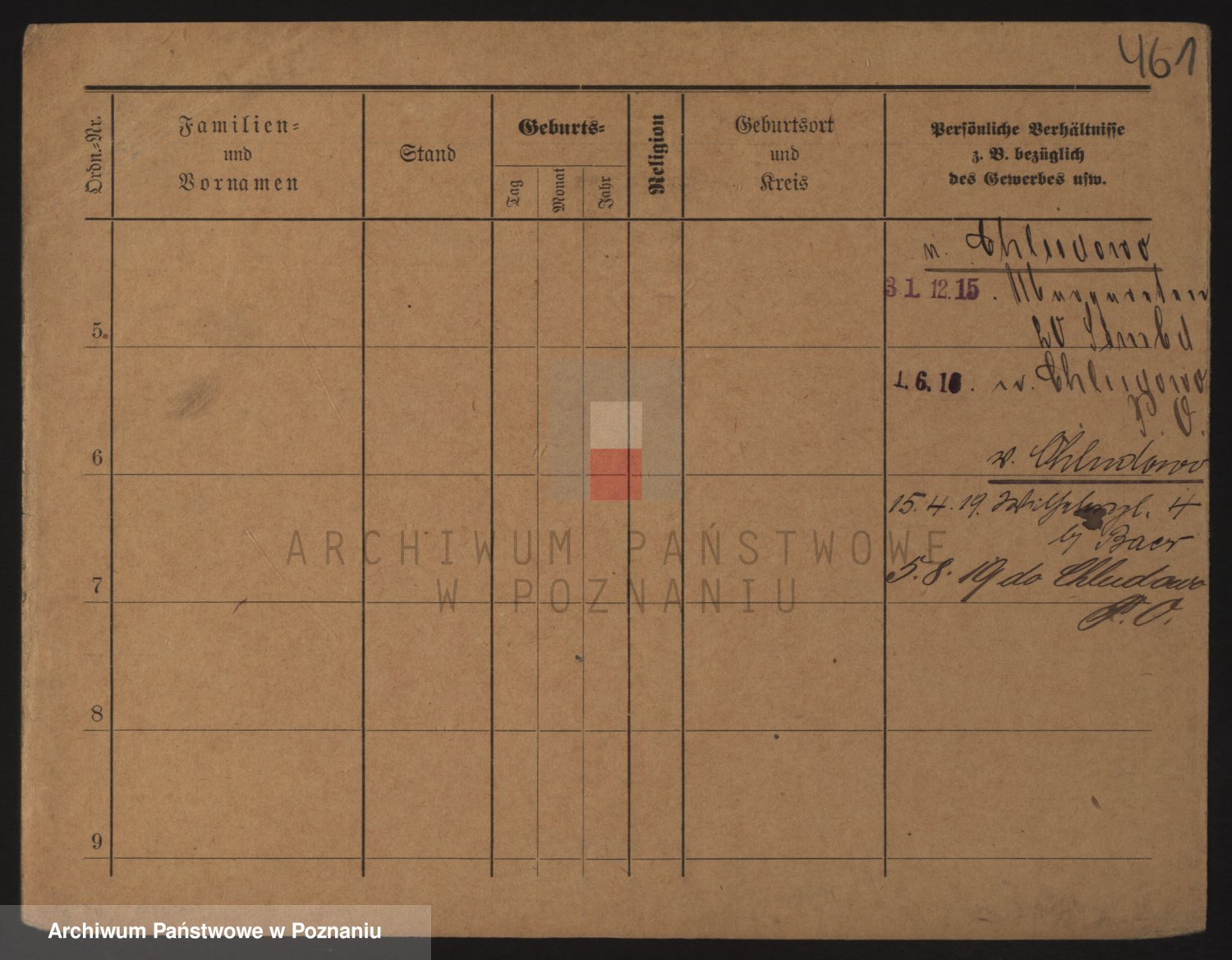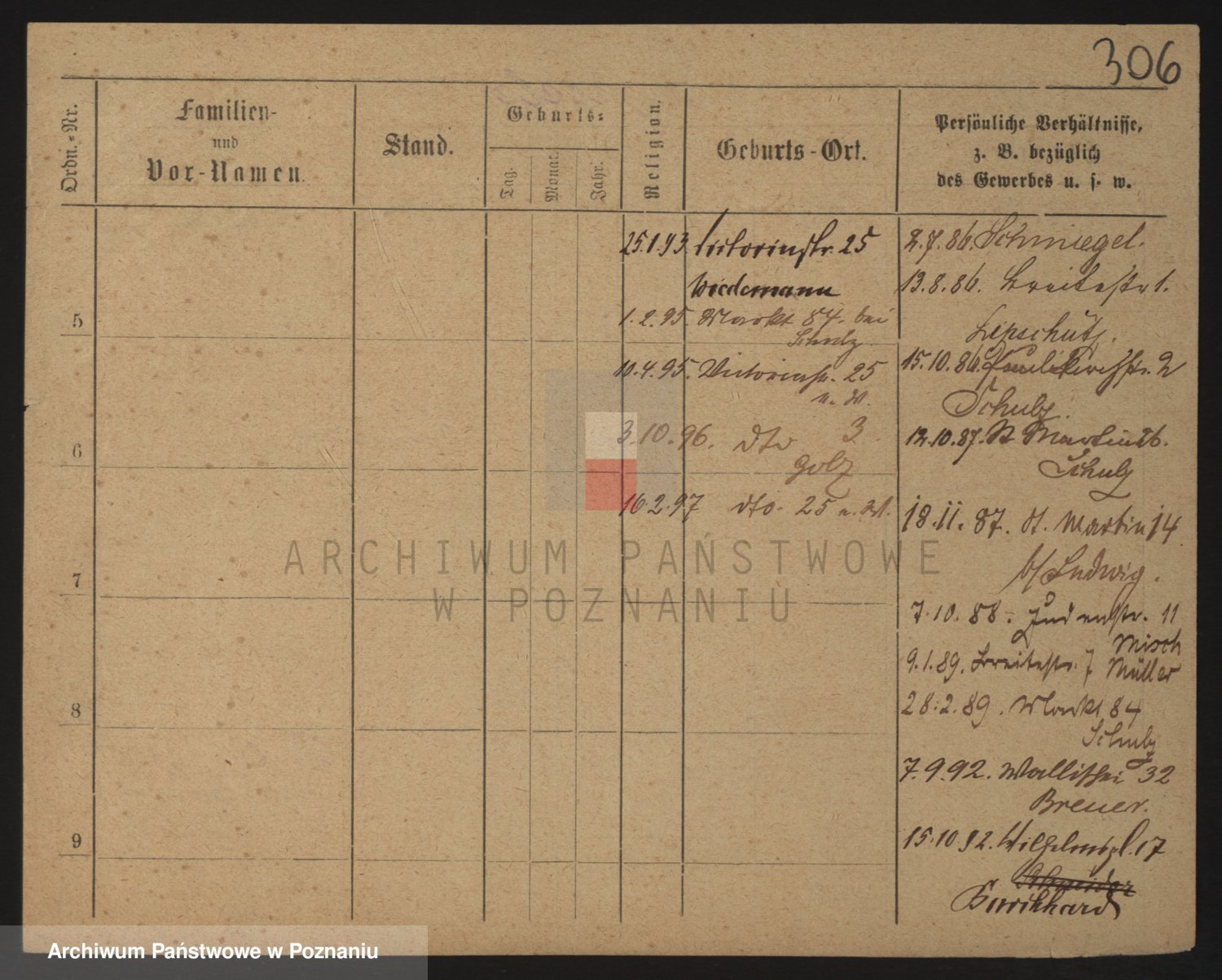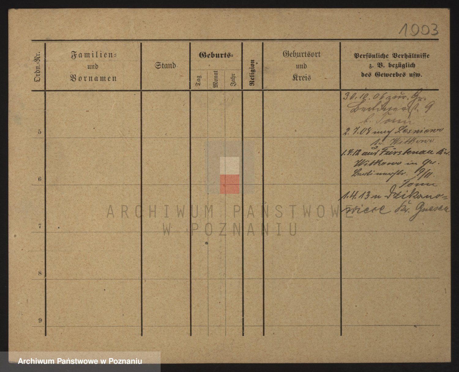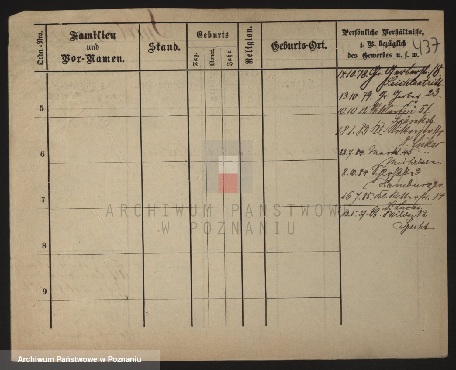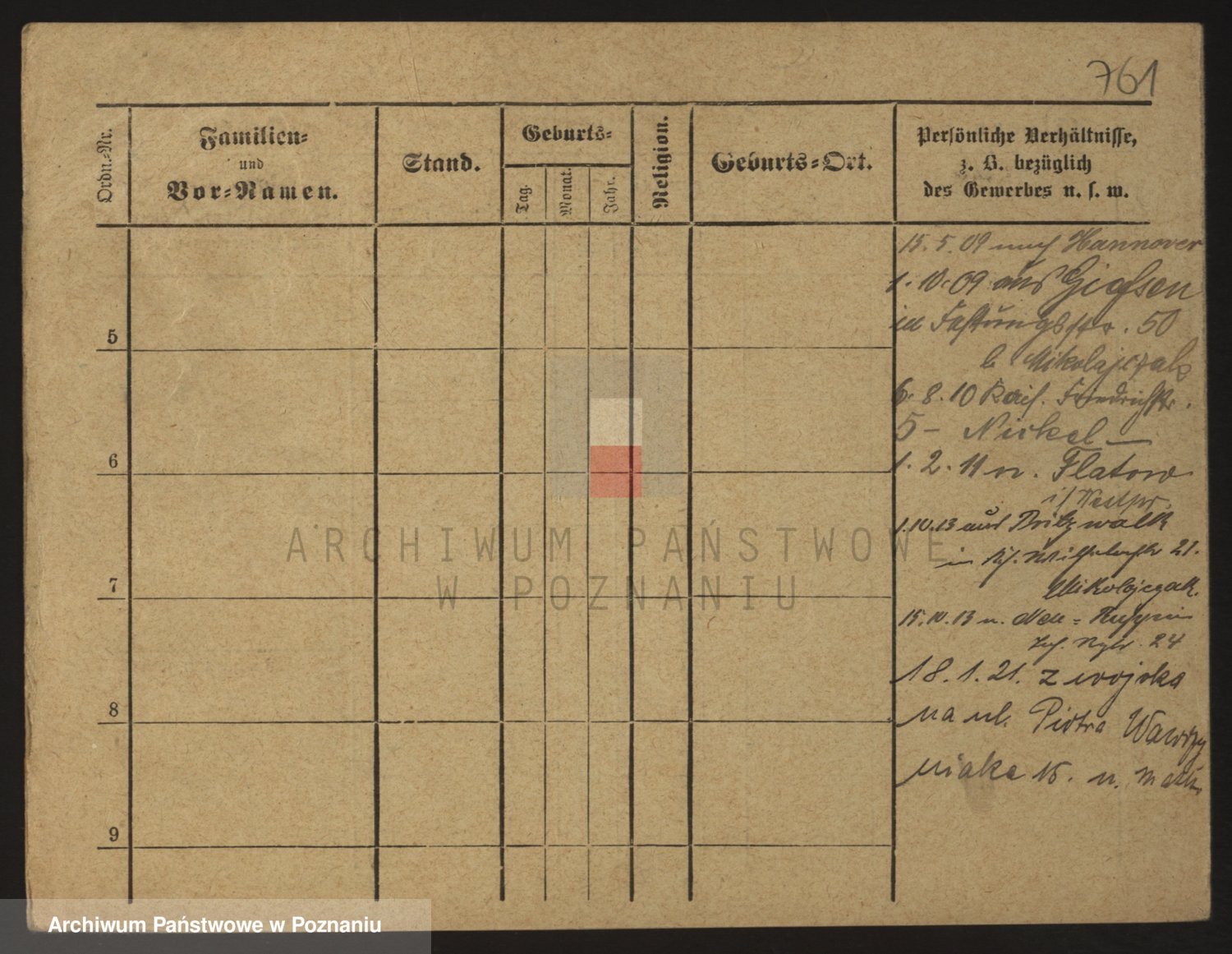 Podgląd karty osobowej dostępny jest po kliknięciu na nazwisko lub ikonkę karty. Można dokonywać powiększenia (ikony na górze) lub przechodzić między kolejnymi skanami (strzałki po bokach).