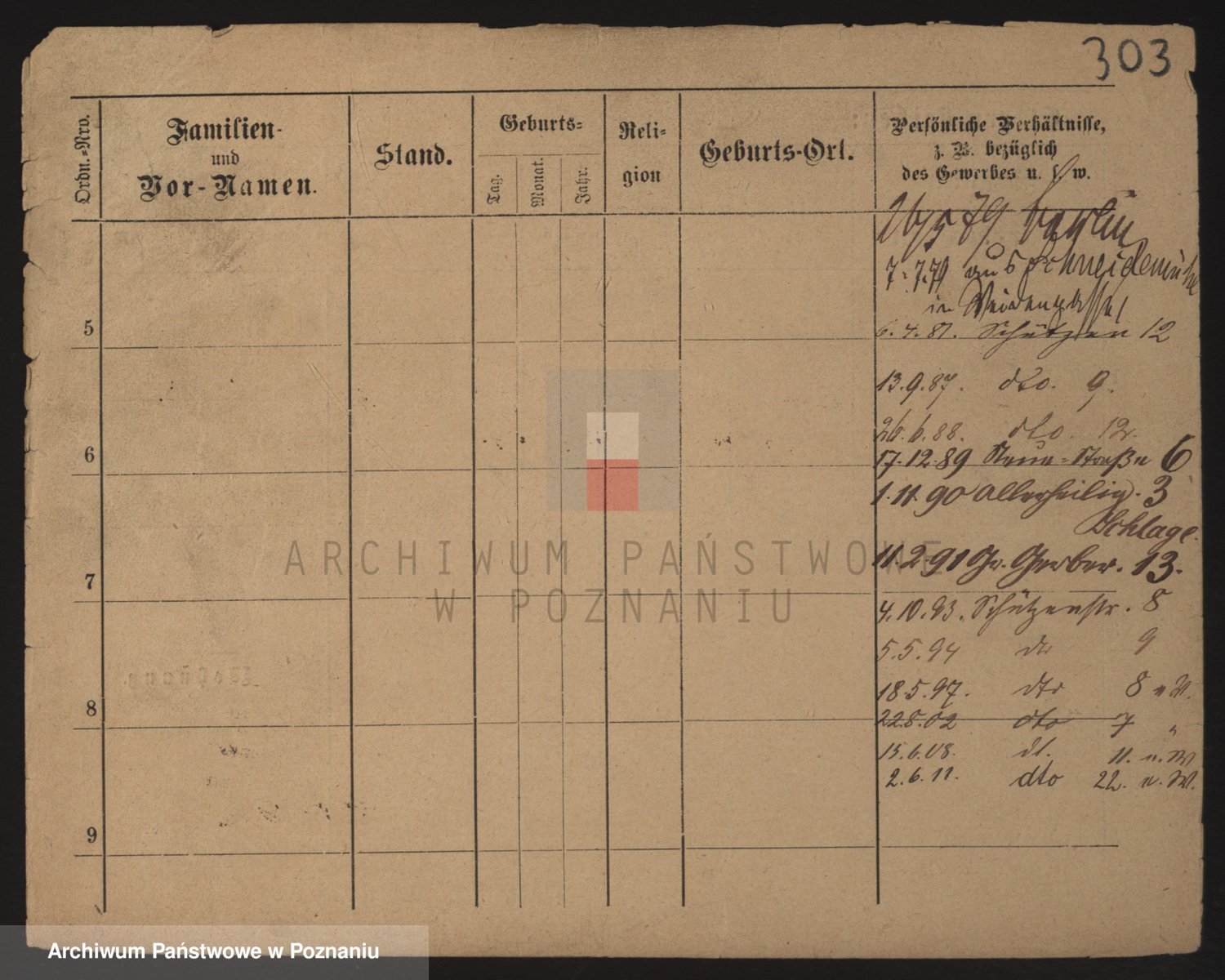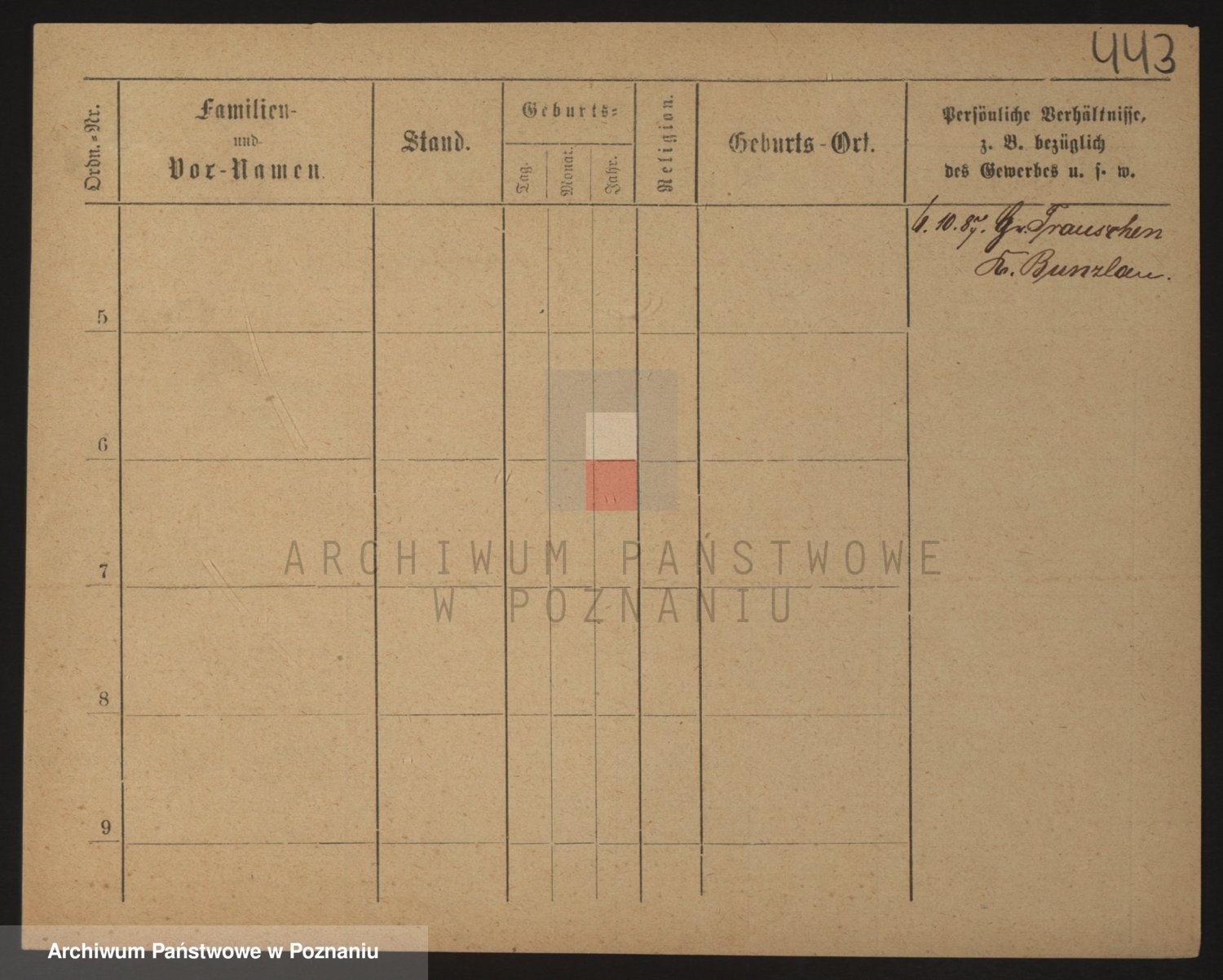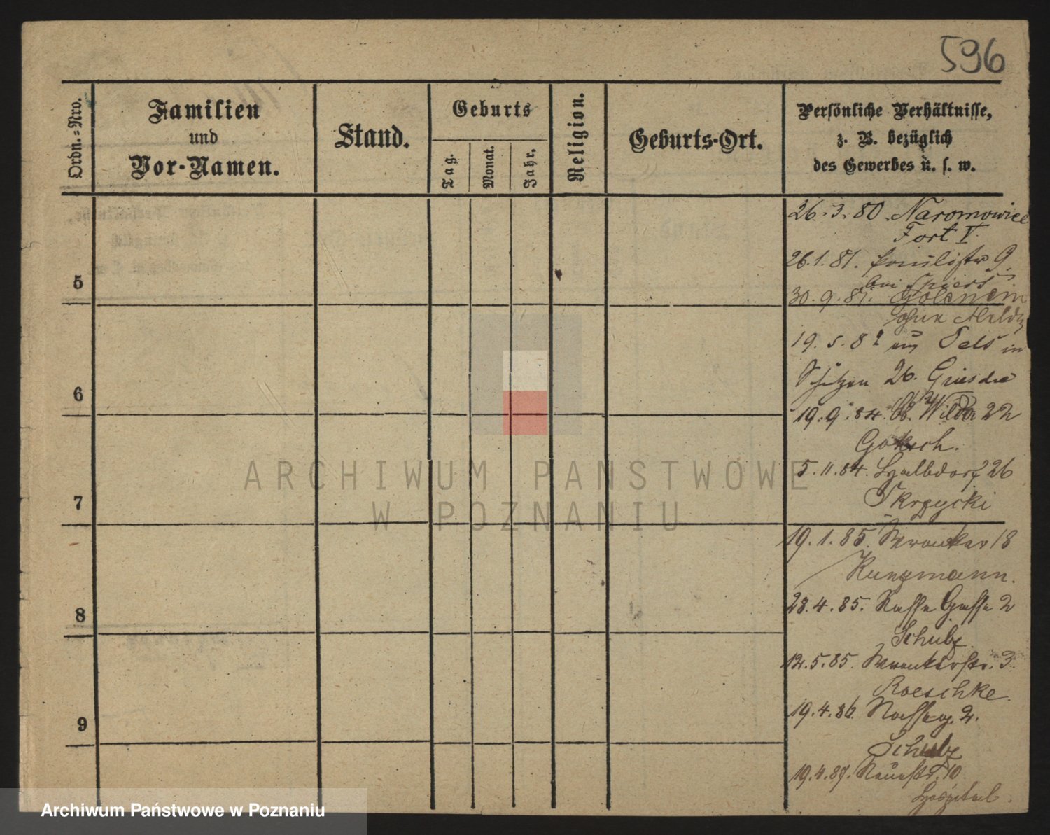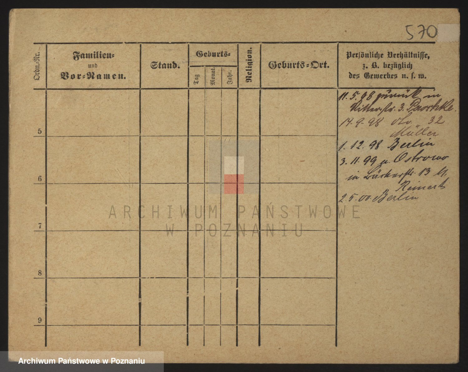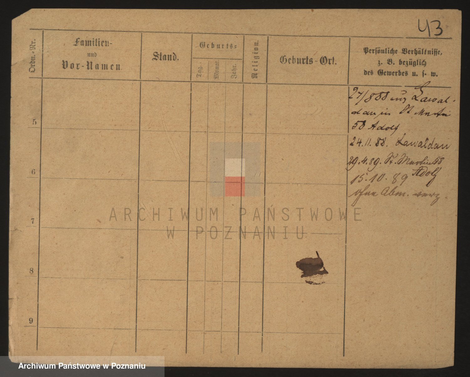Podgląd karty osobowej dostępny jest po kliknięciu na nazwisko lub ikonkę karty. Można dokonywać powiększenia (ikony na górze) lub przechodzić między kolejnymi skanami (strzałki po bokach).