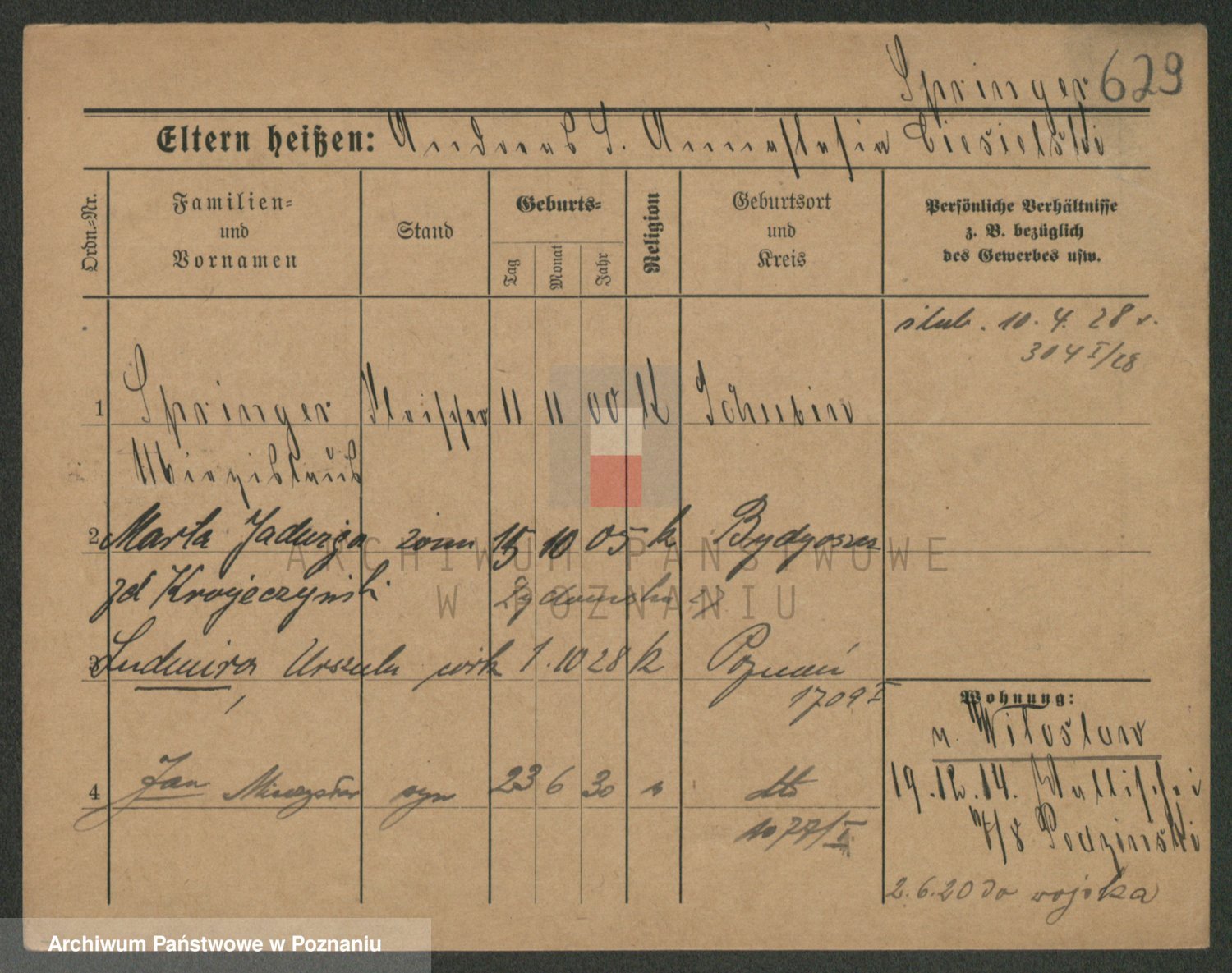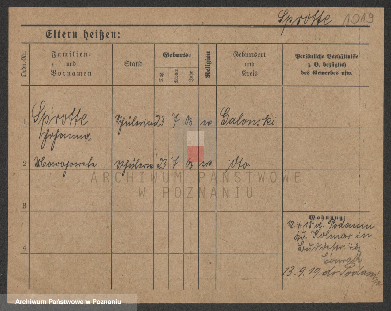 Podgląd karty osobowej dostępny jest po kliknięciu na nazwisko lub ikonkę karty. Można dokonywać powiększenia (ikony na górze) lub przechodzić między kolejnymi skanami (strzałki po bokach).